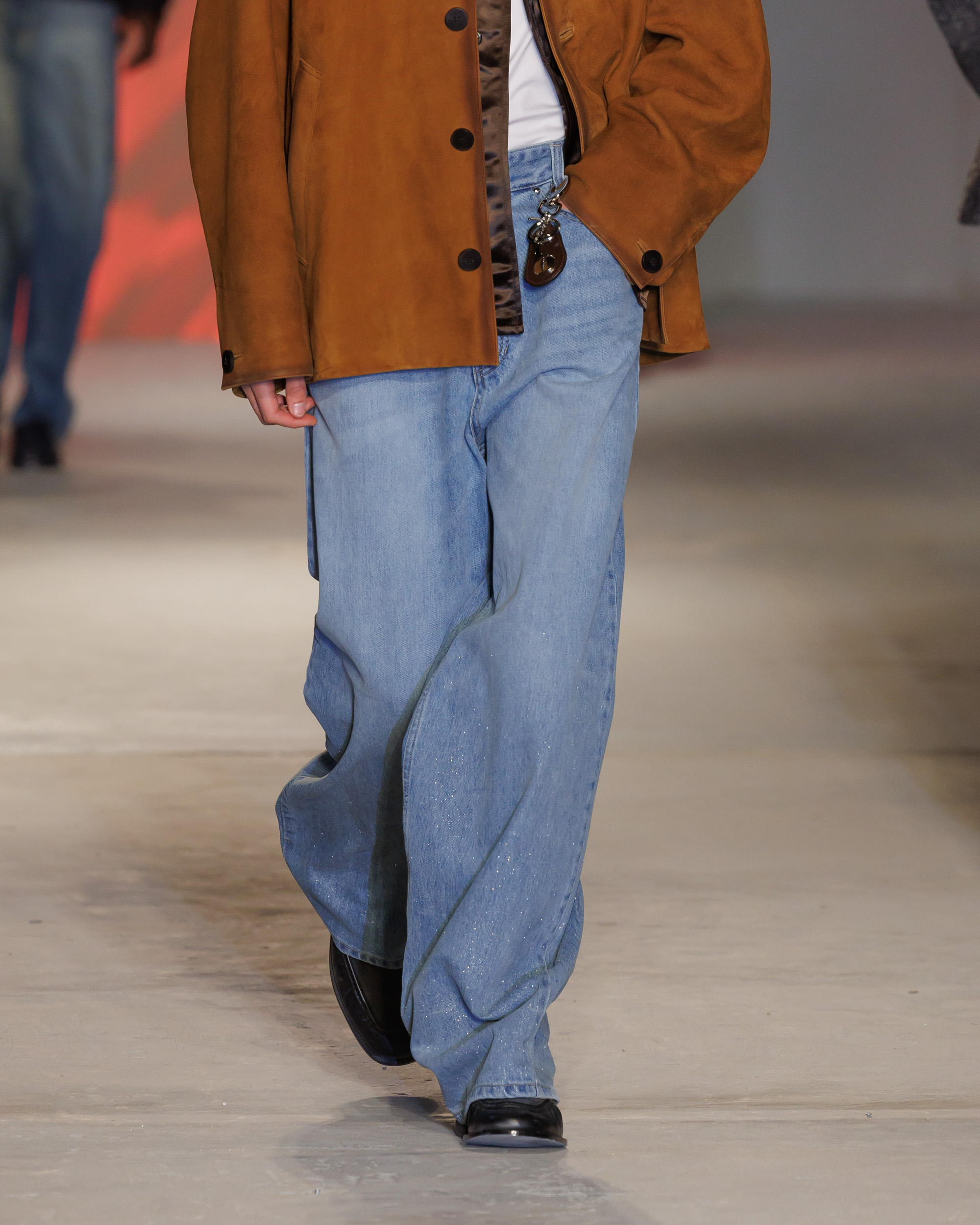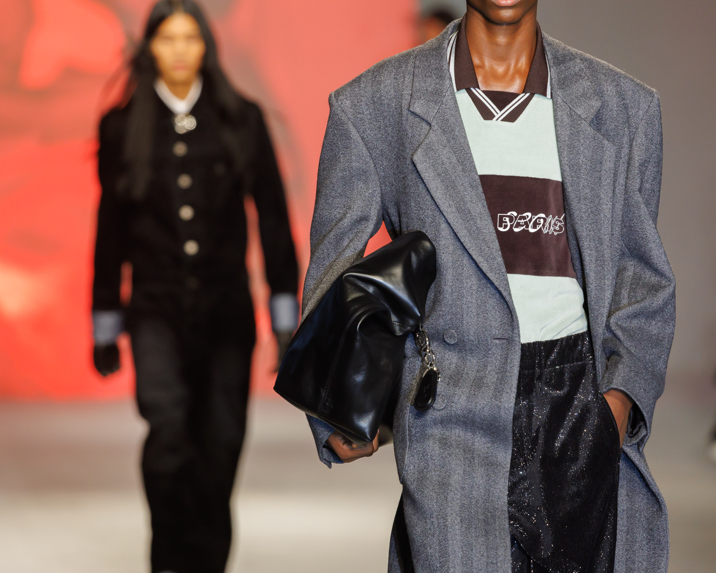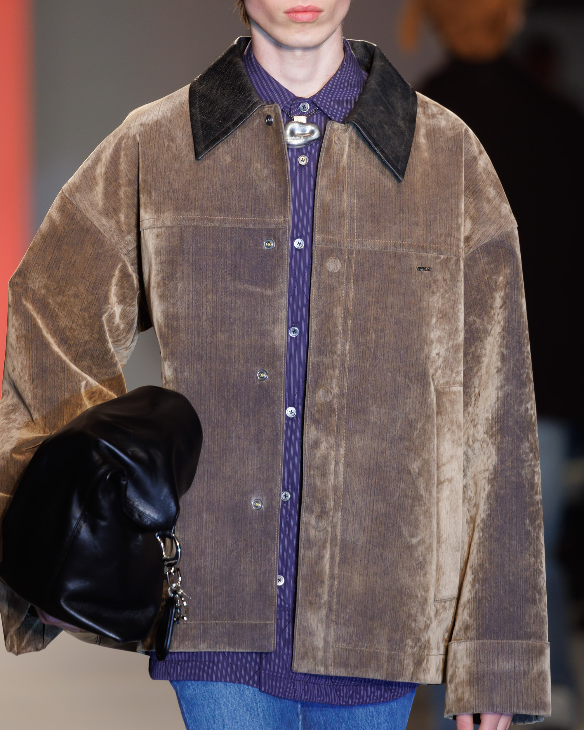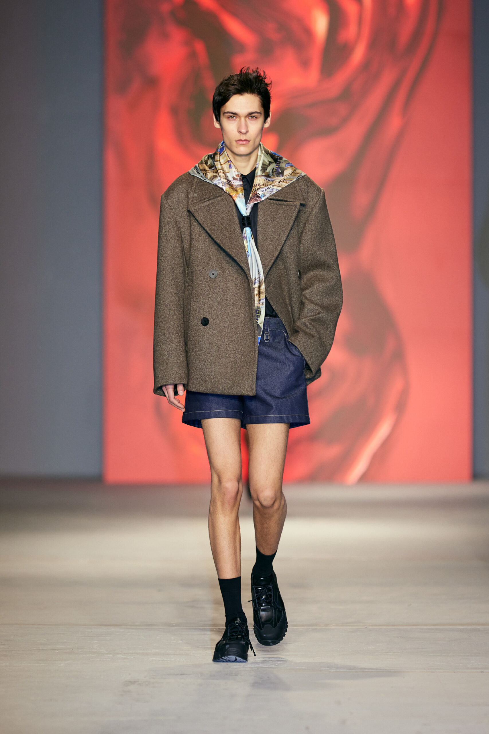 Les nuances automnales de la collection s’inspirent des couleurs naturelles de Séoul, éclairées par des imprimés chaotiques de la ville et des éclats de paillettes sur le sportswear et le denim. Les accessoires, comme les bijoux sculptés en forme d’oreilles, rendent hommage à la philosophie bouddhiste, symbolisant la sagesse et la compassion.