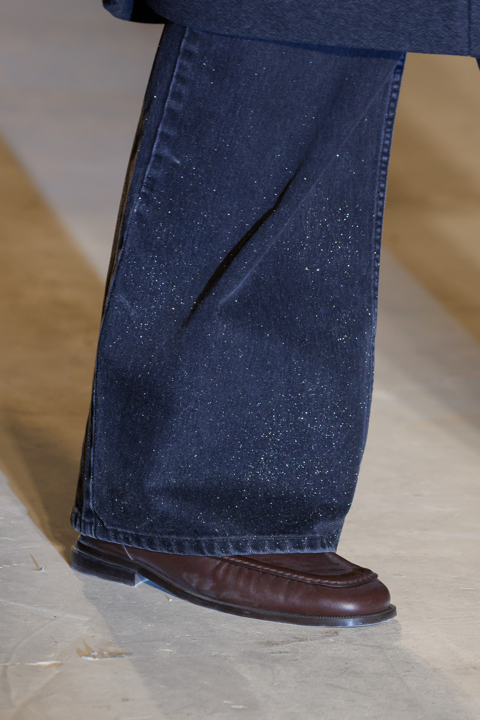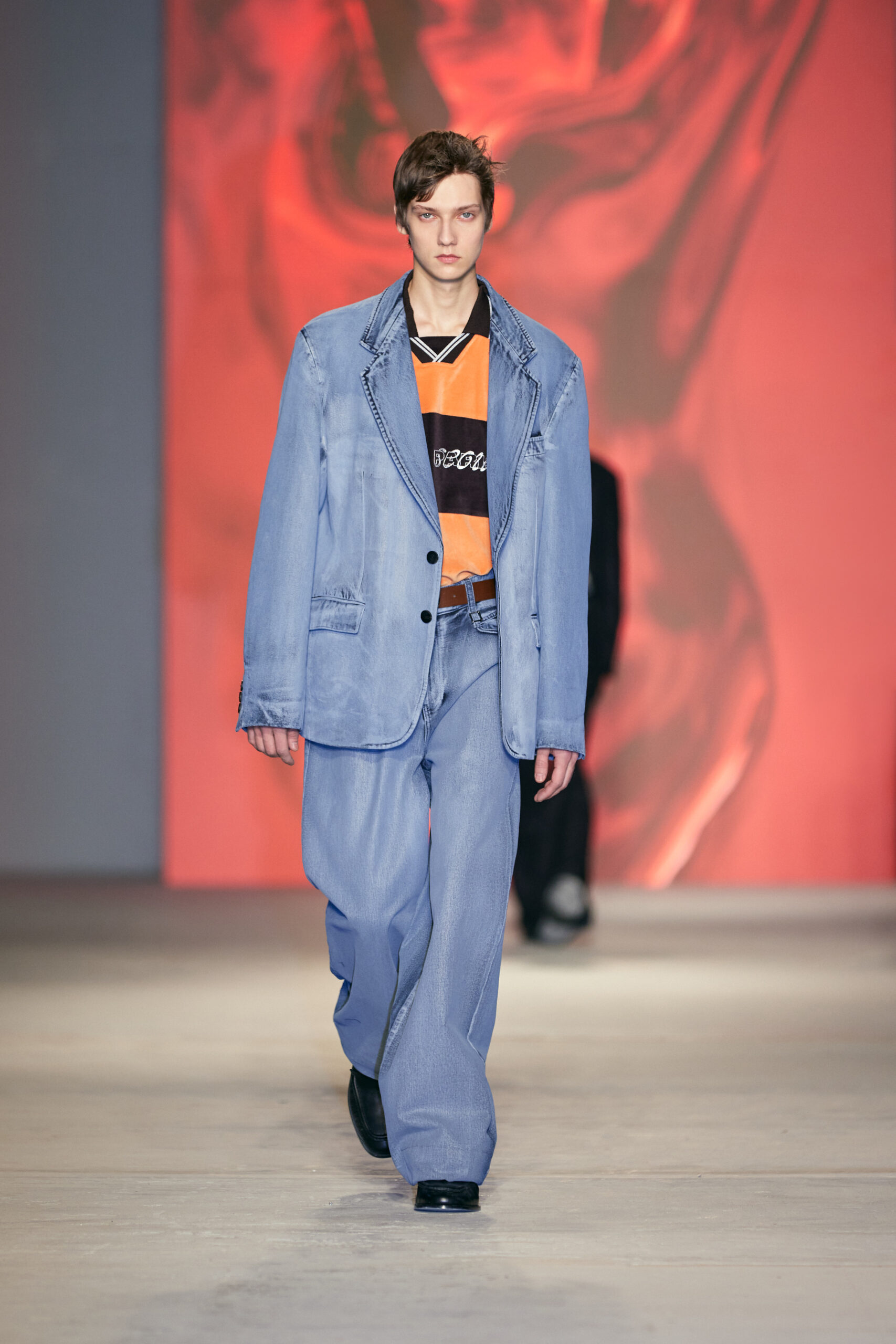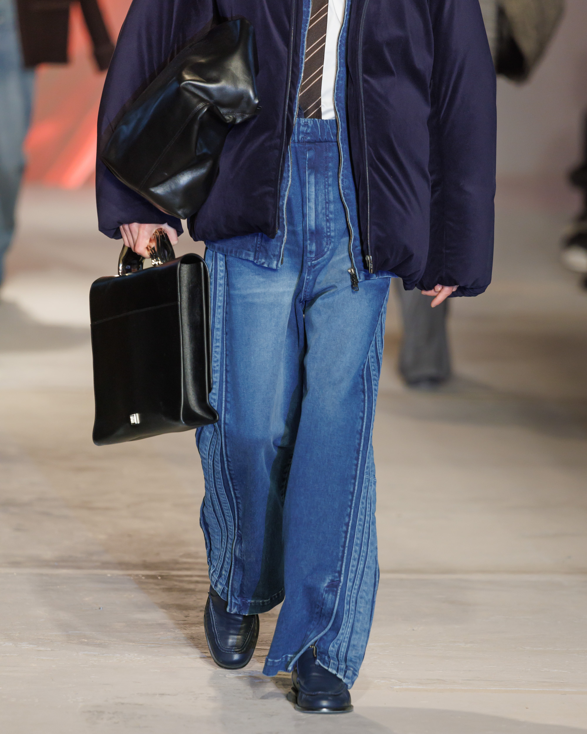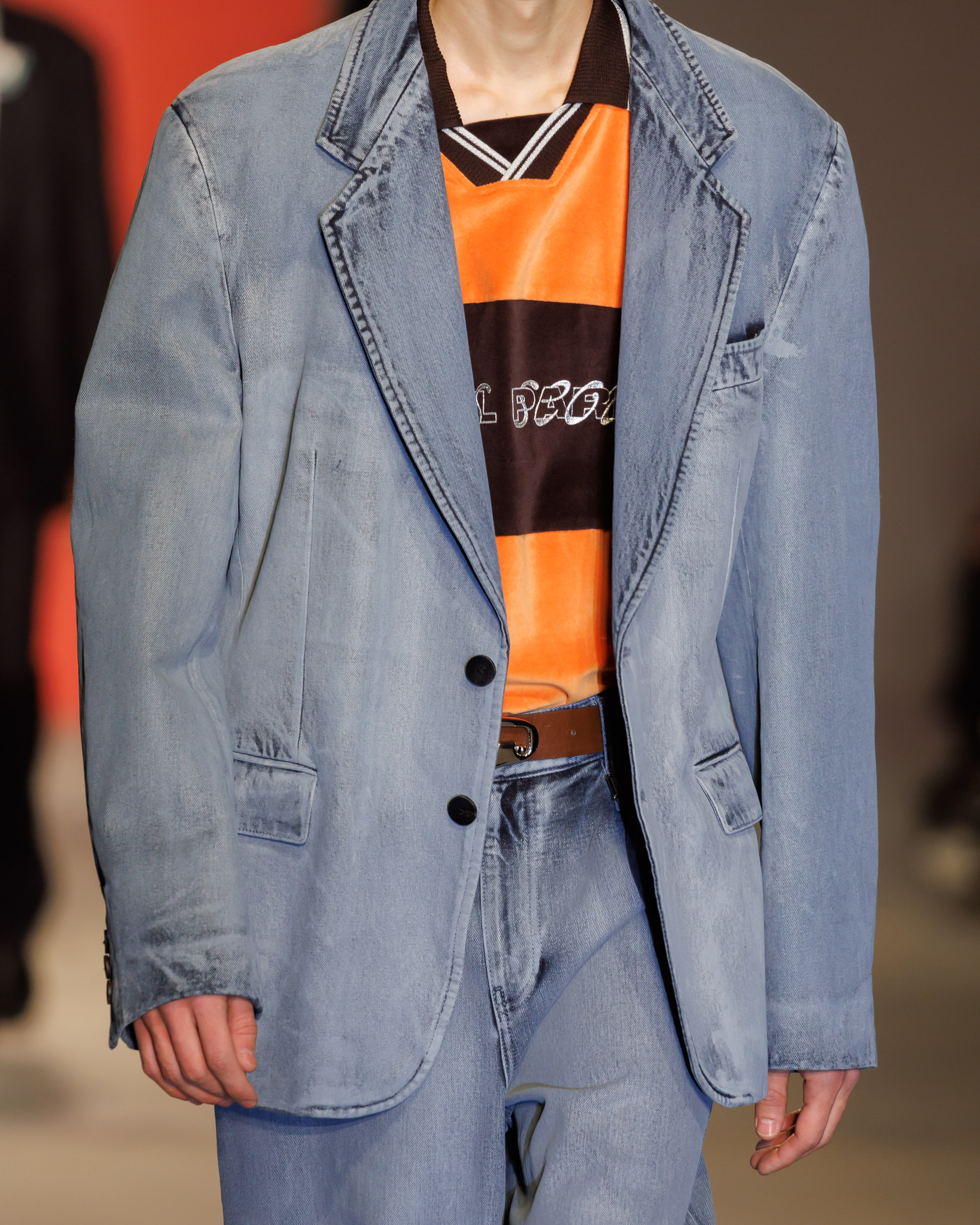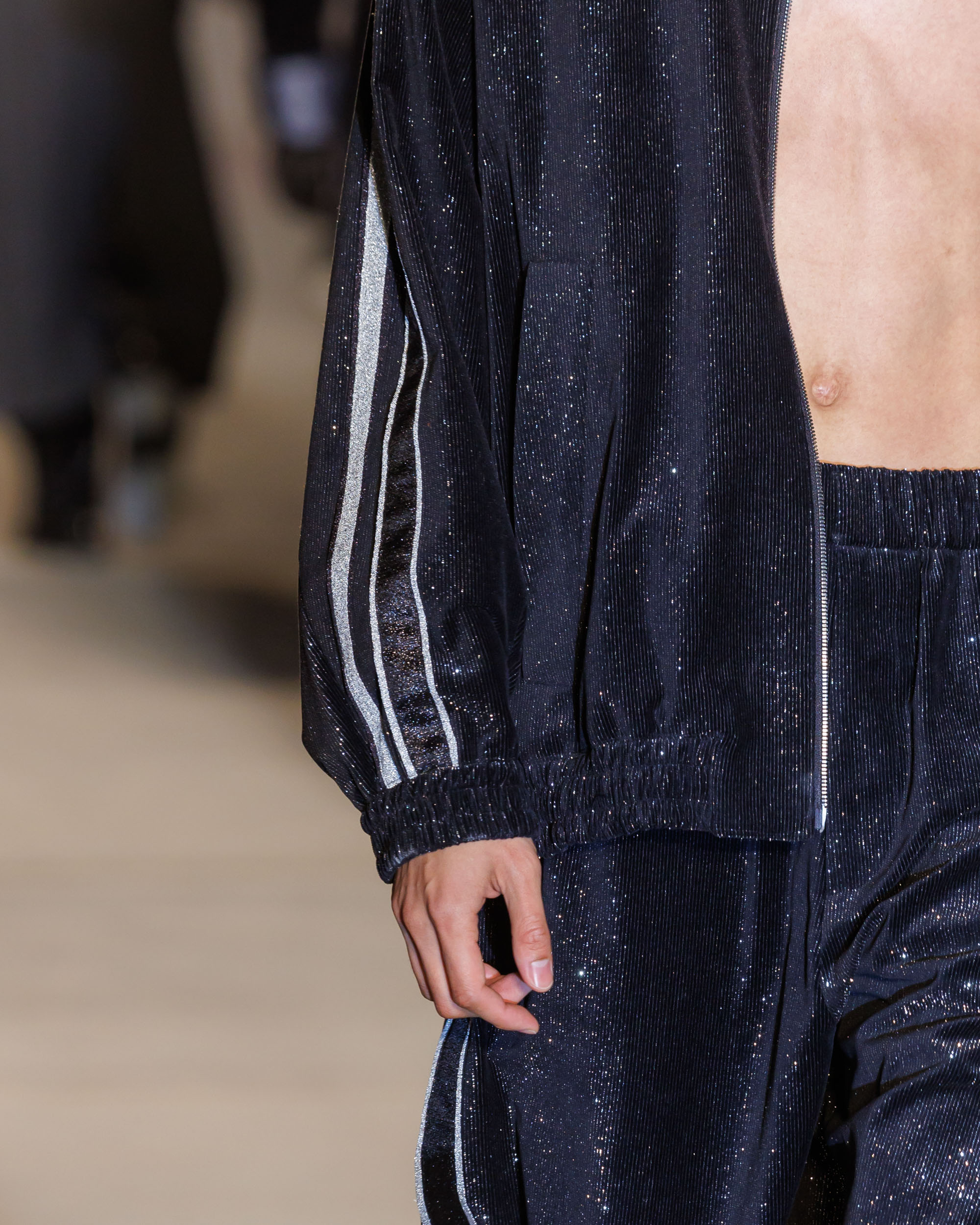 Les nuances automnales de la collection s’inspirent des couleurs naturelles de Séoul, éclairées par des imprimés chaotiques de la ville et des éclats de paillettes sur le sportswear et le denim. Les accessoires, comme les bijoux sculptés en forme d’oreilles, rendent hommage à la philosophie bouddhiste, symbolisant la sagesse et la compassion.