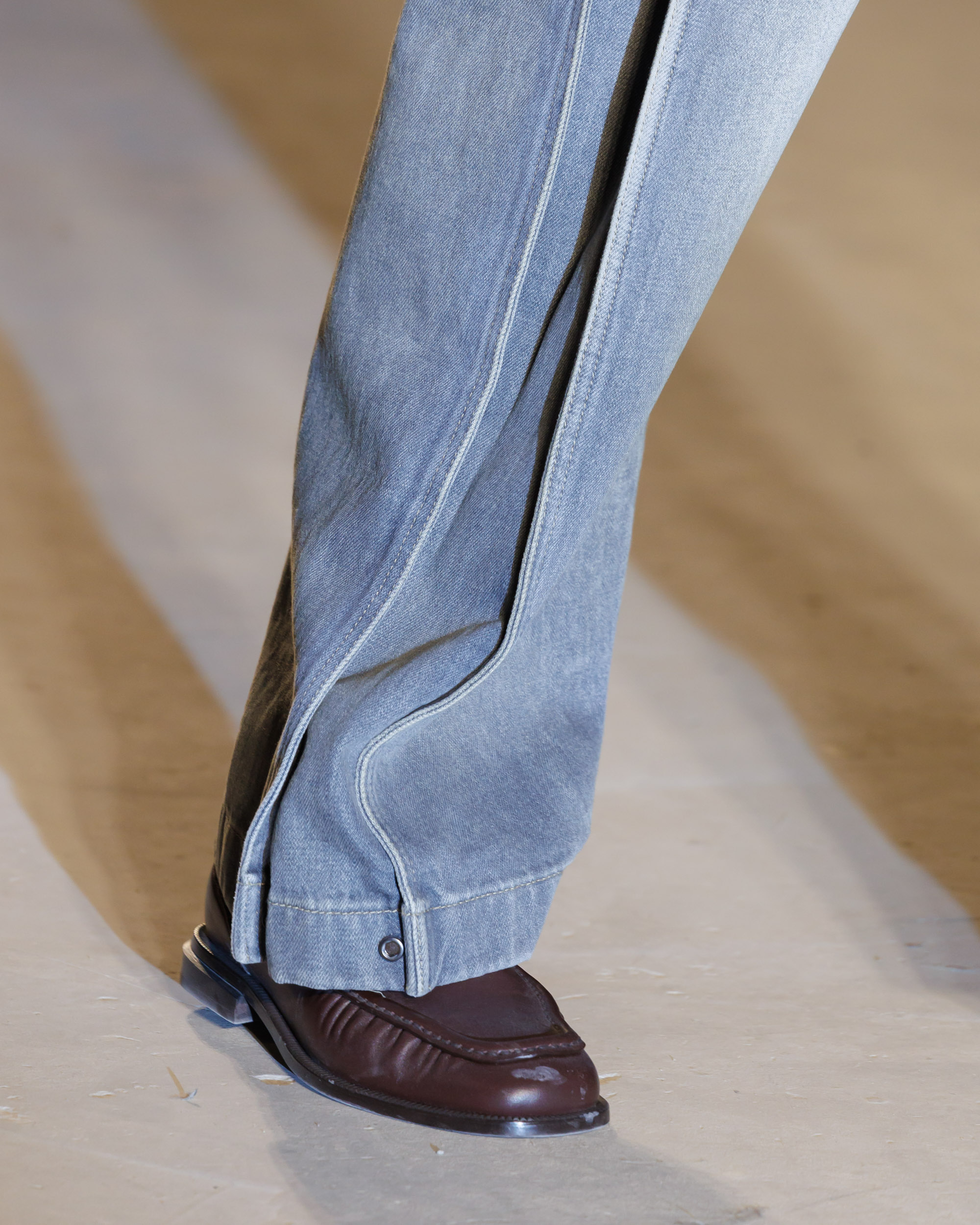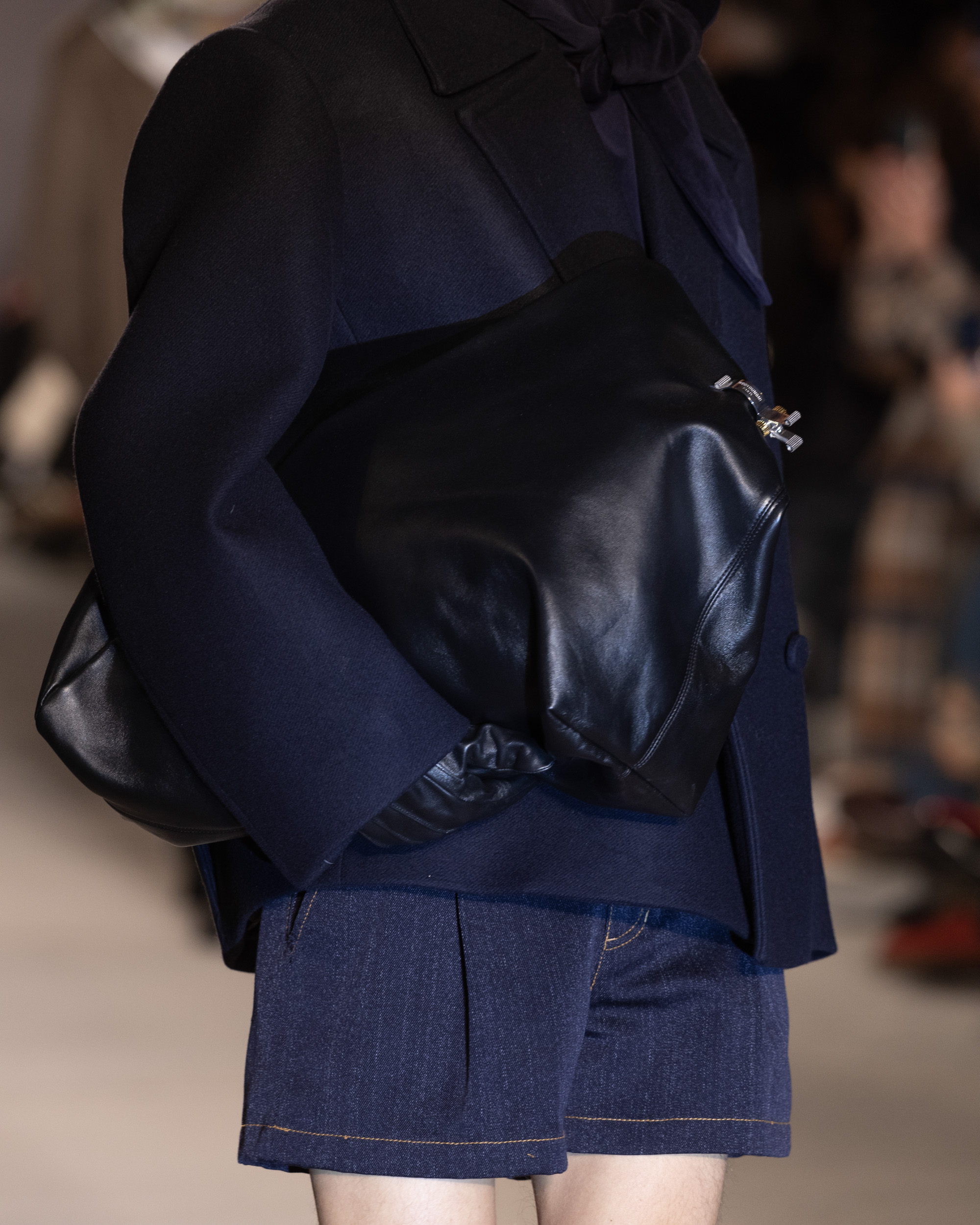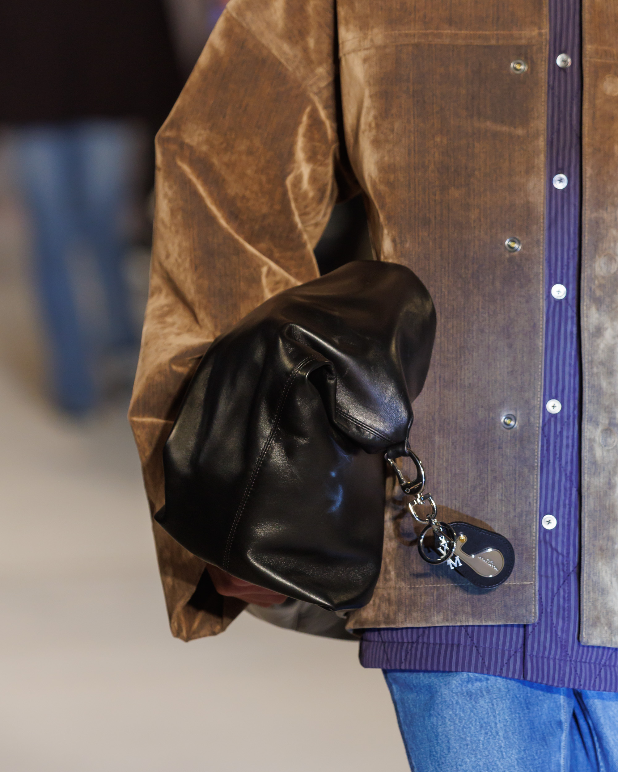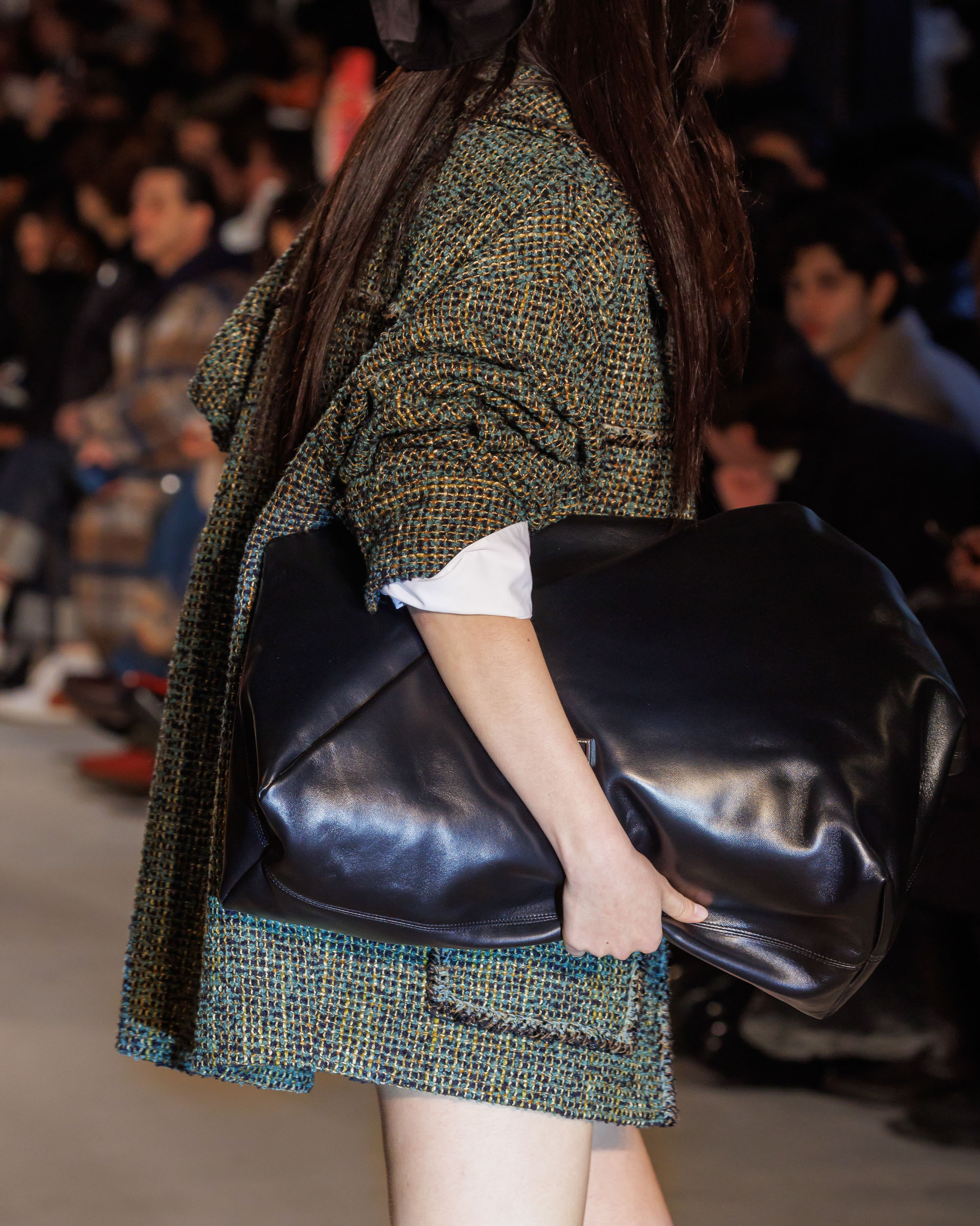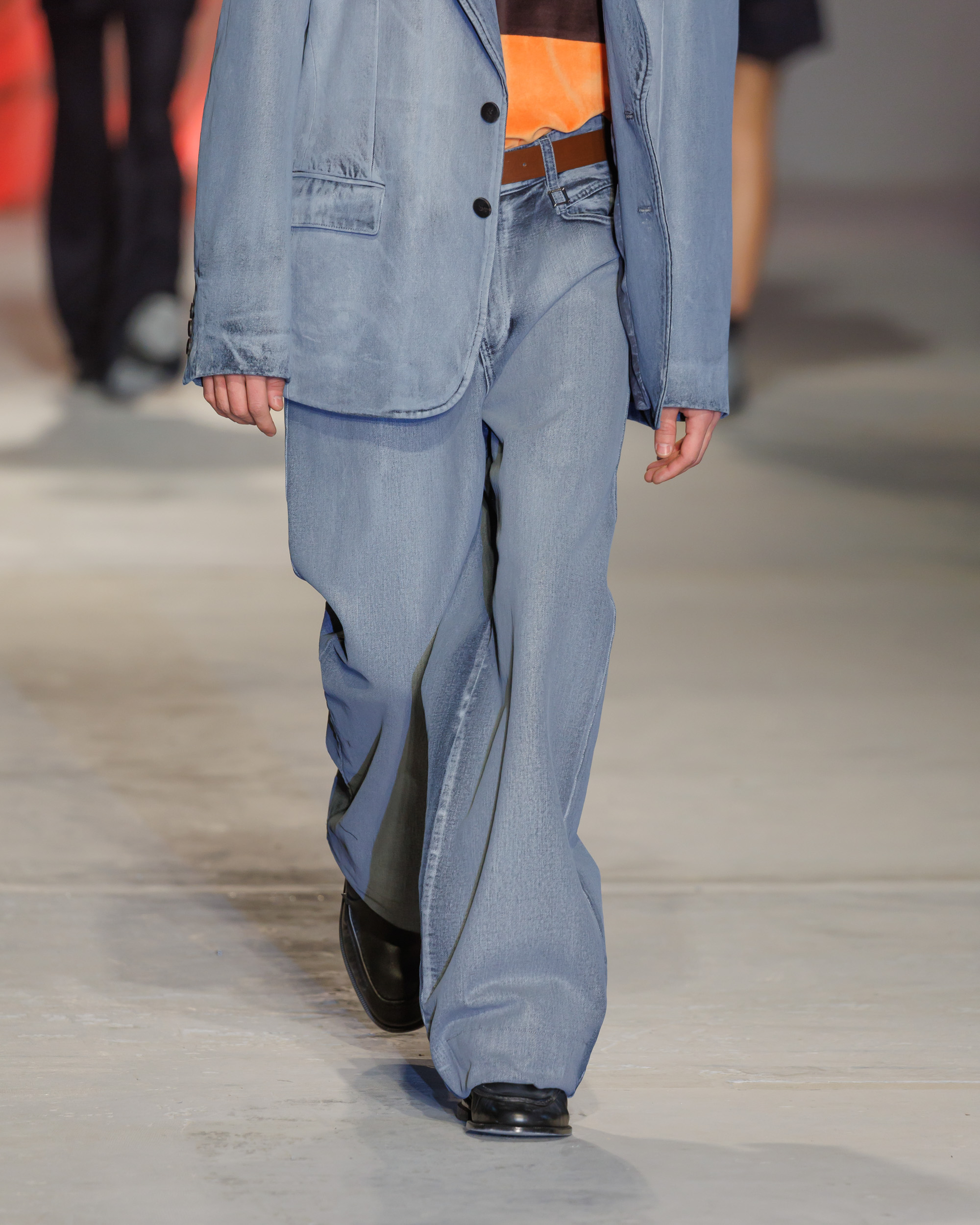 Les nuances automnales de la collection s’inspirent des couleurs naturelles de Séoul, éclairées par des imprimés chaotiques de la ville et des éclats de paillettes sur le sportswear et le denim. Les accessoires, comme les bijoux sculptés en forme d’oreilles, rendent hommage à la philosophie bouddhiste, symbolisant la sagesse et la compassion.