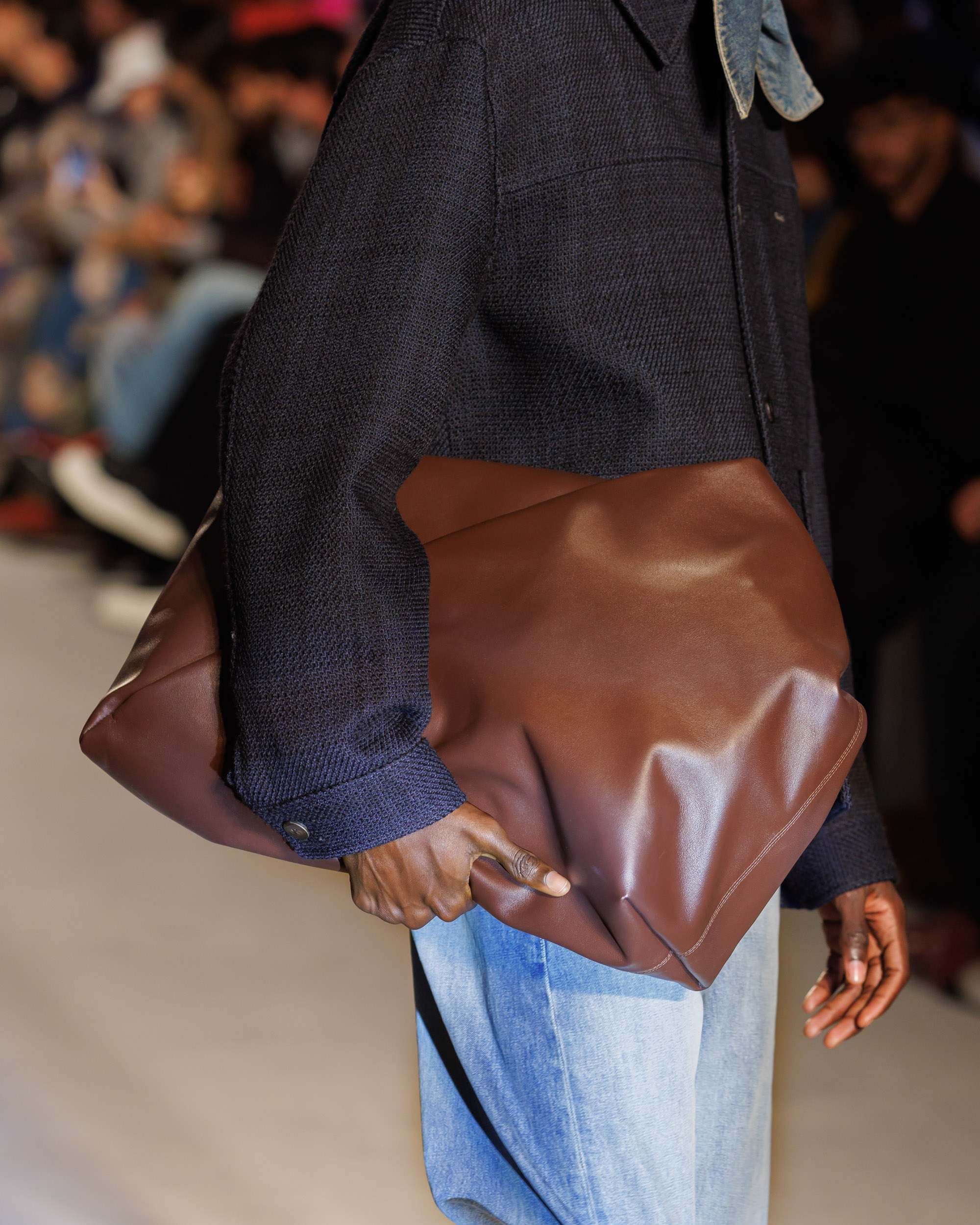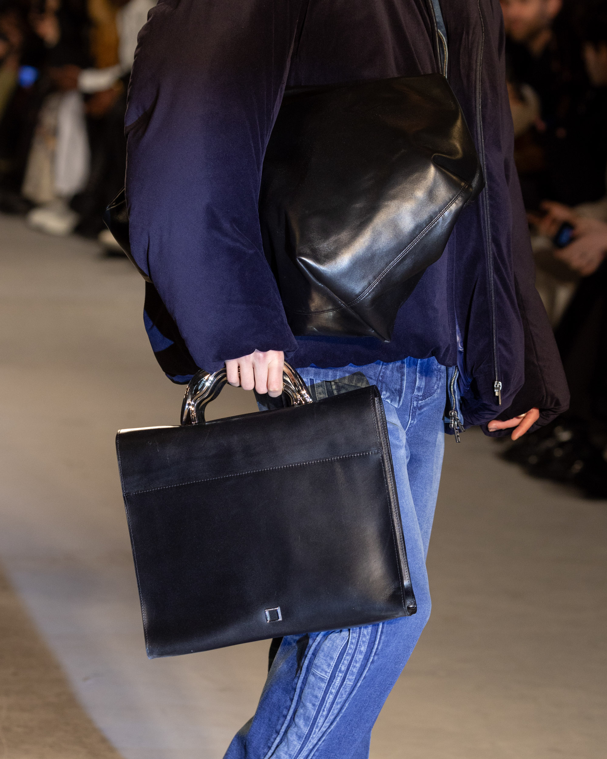 L’art du Bojagi, technique coréenne de nouage, trouve une nouvelle expression dans des hoodies, chemises, et casquettes, tandis que les armoiries des familles sud-coréennes ornent les vêtements comme des décorations de surface. Les accessoires, tels que des sacs en cuir patiné et des chaussures classiques, complètent cette interprétation moderne de l’héritage coréen.