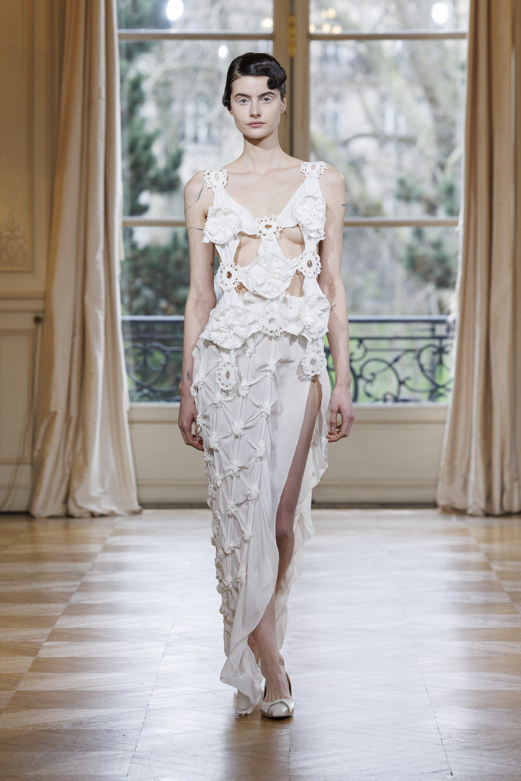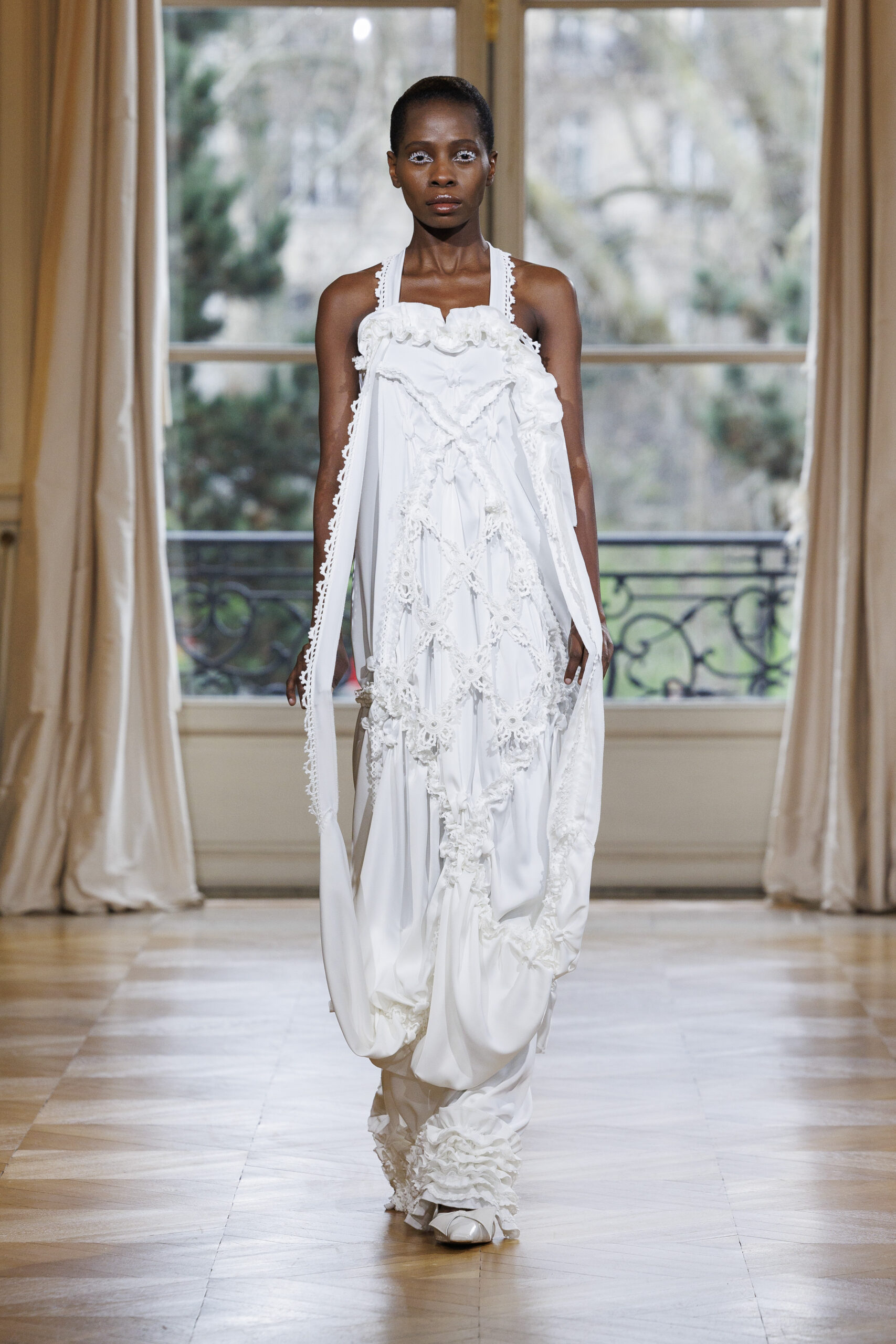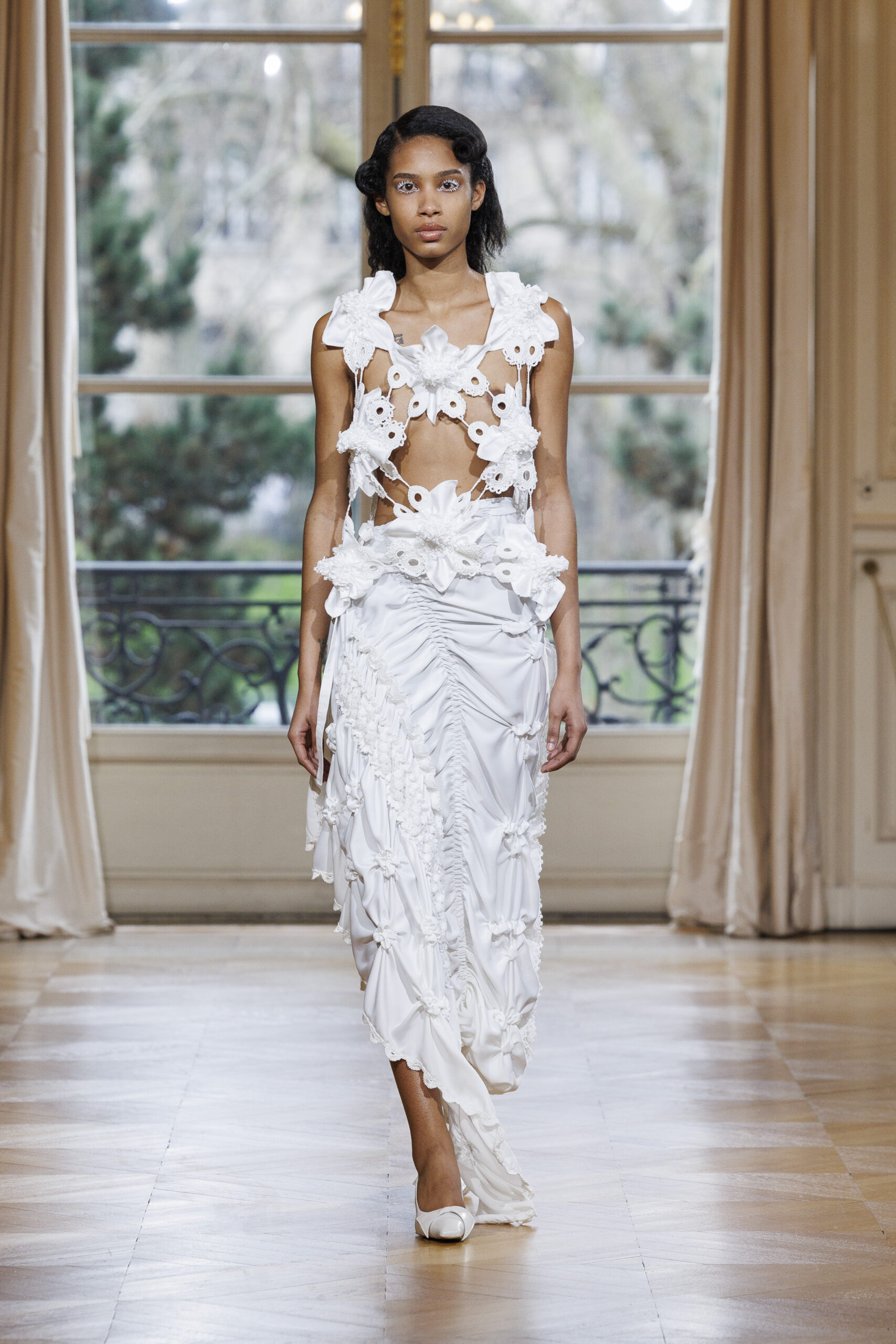 Dans le cadre majestueux de l’ambassade d’Irlande à Paris, le 1er mars 2024, Róisín Pierce a dévoilé sa collection automne-hiver « O lovely one, girl that fell from a star ». Cette nouvelle série de créations poursuit l’exploration de la designer irlandaise dans le domaine de l’artisanat haut de gamme, en offrant une ode à la beauté céleste et à l’amour divin.