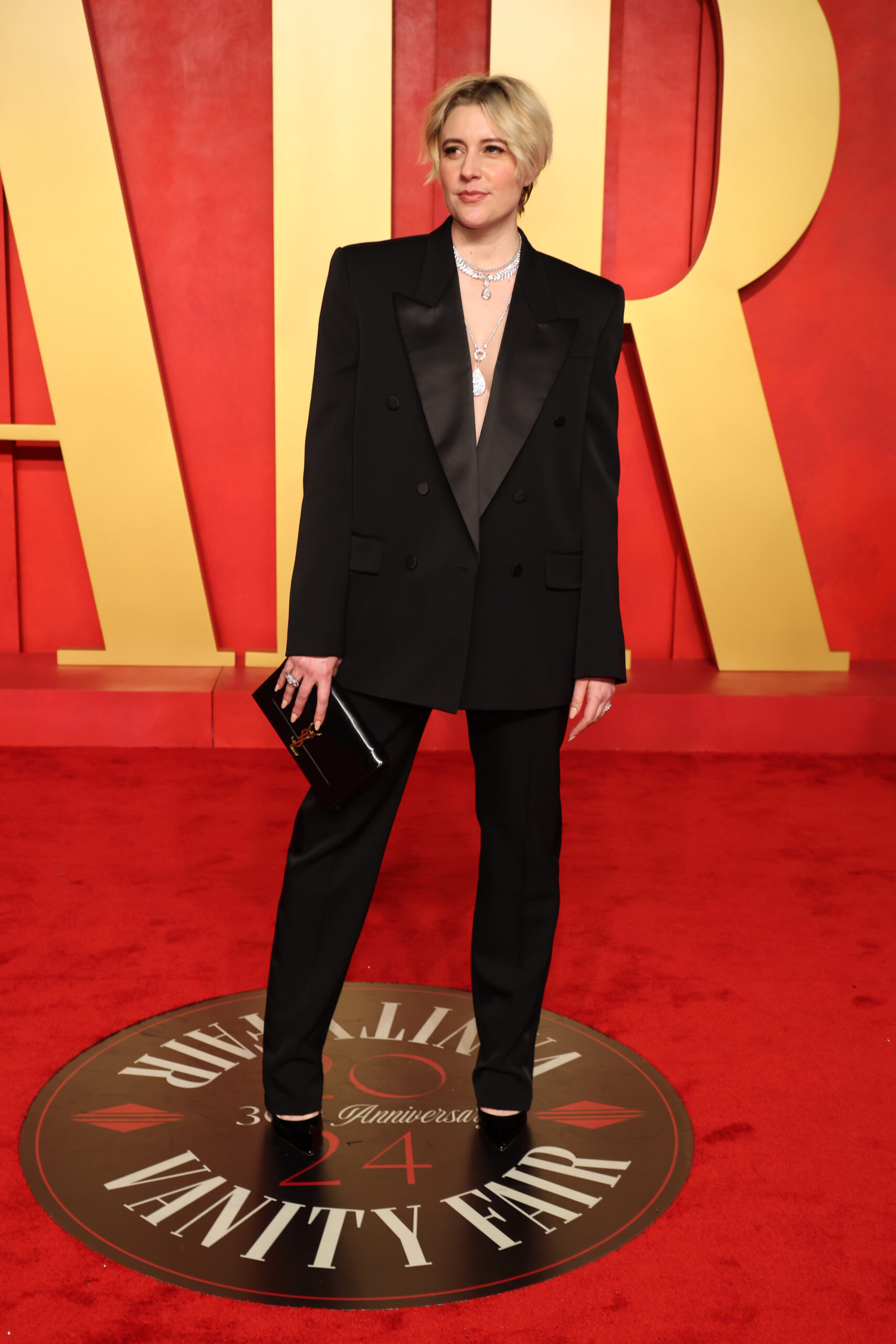 - BEVERLY HILLS, CALIFORNIA – MARCH 10: Greta Gerwig attends the 2024 Vanity Fair Oscar Party Hosted By Radhika Jones at Wallis Annenberg Center for the Performing Arts on March 10, 2024 in Beverly Hills, California. (Photo by Amy Sussman/Getty Images)