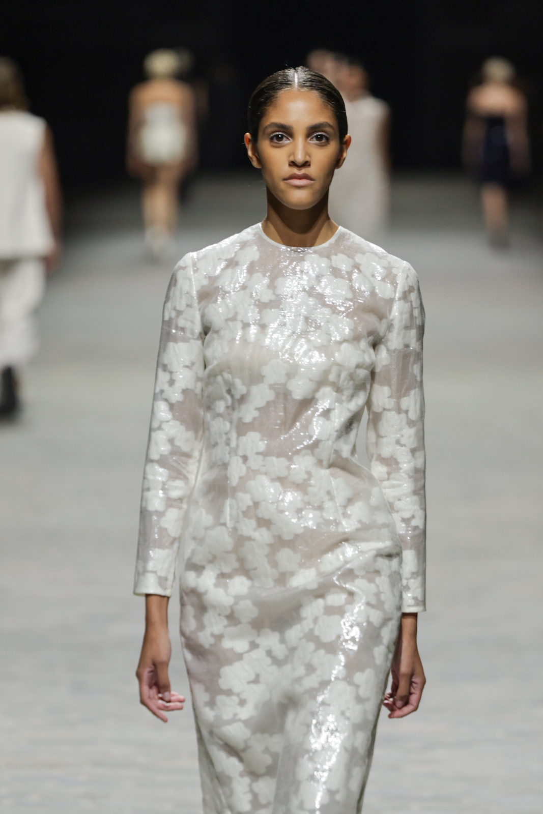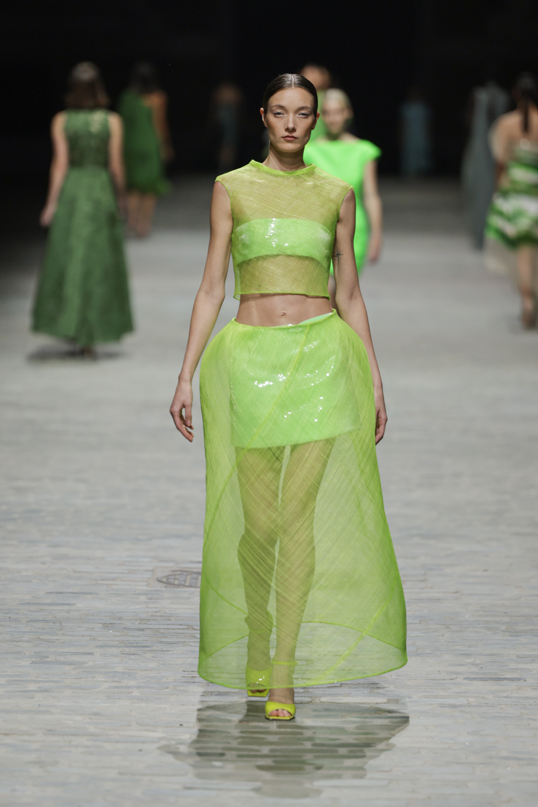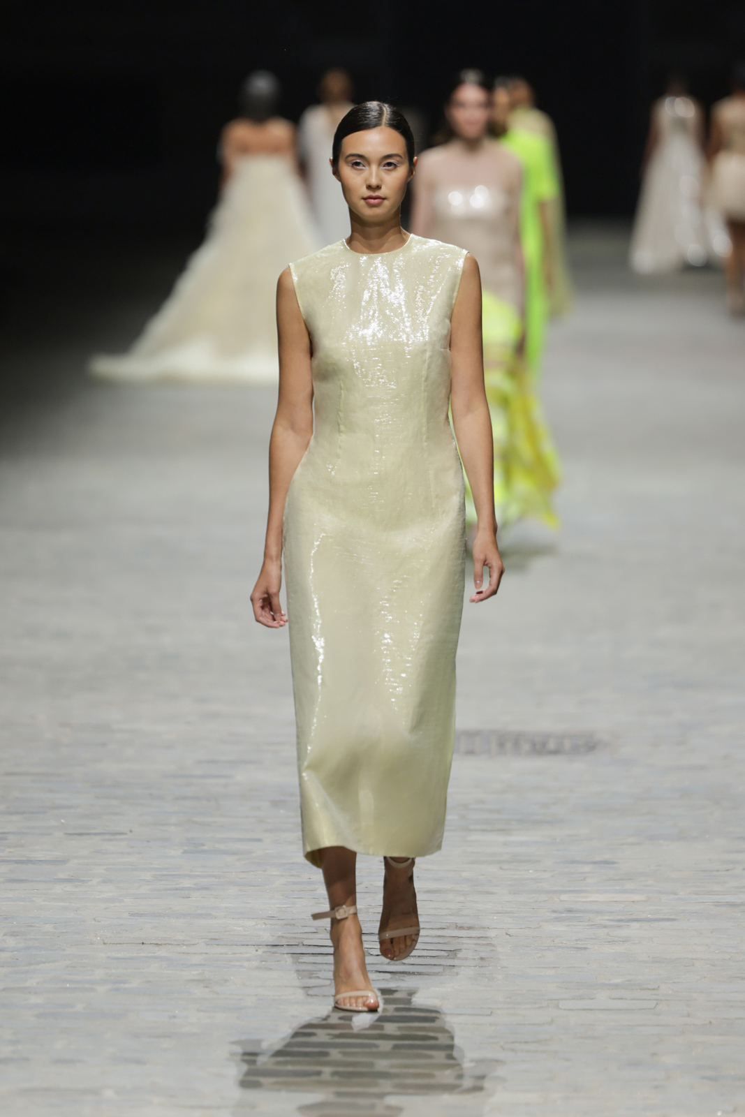 Cette collection célèbre la diversité des occasions, des cérémonies aux mariages, périodes privilégiées de l’élégance et de la convivialité. NATAN y révèle une approche novatrice, mêlant des techniques artisanales d’exception à des matières innovantes et écoresponsables. Les pièces phares, telles que les combinaisons asymétriques en crêpe de soie, les robes courtes en jacquard matelassé, ou encore les ensembles en sisal moulé, démontrent un savant équilibre entre tradition et modernité.