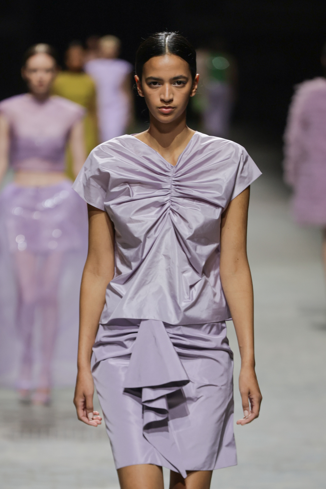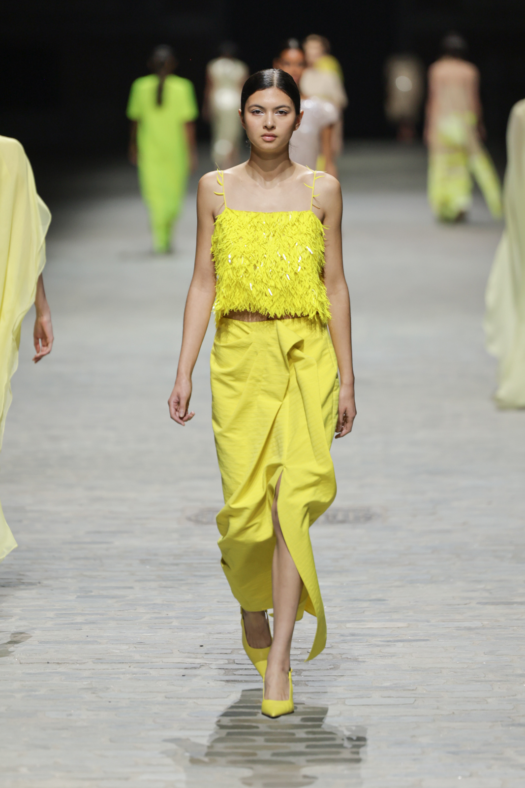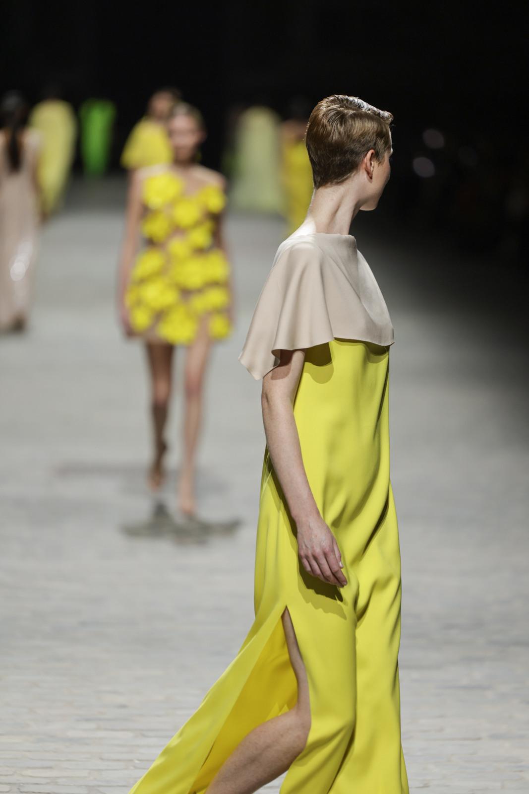 Cette collection célèbre la diversité des occasions, des cérémonies aux mariages, périodes privilégiées de l’élégance et de la convivialité. NATAN y révèle une approche novatrice, mêlant des techniques artisanales d’exception à des matières innovantes et écoresponsables. Les pièces phares, telles que les combinaisons asymétriques en crêpe de soie, les robes courtes en jacquard matelassé, ou encore les ensembles en sisal moulé, démontrent un savant équilibre entre tradition et modernité.