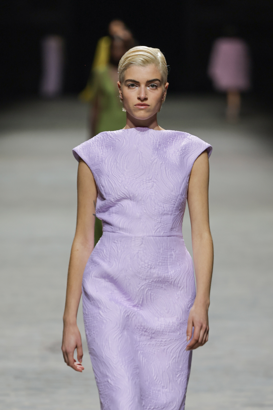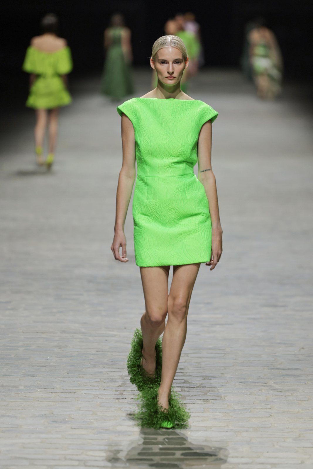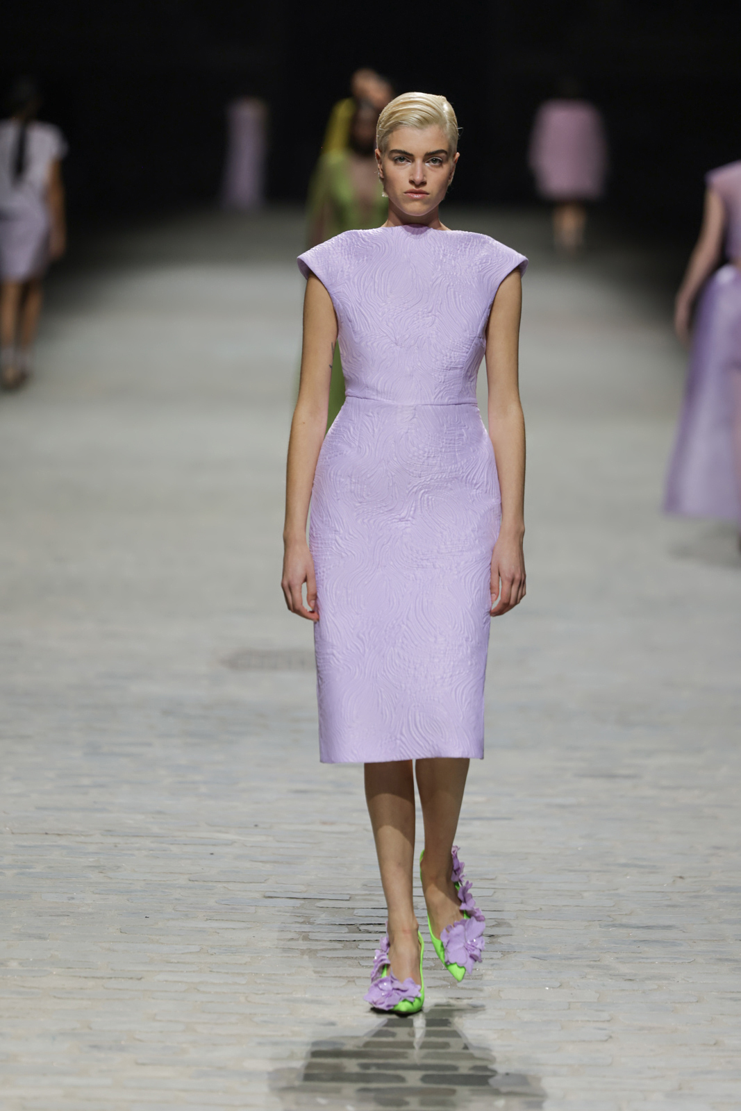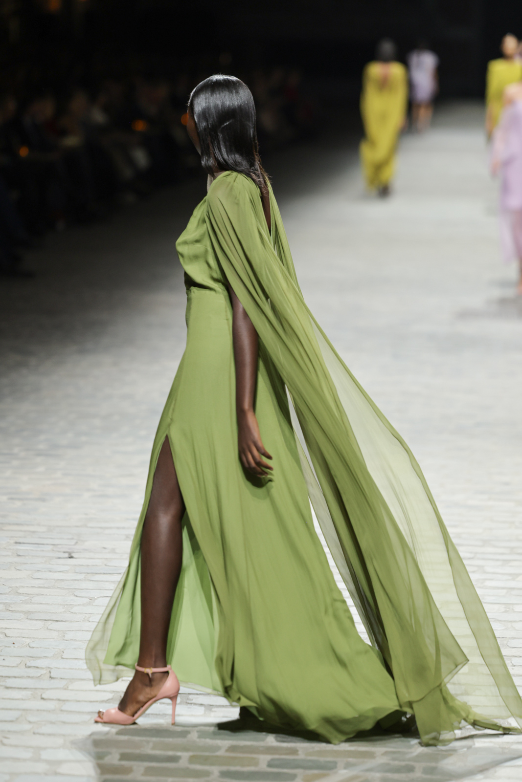 L’édition Couture Printemps/Été 2024 se distingue par une palette de couleurs audacieuses, des tons acidulés aux bordeaux profonds, en passant par des nuances de rose vif et d’orange éclatant, le tout encadré par des verts mousse et tilleul, évoquant un jardin raffiné. Édouard Vermeulen confirme sa maîtrise de l’épure et de la sophistication en proposant des silhouettes aux lignes essentielles, mariant minimalisme et ornements précieux.
