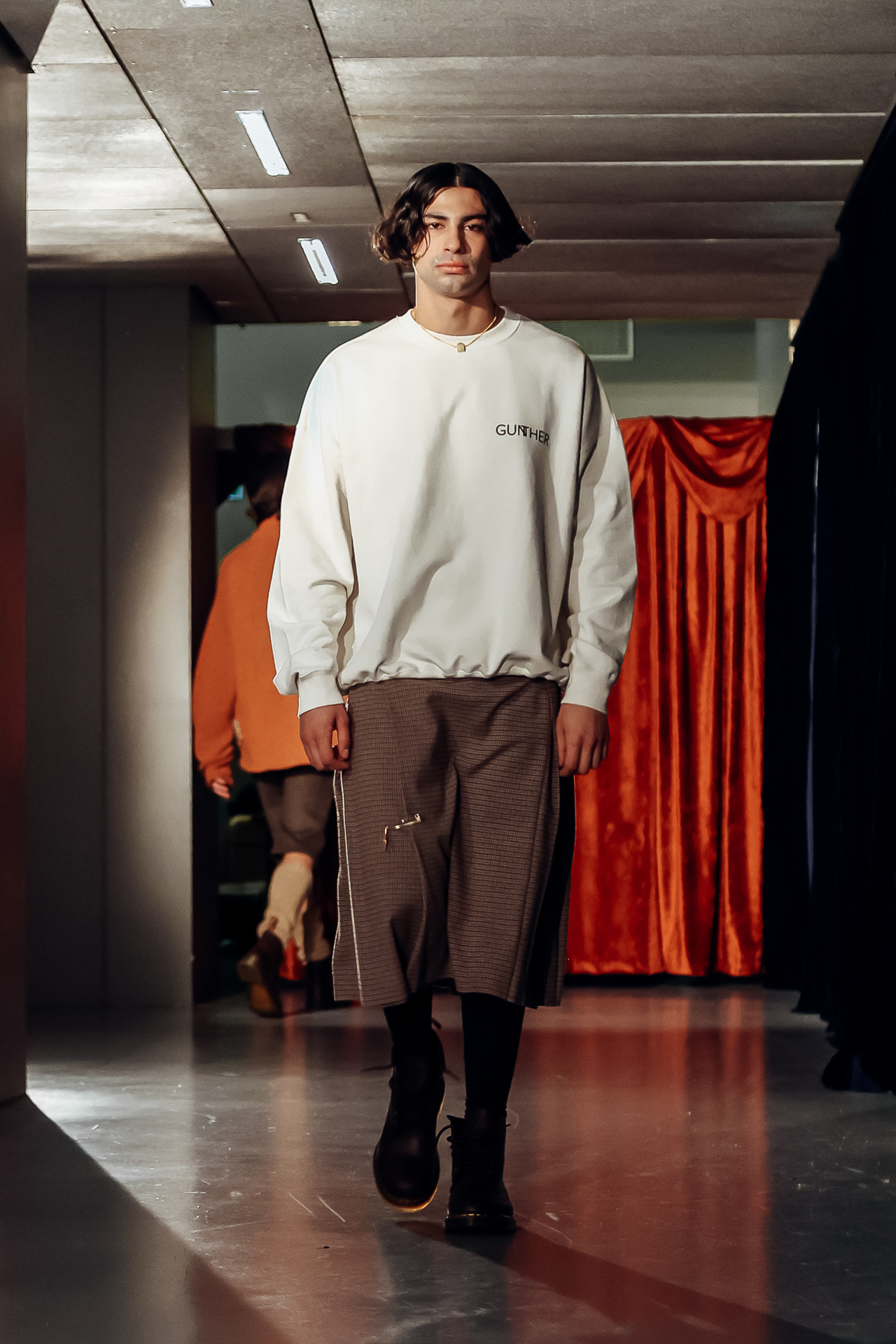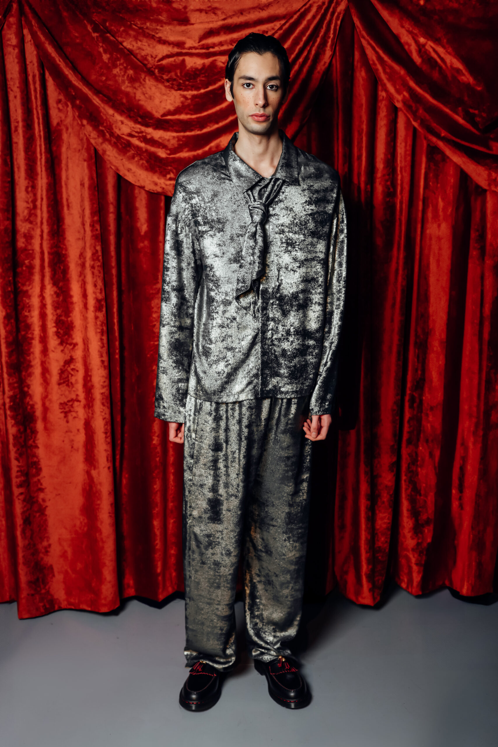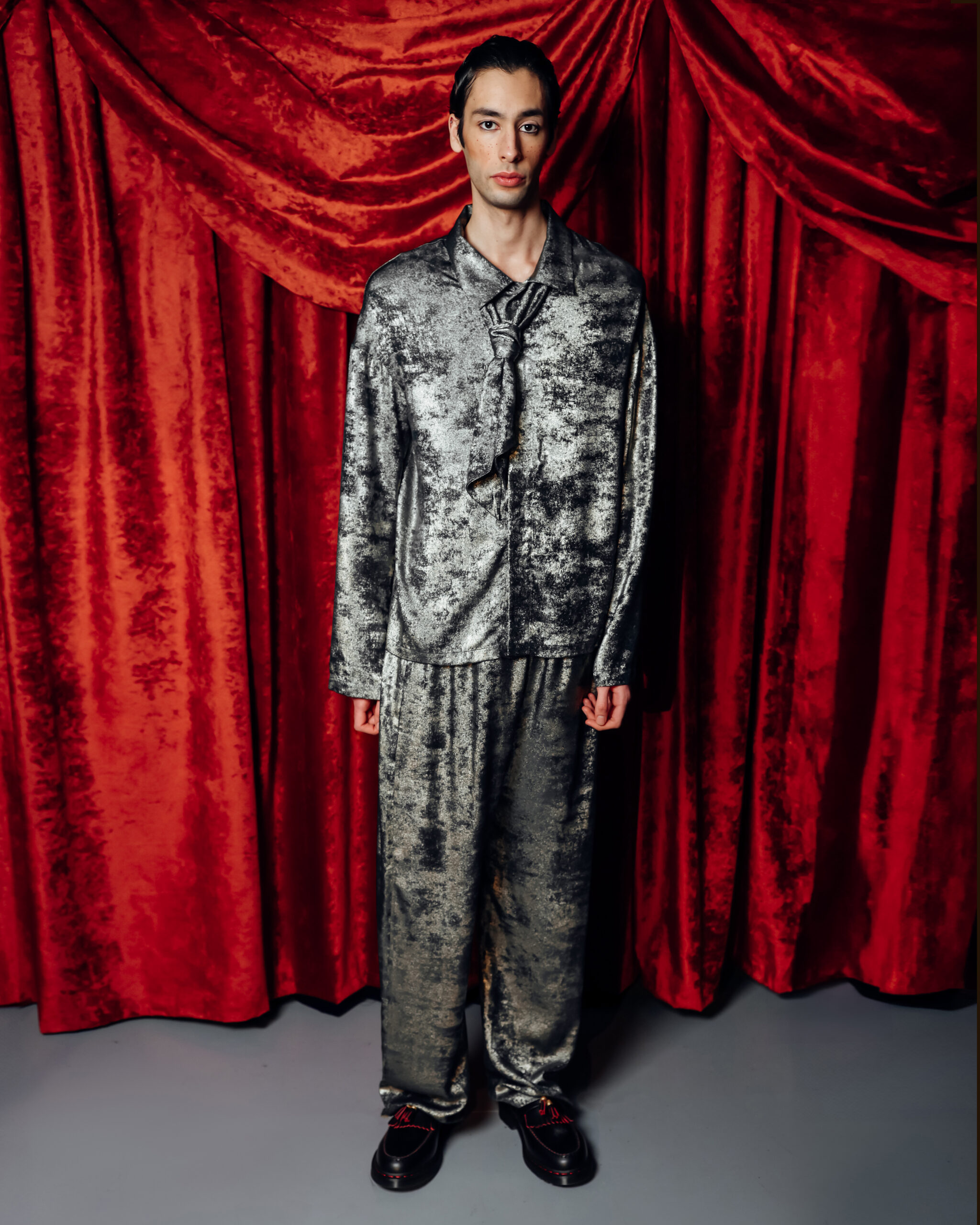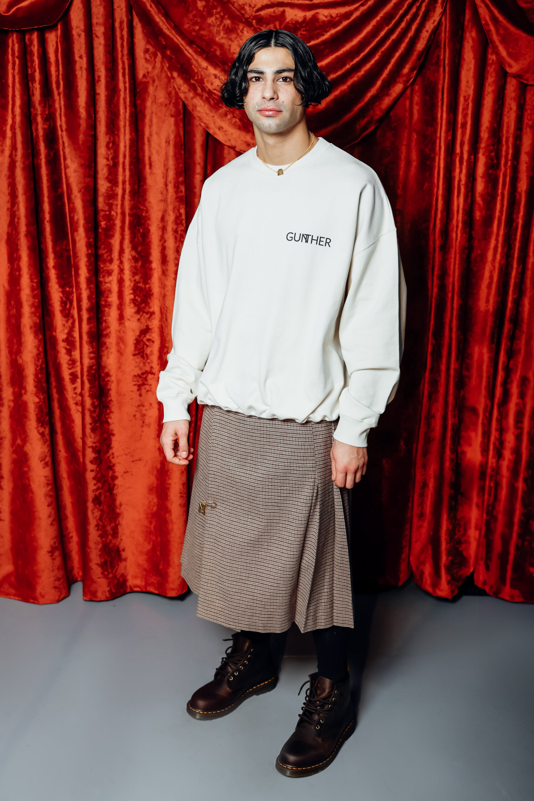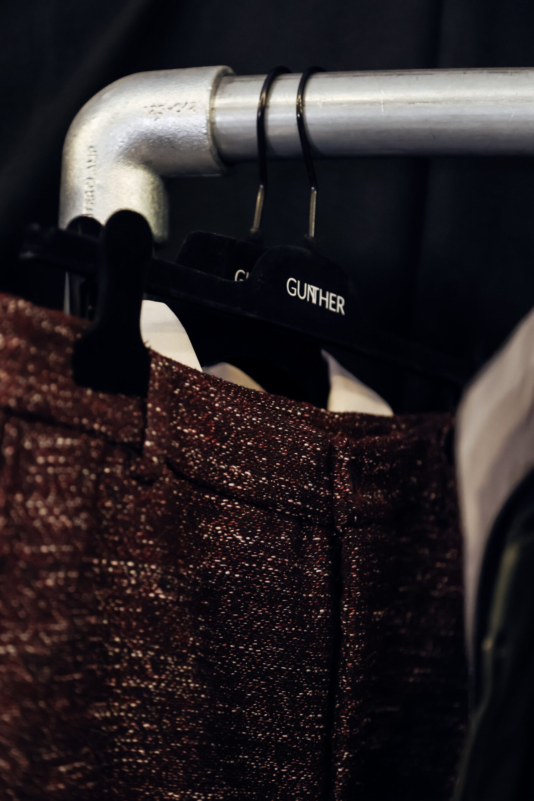 Comme toujours avec GUNTHER, les matières jouent un rôle prépondérant. L’utilisation de la laine, du cachemire, du tweed, du velours, et de la soie évoque le luxe discret des soirées clandestines, tandis que les jeux de contraste entre motifs, textures, et couleurs ajoutent une dimension sophistiquée et dynamique à la collection.