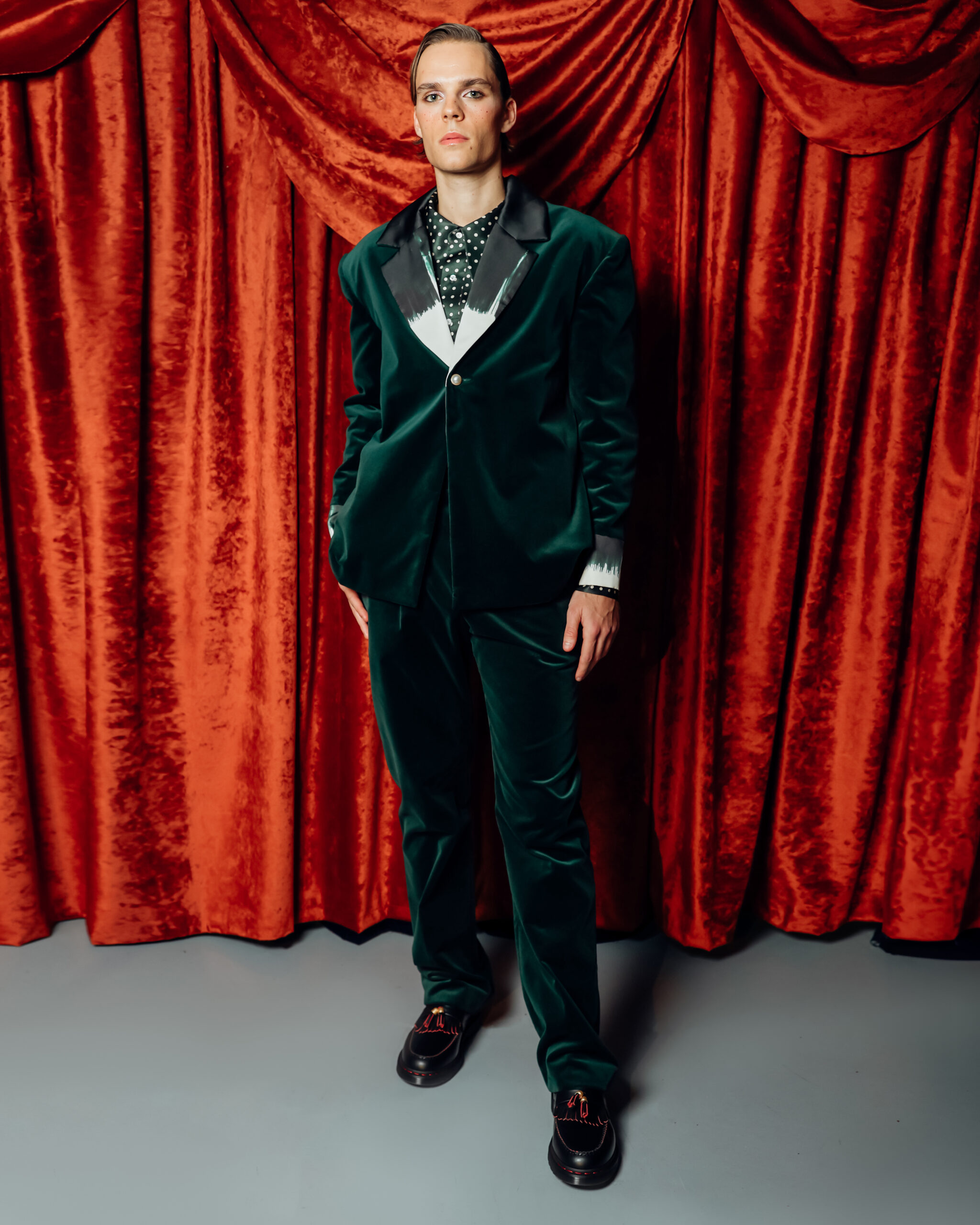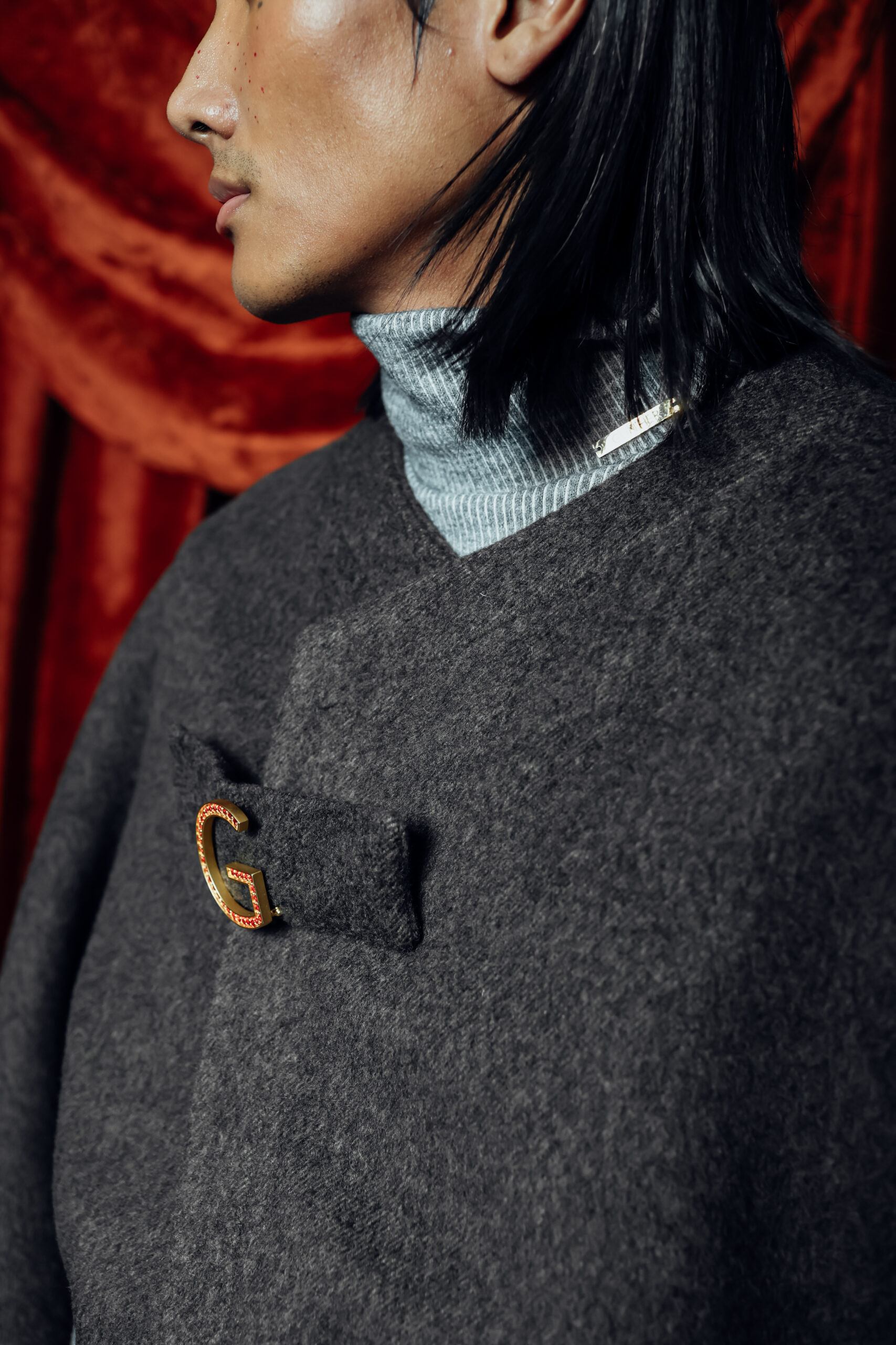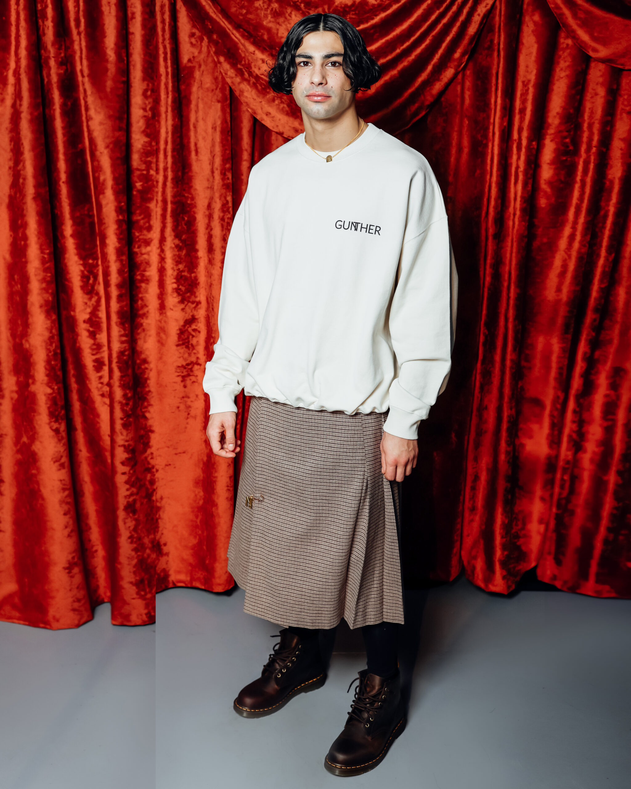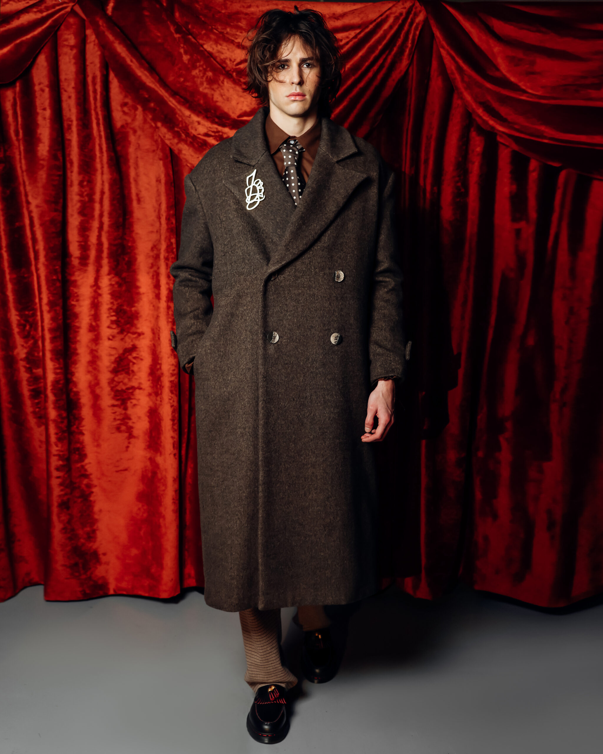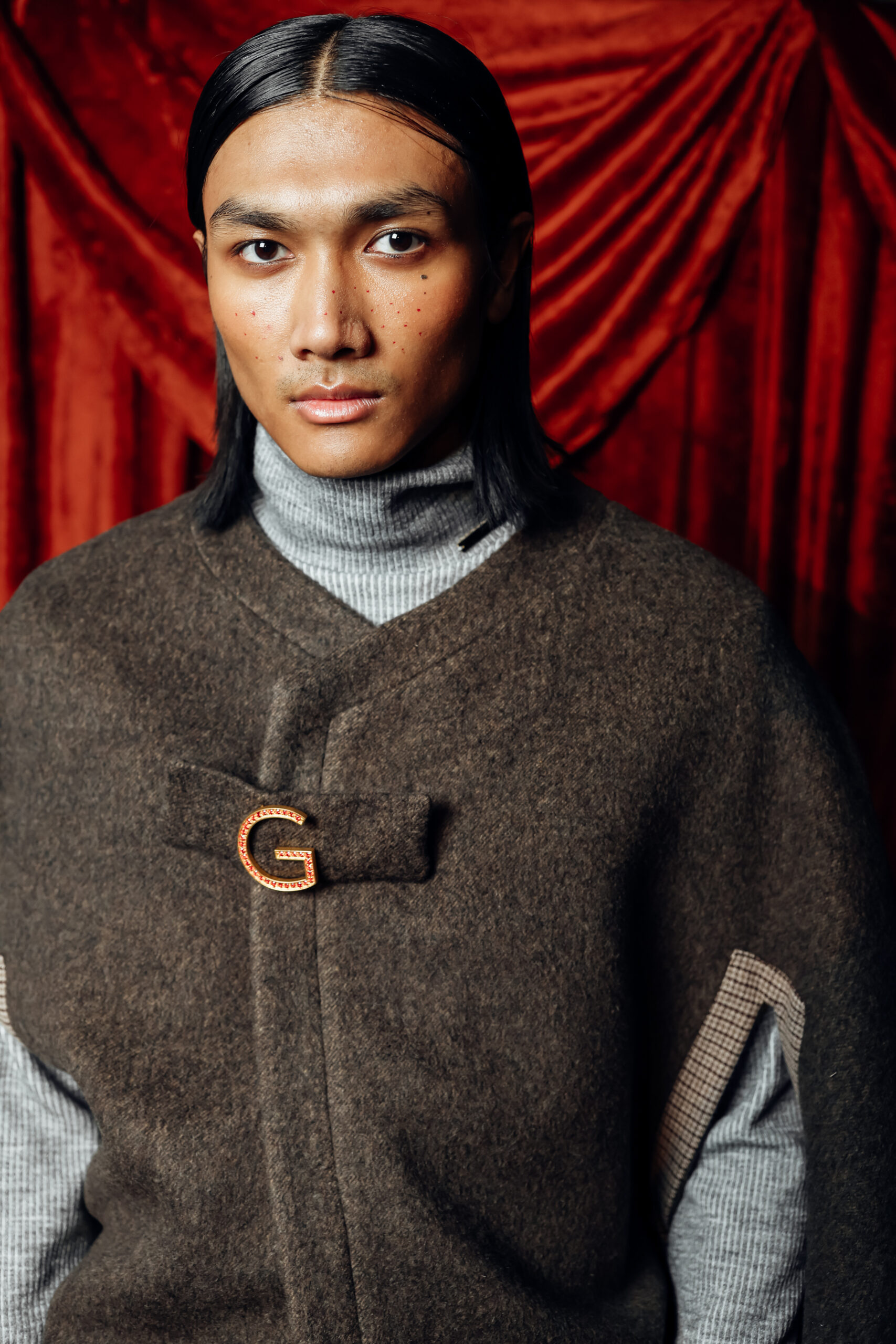 Comme toujours avec GUNTHER, les matières jouent un rôle prépondérant. L’utilisation de la laine, du cachemire, du tweed, du velours, et de la soie évoque le luxe discret des soirées clandestines, tandis que les jeux de contraste entre motifs, textures, et couleurs ajoutent une dimension sophistiquée et dynamique à la collection.