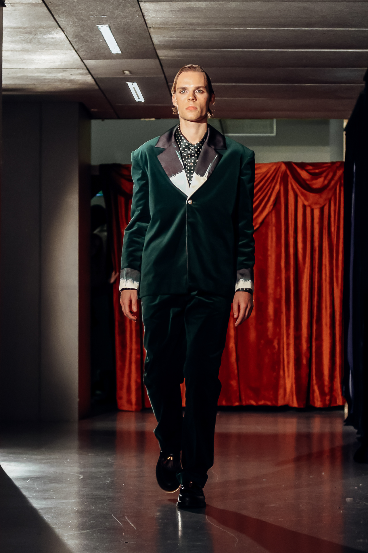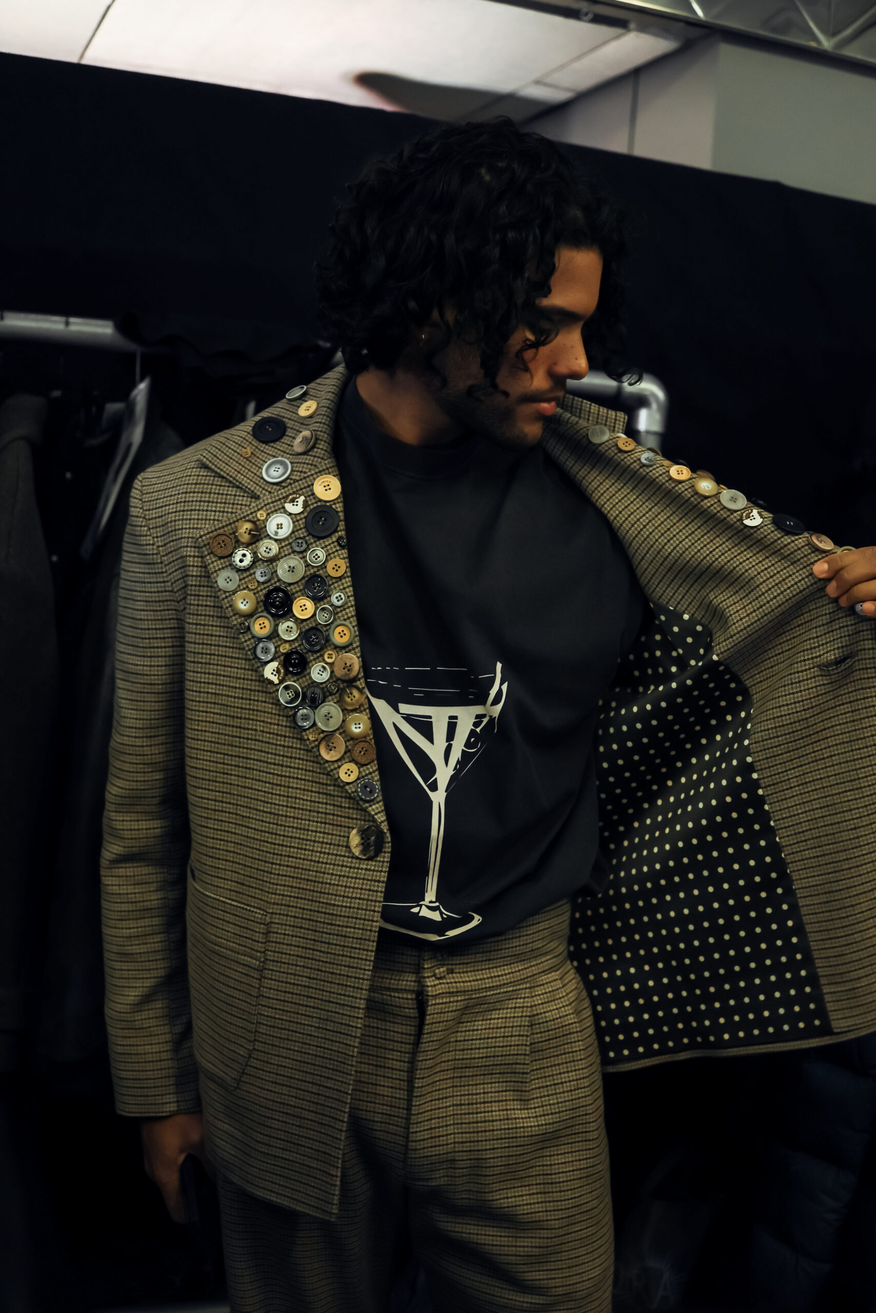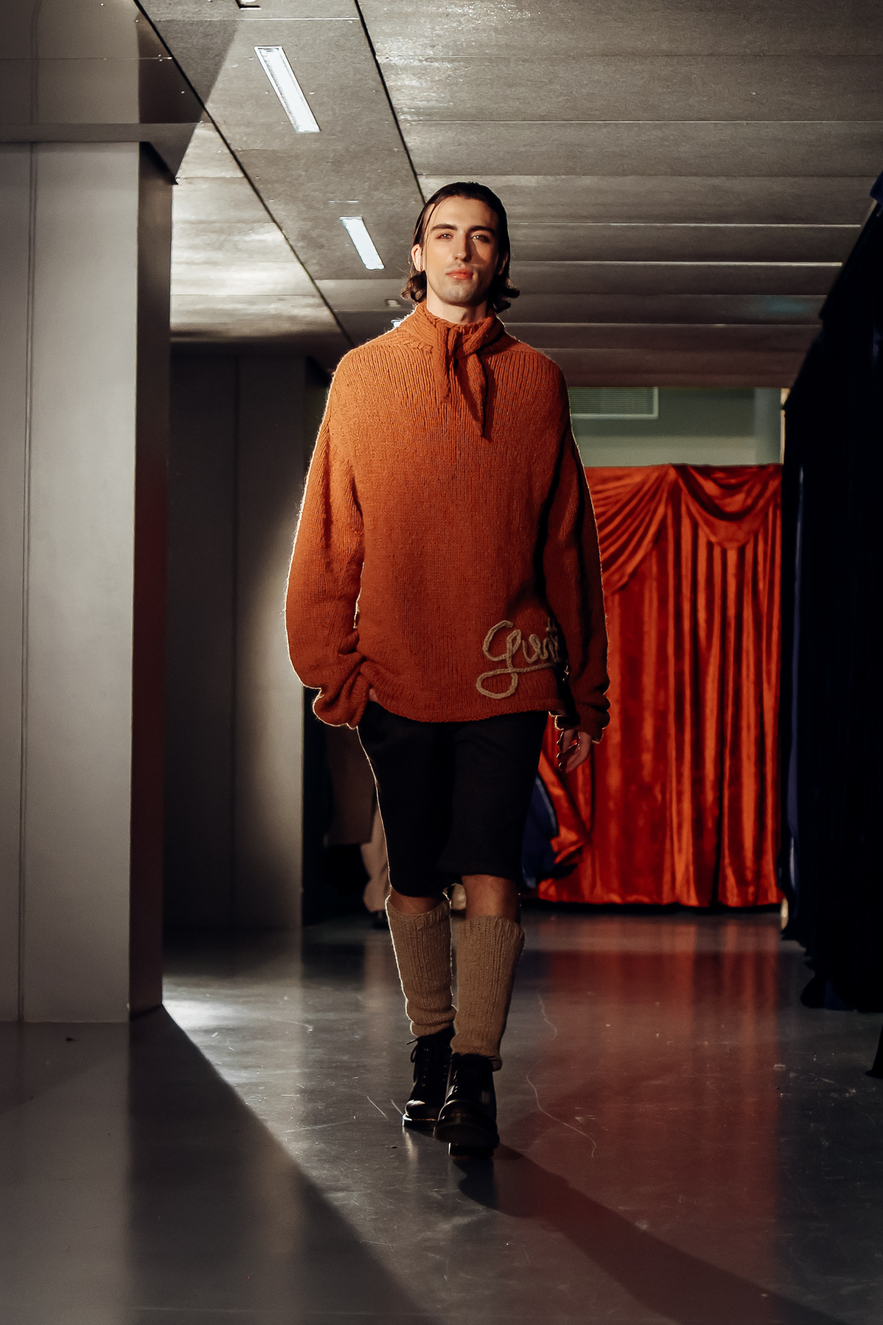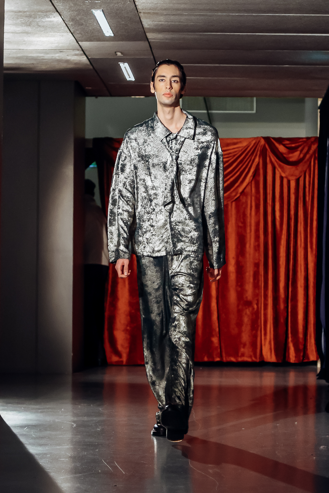 Comme toujours avec GUNTHER, les matières jouent un rôle prépondérant. L’utilisation de la laine, du cachemire, du tweed, du velours, et de la soie évoque le luxe discret des soirées clandestines, tandis que les jeux de contraste entre motifs, textures, et couleurs ajoutent une dimension sophistiquée et dynamique à la collection.