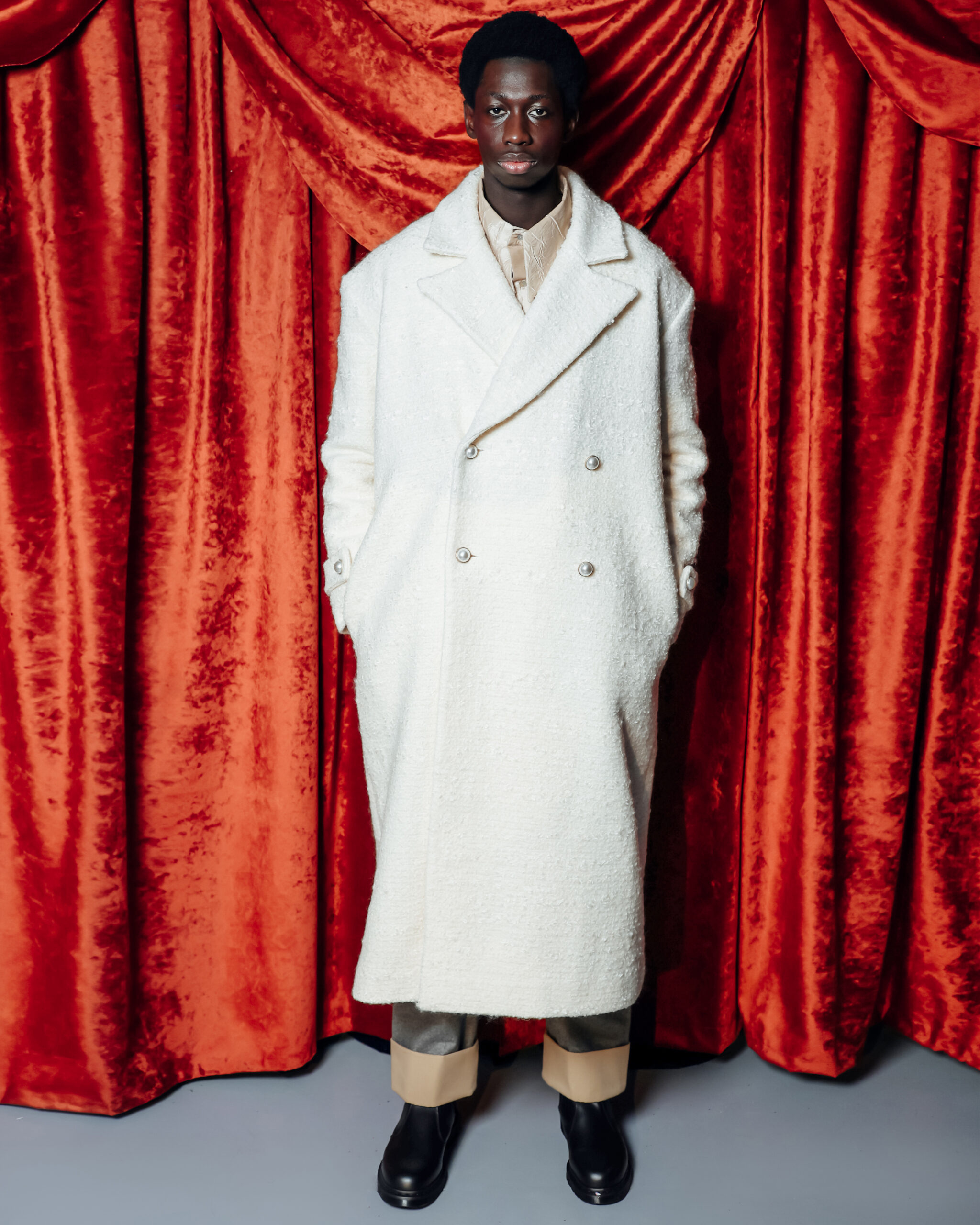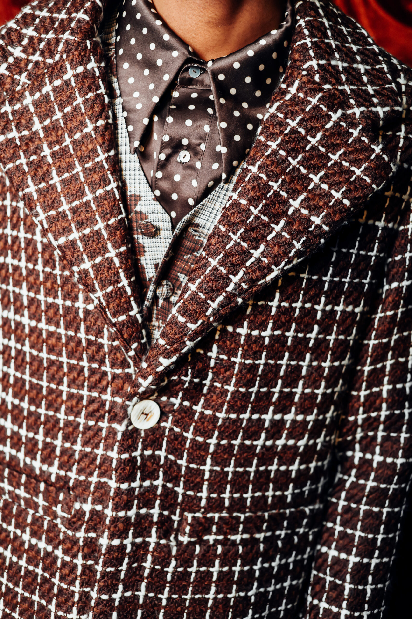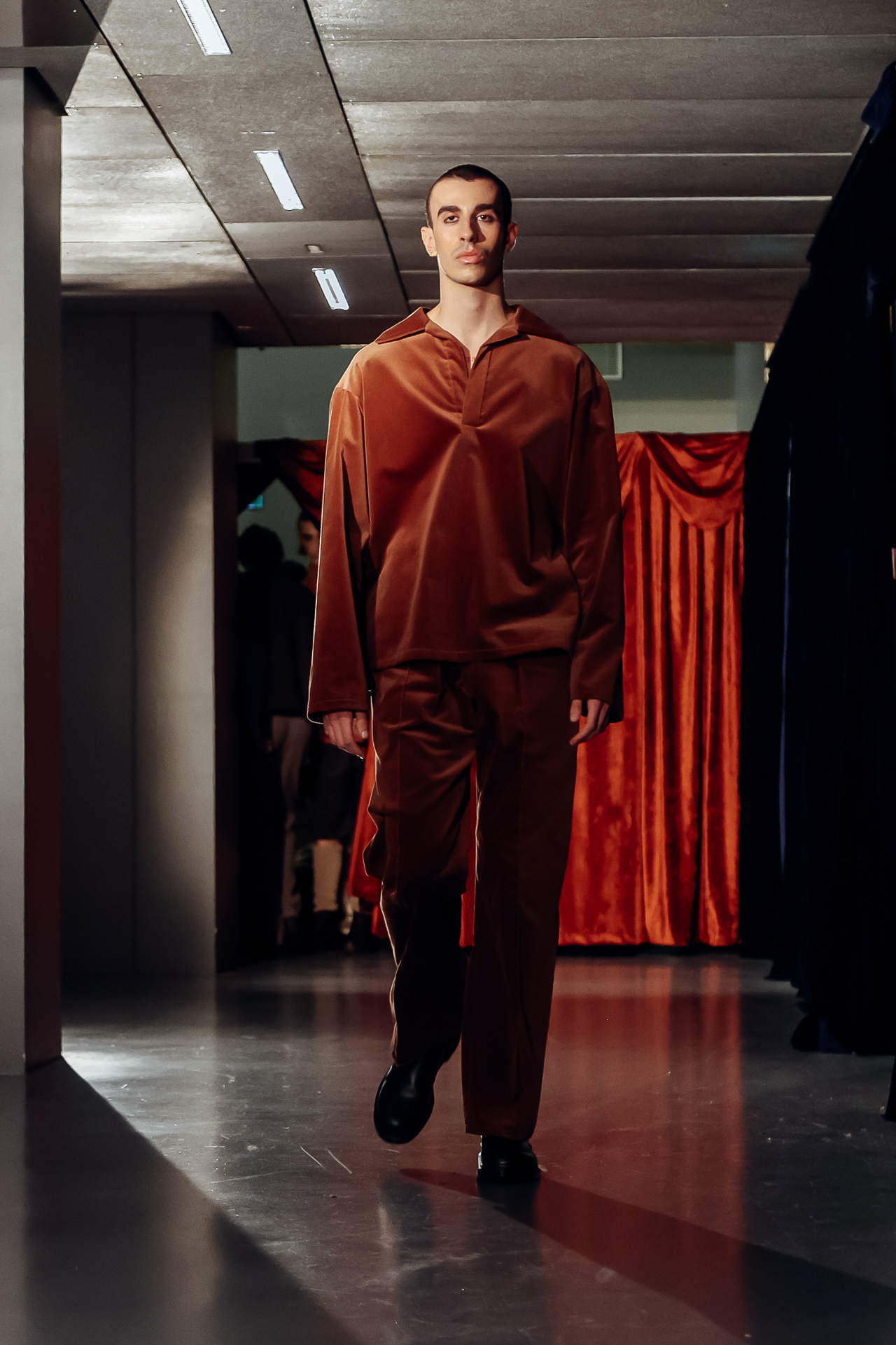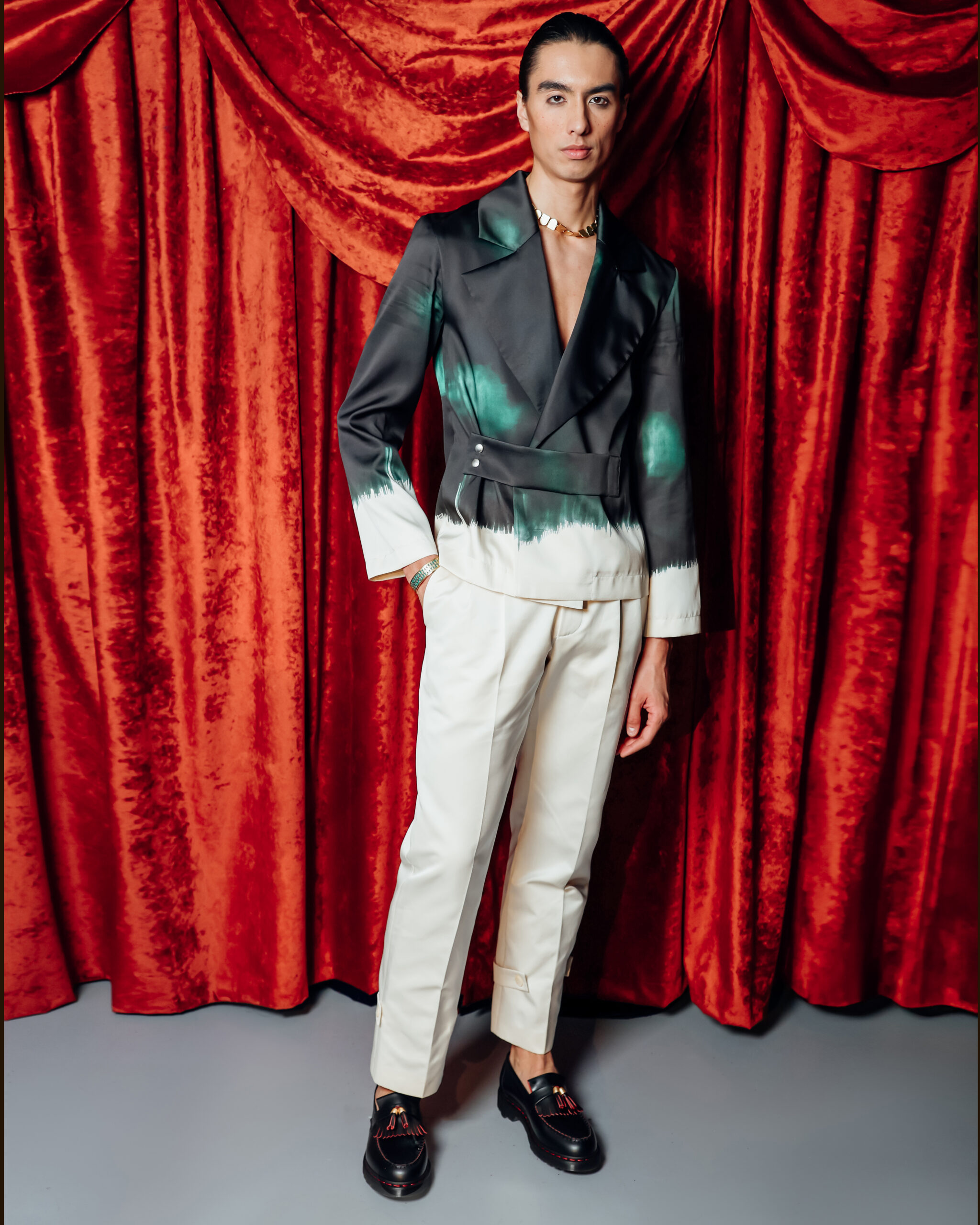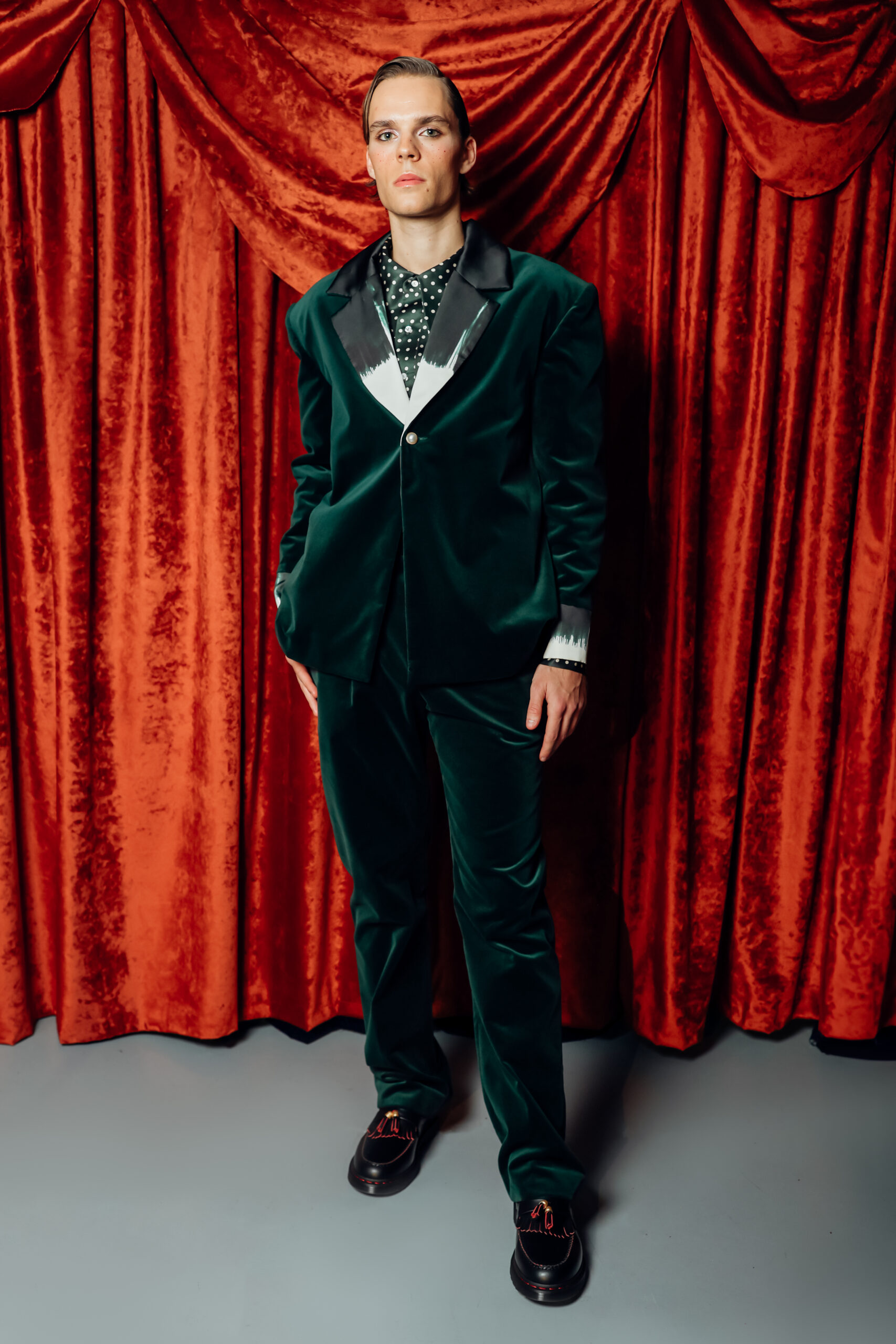 Comme toujours avec GUNTHER, les matières jouent un rôle prépondérant. L’utilisation de la laine, du cachemire, du tweed, du velours, et de la soie évoque le luxe discret des soirées clandestines, tandis que les jeux de contraste entre motifs, textures, et couleurs ajoutent une dimension sophistiquée et dynamique à la collection.