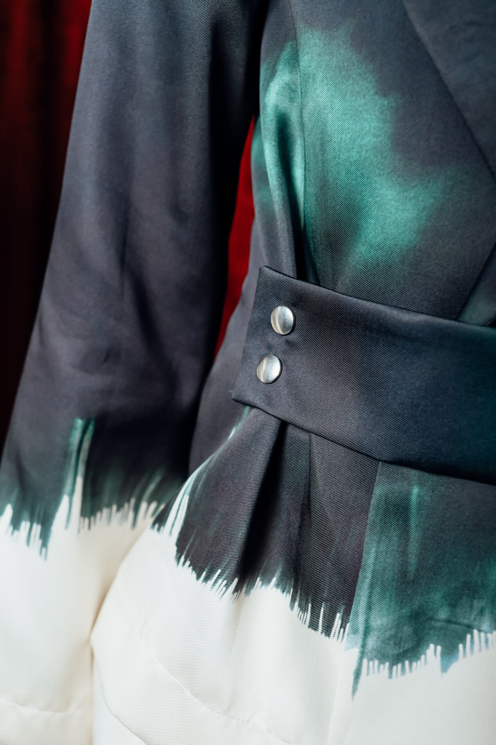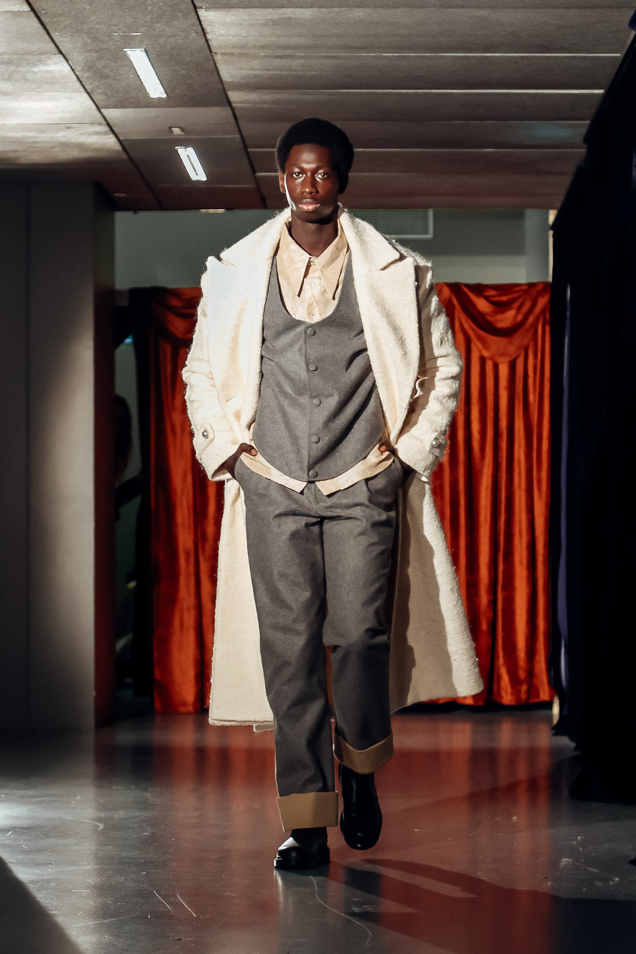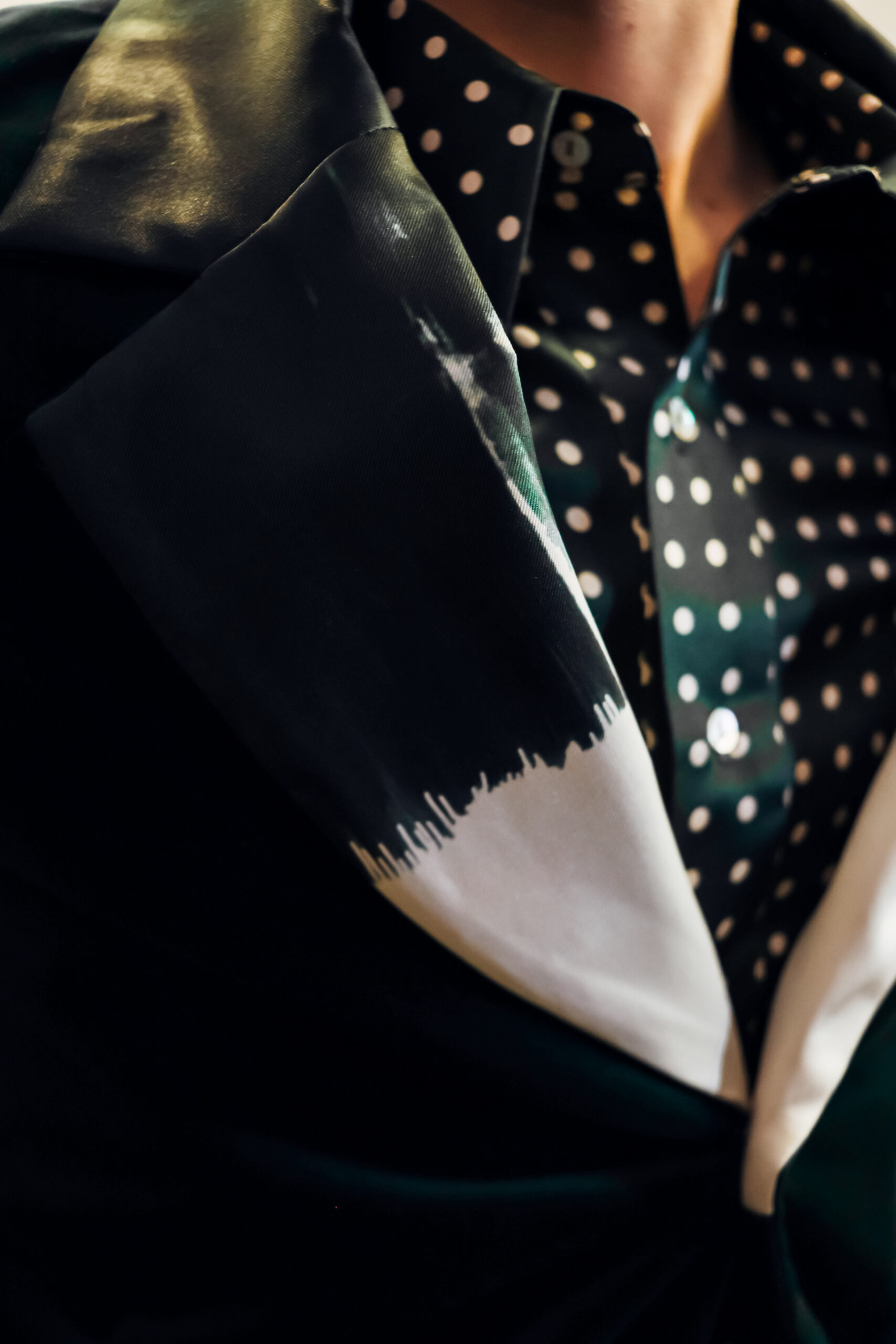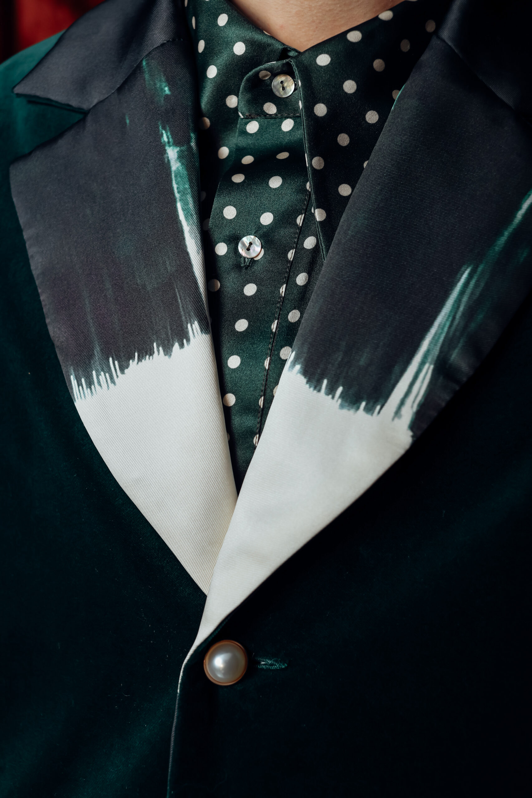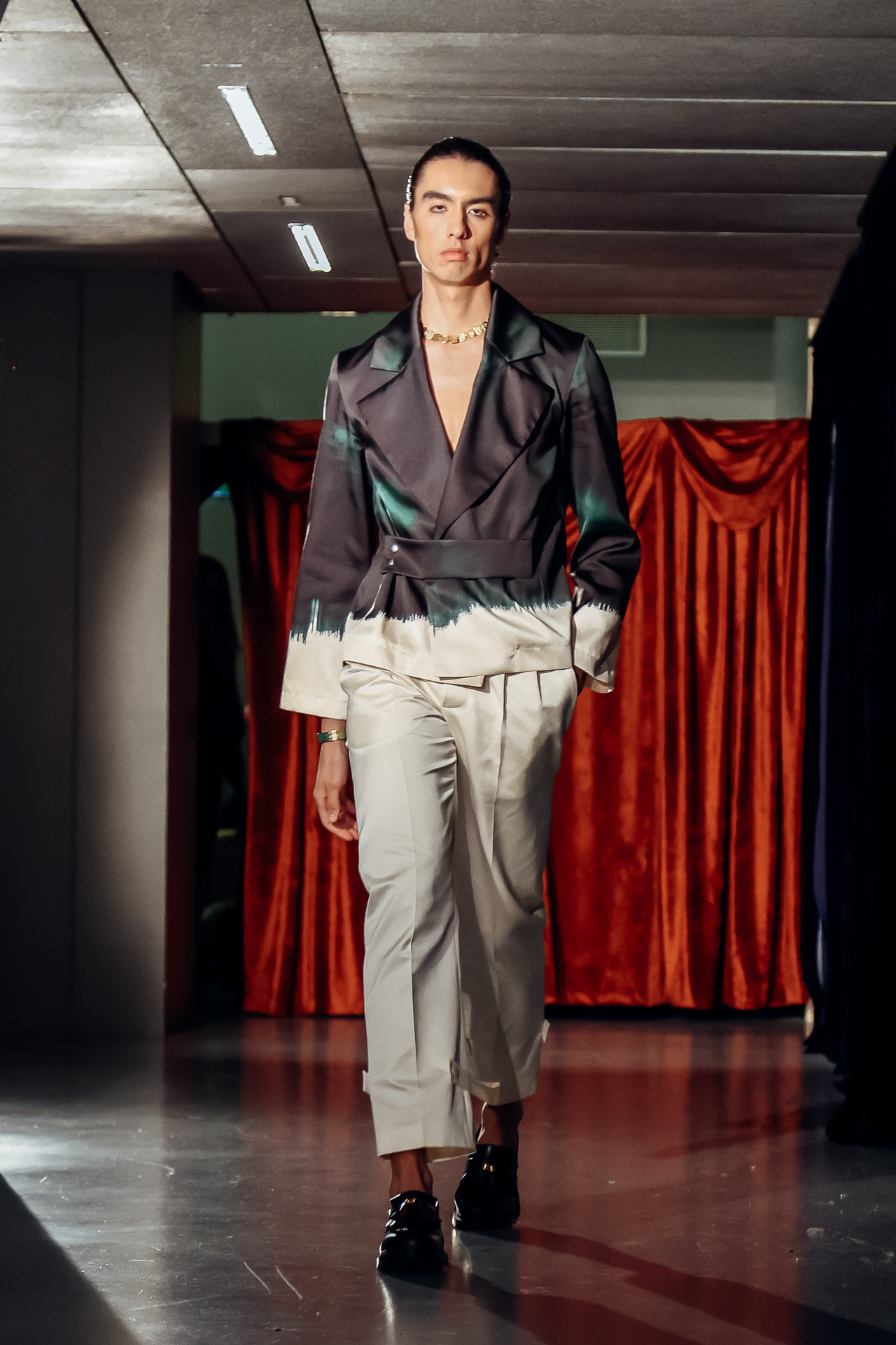 Comme toujours avec GUNTHER, les matières jouent un rôle prépondérant. L’utilisation de la laine, du cachemire, du tweed, du velours, et de la soie évoque le luxe discret des soirées clandestines, tandis que les jeux de contraste entre motifs, textures, et couleurs ajoutent une dimension sophistiquée et dynamique à la collection.