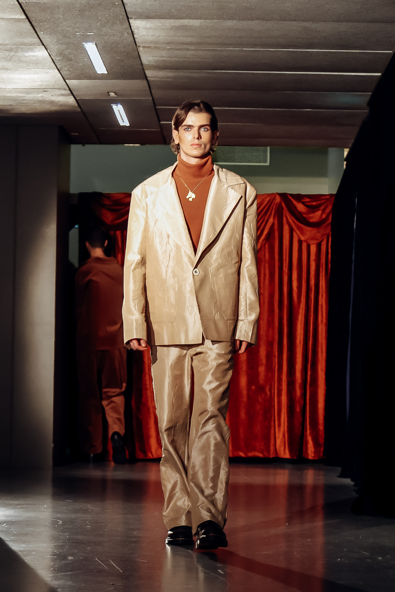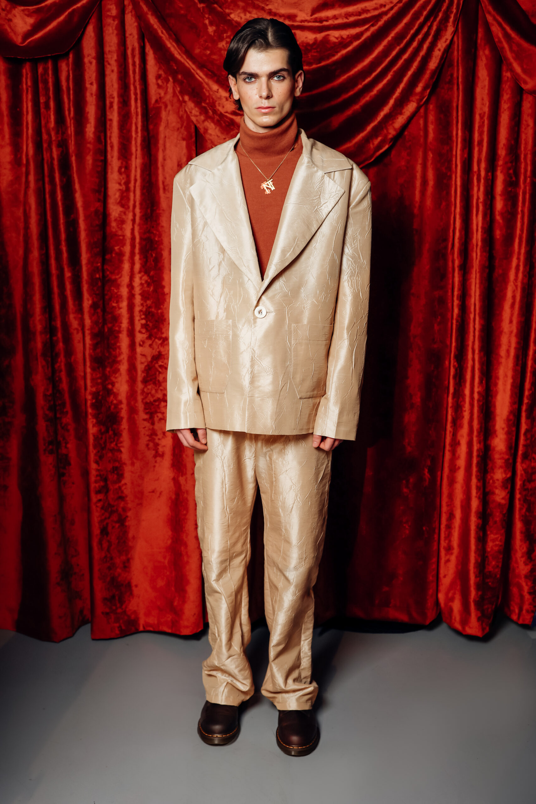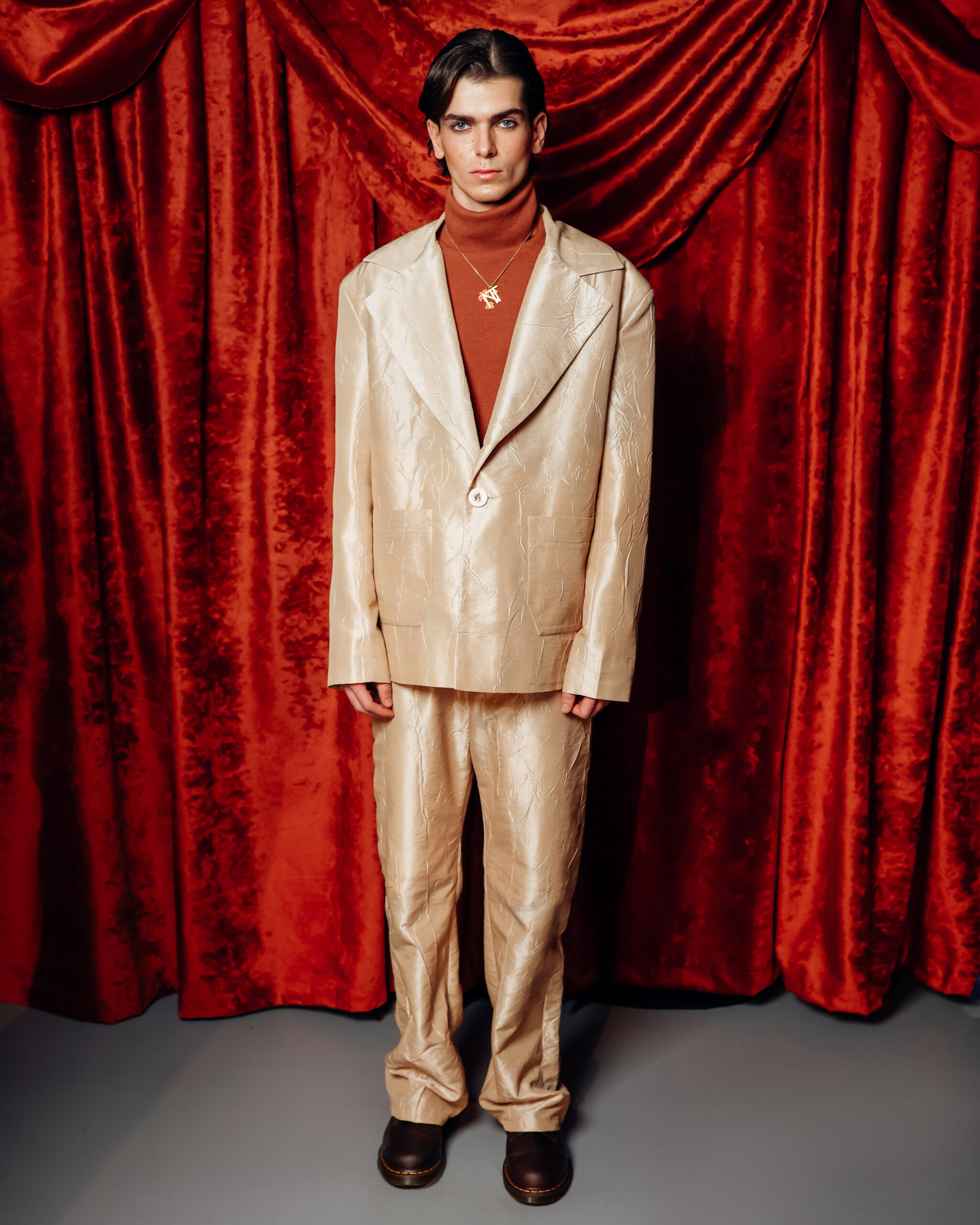 Inspirée par l’effervescence de l’époque du jazz et les atmosphères envoûtantes des speakeasies, la collection AH24 de GUNTHER se distingue par une fusion de sophistication intemporelle et d’esprit rebelle. Elle incarne à merveille l’élégance décontractée qui caractérise cette période emblématique. Les pièces de la collection, des costumes aux longs manteaux croisés en passant par des chemises taillées avec une précision exquise, reflètent l’élégance des dandys de l’époque. Les vestes et les pantalons, avec leurs silhouettes fluides, évoquent les danseurs de lindy-hop, vibrant au son du jazz.