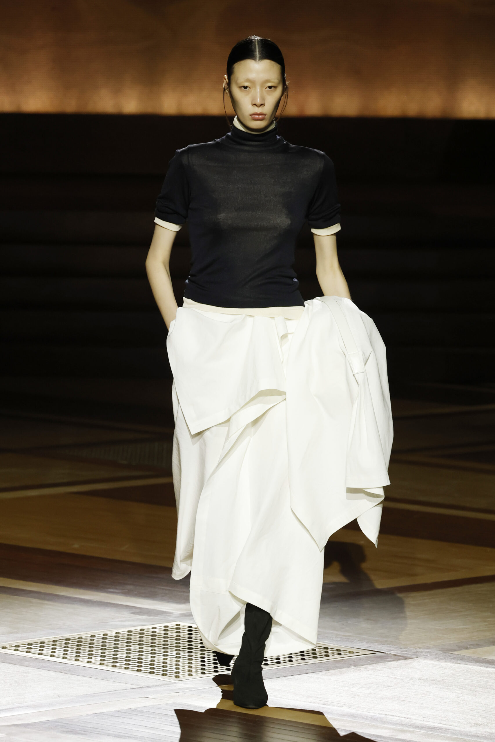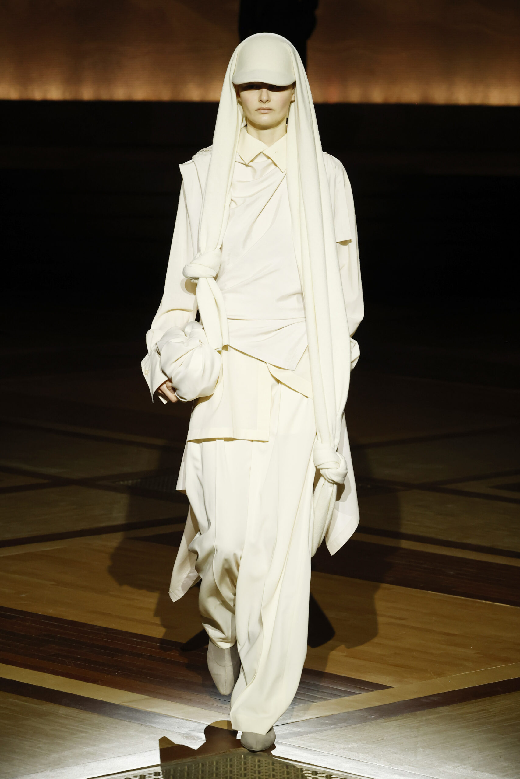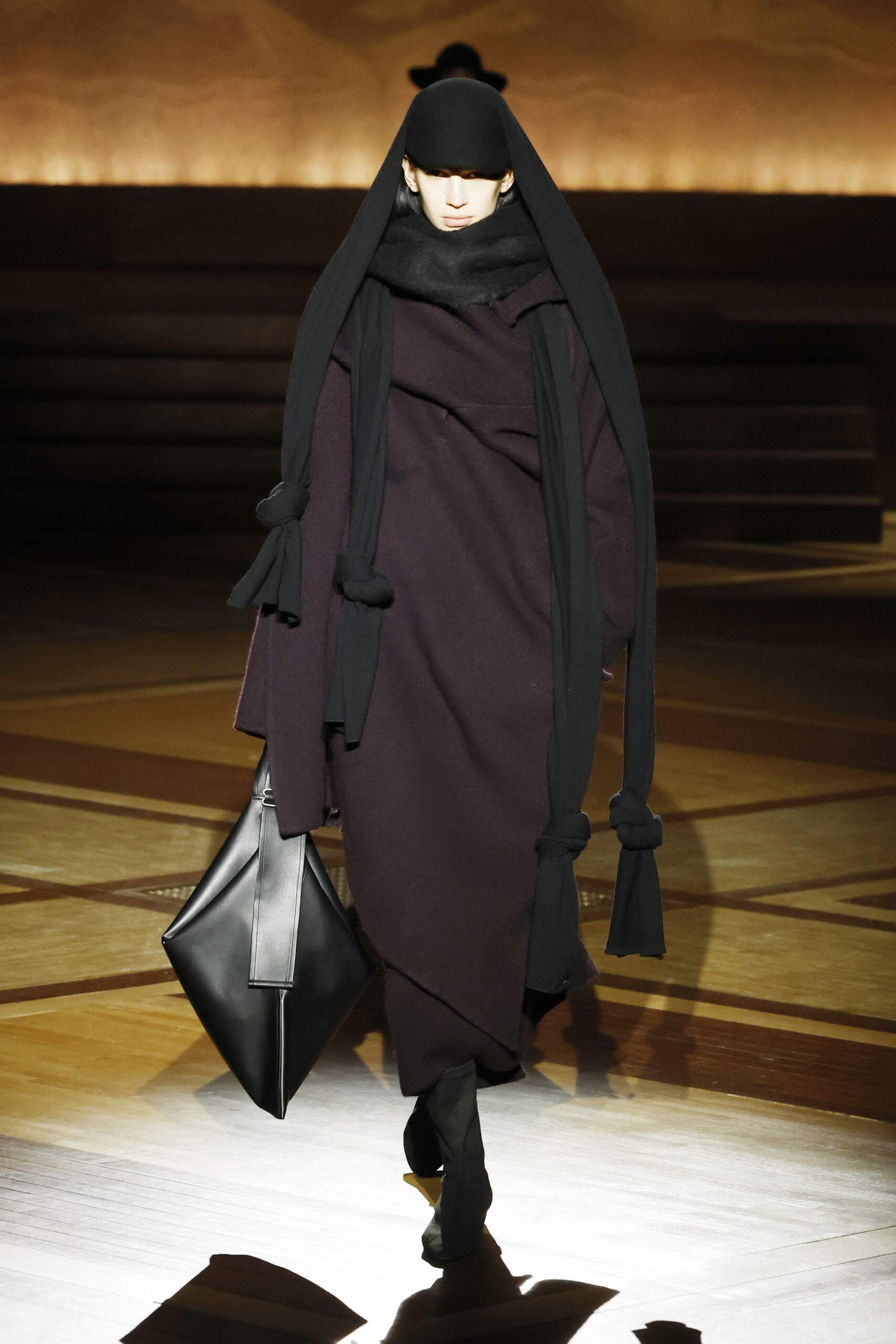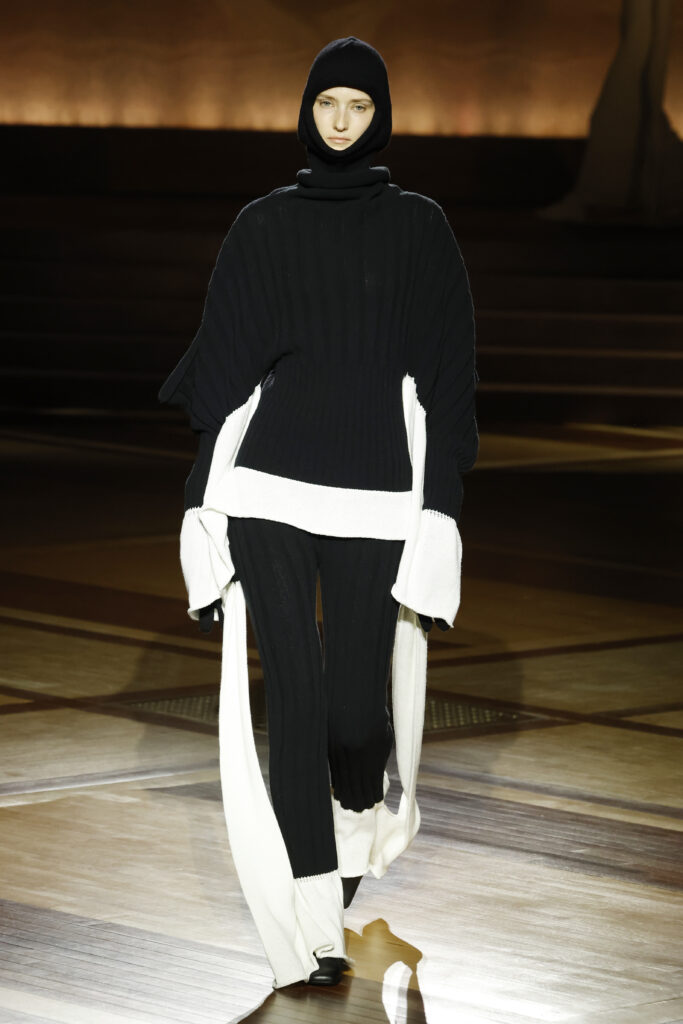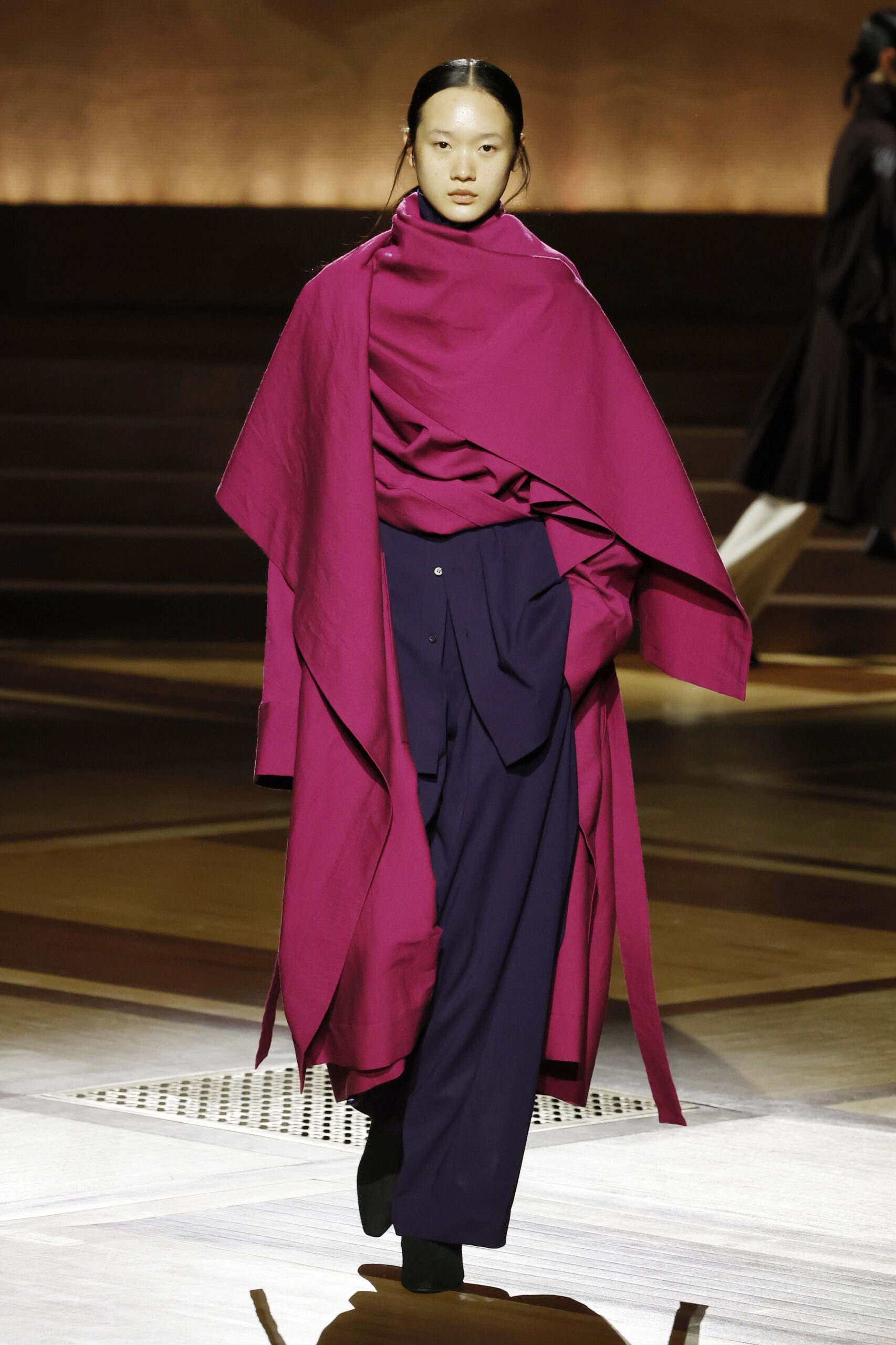 Présentée le 1er mars 2024 au musée de l’histoire de l’immigration du Palais de la Porte Dorée à Paris, la collection ISSEY MIYAKE Automne Hiver 2024/25, « What Has Always Been », explore l’origine de revêtir le corps humain avec une pièce de tissu. Cette collection s’inspire de ce geste intrinsèque, antérieur à la fabrication intentionnelle de vêtements, qui conduit à la découverte du drapé, de la superposition, du pliage et de la torsion, des formes asymétriques, ainsi que du « ma » (l’espace non rempli) entre le corps et le vêtement.