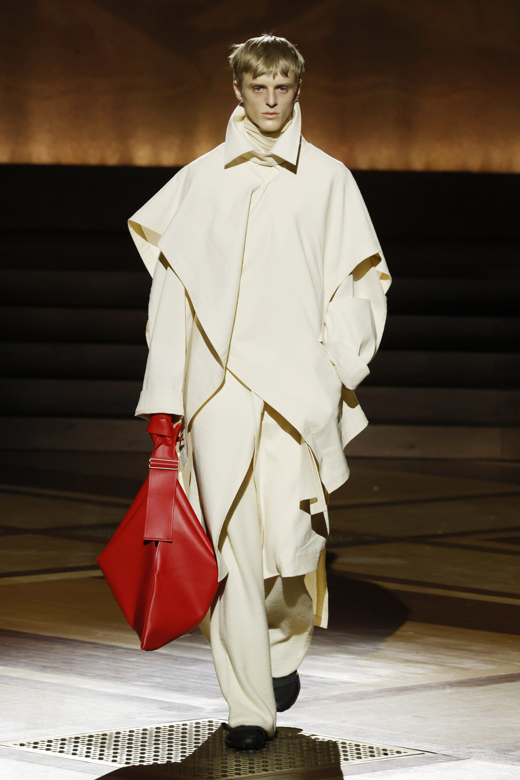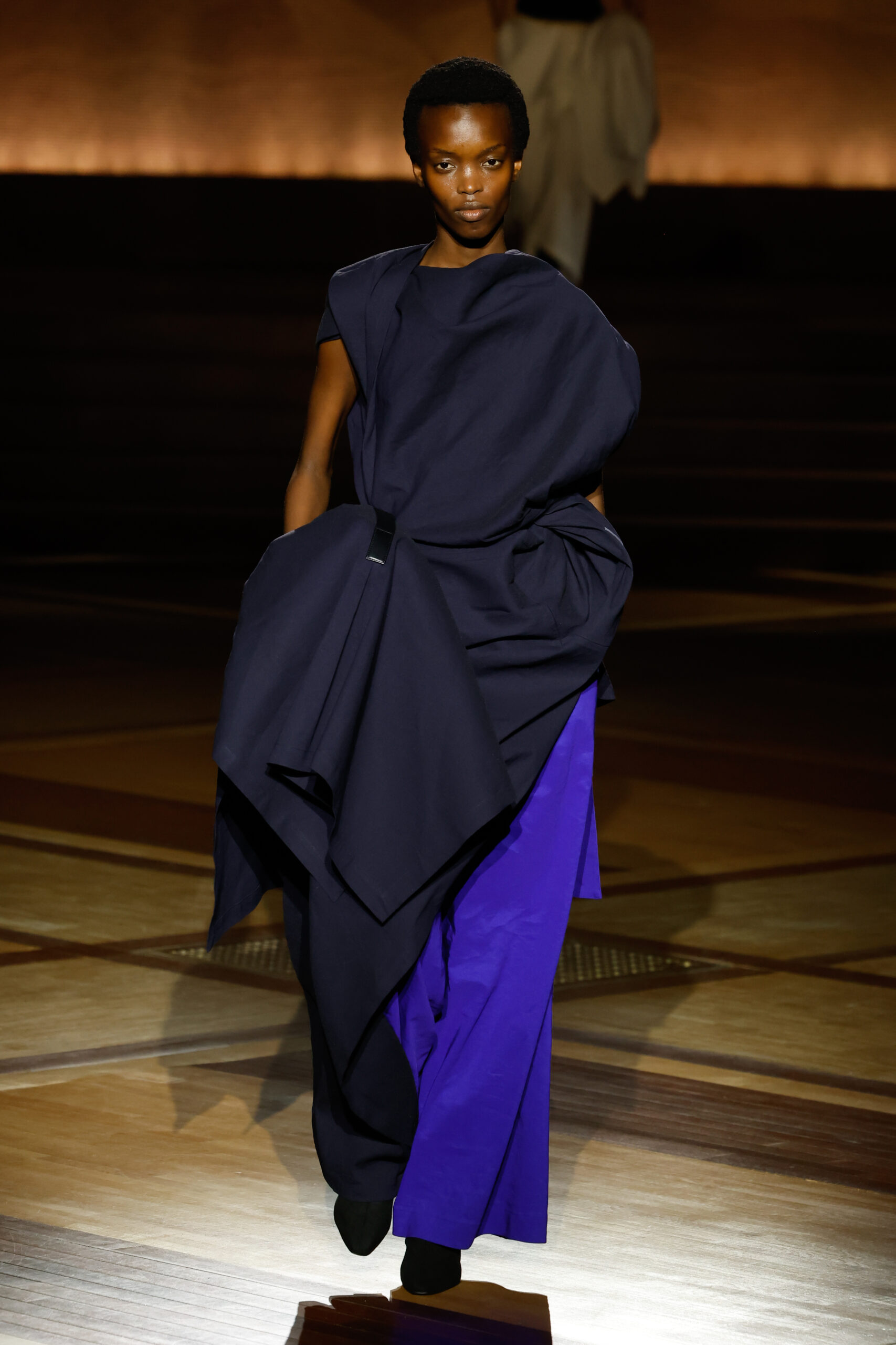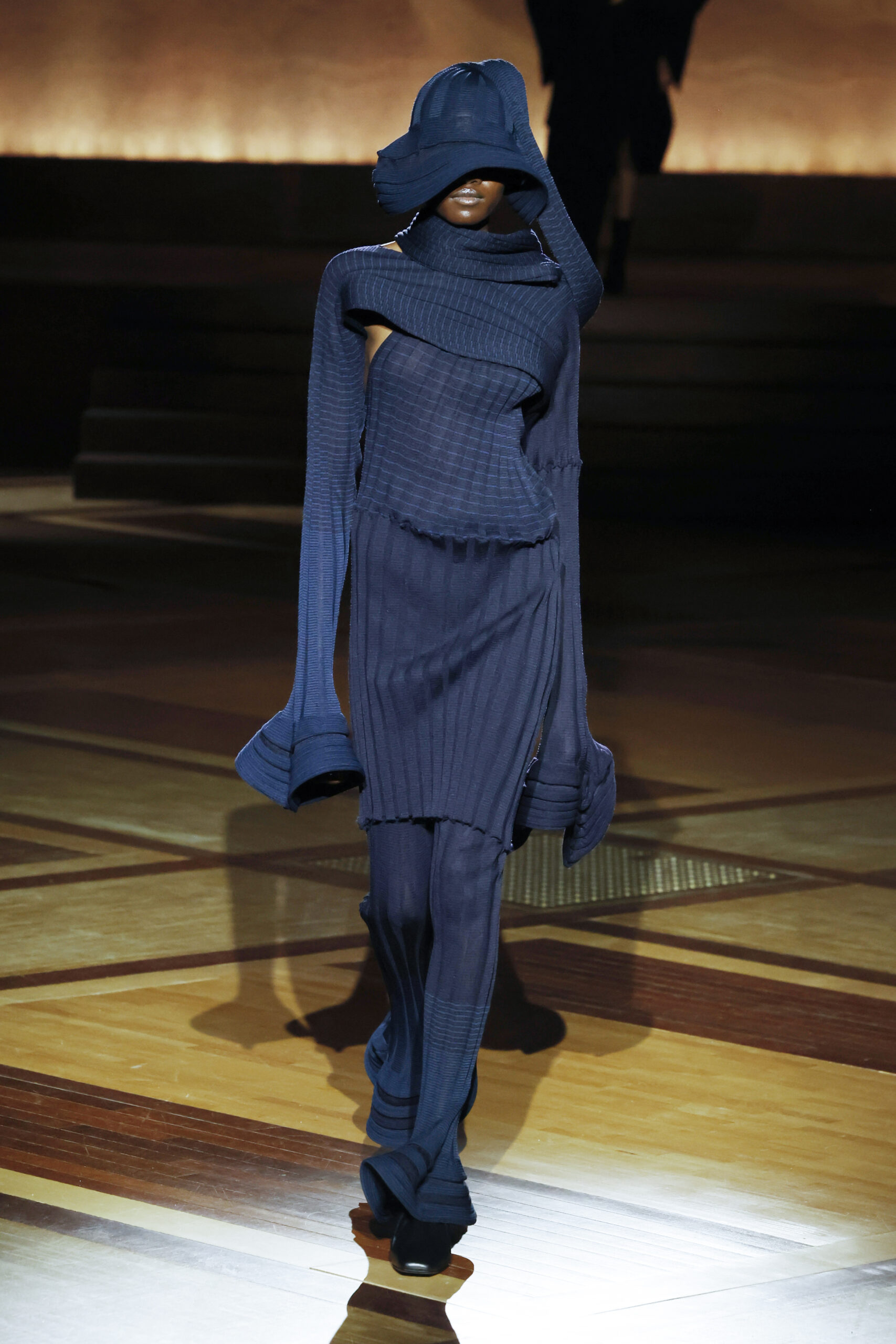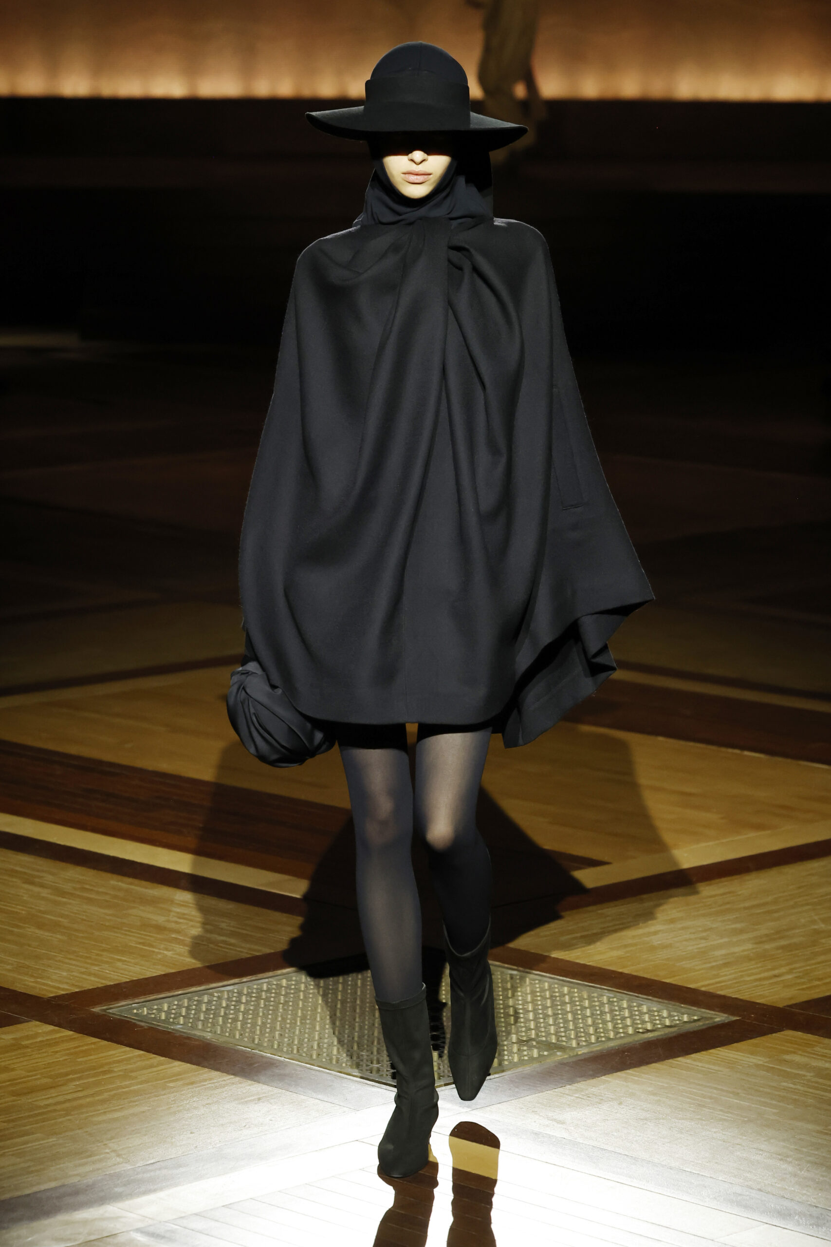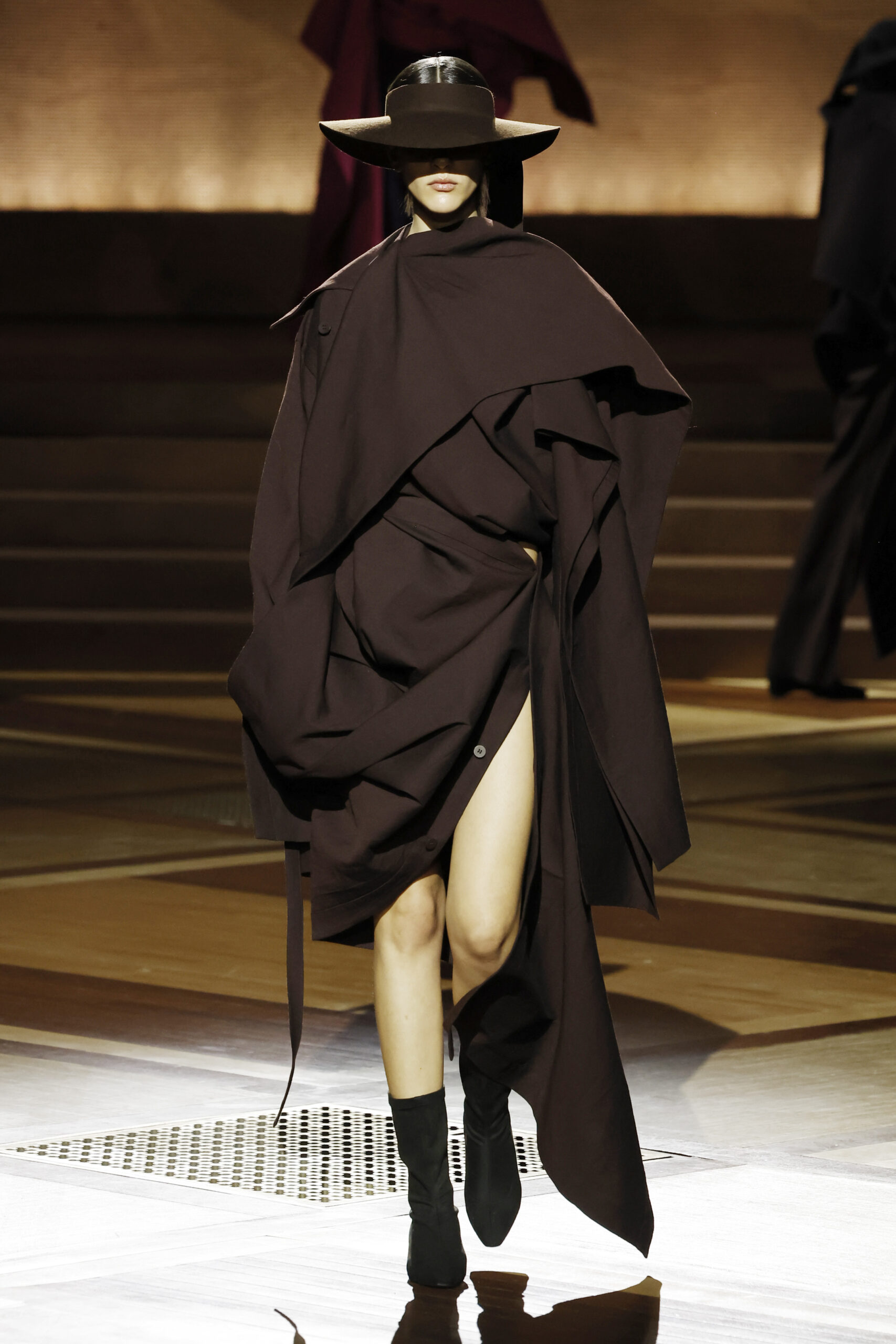 Présentée le 1er mars 2024 au musée de l’histoire de l’immigration du Palais de la Porte Dorée à Paris, la collection ISSEY MIYAKE Automne Hiver 2024/25, « What Has Always Been », explore l’origine de revêtir le corps humain avec une pièce de tissu. Cette collection s’inspire de ce geste intrinsèque, antérieur à la fabrication intentionnelle de vêtements, qui conduit à la découverte du drapé, de la superposition, du pliage et de la torsion, des formes asymétriques, ainsi que du « ma » (l’espace non rempli) entre le corps et le vêtement.