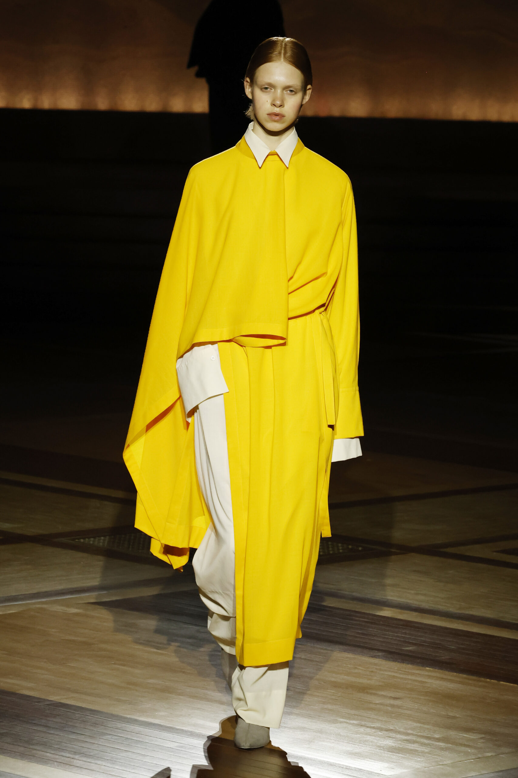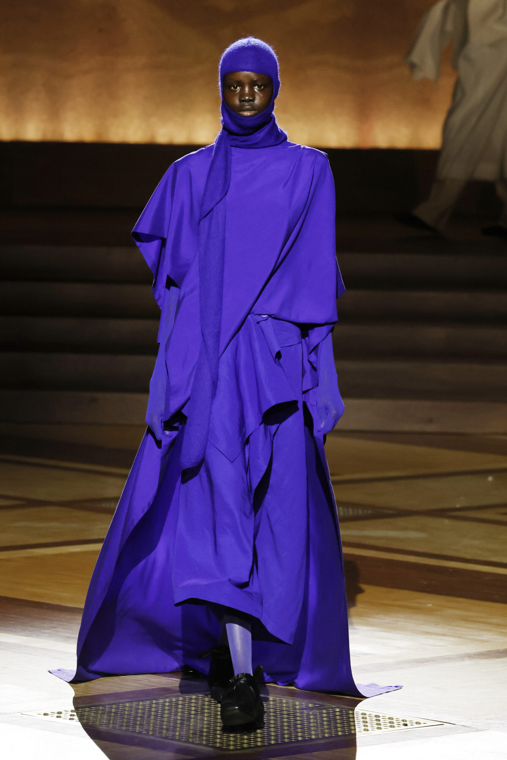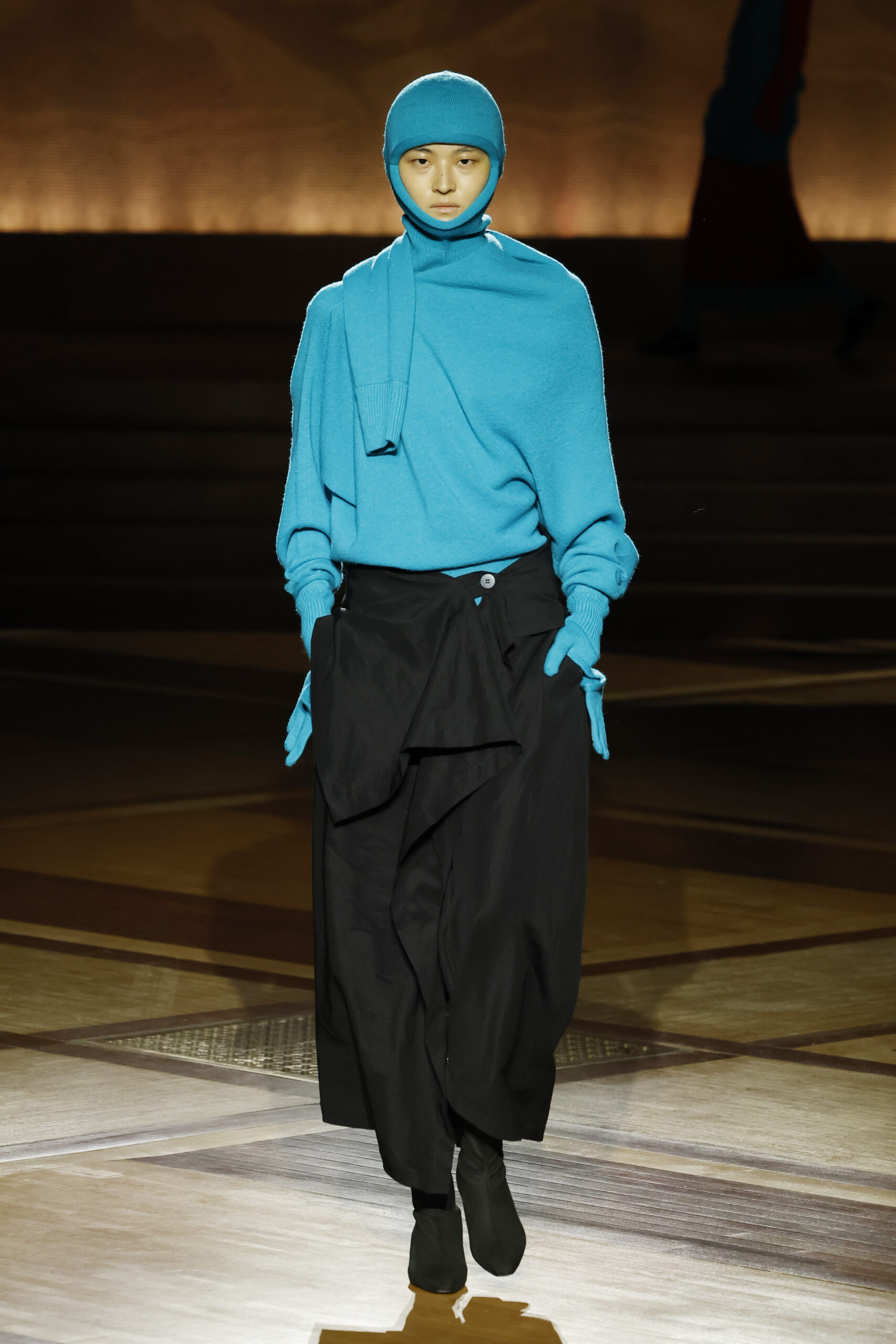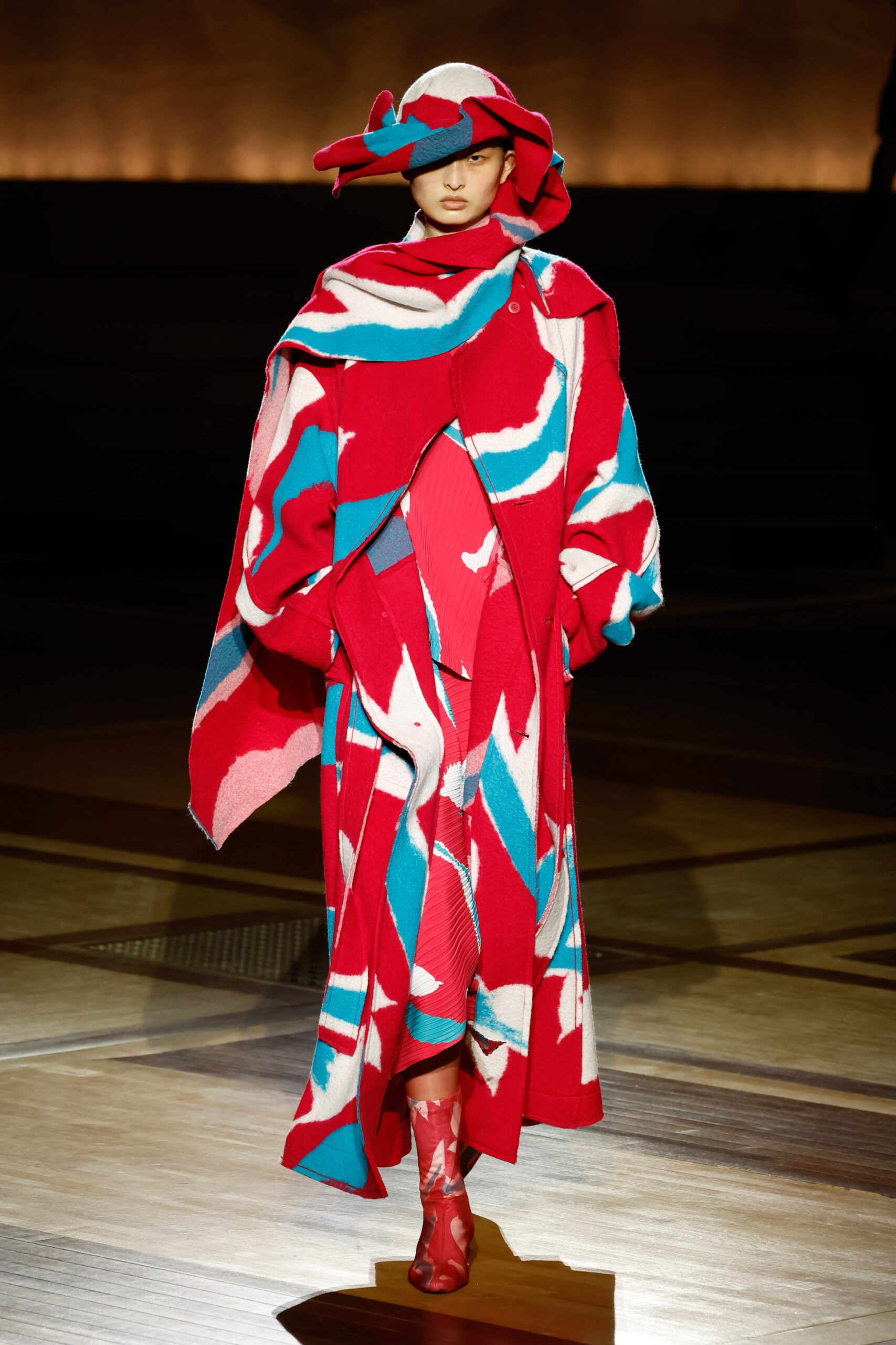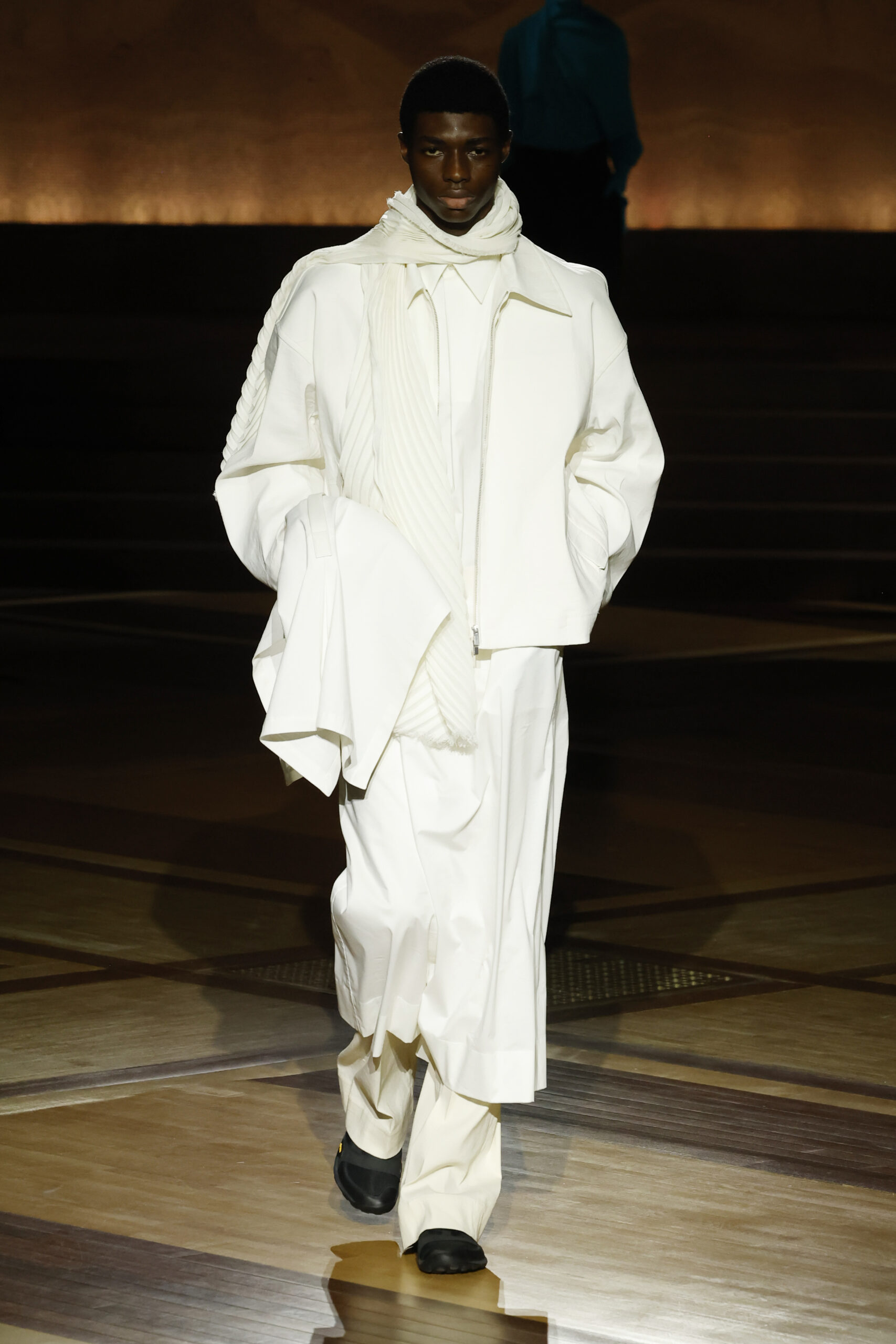 Présentée le 1er mars 2024 au musée de l’histoire de l’immigration du Palais de la Porte Dorée à Paris, la collection ISSEY MIYAKE Automne Hiver 2024/25, « What Has Always Been », explore l’origine de revêtir le corps humain avec une pièce de tissu. Cette collection s’inspire de ce geste intrinsèque, antérieur à la fabrication intentionnelle de vêtements, qui conduit à la découverte du drapé, de la superposition, du pliage et de la torsion, des formes asymétriques, ainsi que du « ma » (l’espace non rempli) entre le corps et le vêtement.