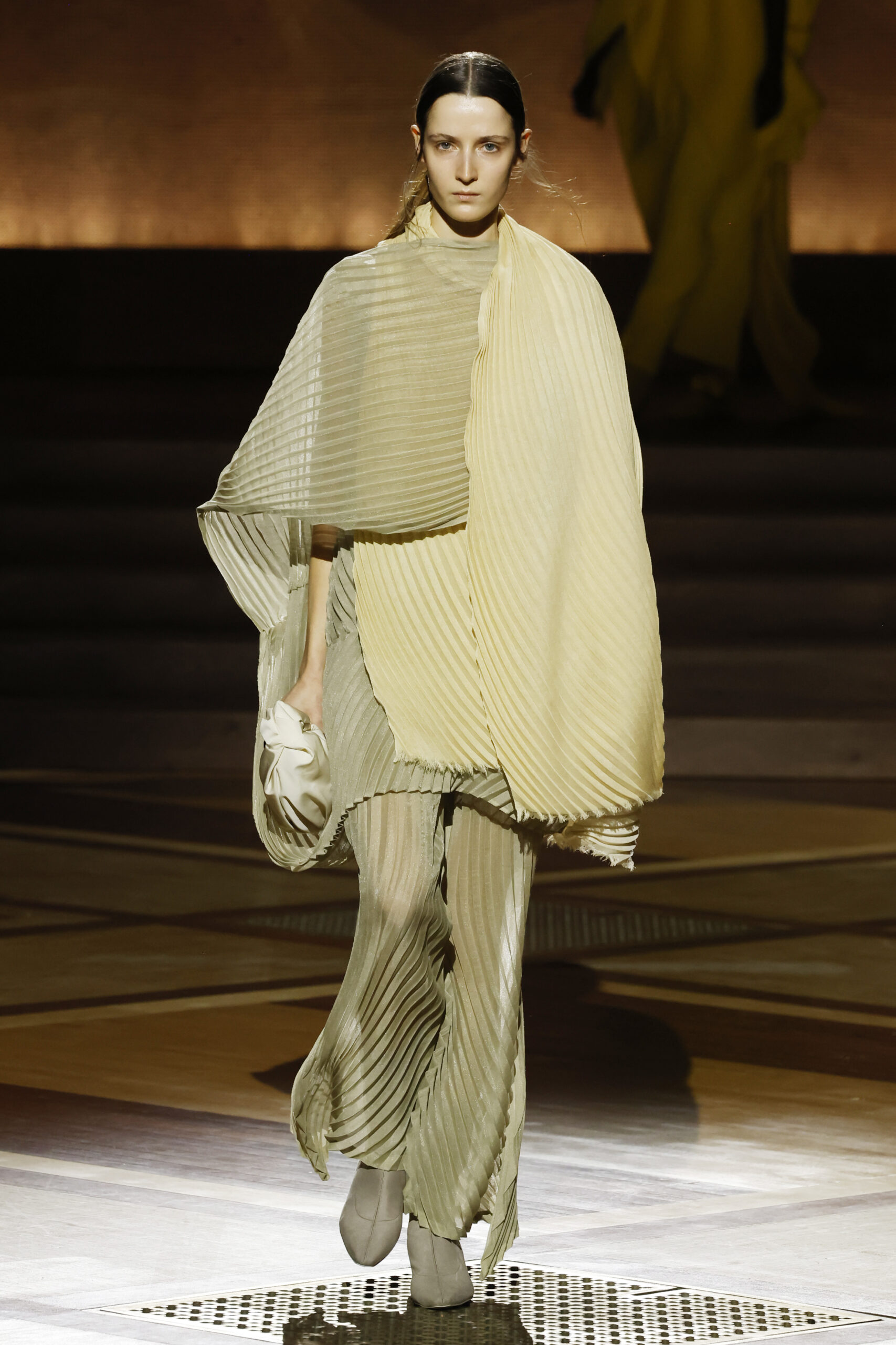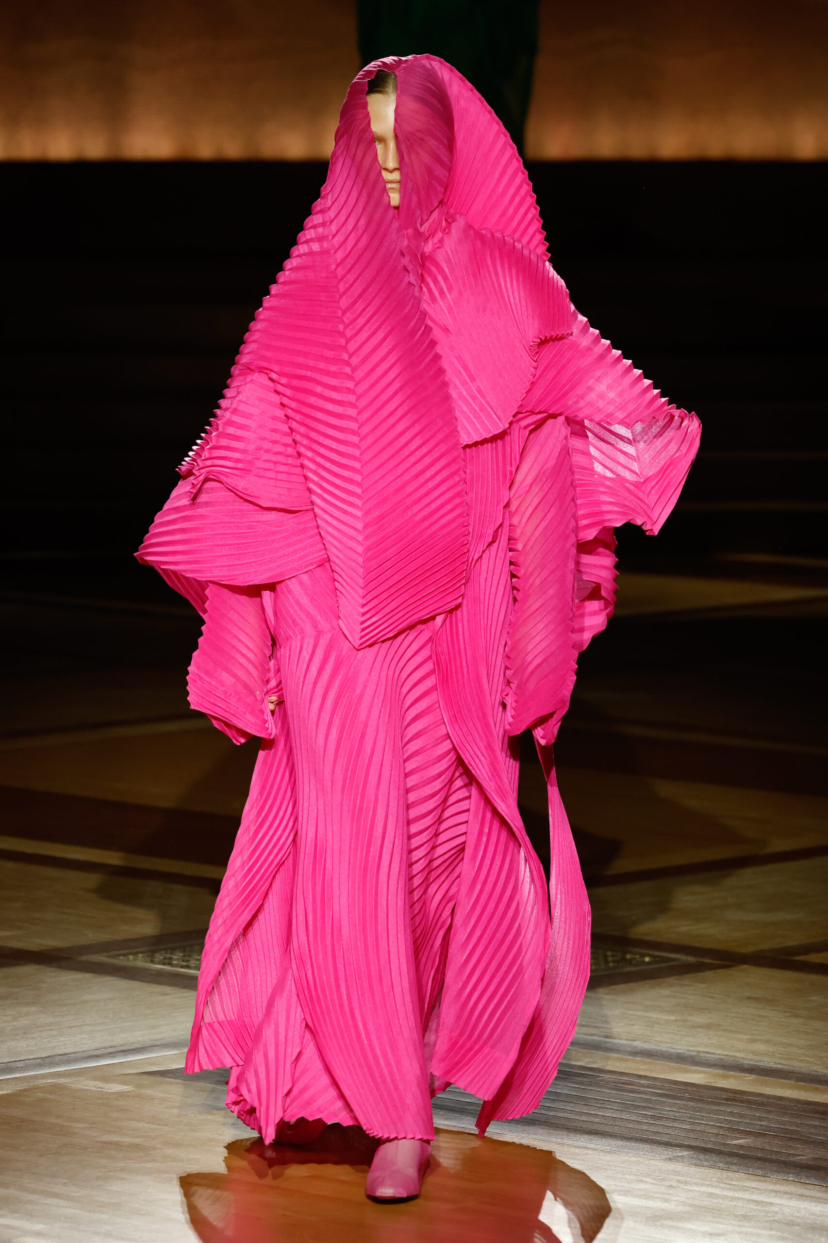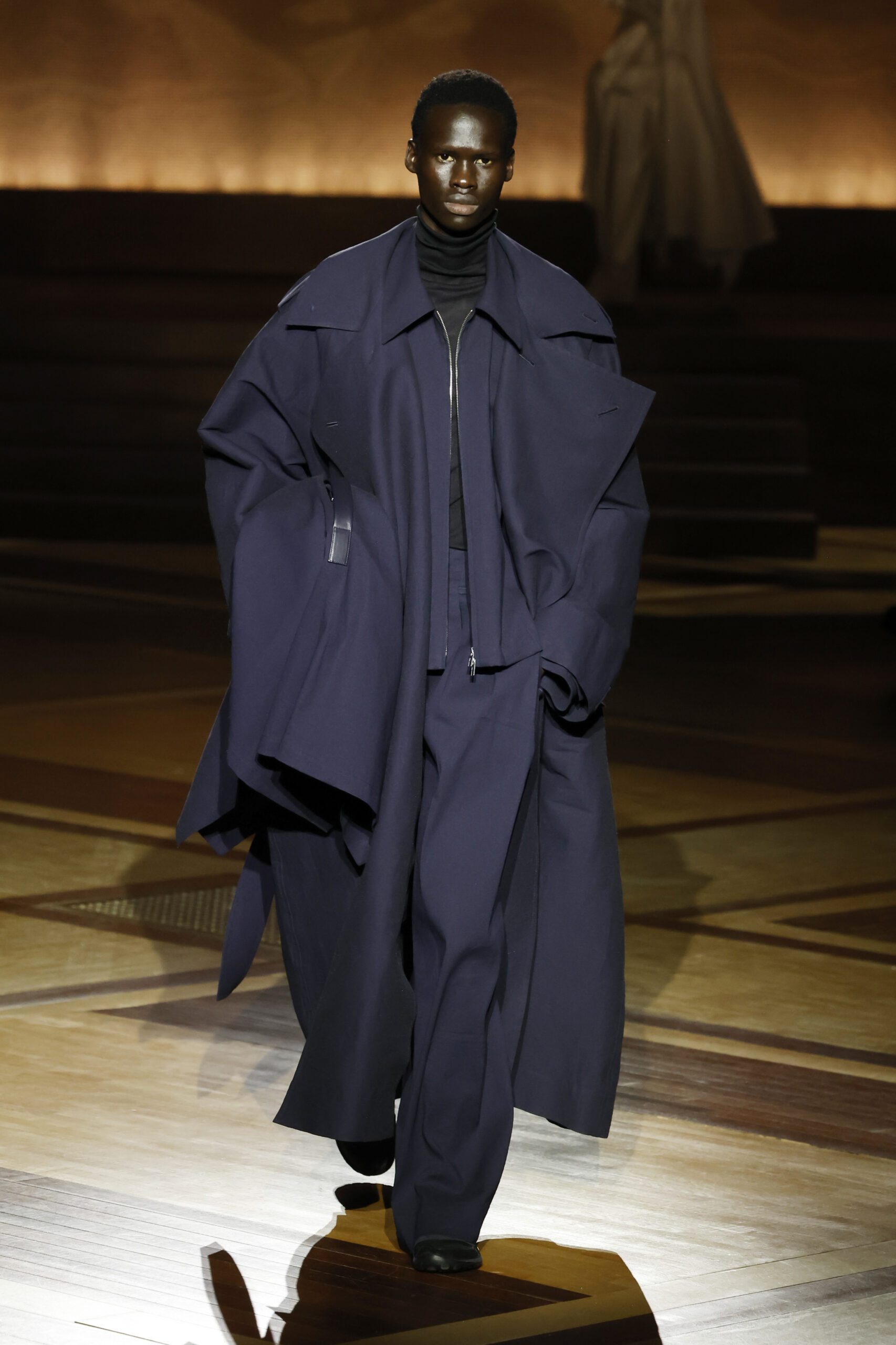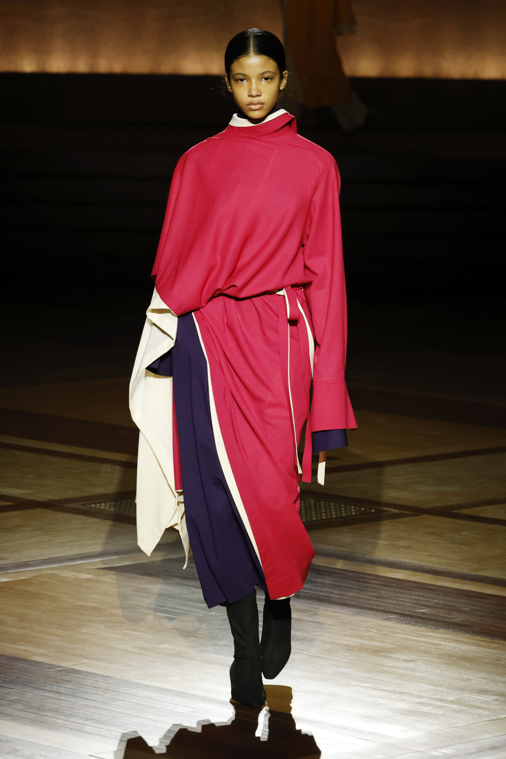 Présentée le 1er mars 2024 au musée de l’histoire de l’immigration du Palais de la Porte Dorée à Paris, la collection ISSEY MIYAKE Automne Hiver 2024/25, « What Has Always Been », explore l’origine de revêtir le corps humain avec une pièce de tissu. Cette collection s’inspire de ce geste intrinsèque, antérieur à la fabrication intentionnelle de vêtements, qui conduit à la découverte du drapé, de la superposition, du pliage et de la torsion, des formes asymétriques, ainsi que du « ma » (l’espace non rempli) entre le corps et le vêtement.