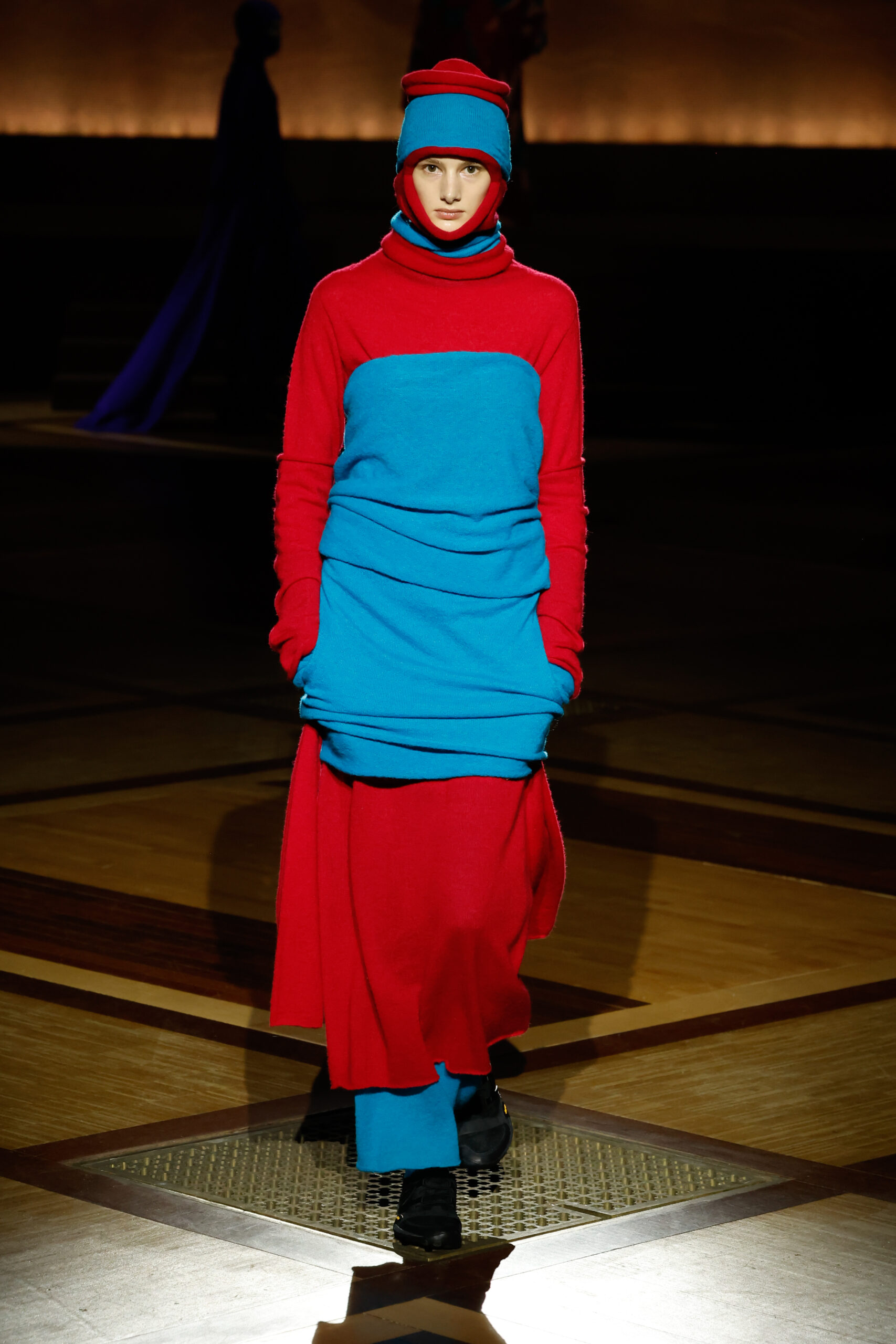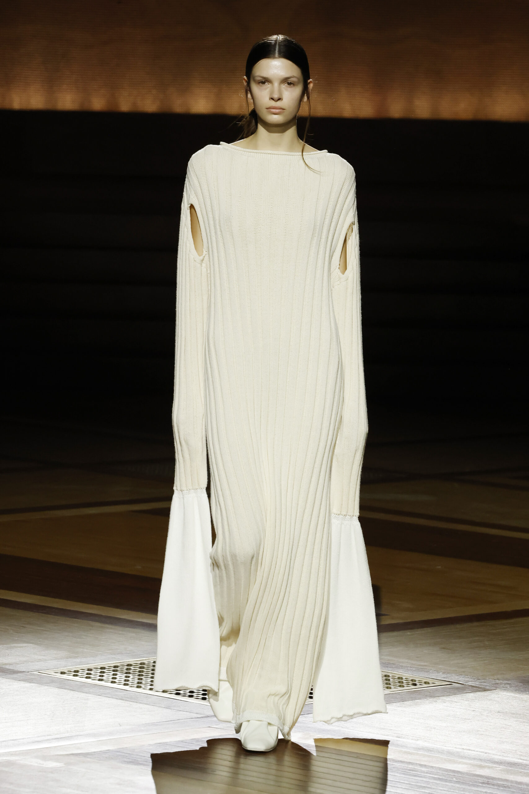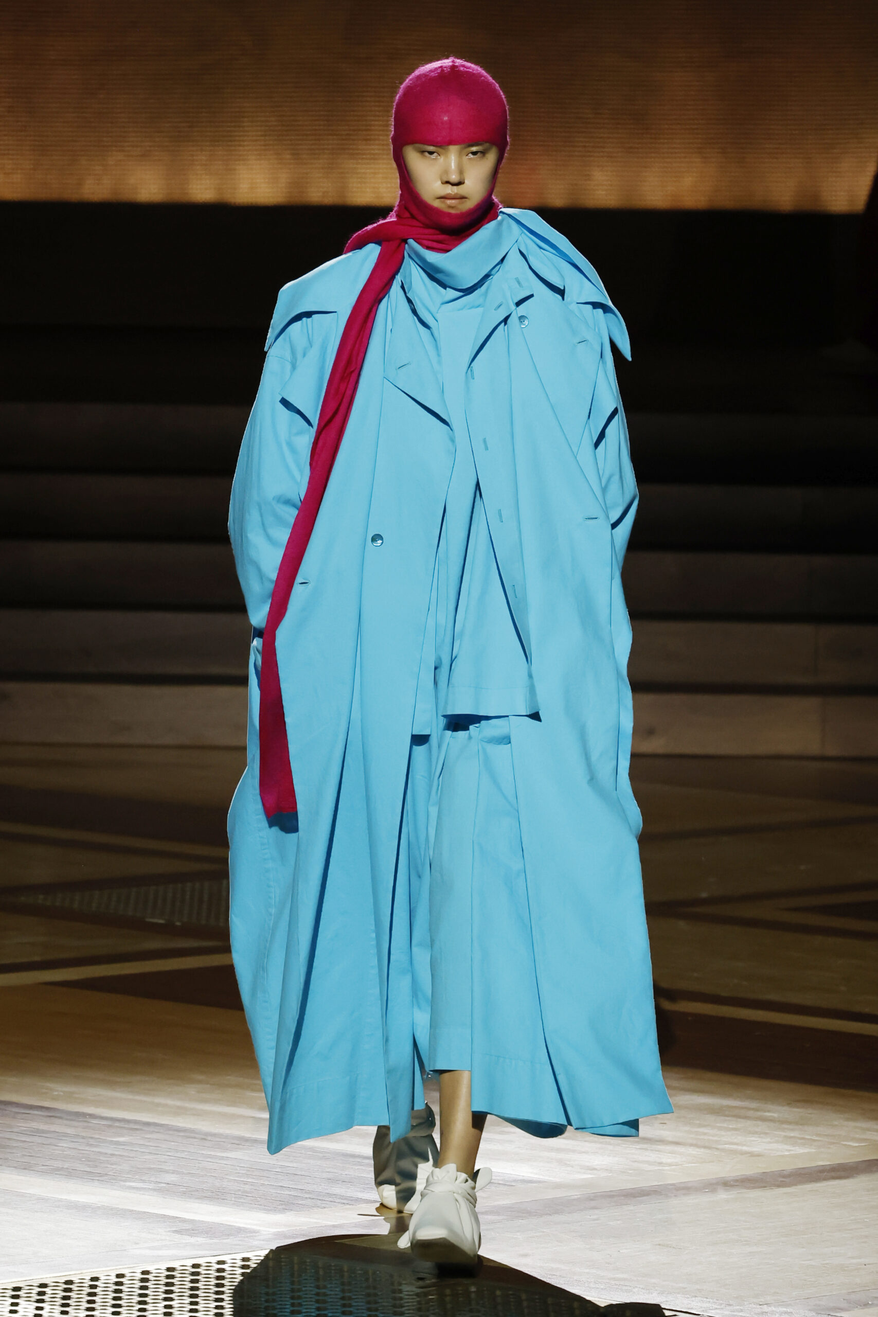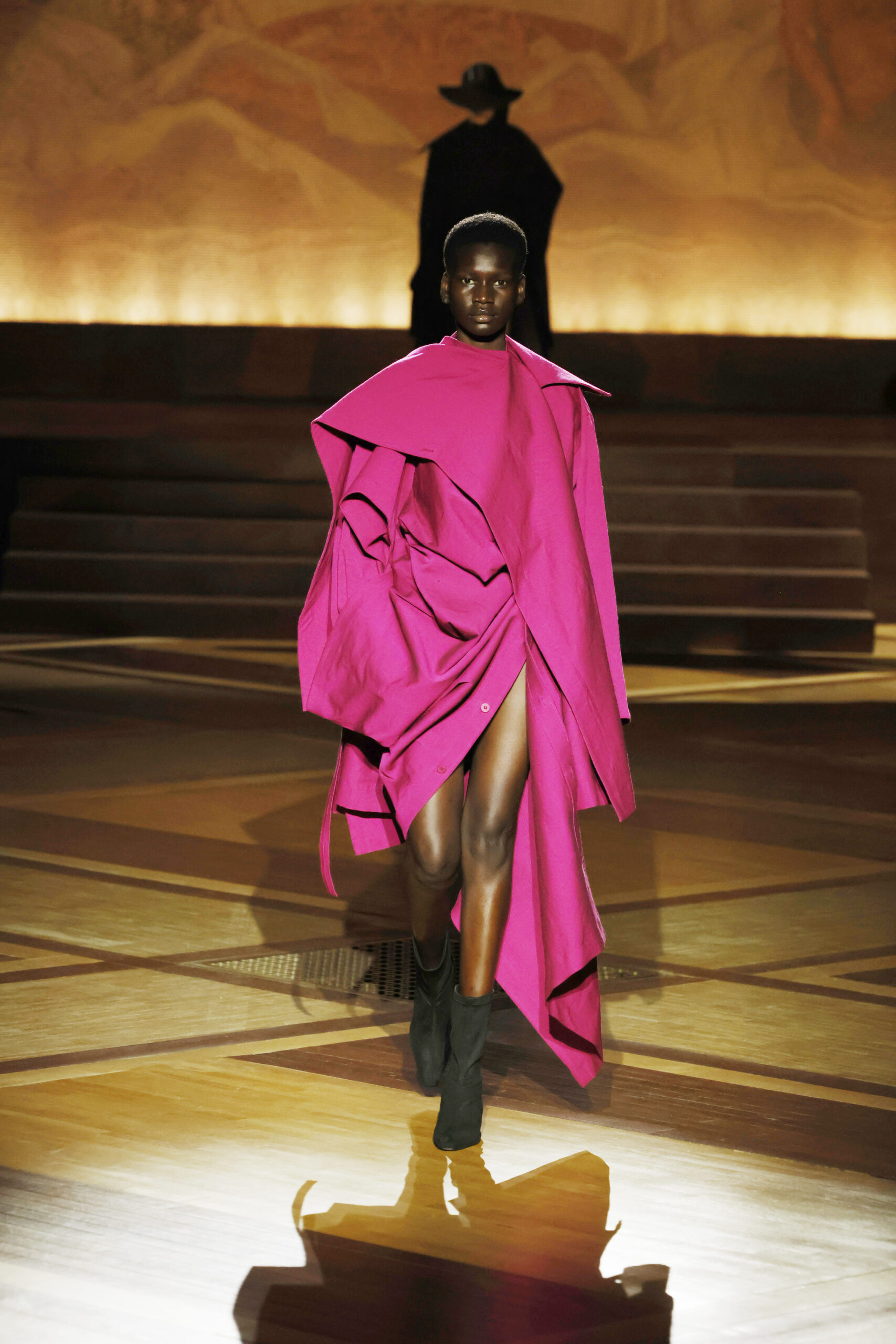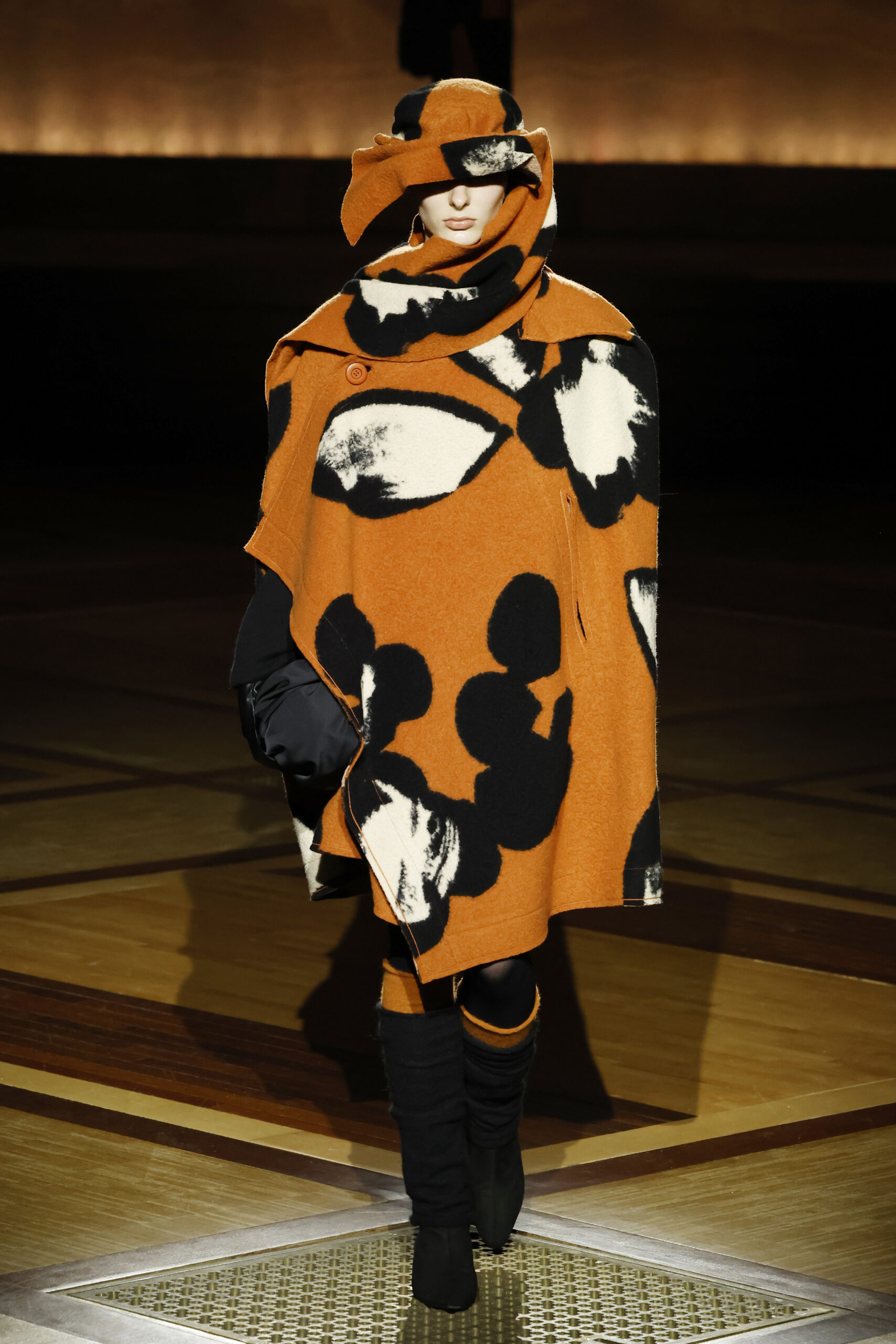 Présentée le 1er mars 2024 au musée de l’histoire de l’immigration du Palais de la Porte Dorée à Paris, la collection ISSEY MIYAKE Automne Hiver 2024/25, « What Has Always Been », explore l’origine de revêtir le corps humain avec une pièce de tissu. Cette collection s’inspire de ce geste intrinsèque, antérieur à la fabrication intentionnelle de vêtements, qui conduit à la découverte du drapé, de la superposition, du pliage et de la torsion, des formes asymétriques, ainsi que du « ma » (l’espace non rempli) entre le corps et le vêtement.