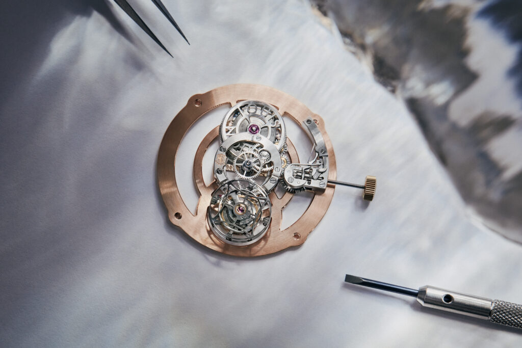 Le partenariat entre Louis Vuitton et Frank Gehry est le fruit de deux ans de discussions approfondies, visant à encapsuler l’esprit architectural du maître dans une montre au diamètre limité à 43,8 millimètres. Cette démarche a nécessité une ingénierie et une créativité sans précédents pour honorer l’esthétique de Gehry tout en atteignant une transparence absolue, permettant une vision totale du calibre à tourbillon volant.