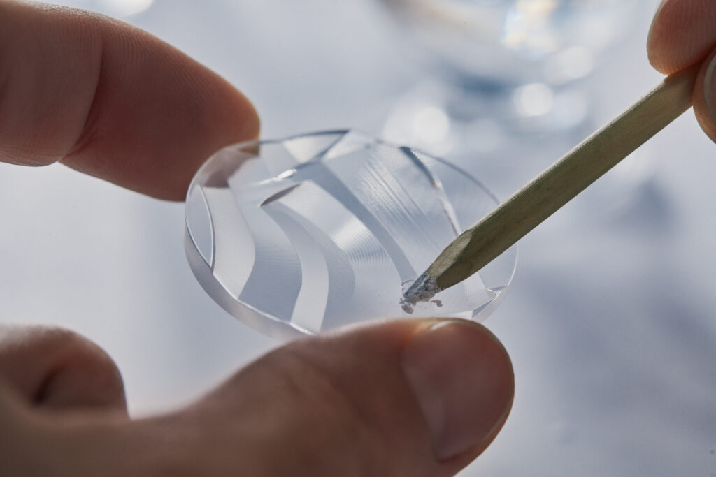 Le choix du saphir pour le boîtier et le cadran permet non seulement d’atteindre la transparence recherchée mais aussi de jouer avec les textures et la lumière, des aspects fondamentaux dans l’œuvre de Gehry. La dureté du saphir, second seulement au diamant, a posé un défi unique pour les artisans de La Fabrique du Temps Louis Vuitton, qui ont utilisé des techniques empruntées à l’industrie médicale pour réaliser les finitions satinées et mates avec une précision extrême.