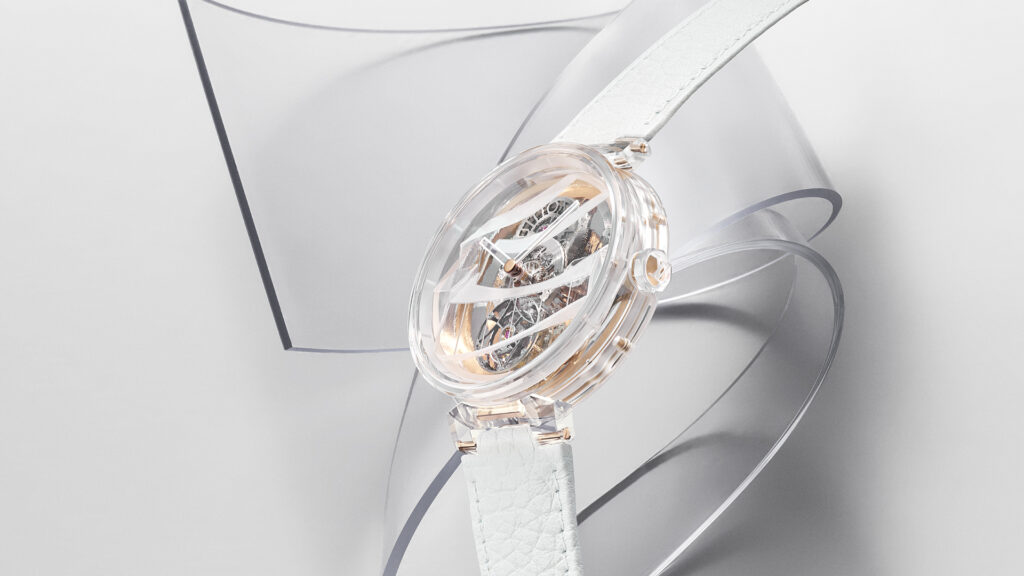 Pour les amateurs d’horlogerie et d’architecture, la Tambour Moon Saphir Tourbillon Volant représente une invitation à admirer le temps d’une manière entièrement nouvelle, à travers le prisme de la transparence et de la lumière, signé par l’un des architectes les plus influents de notre époque.