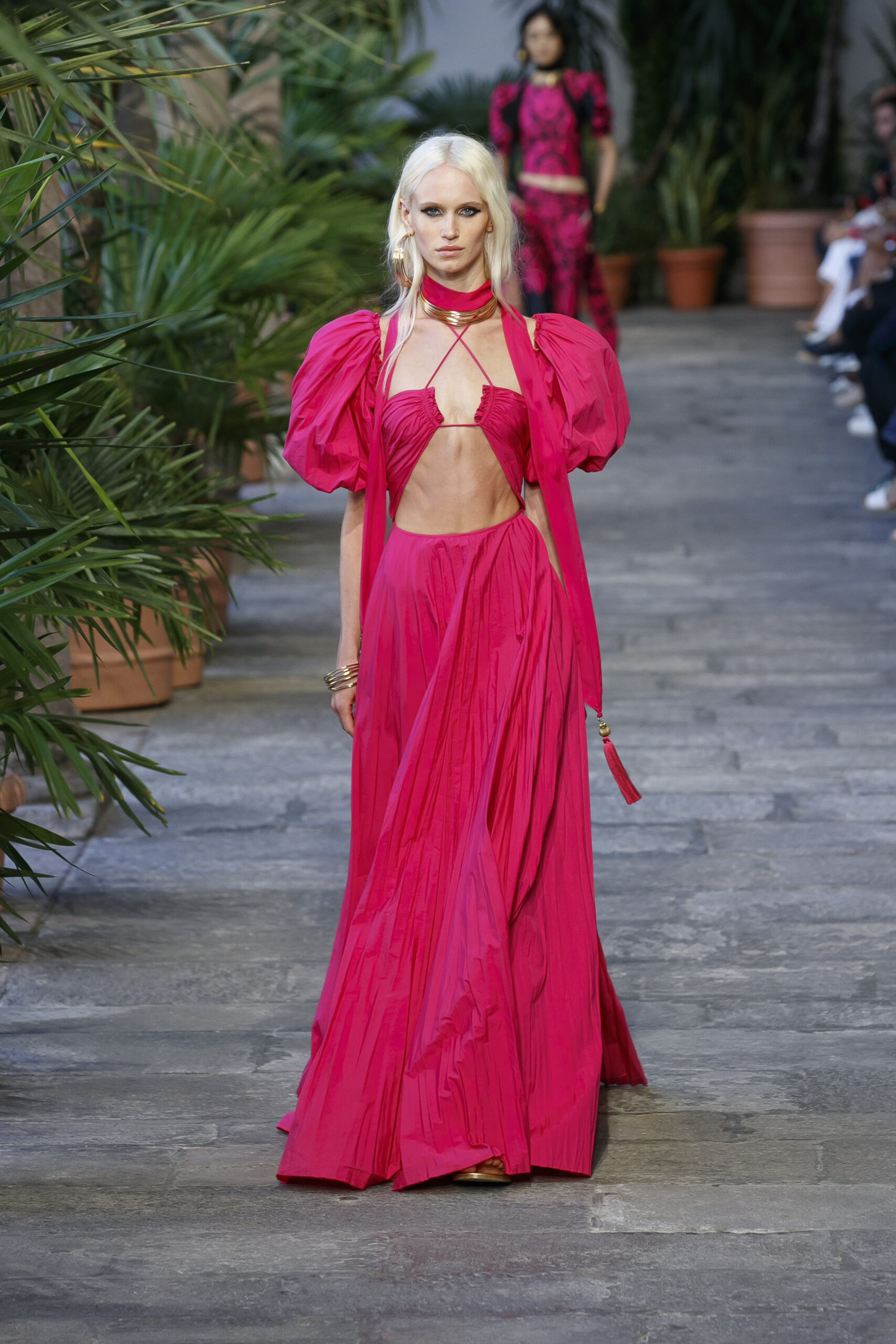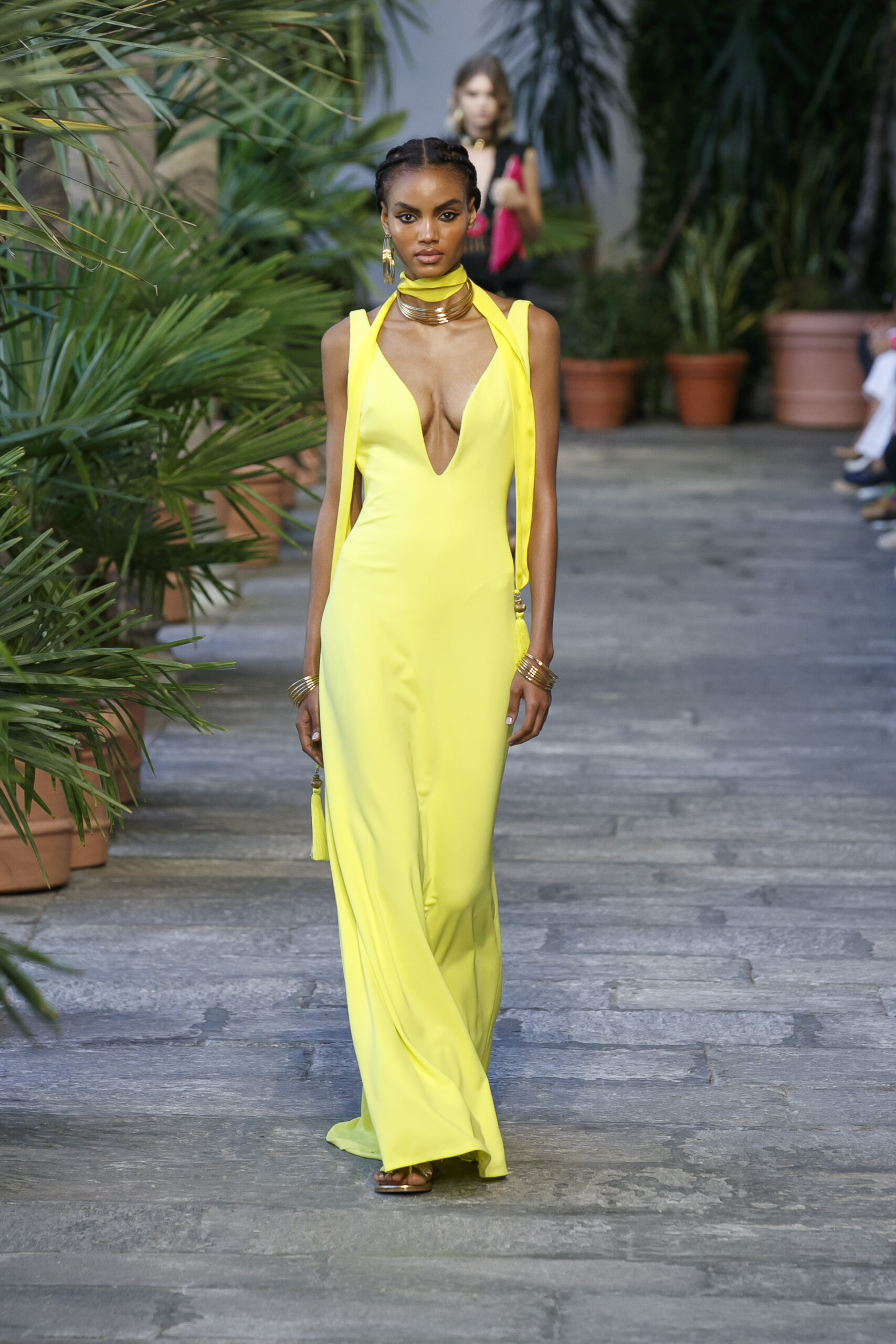Les accessoires ont un caractère artisanal, rappelant des souvenirs de vacances lointaines. Un sac à main en daim souple bordé de franges et complété par une chaîne dorée est l’accessoire de la saison, tandis que chaque look est ancré dans des sandales plates ou à semelles compensées artisanales.