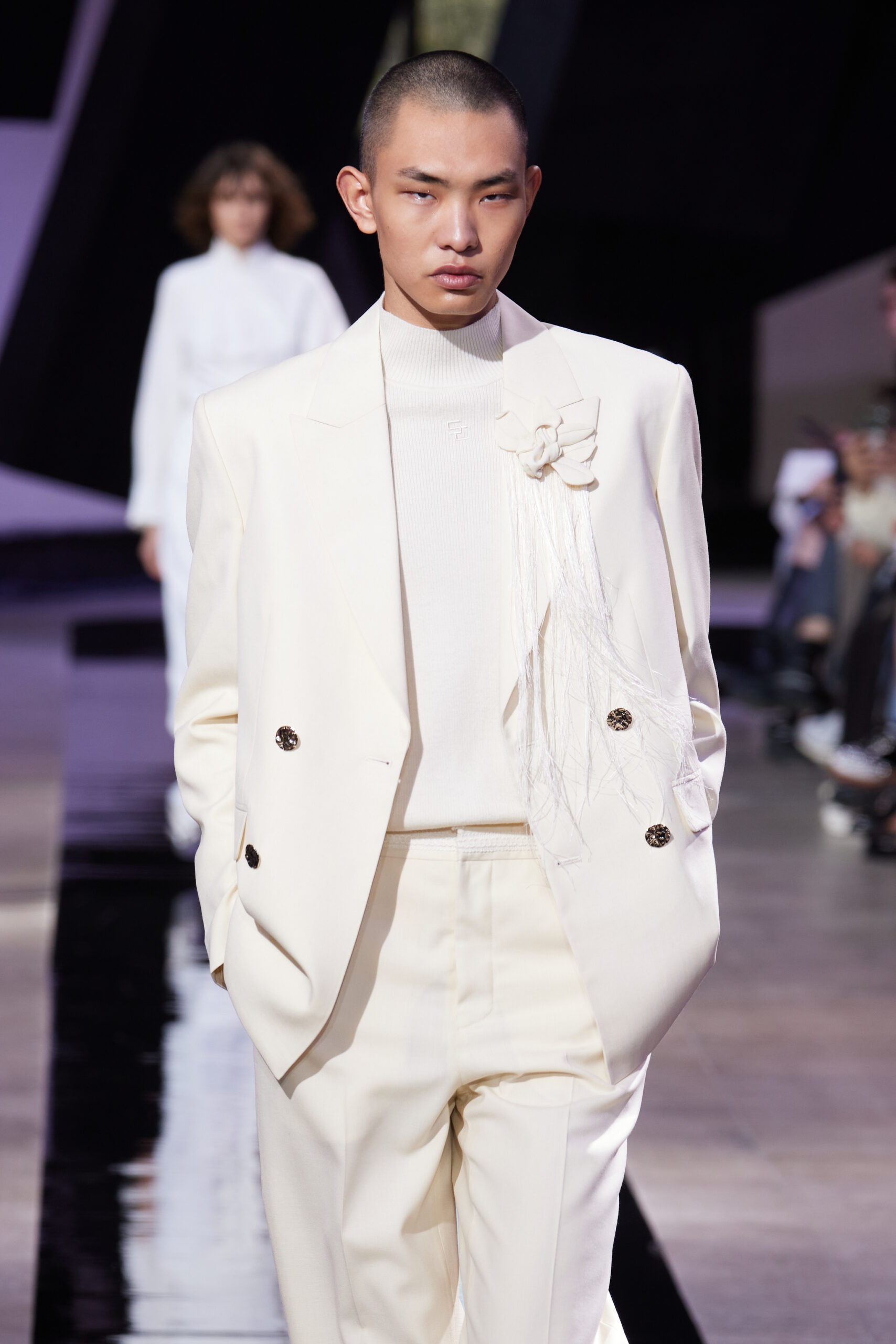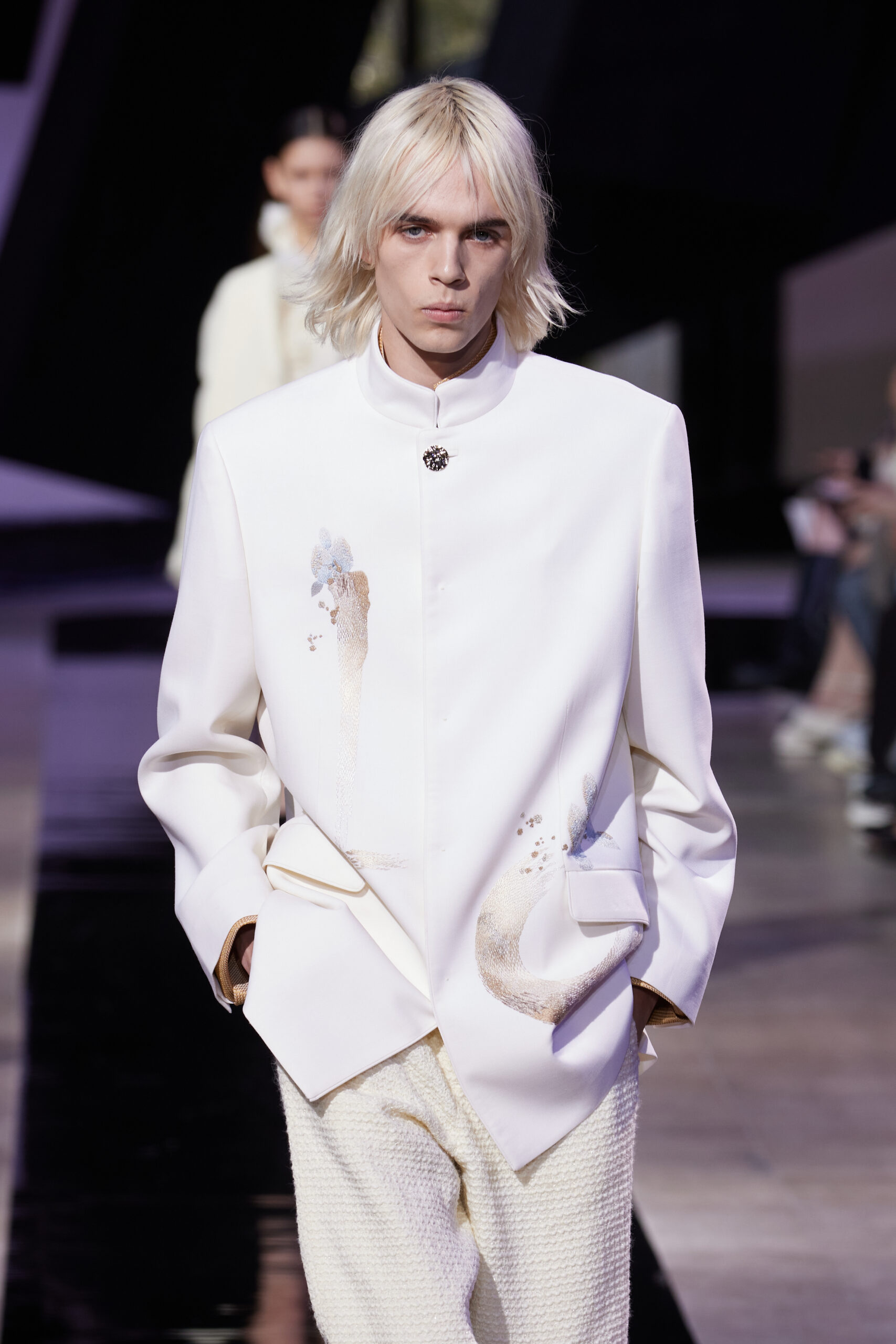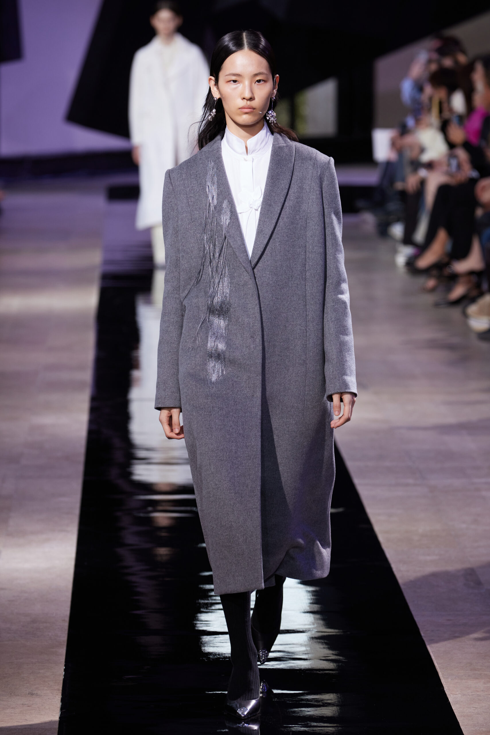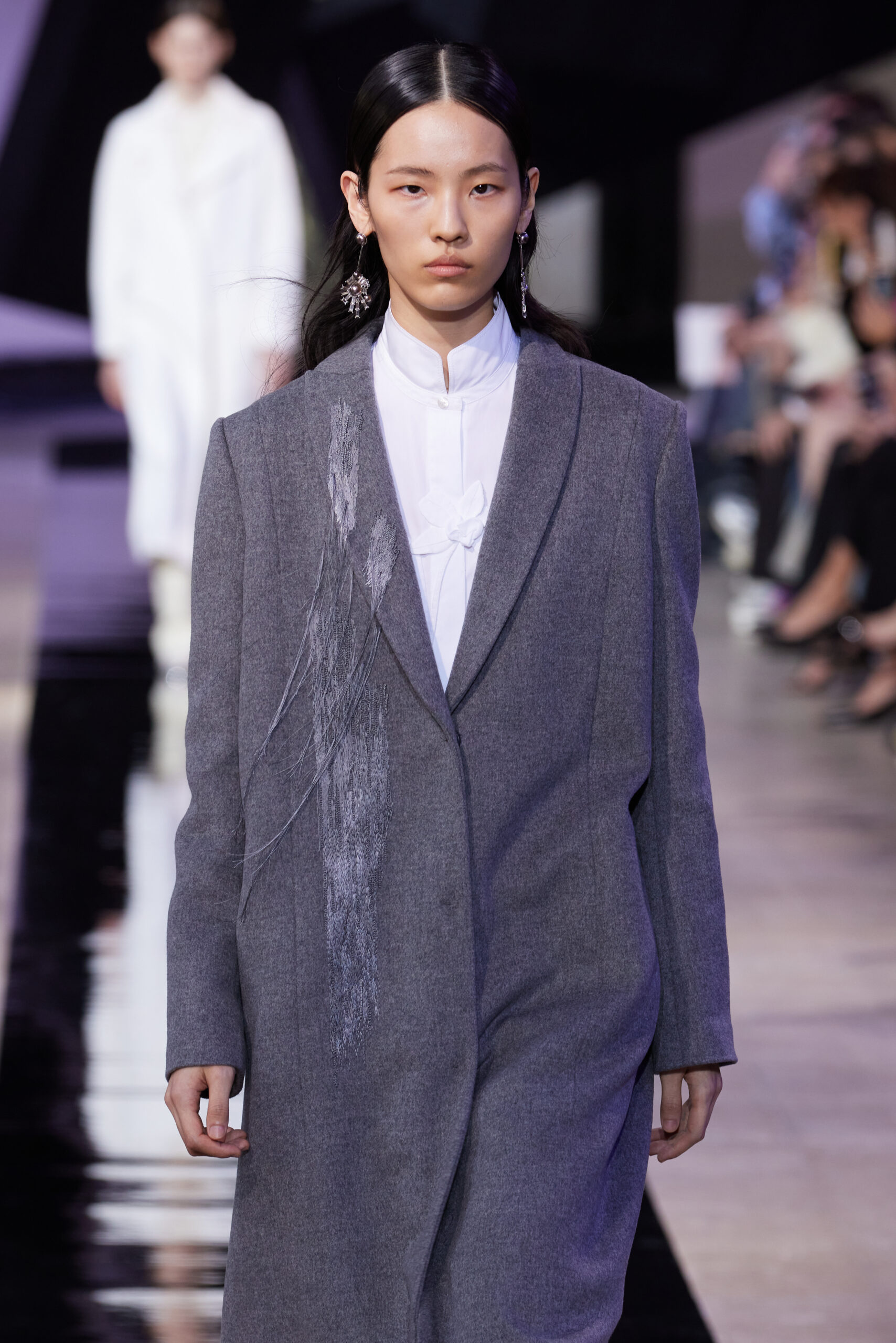Les silhouettes de la collection rappellent la forme cubique des bâtons d’encre, mélangeant les coupes classiques des années 60 à l’esthétique unique de SHIATZY CHEN. Les tailleurs en fibre de laine, clés de la collection, manifestent une fusion remarquable entre les influences sino-occidentales, témoignant de l’expertise de la maison dans l’alliance des savoir-faire.