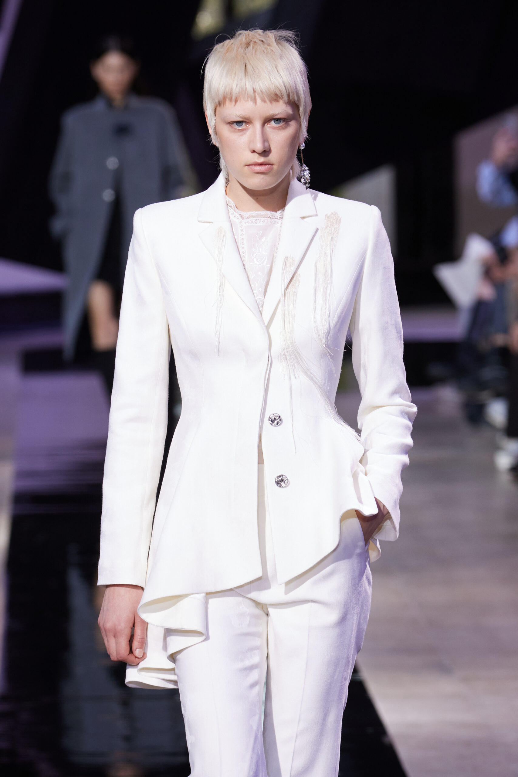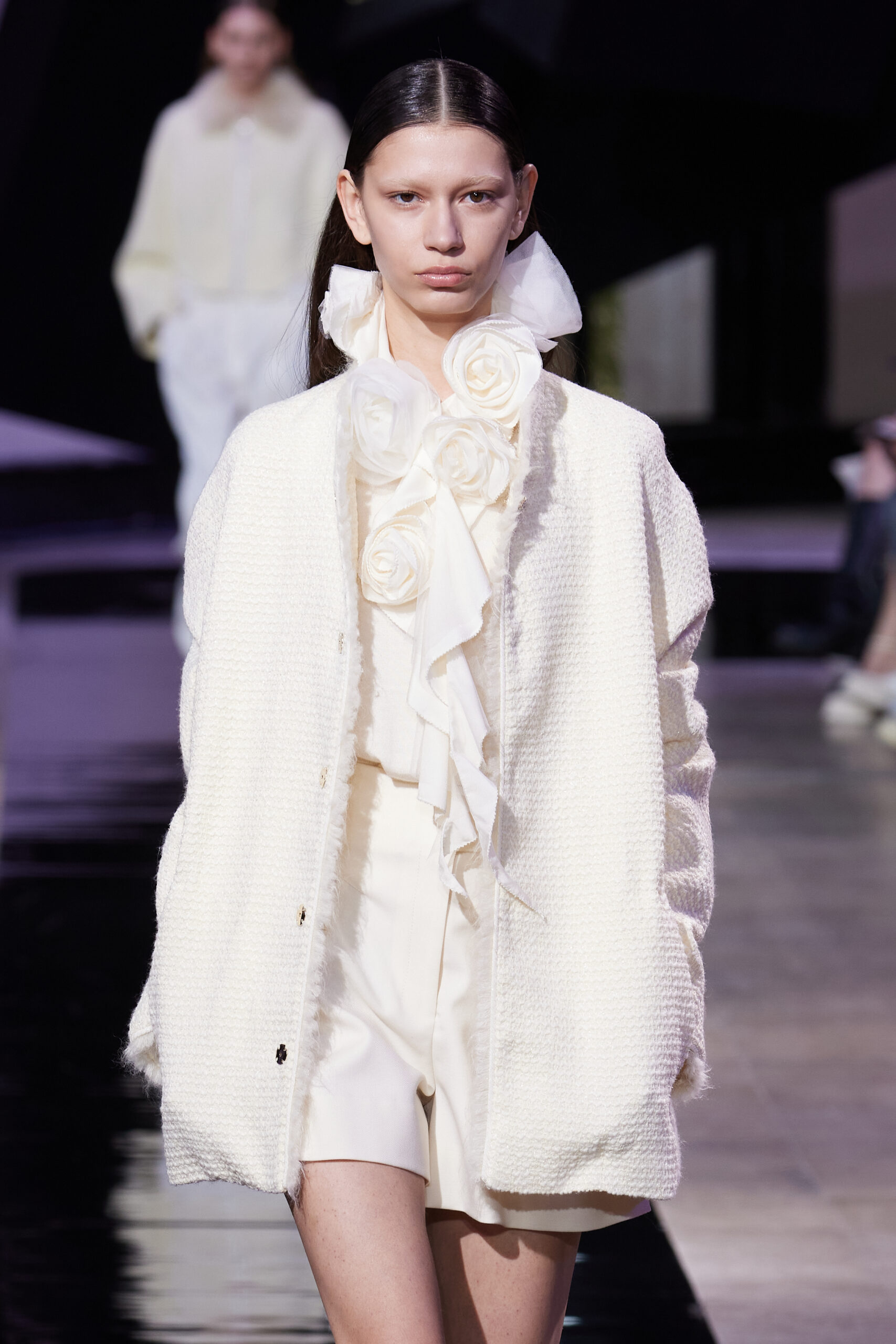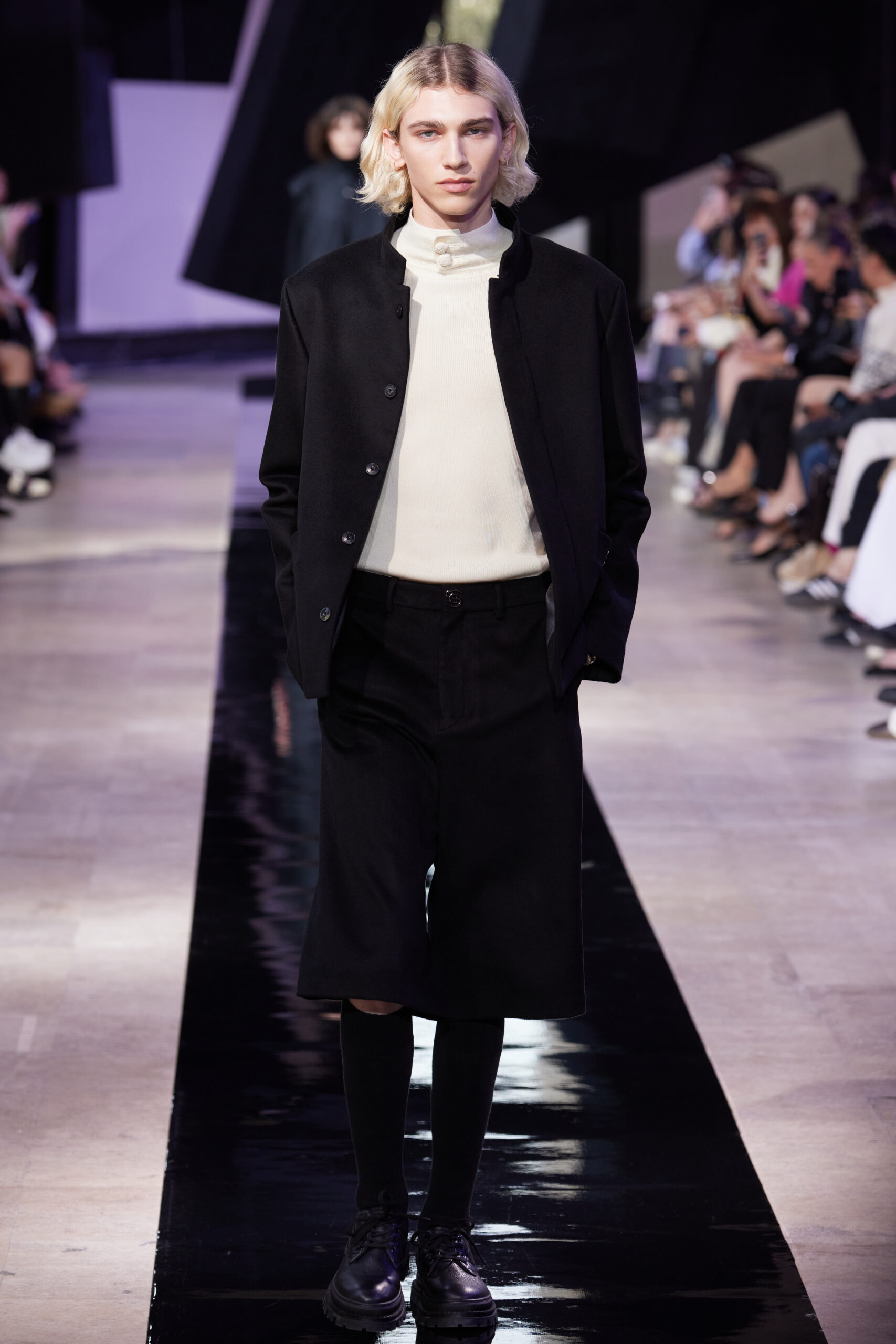 Les silhouettes de la collection rappellent la forme cubique des bâtons d’encre, mélangeant les coupes classiques des années 60 à l’esthétique unique de SHIATZY CHEN. Les tailleurs en fibre de laine, clés de la collection, manifestent une fusion remarquable entre les influences sino-occidentales, témoignant de l’expertise de la maison dans l’alliance des savoir-faire.