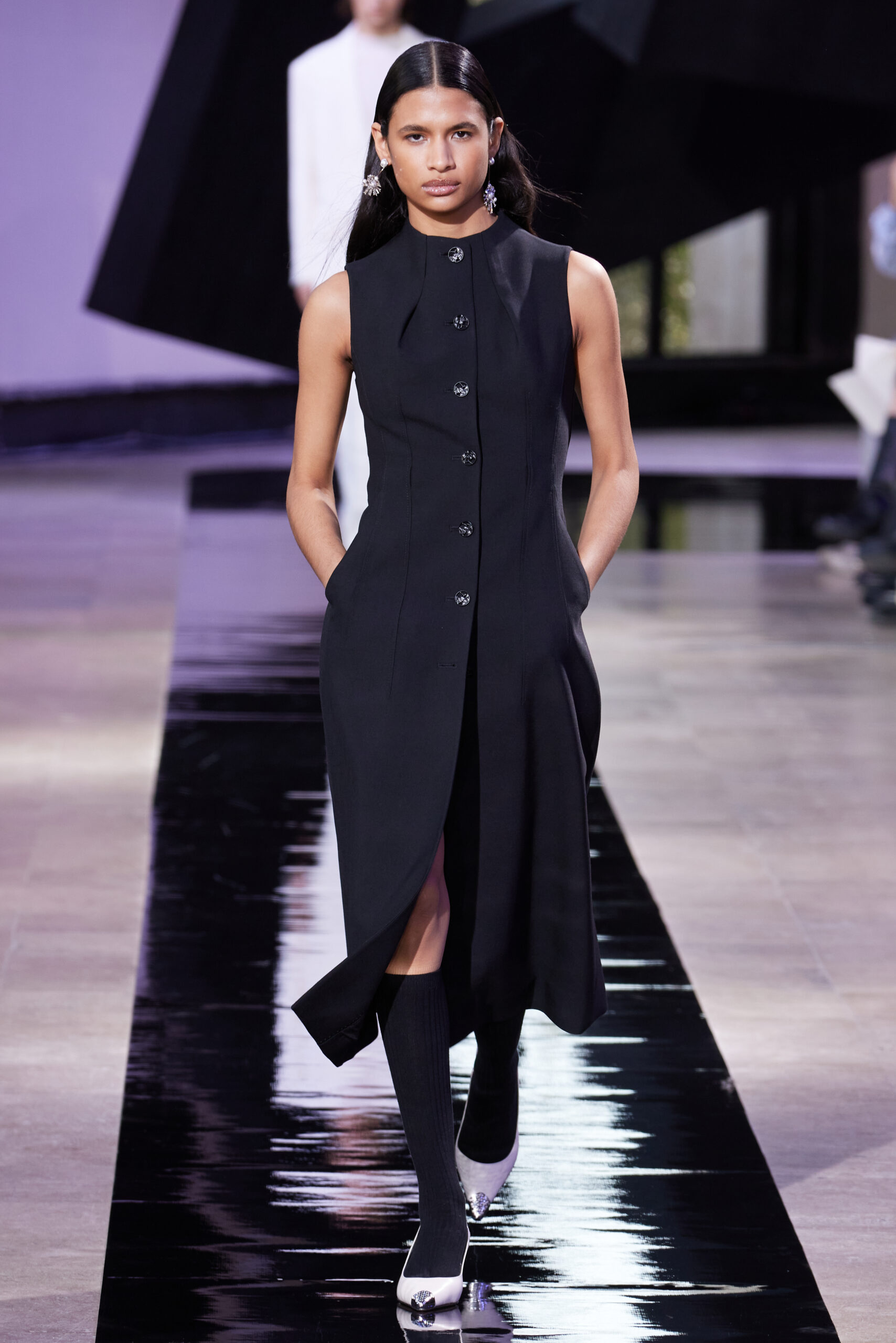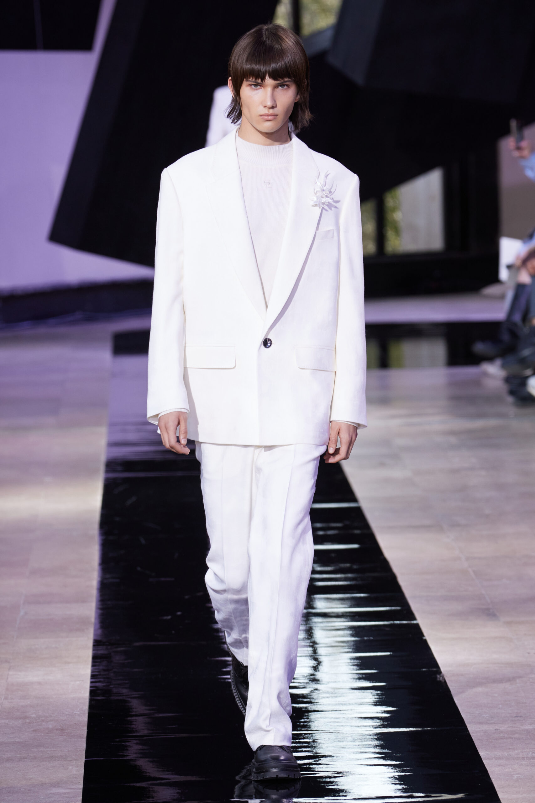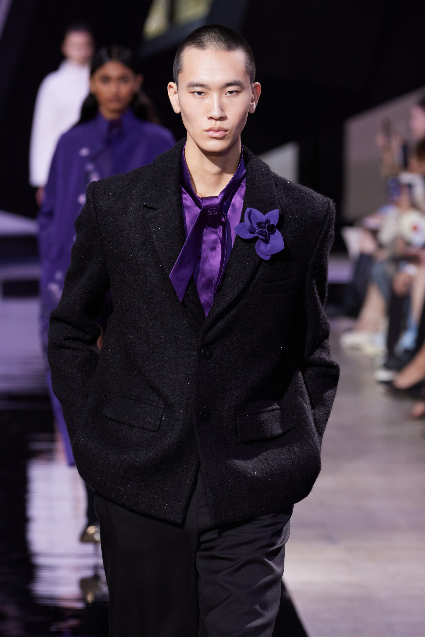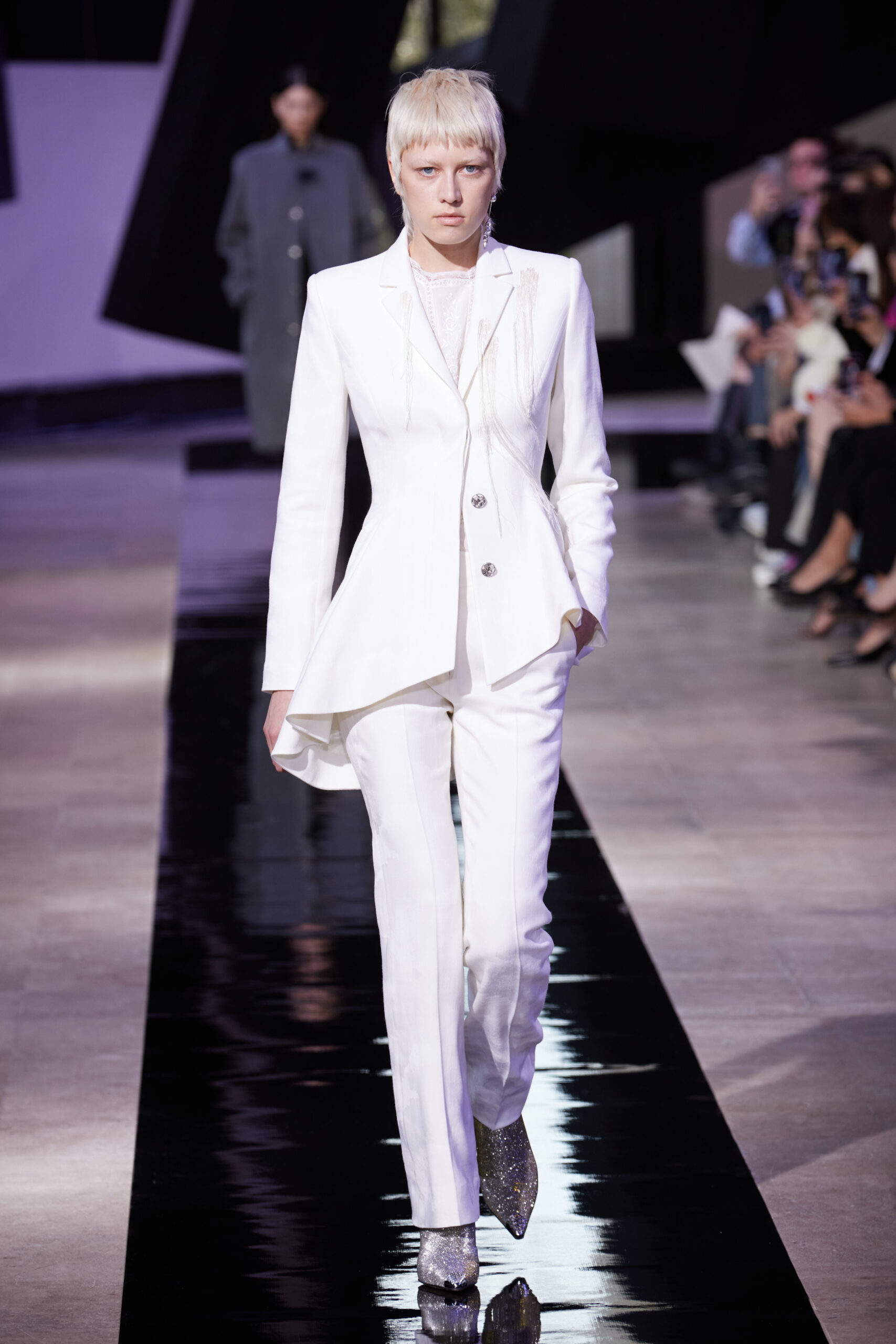 Les silhouettes de la collection rappellent la forme cubique des bâtons d’encre, mélangeant les coupes classiques des années 60 à l’esthétique unique de SHIATZY CHEN. Les tailleurs en fibre de laine, clés de la collection, manifestent une fusion remarquable entre les influences sino-occidentales, témoignant de l’expertise de la maison dans l’alliance des savoir-faire.