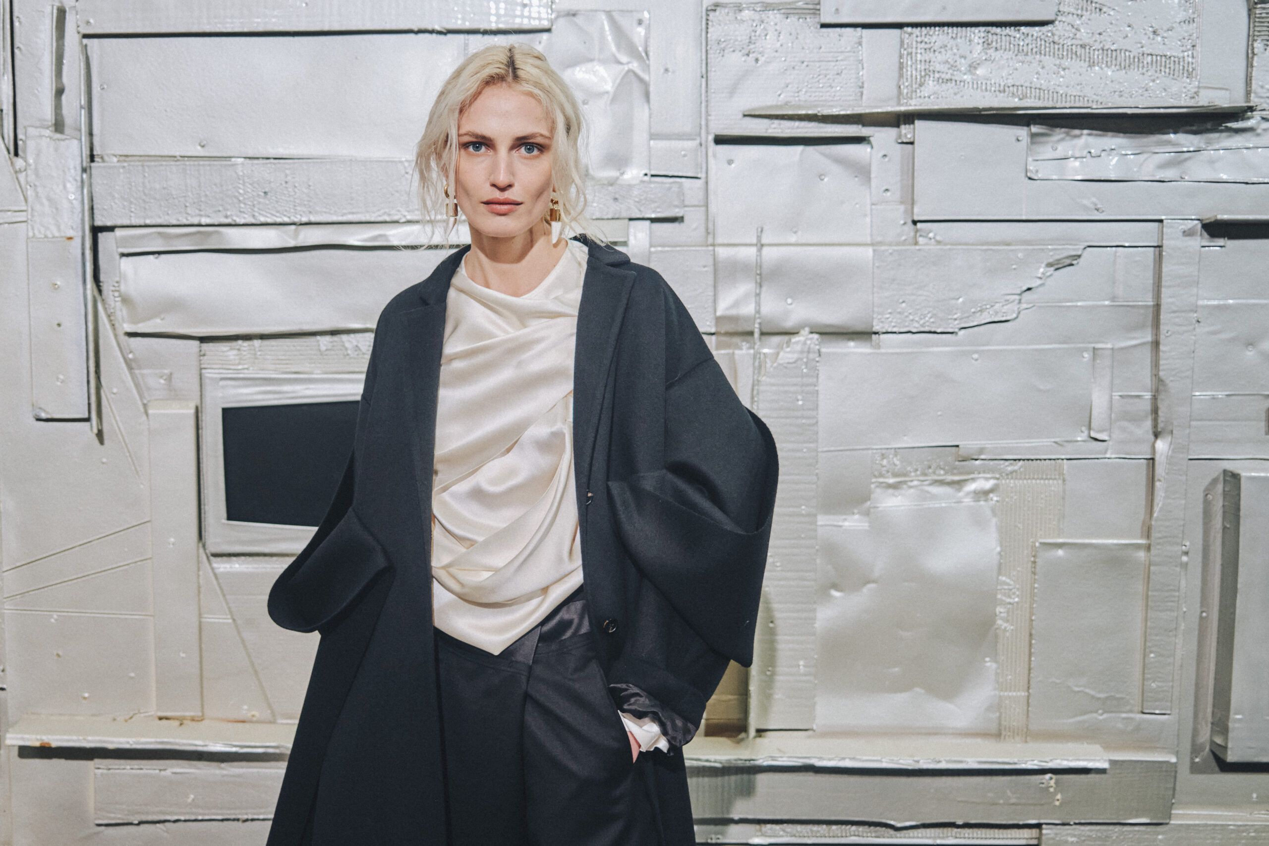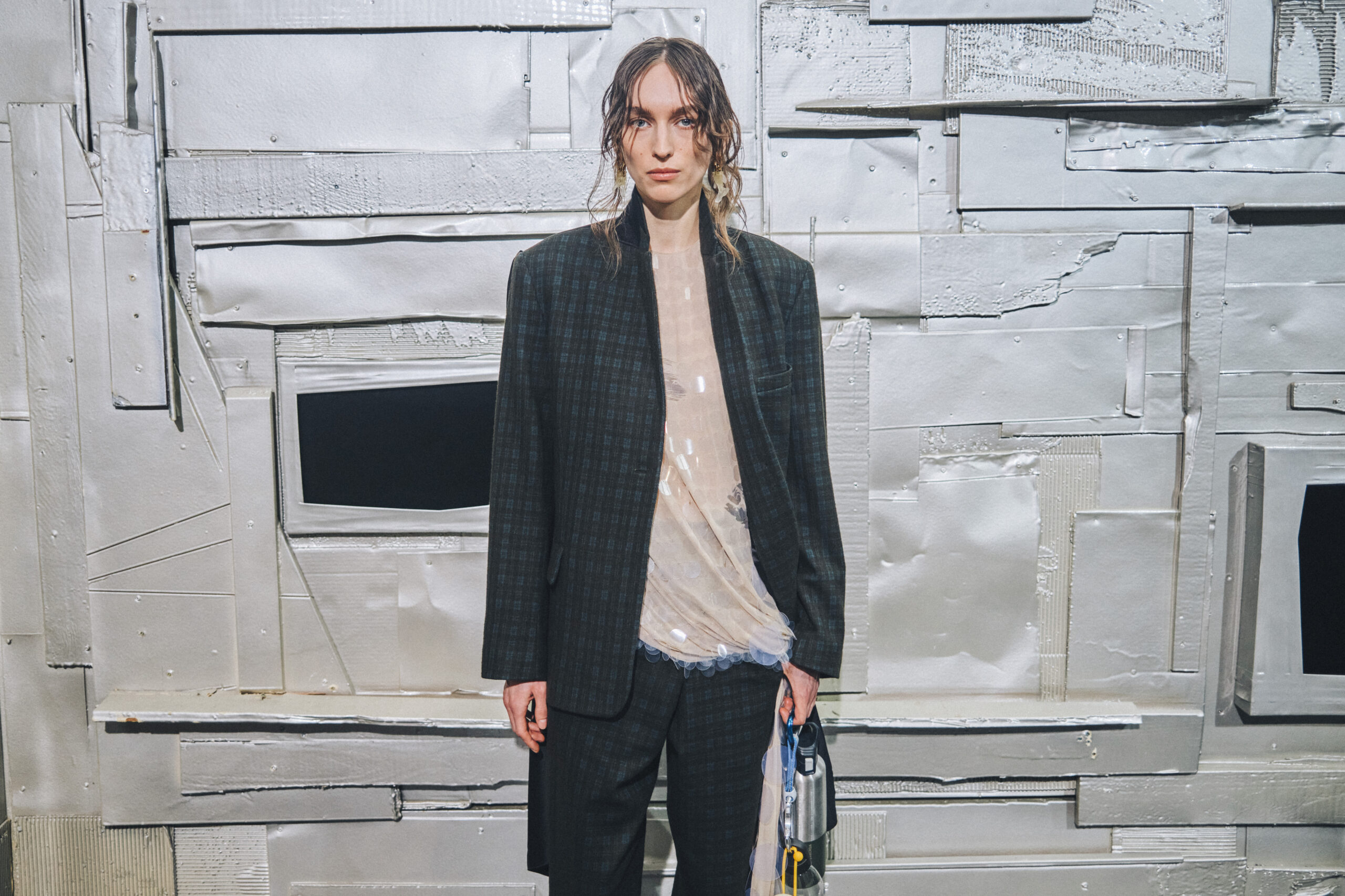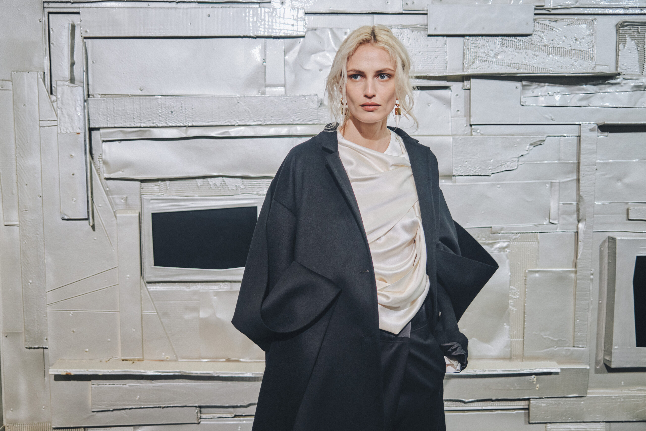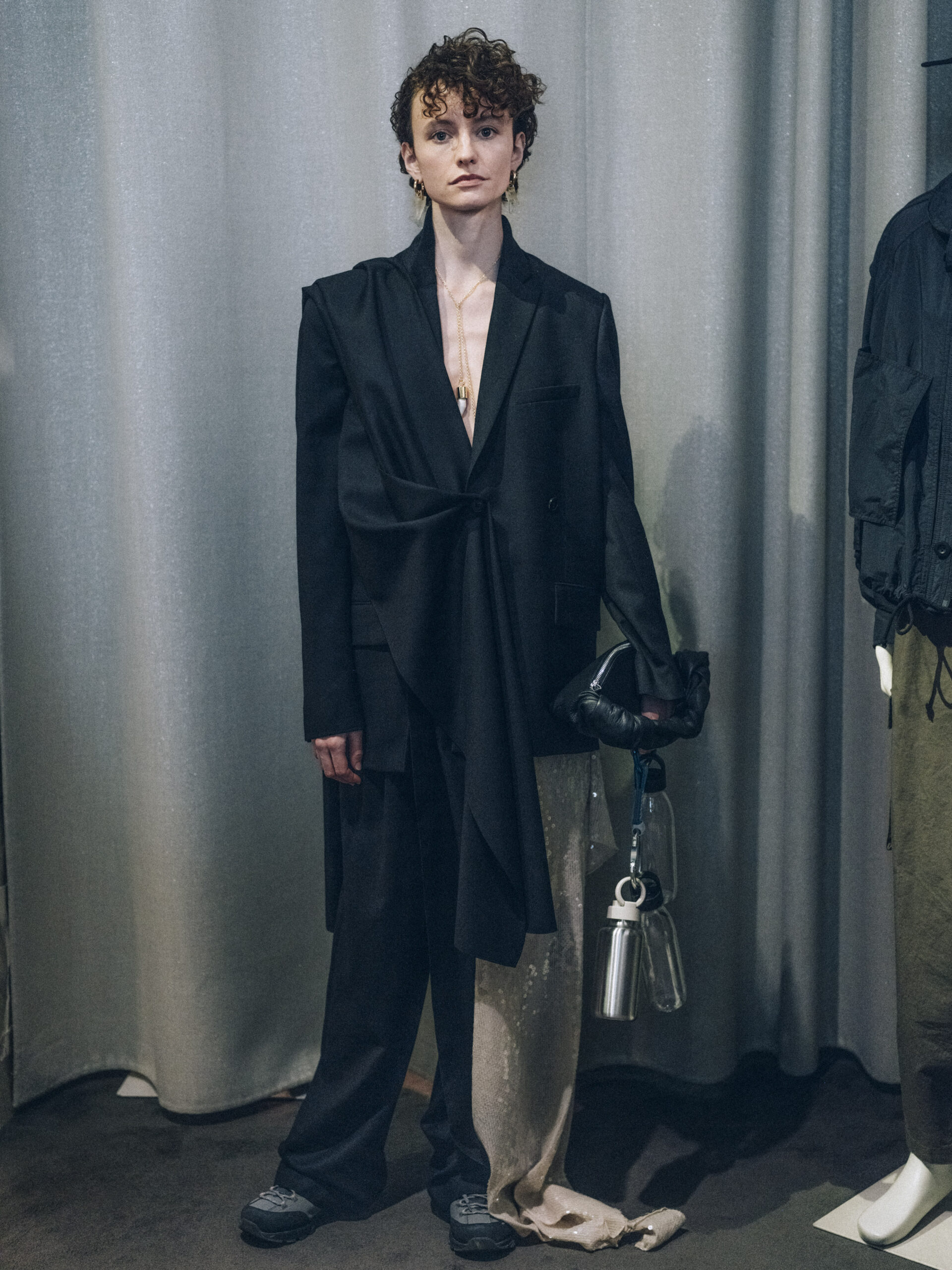 L’originalité de cette collection ne s’arrête pas là. Les écharpes enroulées en cercle invitent à une réflexion sur le temps, perçu non comme une ligne droite, mais comme un cycle éternel de changement et de renaissance. Ce message puissant a été présenté de manière mémorable le 28 février, dans le concept store parisien Leclaireur, lors d’un défilé riche en symbolisme.