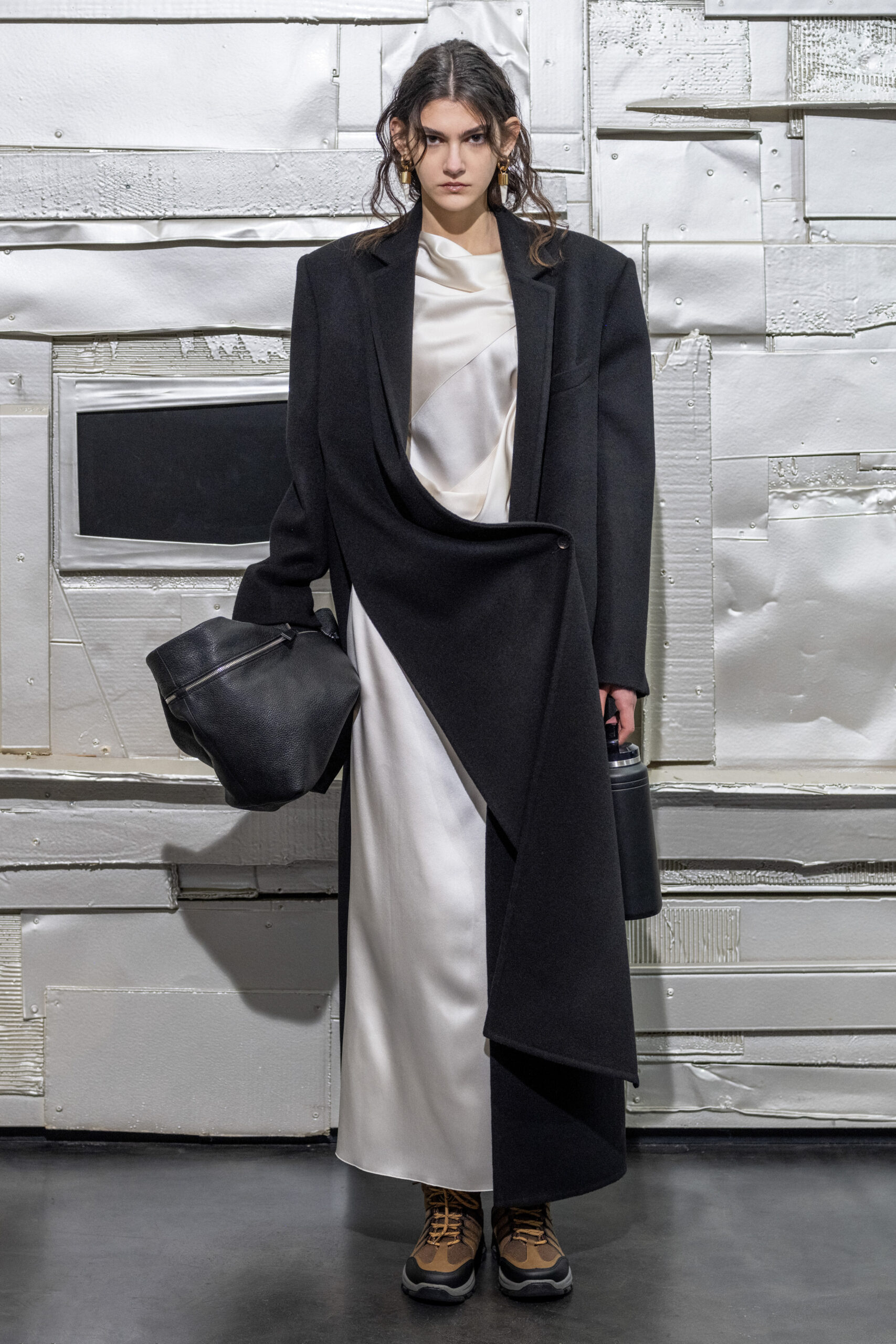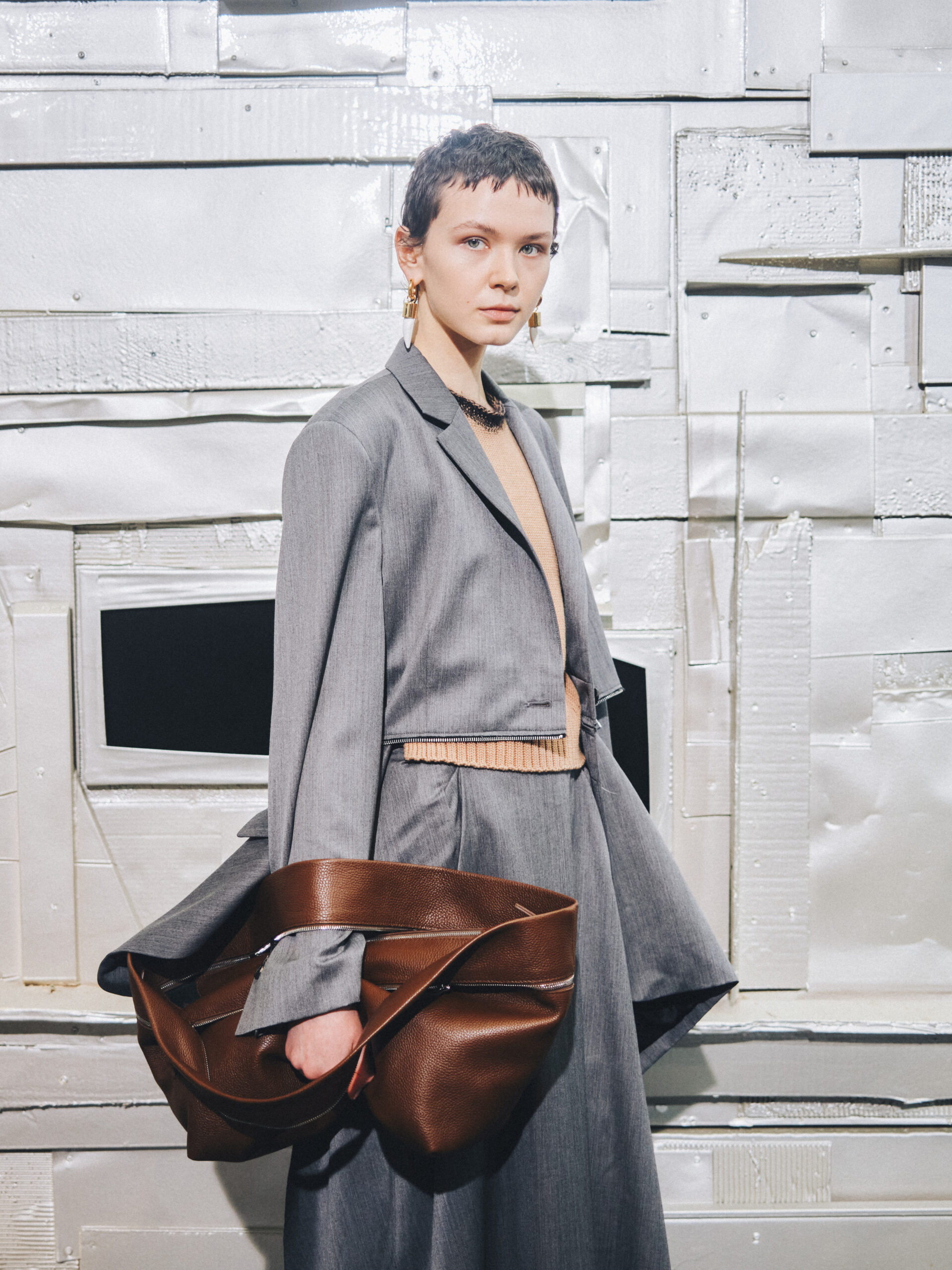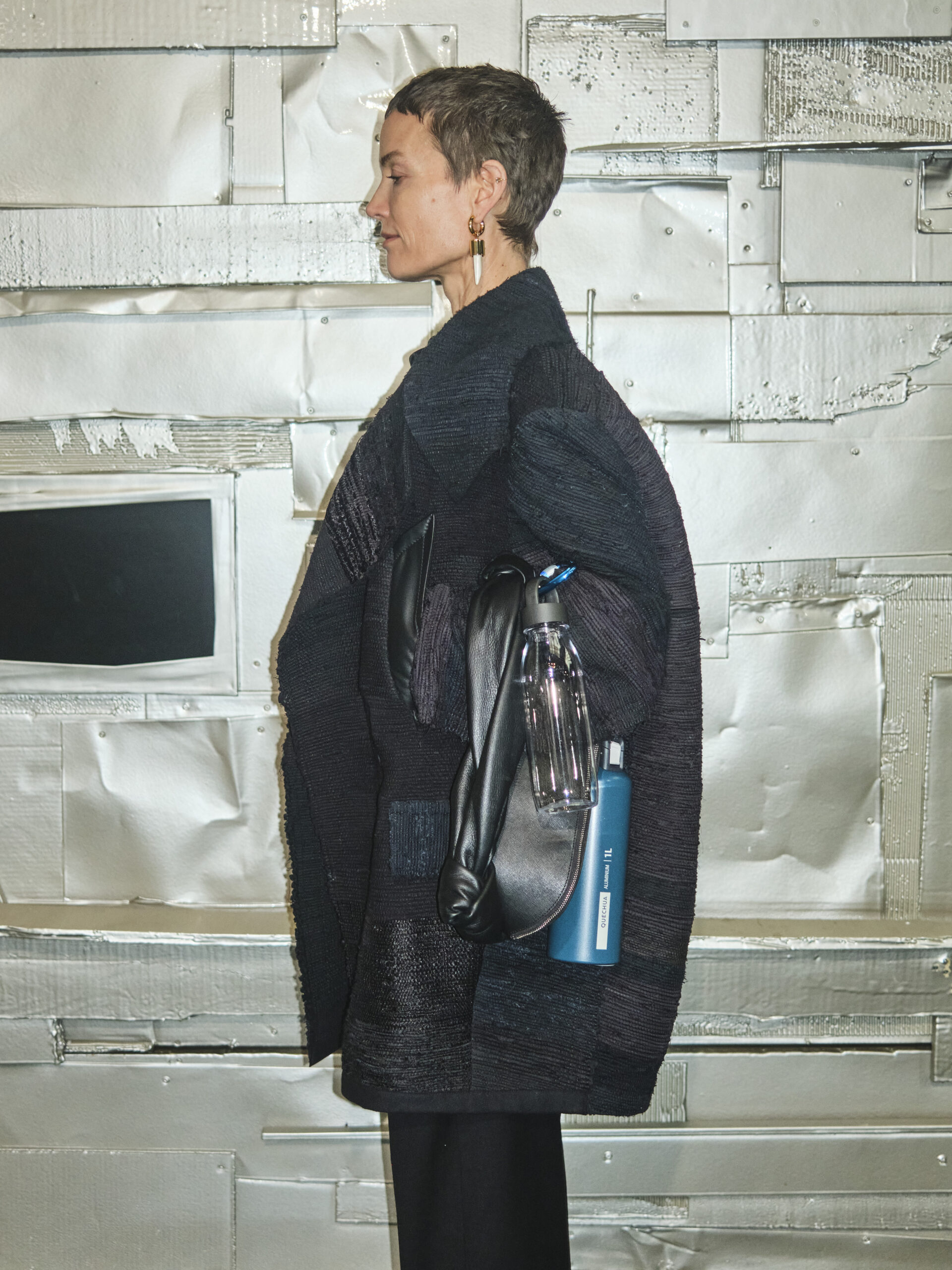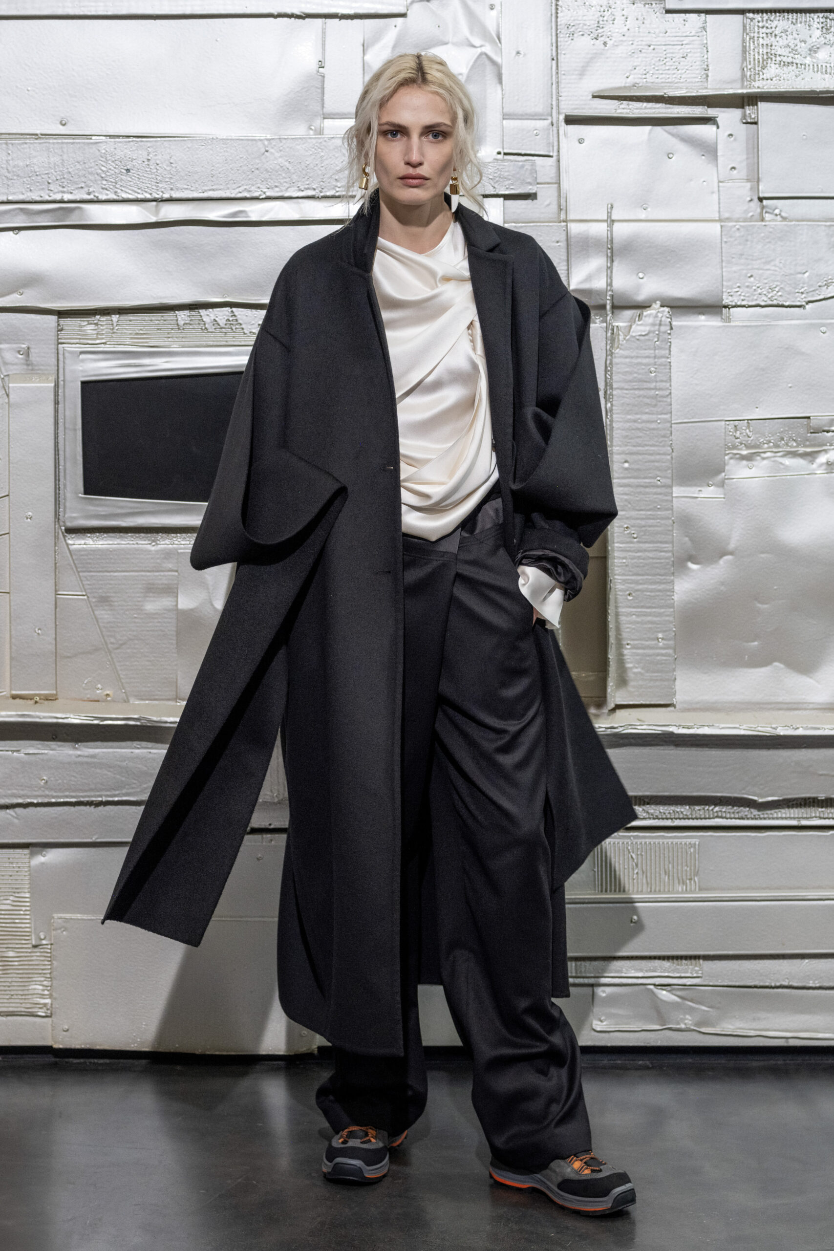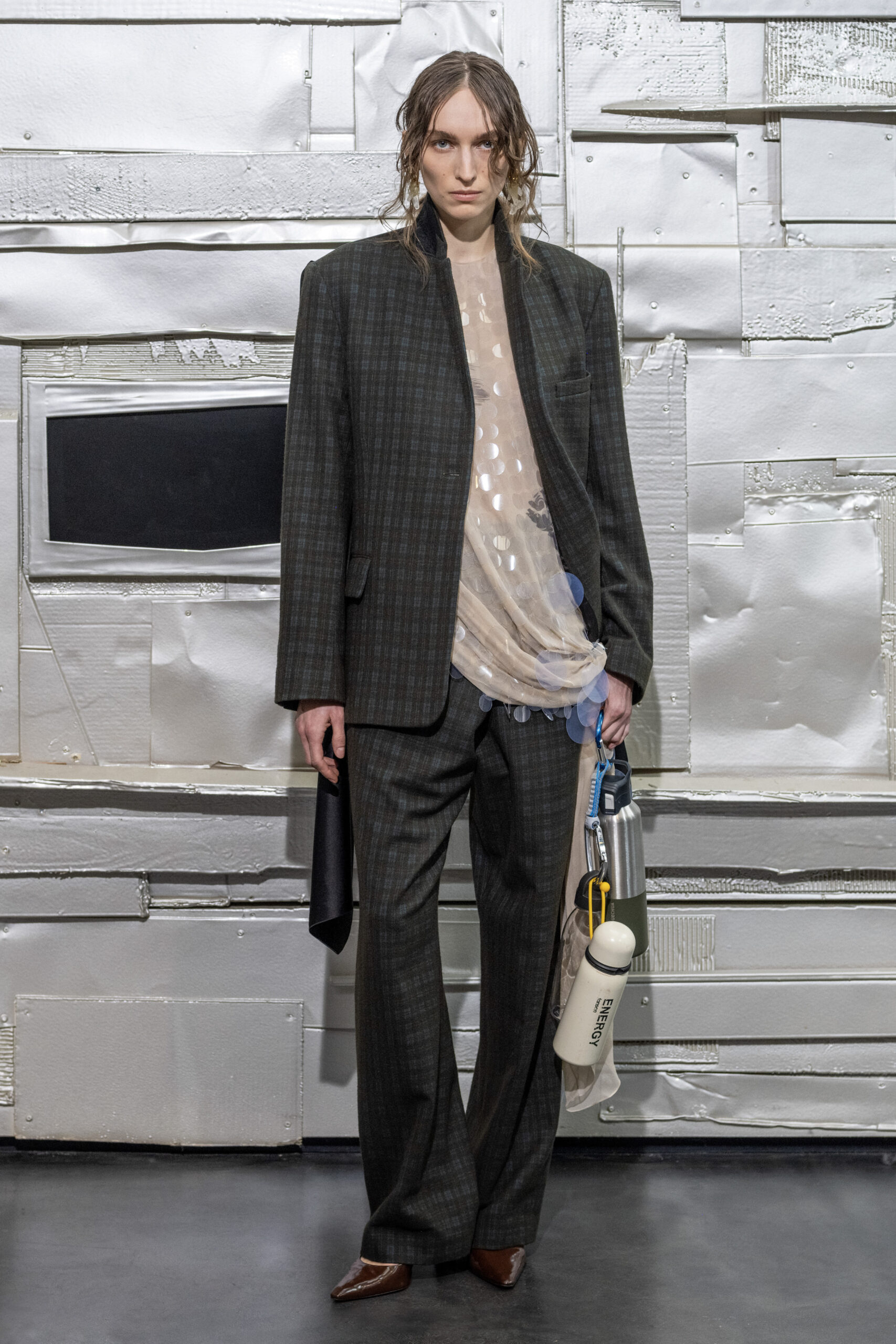 L’originalité de cette collection ne s’arrête pas là. Les écharpes enroulées en cercle invitent à une réflexion sur le temps, perçu non comme une ligne droite, mais comme un cycle éternel de changement et de renaissance. Ce message puissant a été présenté de manière mémorable le 28 février, dans le concept store parisien Leclaireur, lors d’un défilé riche en symbolisme.
