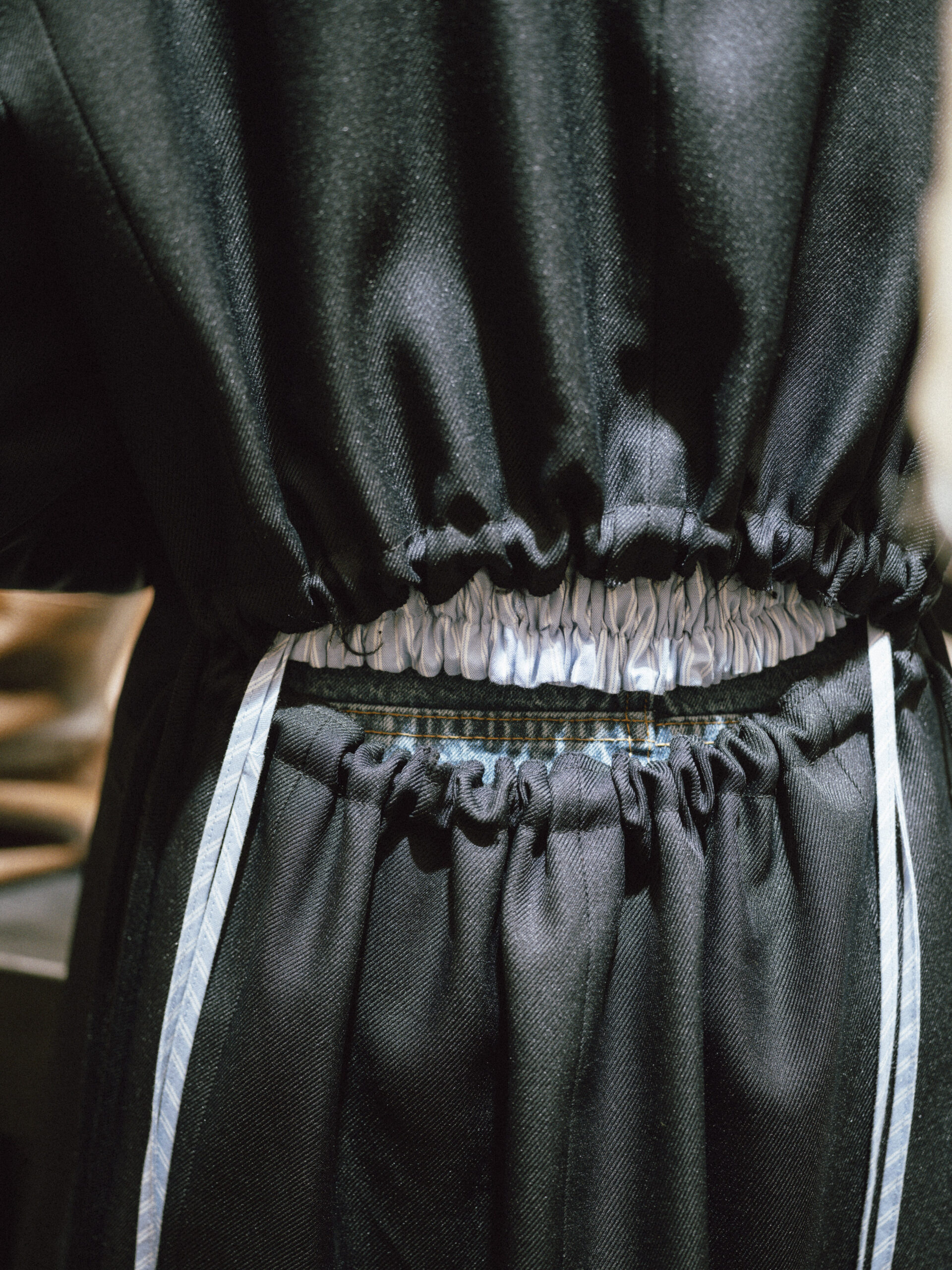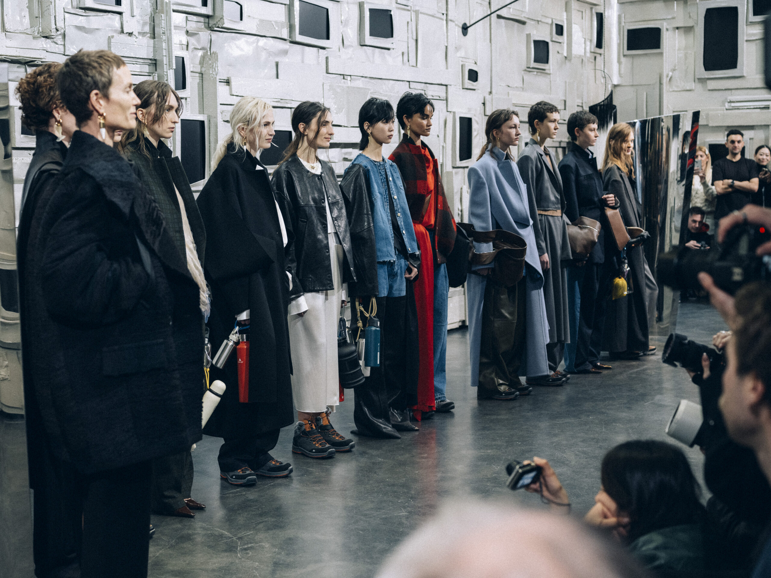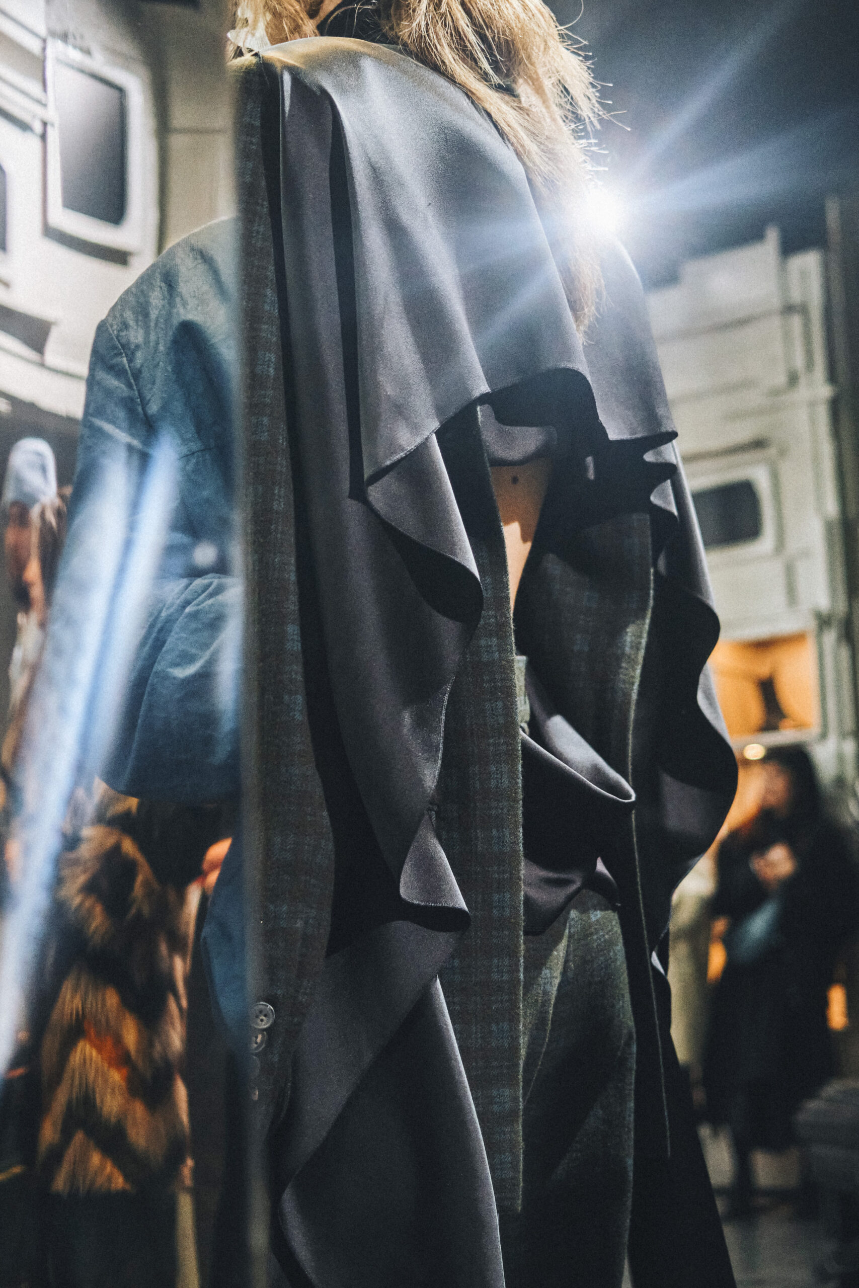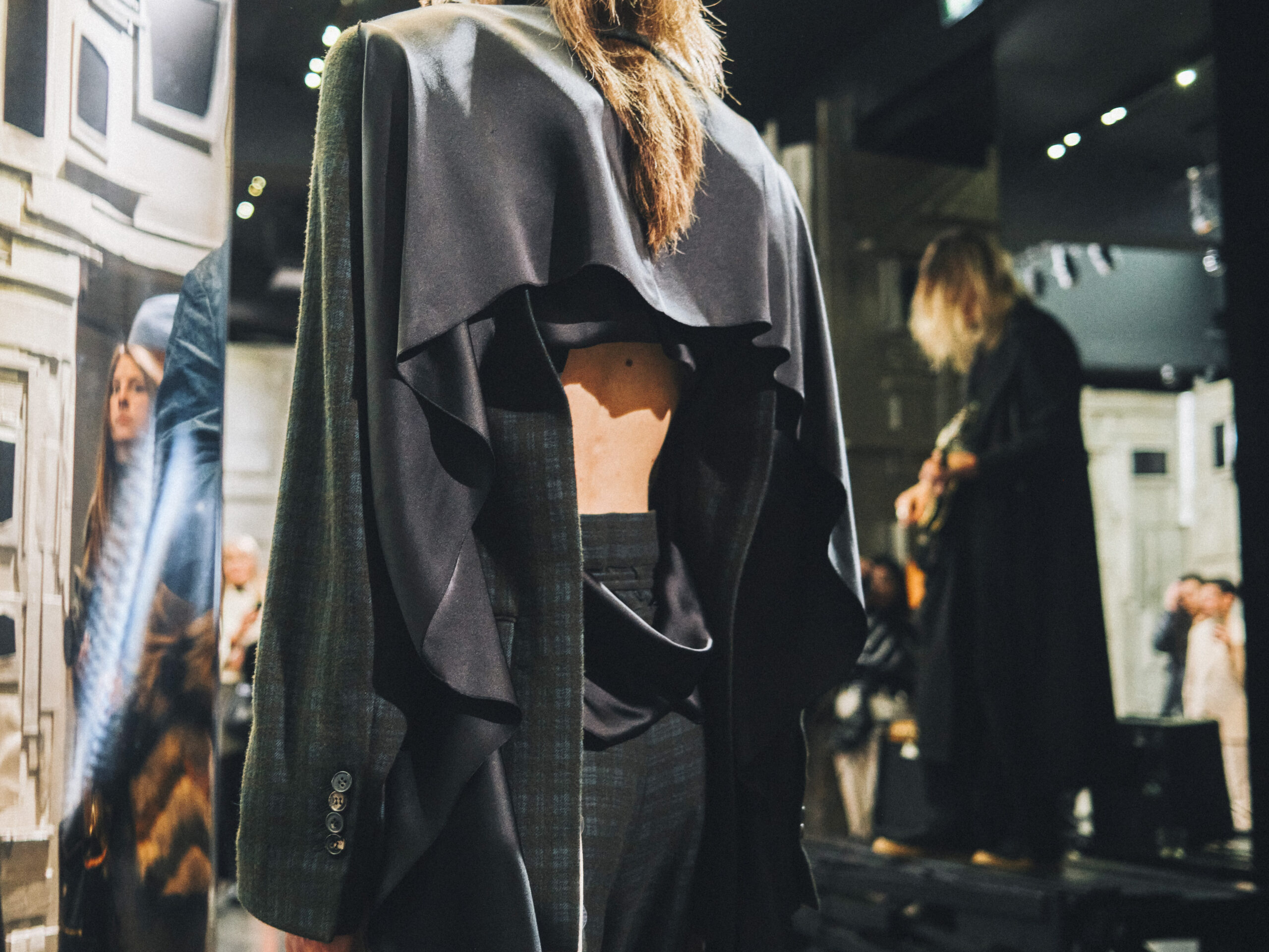 L’originalité de cette collection ne s’arrête pas là. Les écharpes enroulées en cercle invitent à une réflexion sur le temps, perçu non comme une ligne droite, mais comme un cycle éternel de changement et de renaissance. Ce message puissant a été présenté de manière mémorable le 28 février, dans le concept store parisien Leclaireur, lors d’un défilé riche en symbolisme.