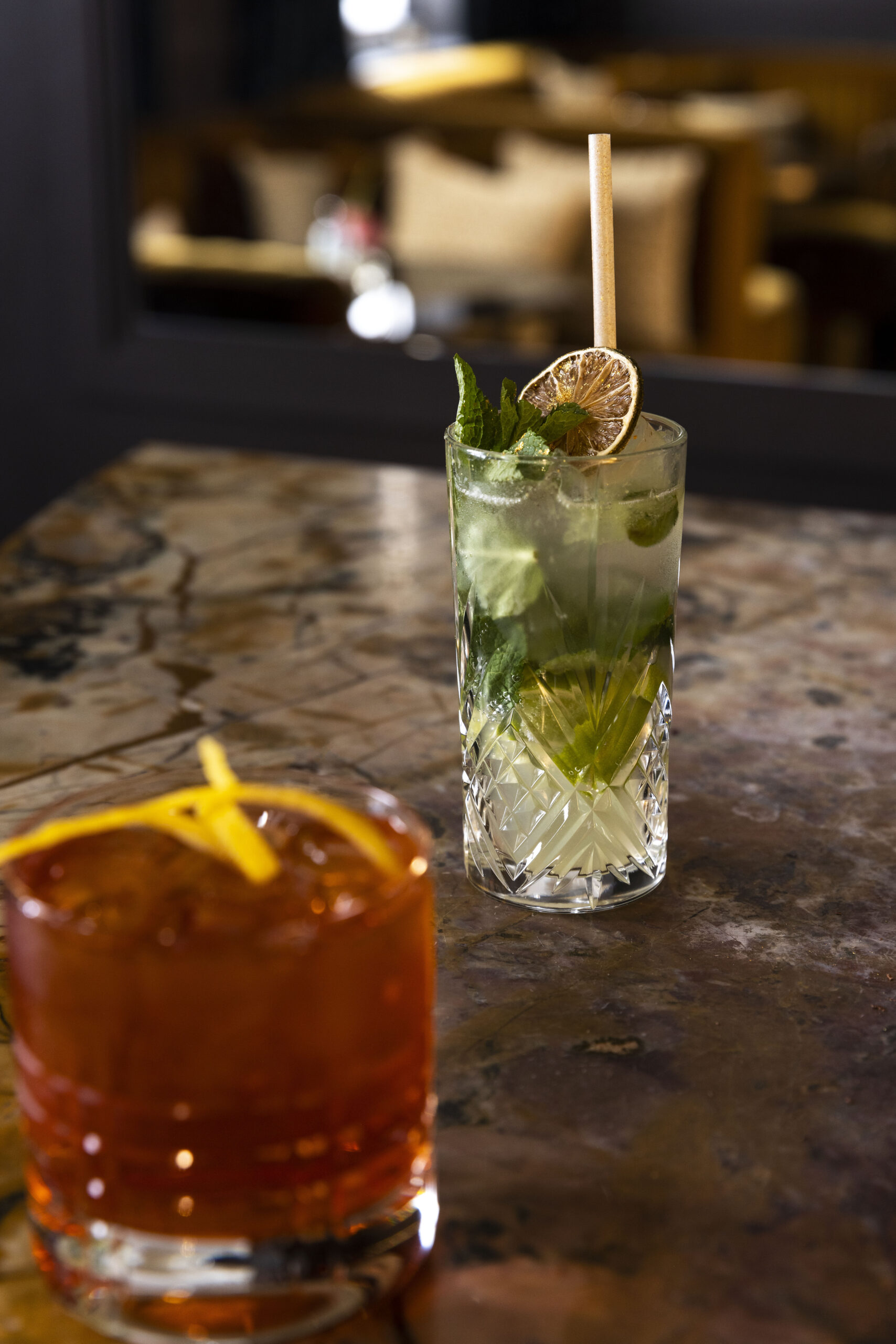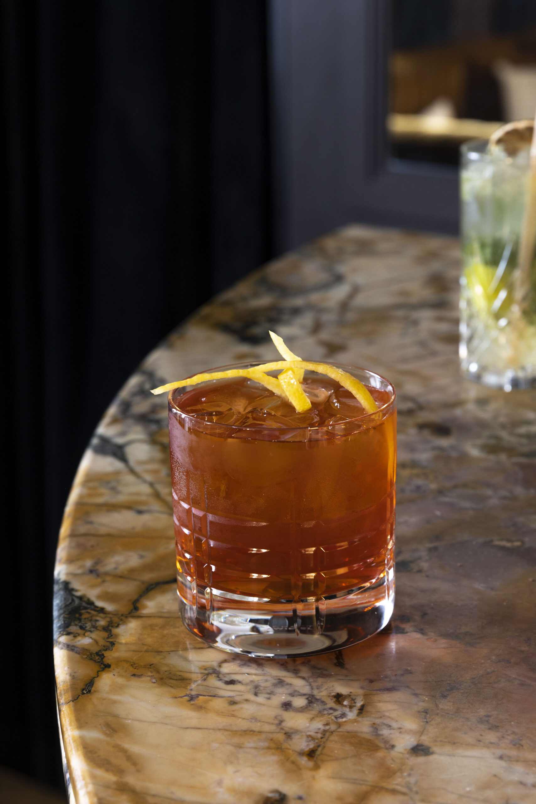 Situé au cœur de Paris, dans un cadre luxueux, The Confidential offre une expérience intime et raffinée. Le mélange subtil d’épais rideaux en velours, de chêne massif pour le bar, et de sublime marbre confère à ce lieu une atmosphère unique. Dès que l’on pénètre dans The Confidential, on se retrouve dans un cocon de confort, que l’on soit lovés dans les confortables canapés ou assis au comptoir à observer les bartenders à l’œuvre.