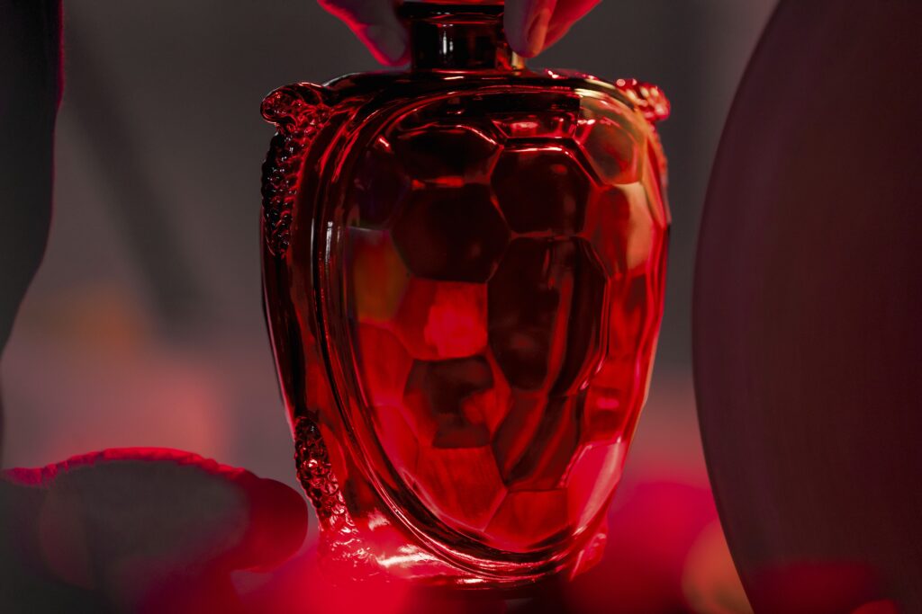 Le Flacon Tortue, née en 1914, est un symbole intemporel de l’artisanat et de la créativité. Pour cette édition spéciale, Guerlain et Baccarat ont conjugué leur savoir-faire pour créer un objet d’art qui incarne à la fois l’histoire et la modernité. Le rouge Baccarat, obtenu par infusion de cristal transparent avec de l’or 24 carats, offre une nuance unique qui symbolise la fusion de la tradition et de l’innovation.