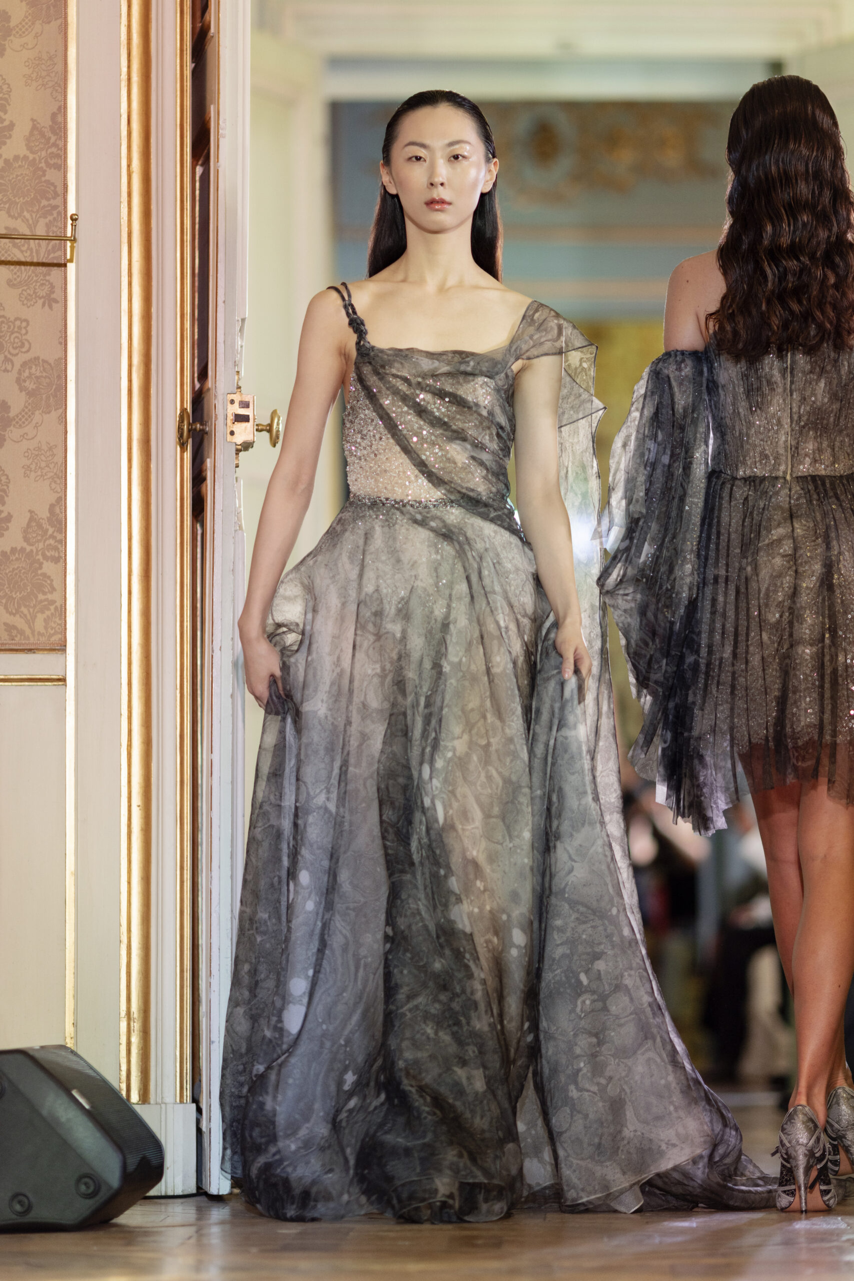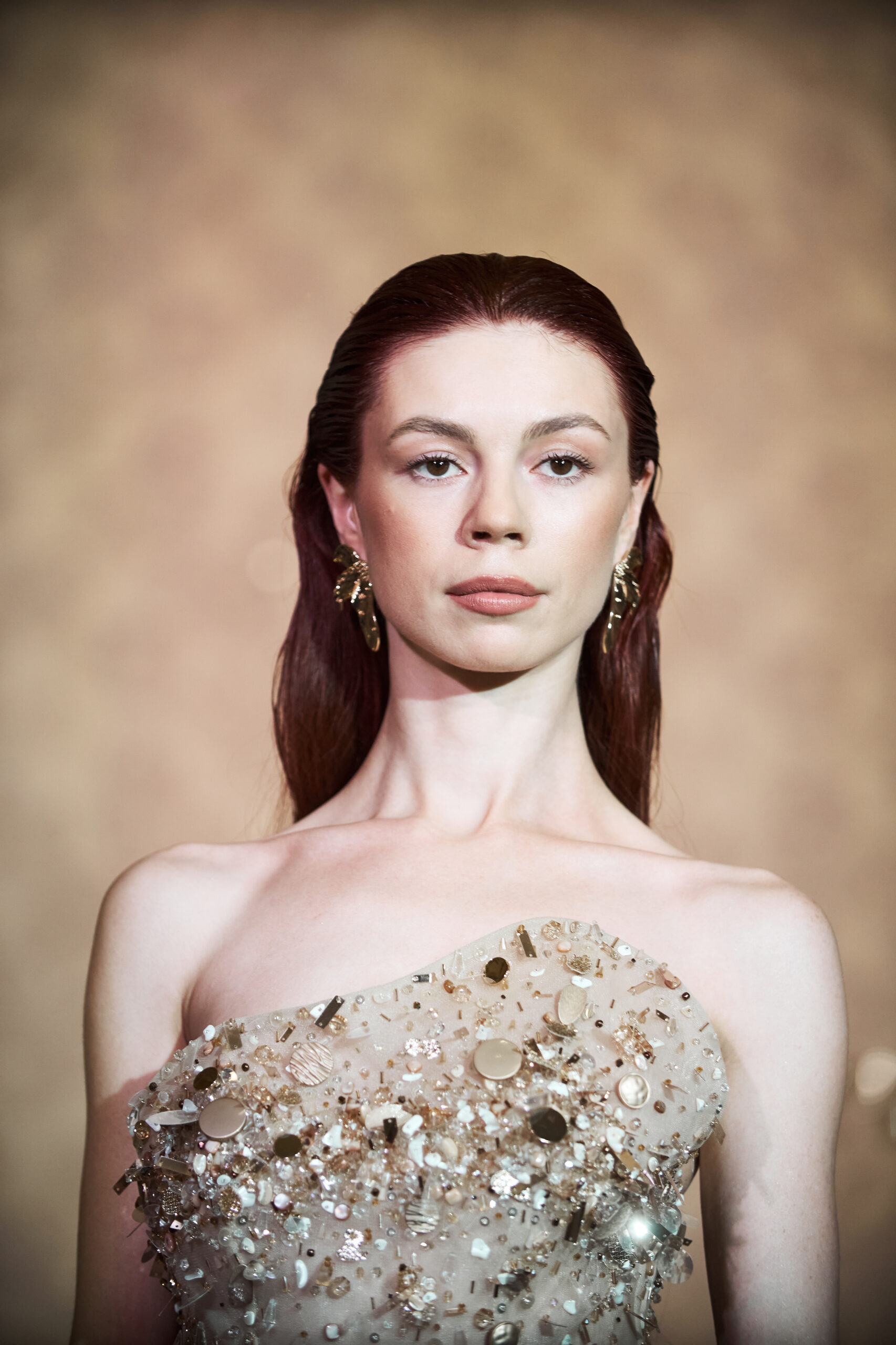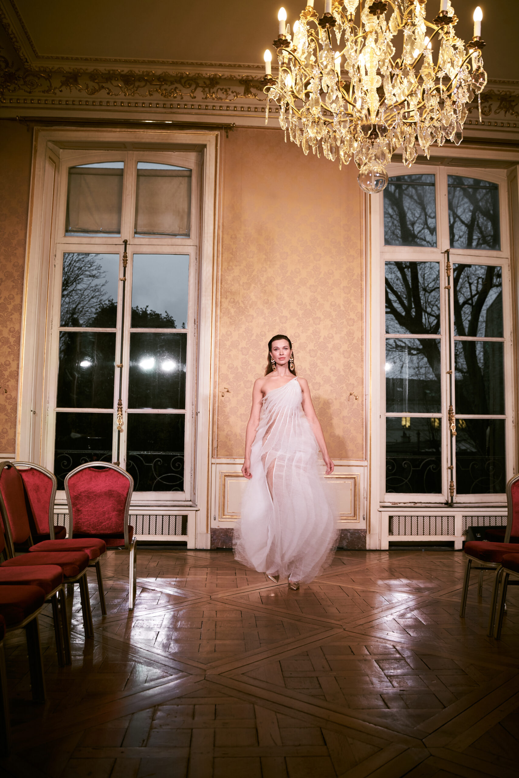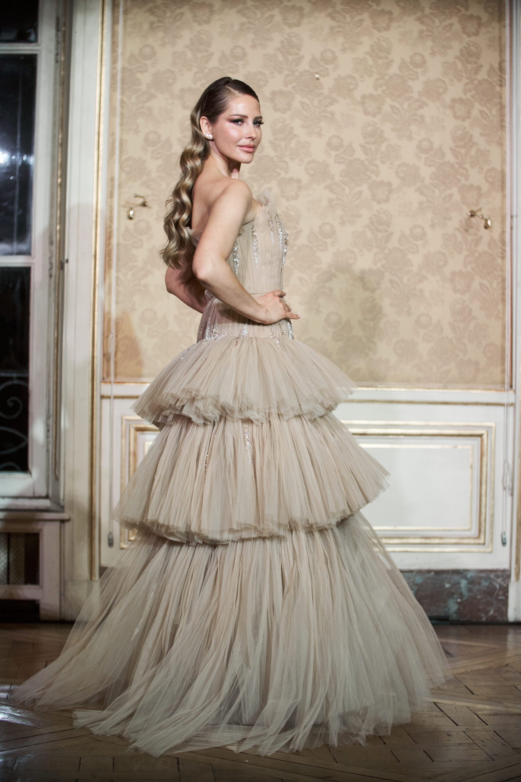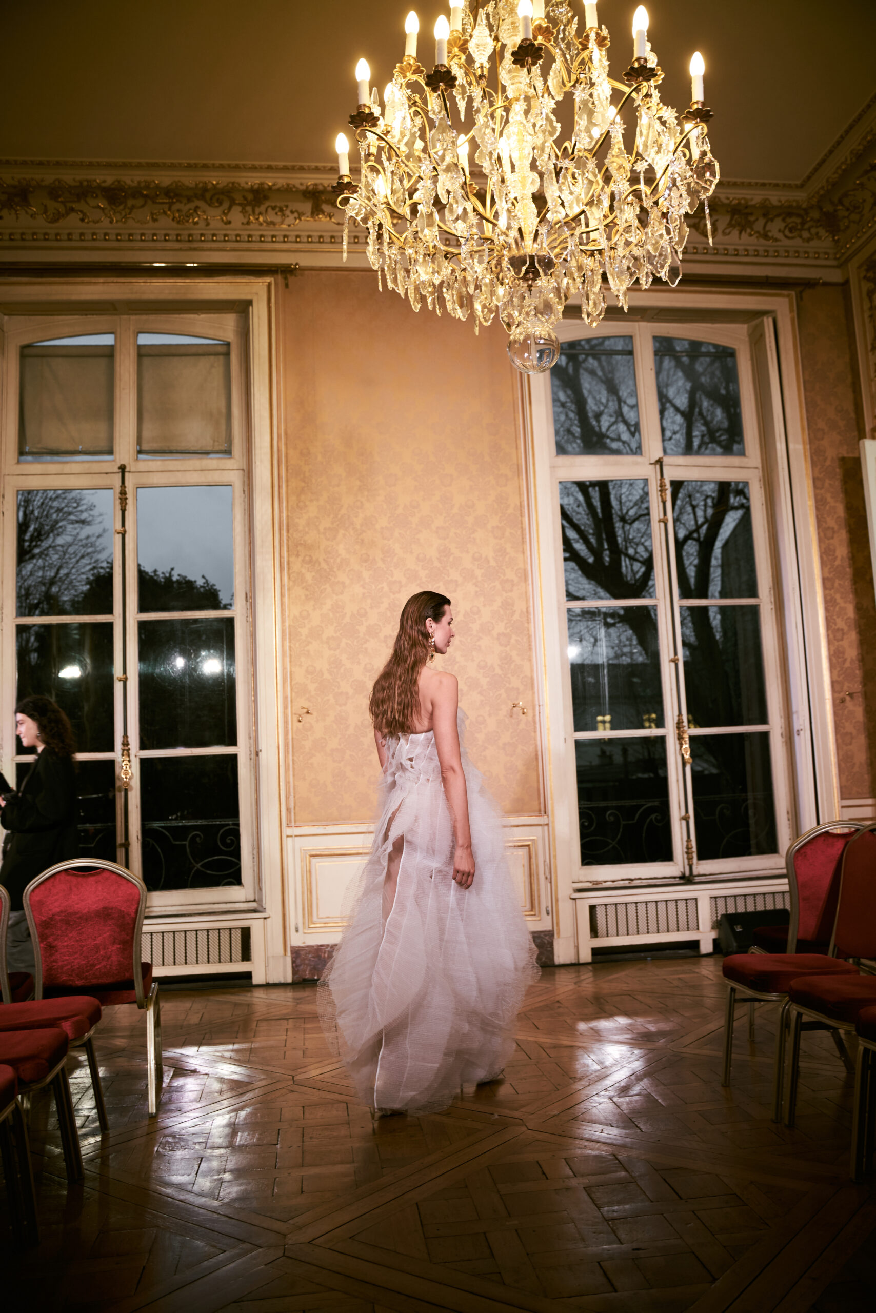 Veronika Jeanvie a clôturé la deuxième journée avec sa collection capsule nuptiale, reflétant les temps changeants et l’amour persistant, inspirée par les paysages parisiens et marquée par une performance émouvante de la prima ballerina Liudmila Konovalova du Ballet de l’État de Vienne.