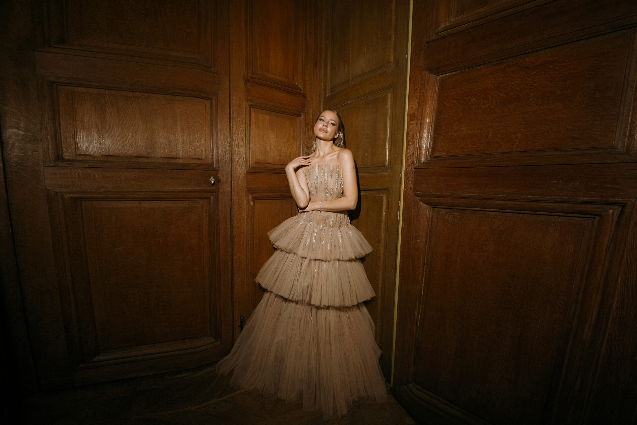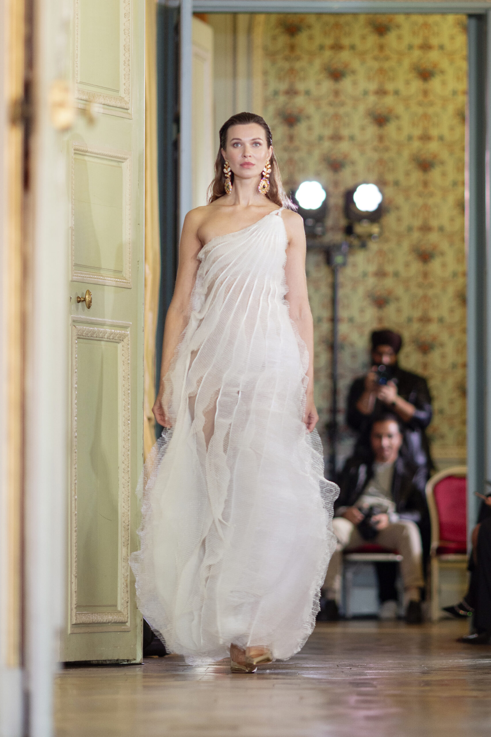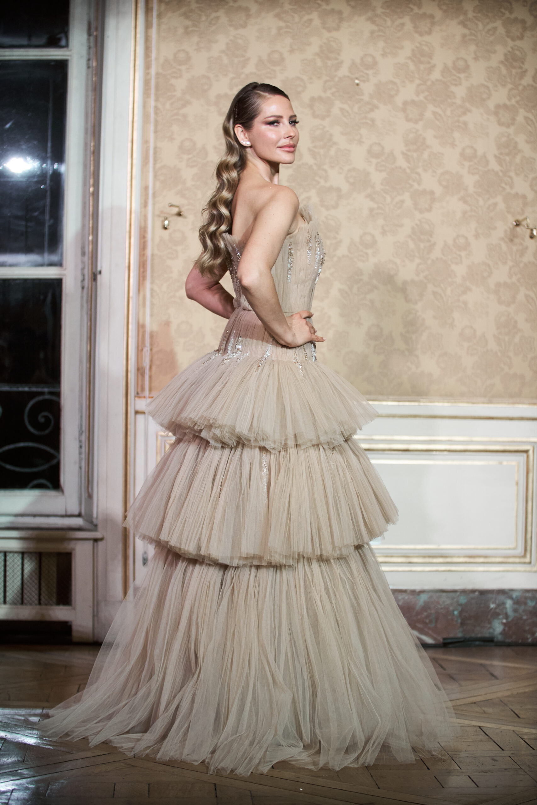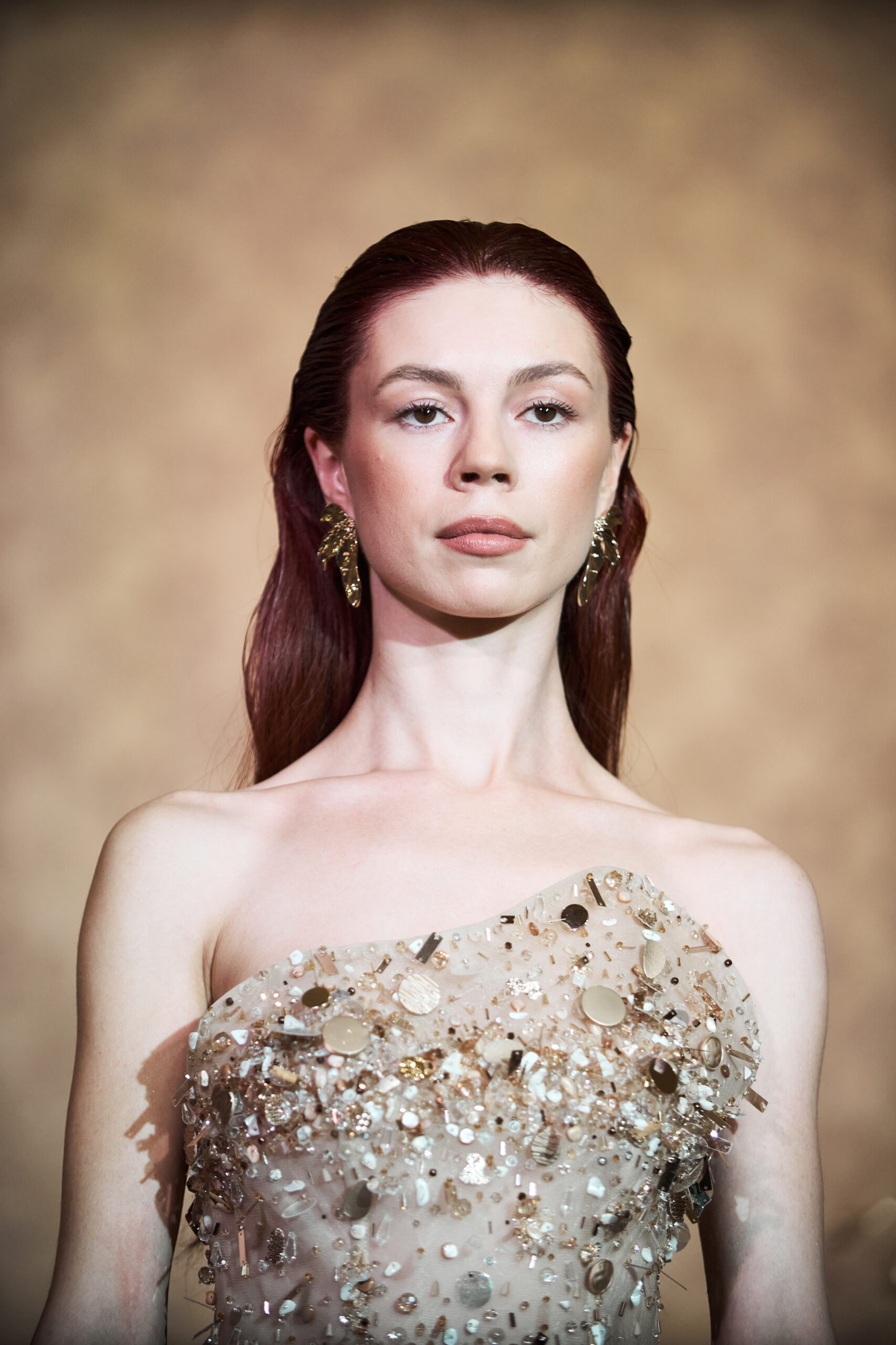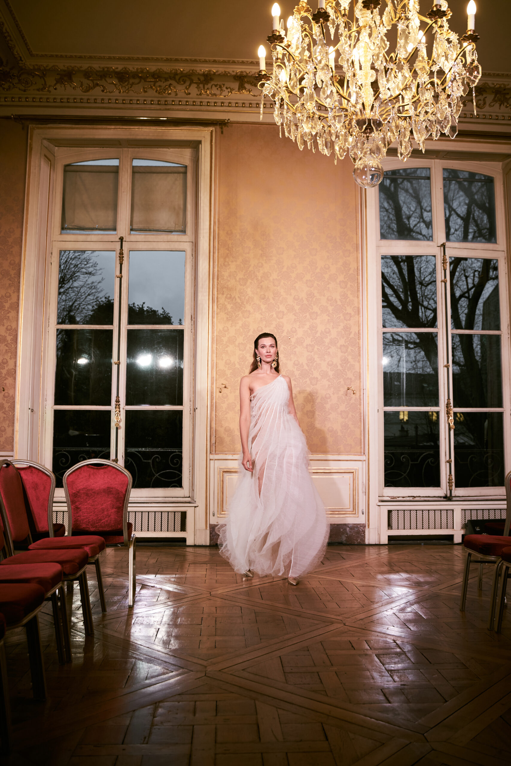 Veronika Jeanvie a clôturé la deuxième journée avec sa collection capsule nuptiale, reflétant les temps changeants et l’amour persistant, inspirée par les paysages parisiens et marquée par une performance émouvante de la prima ballerina Liudmila Konovalova du Ballet de l’État de Vienne.