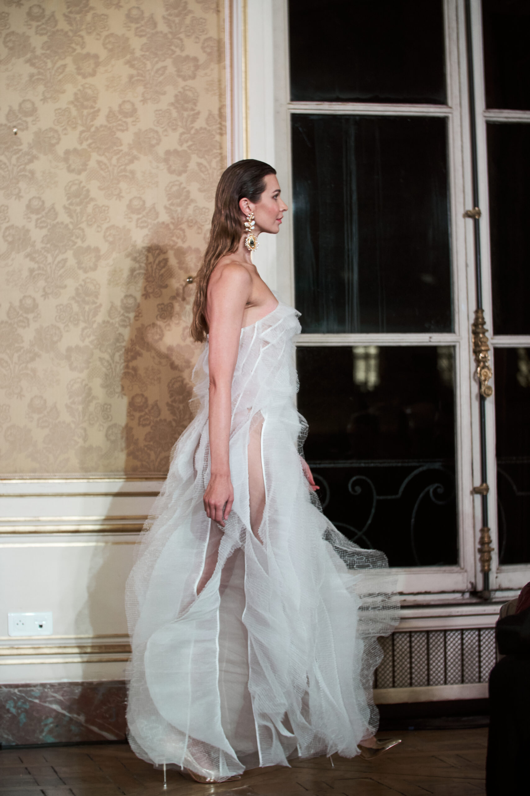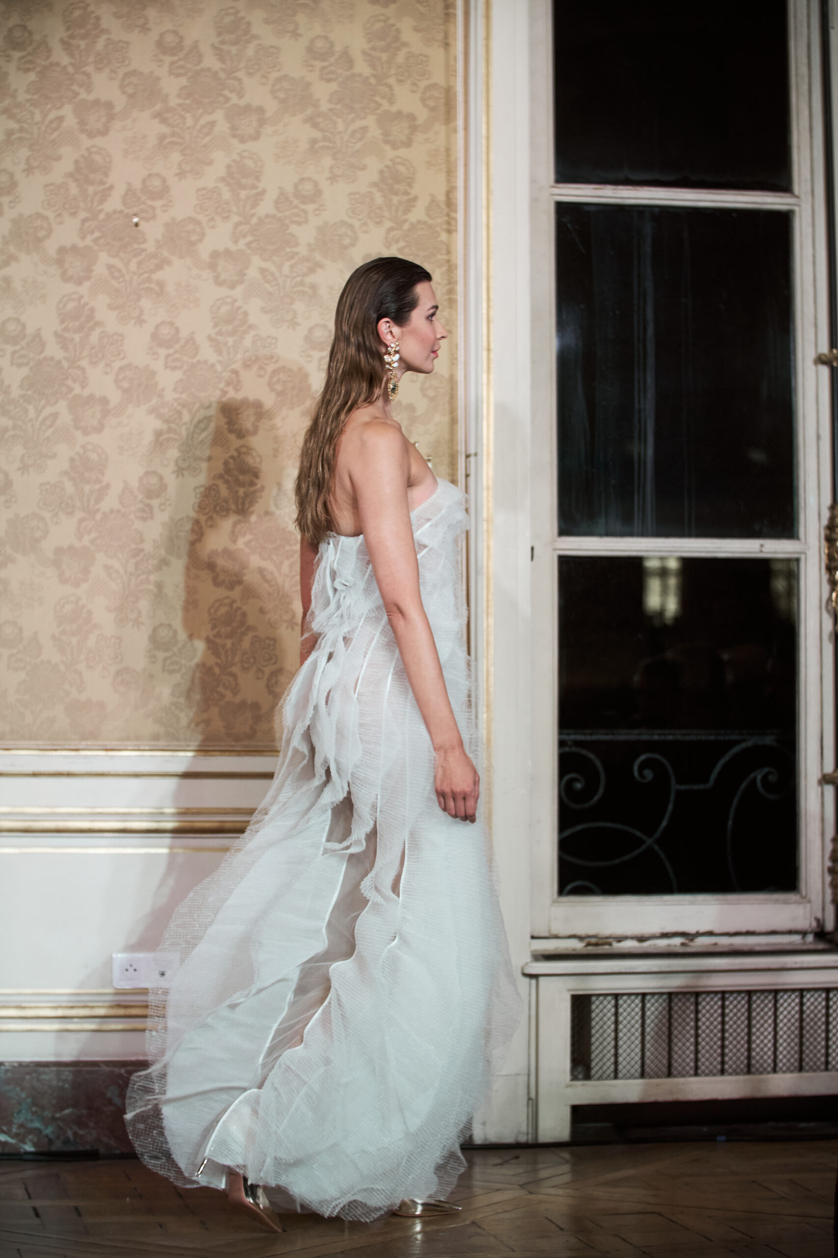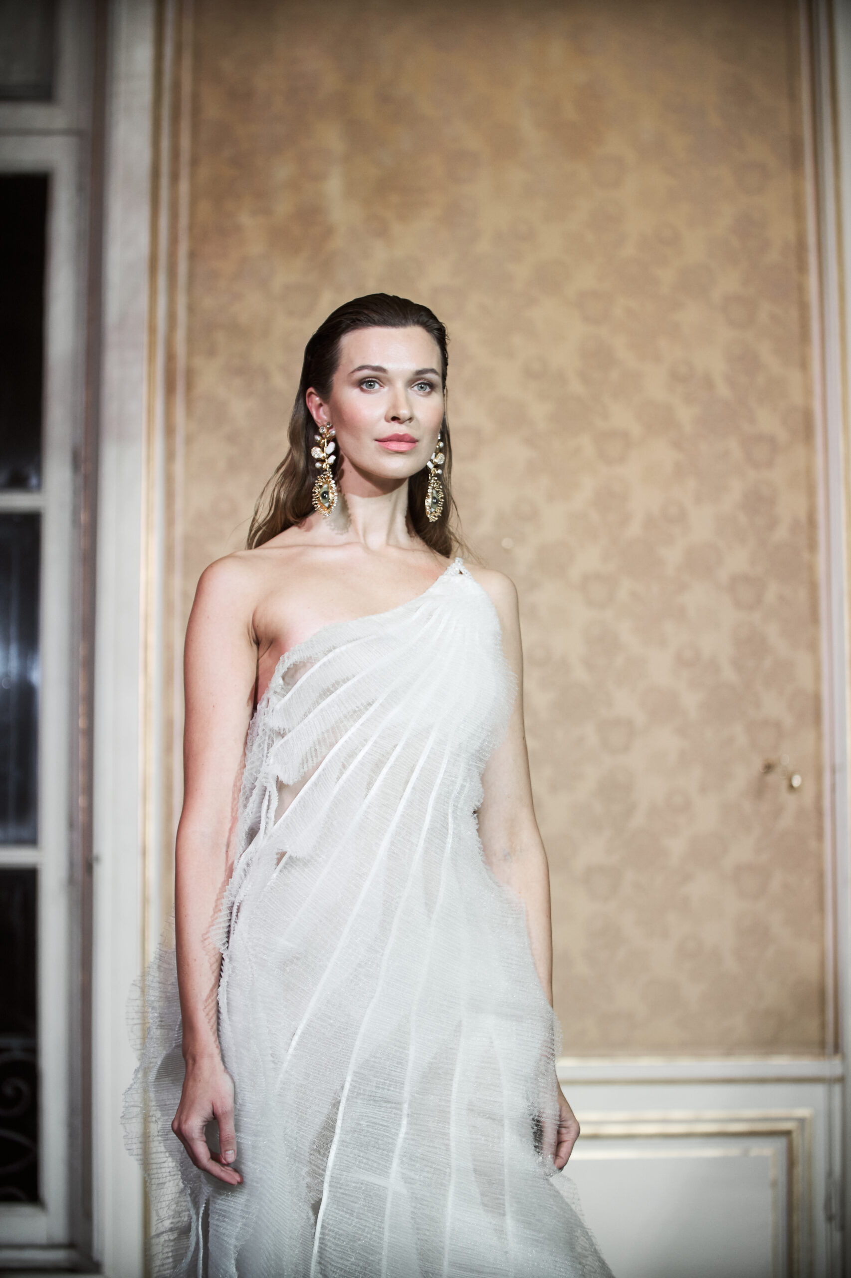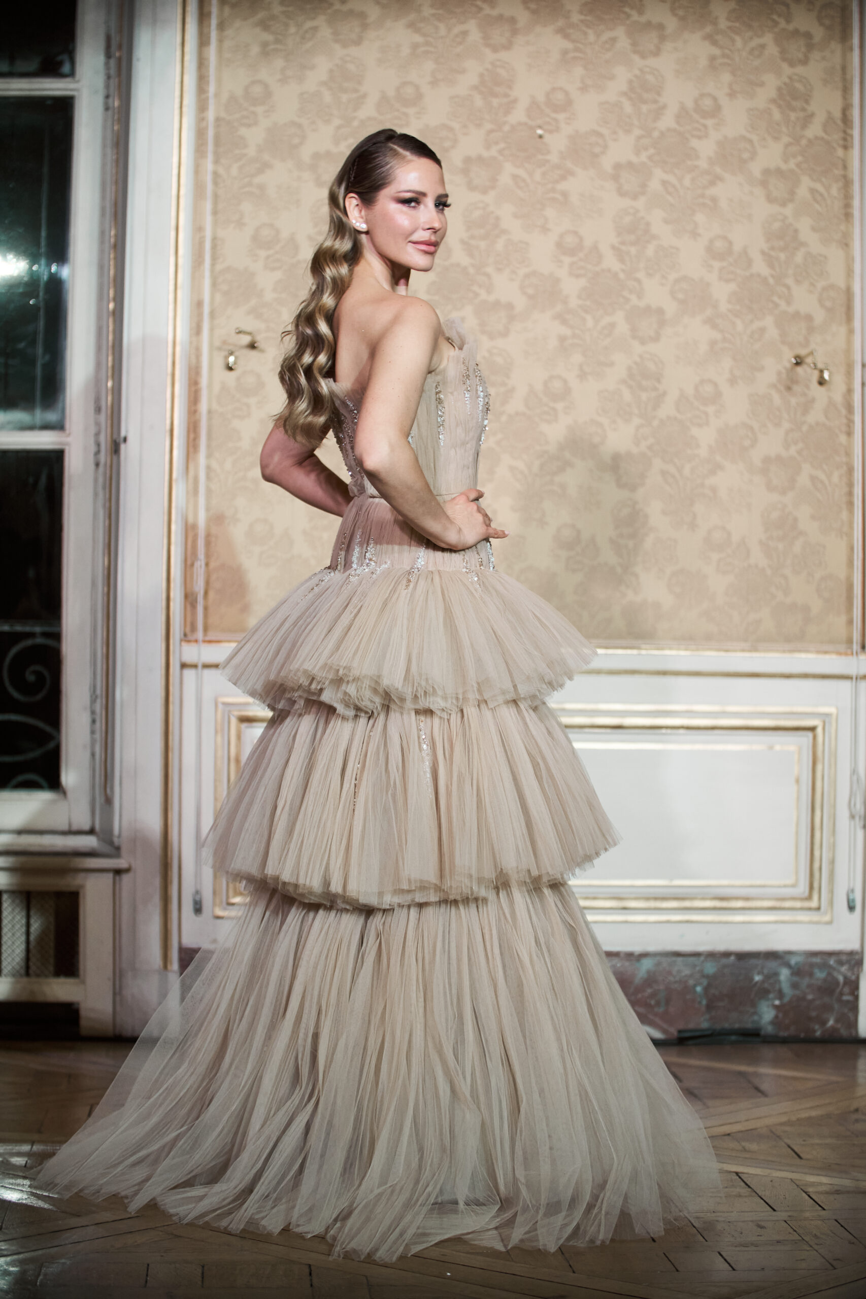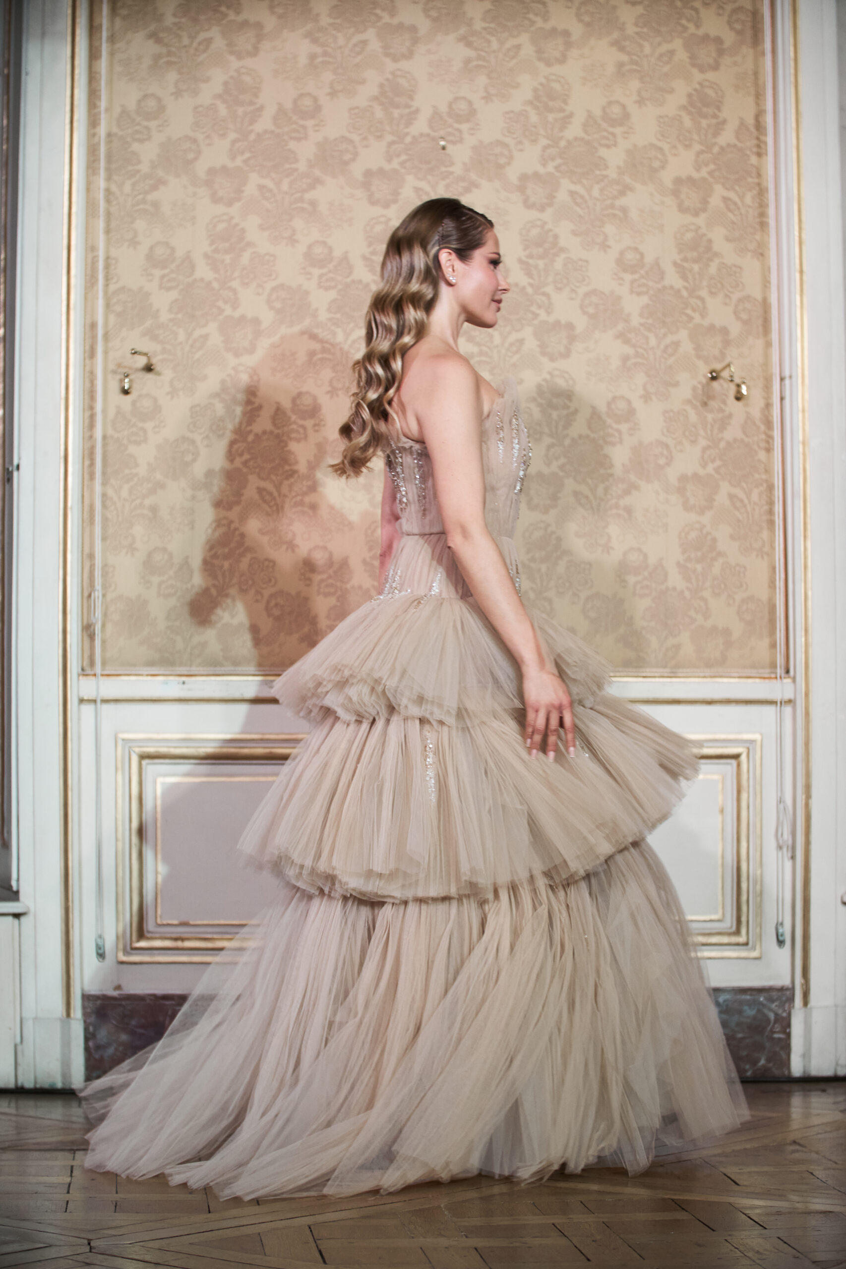 Veronika Jeanvie a clôturé la deuxième journée avec sa collection capsule nuptiale, reflétant les temps changeants et l’amour persistant, inspirée par les paysages parisiens et marquée par une performance émouvante de la prima ballerina Liudmila Konovalova du Ballet de l’État de Vienne.