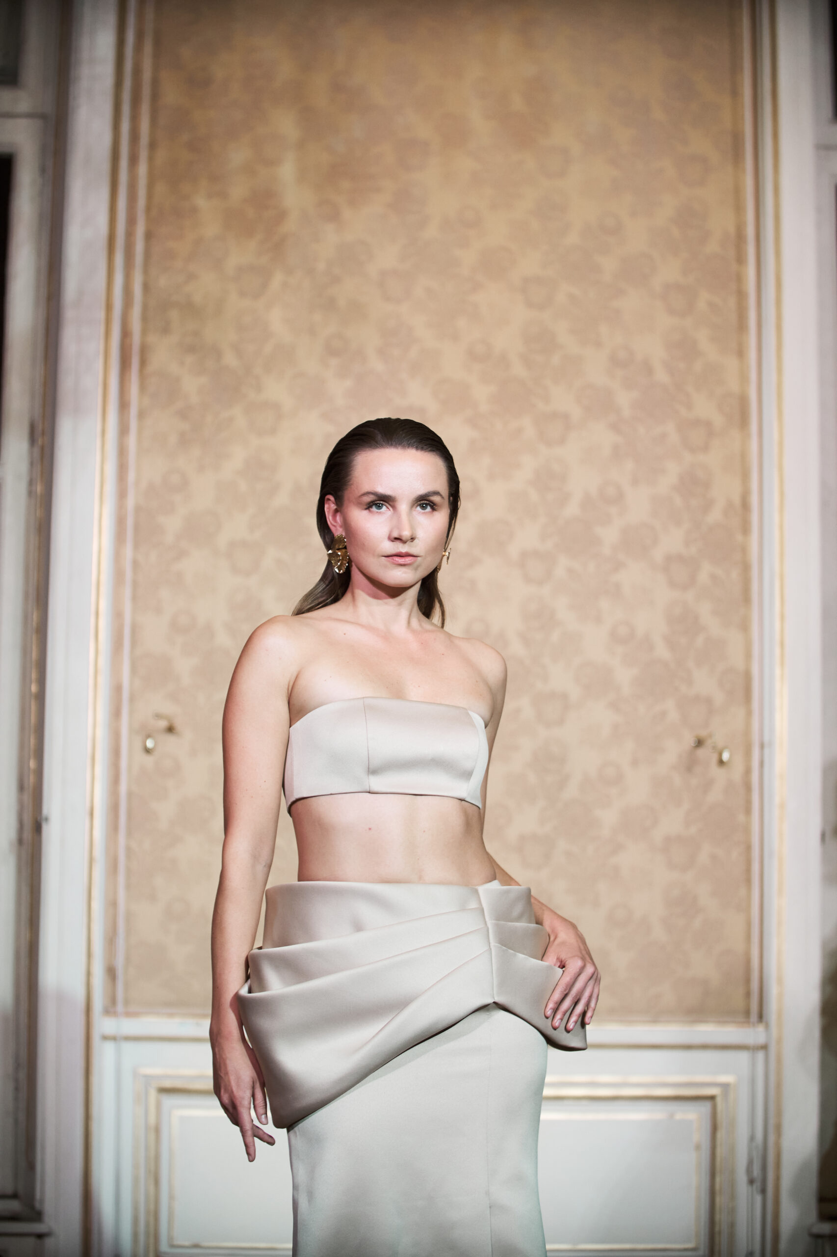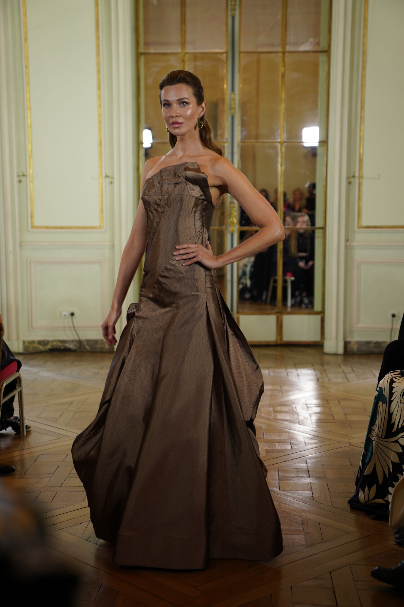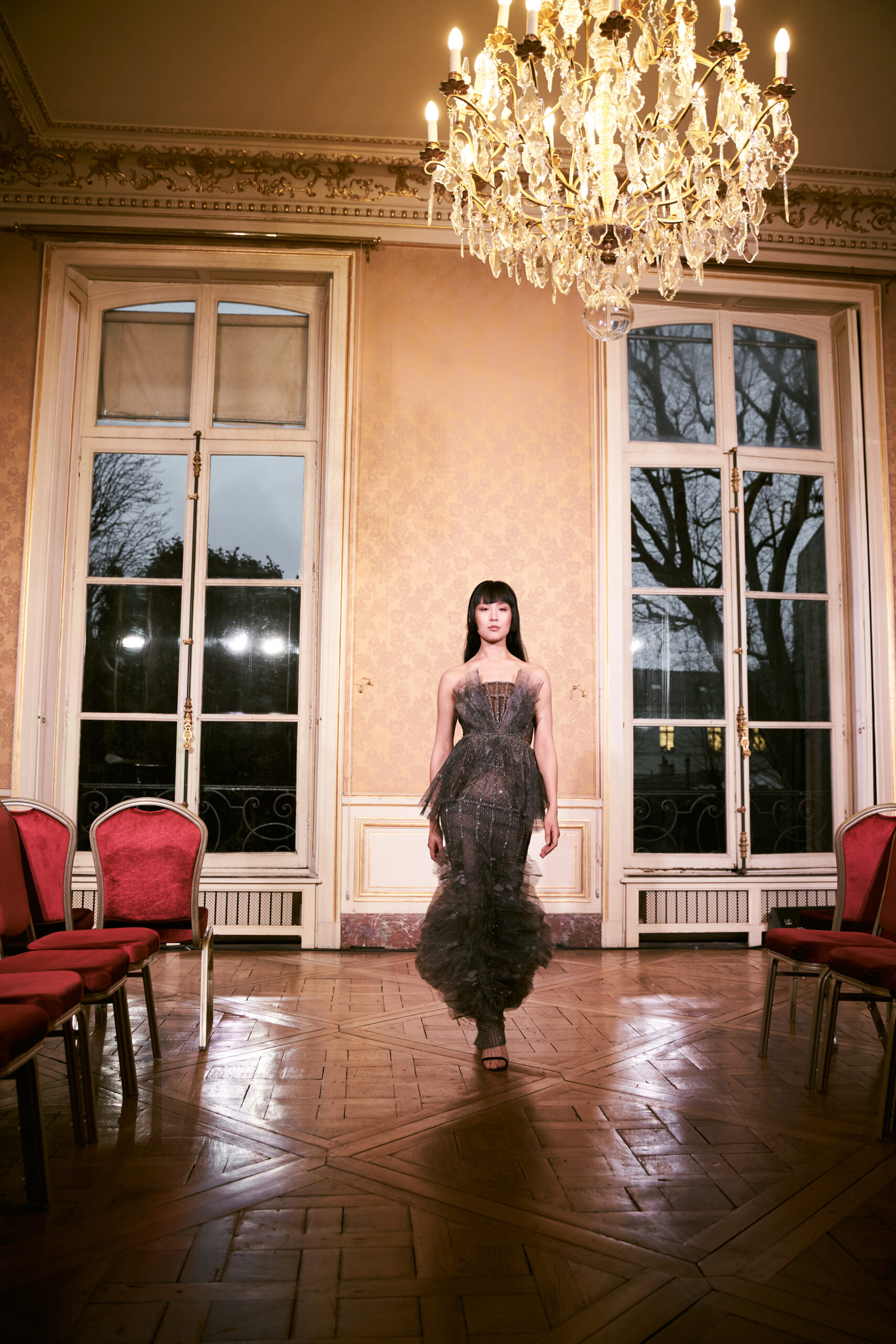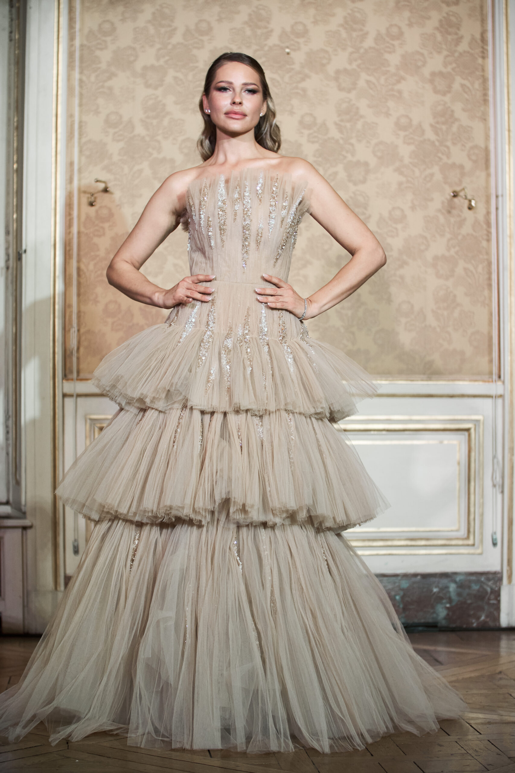 Veronika Jeanvie a clôturé la deuxième journée avec sa collection capsule nuptiale, reflétant les temps changeants et l’amour persistant, inspirée par les paysages parisiens et marquée par une performance émouvante de la prima ballerina Liudmila Konovalova du Ballet de l’État de Vienne.