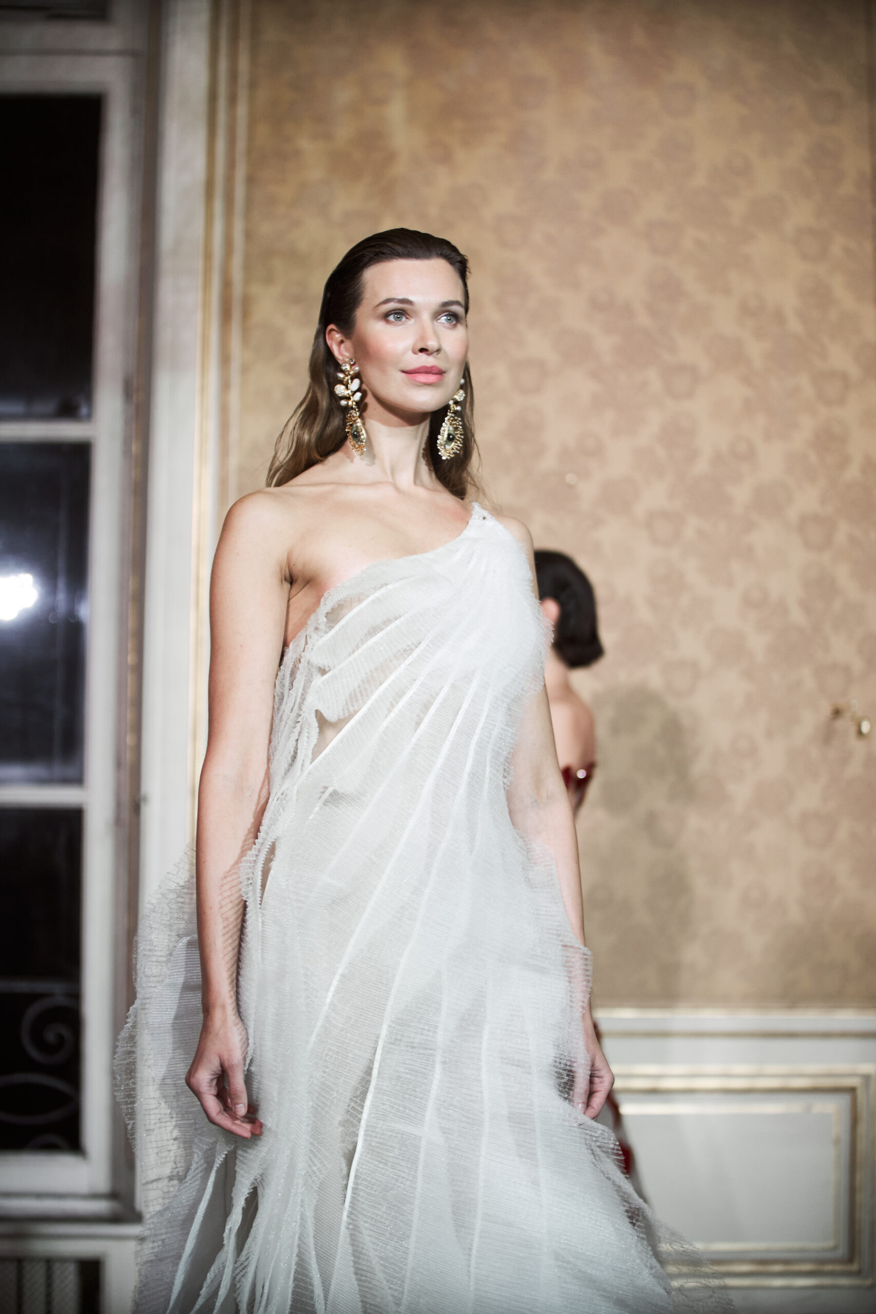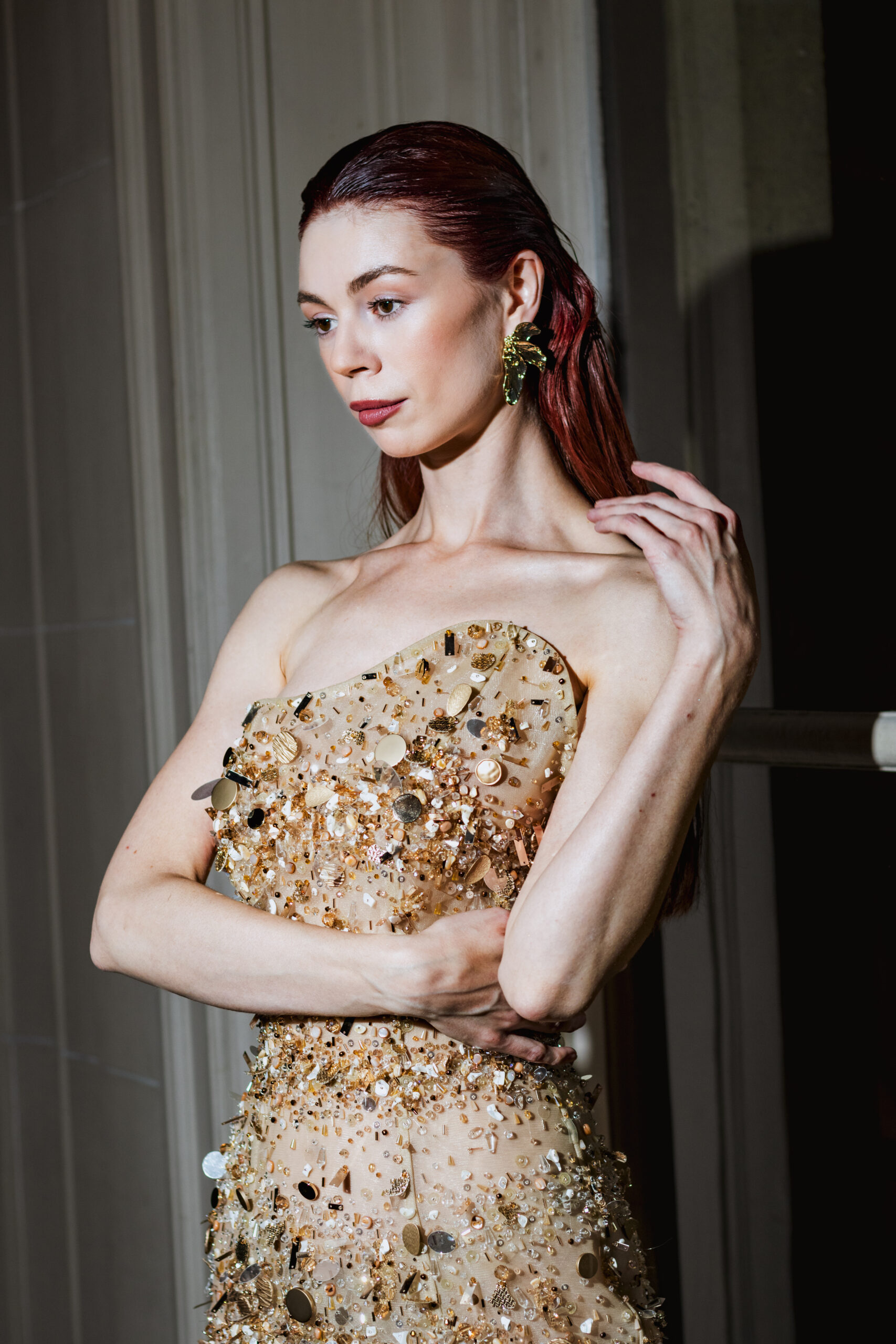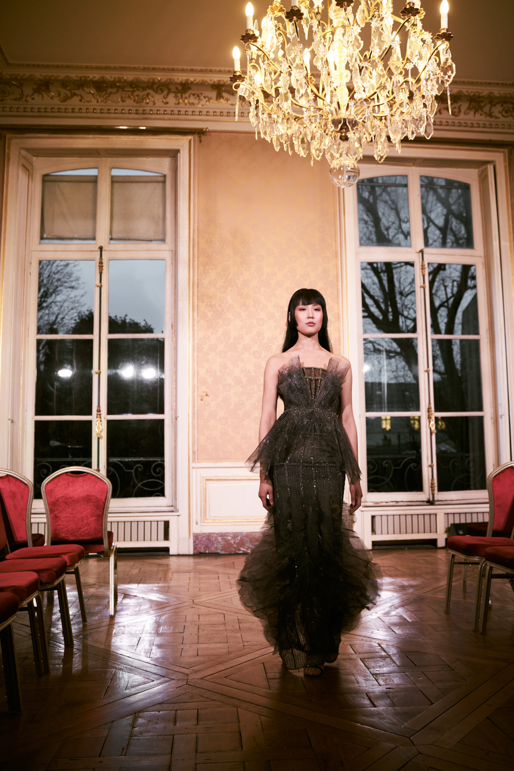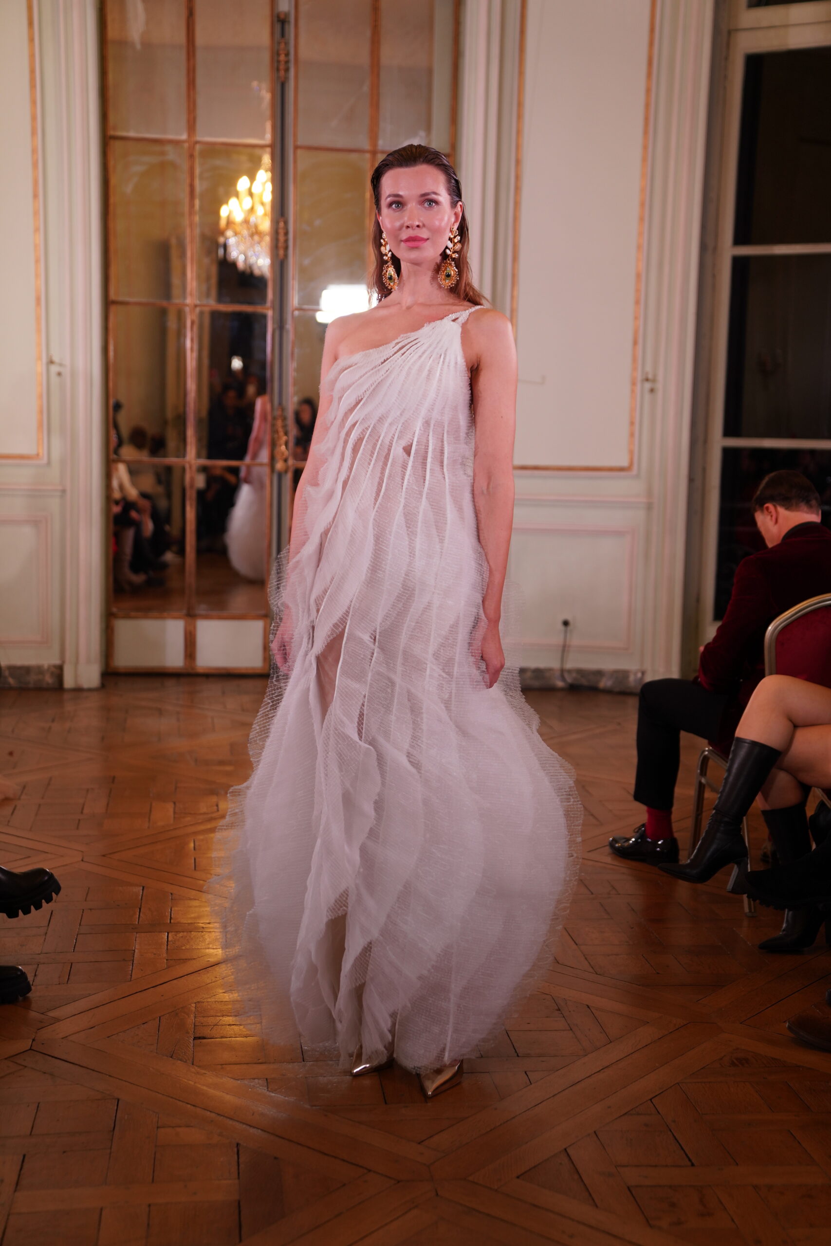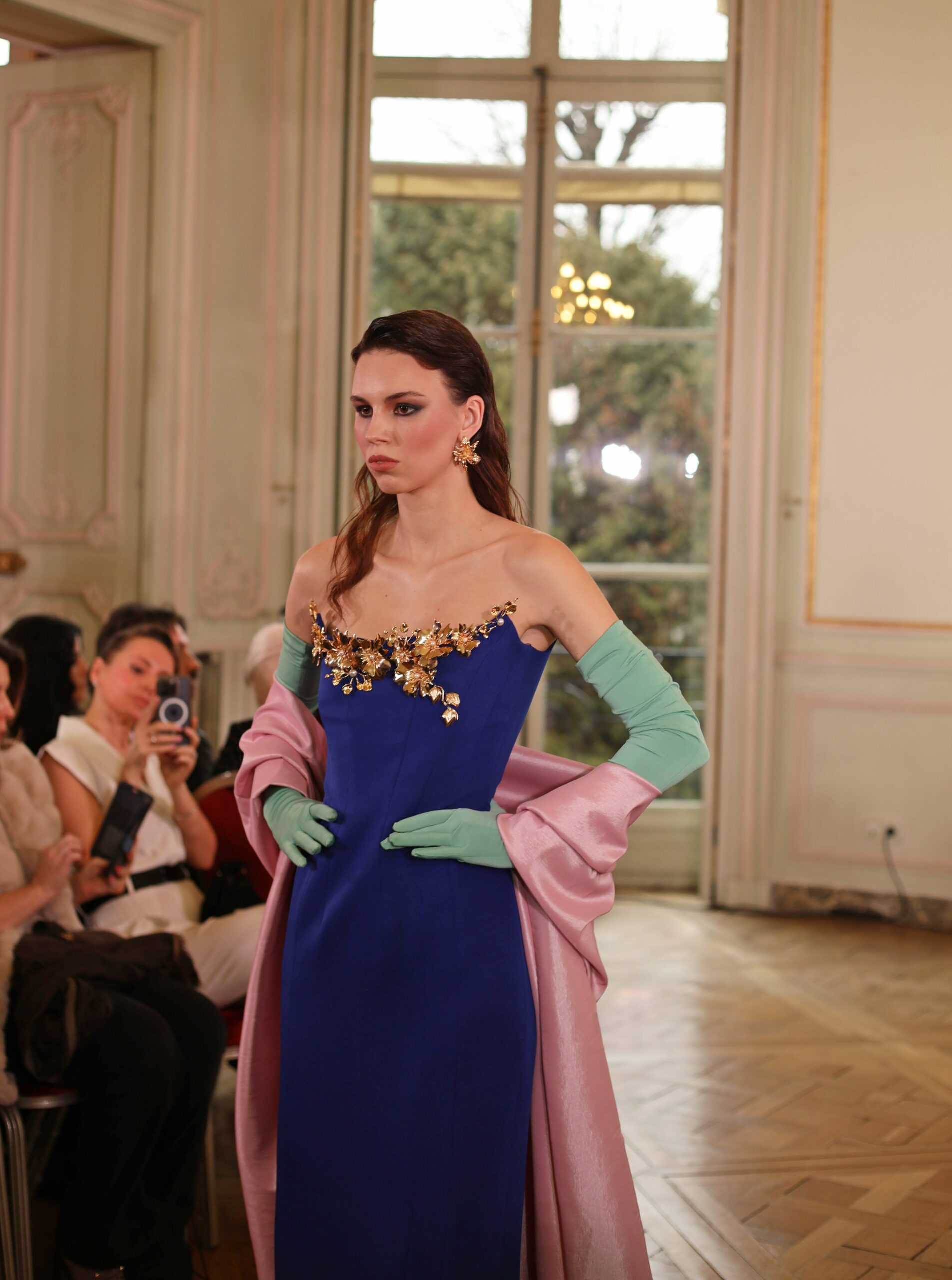 Veronika Jeanvie a clôturé la deuxième journée avec sa collection capsule nuptiale, reflétant les temps changeants et l’amour persistant, inspirée par les paysages parisiens et marquée par une performance émouvante de la prima ballerina Liudmila Konovalova du Ballet de l’État de Vienne.
