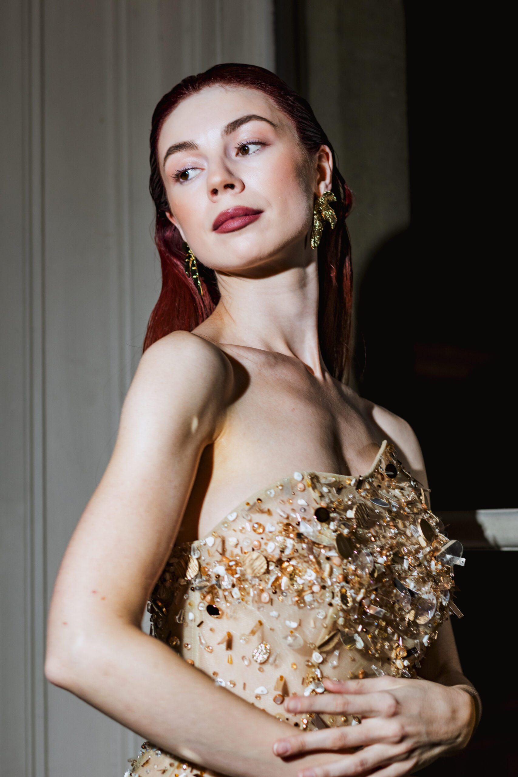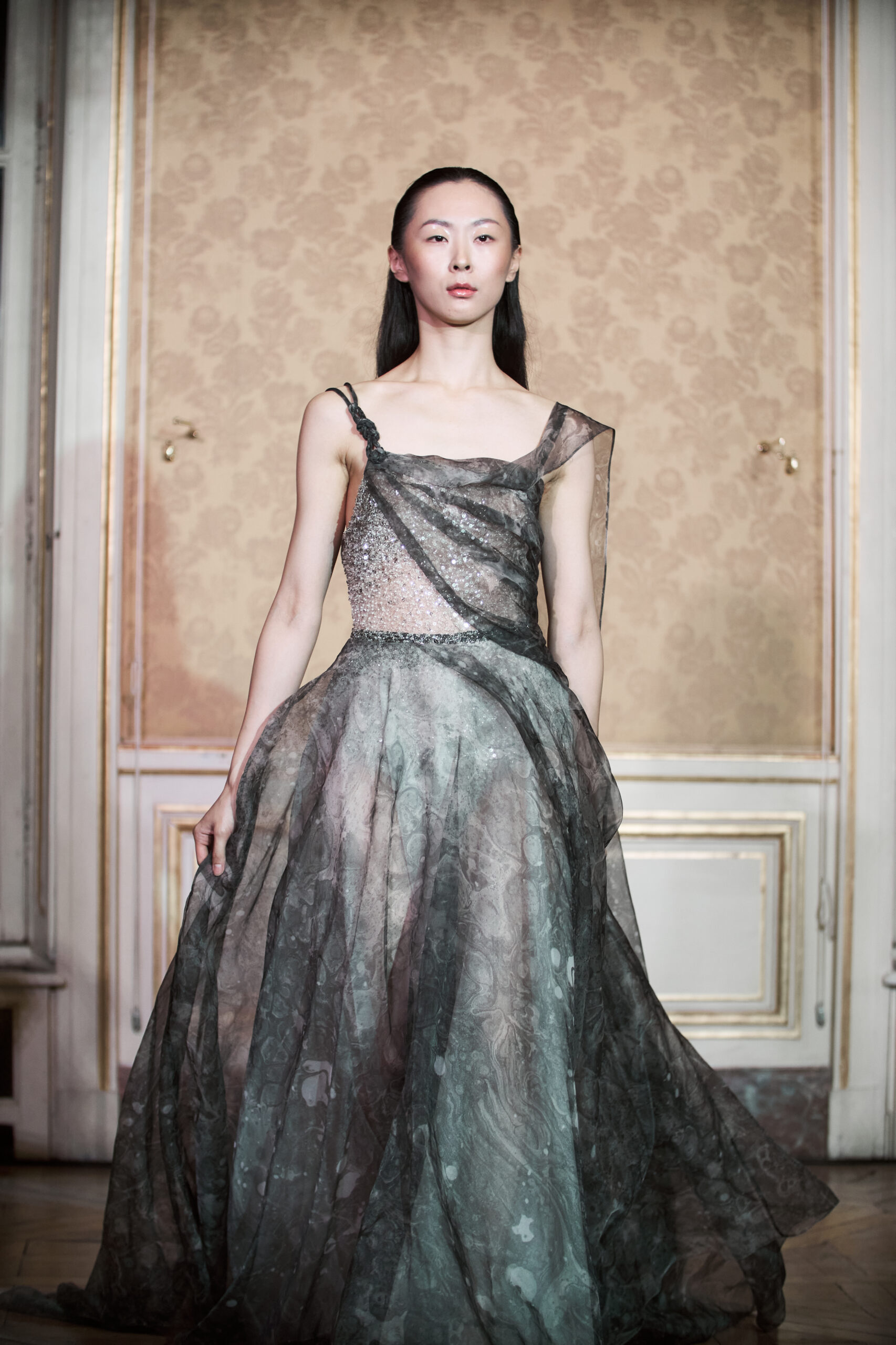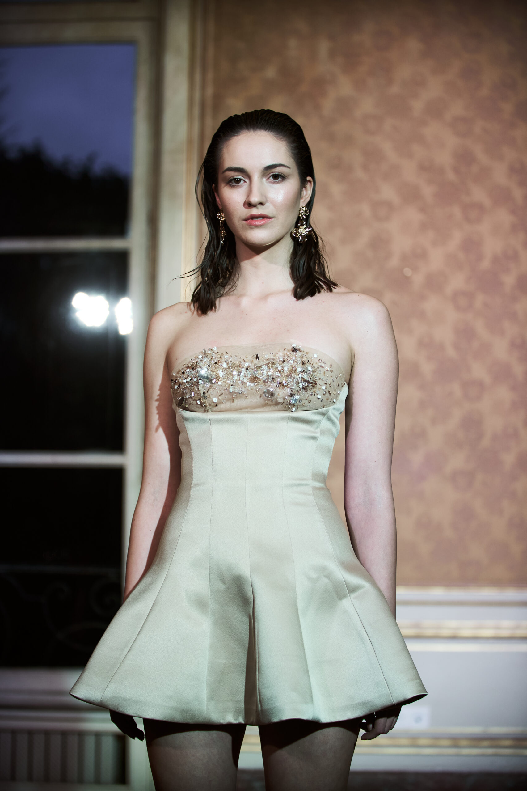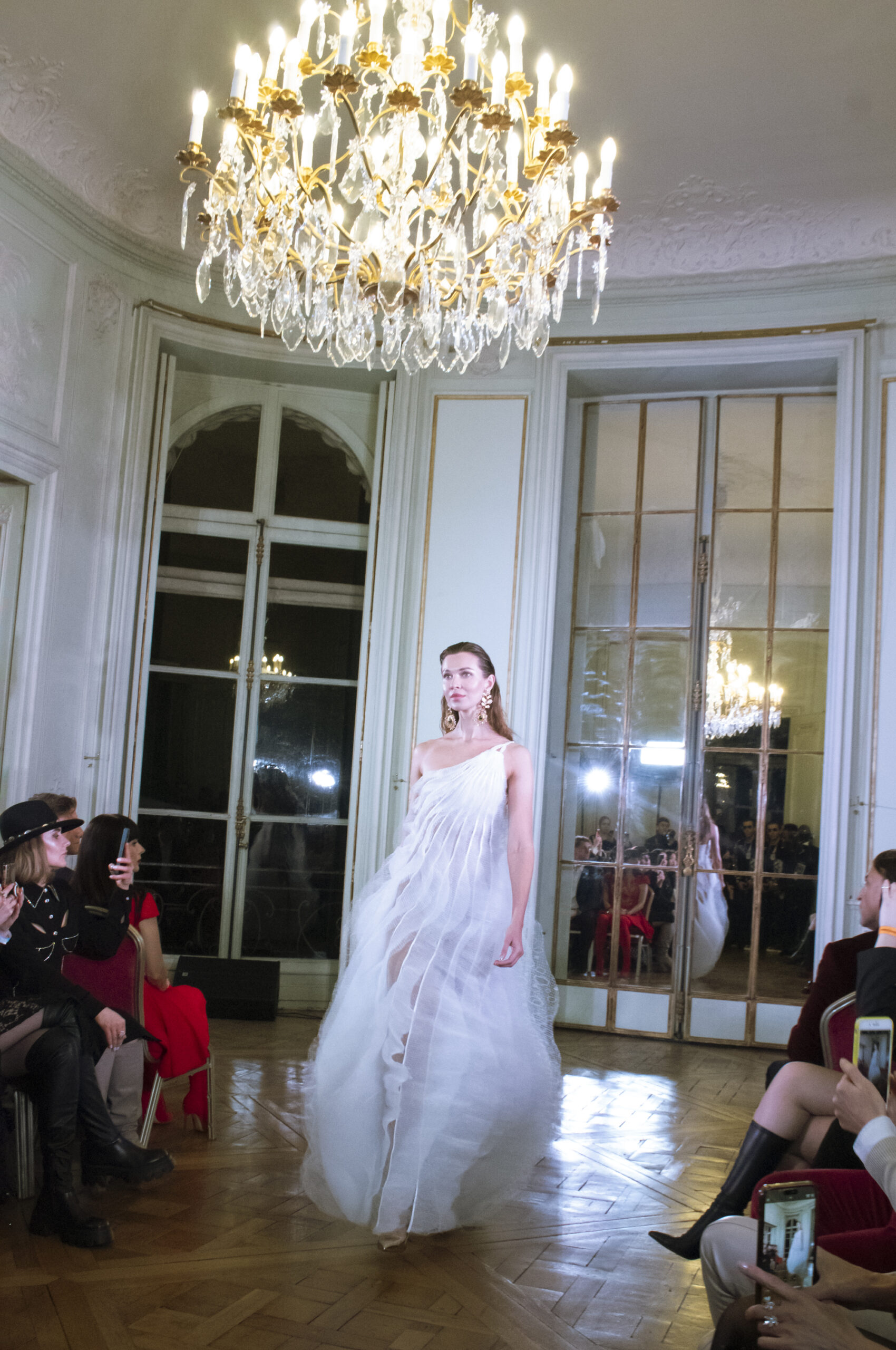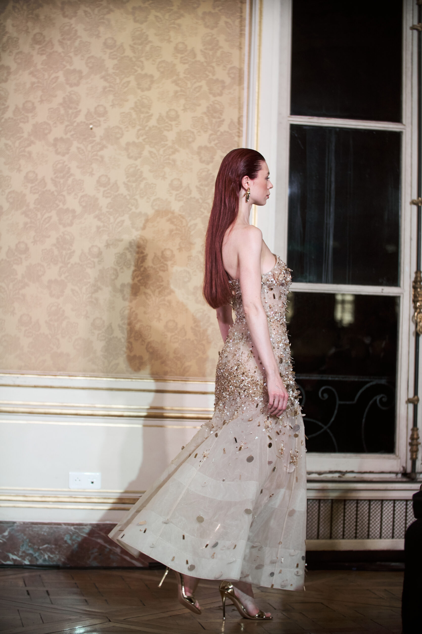 Veronika Jeanvie a clôturé la deuxième journée avec sa collection capsule nuptiale, reflétant les temps changeants et l’amour persistant, inspirée par les paysages parisiens et marquée par une performance émouvante de la prima ballerina Liudmila Konovalova du Ballet de l’État de Vienne.