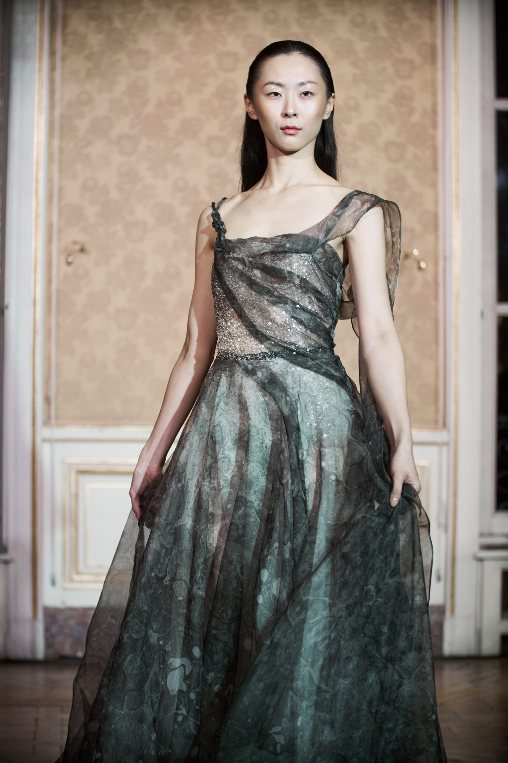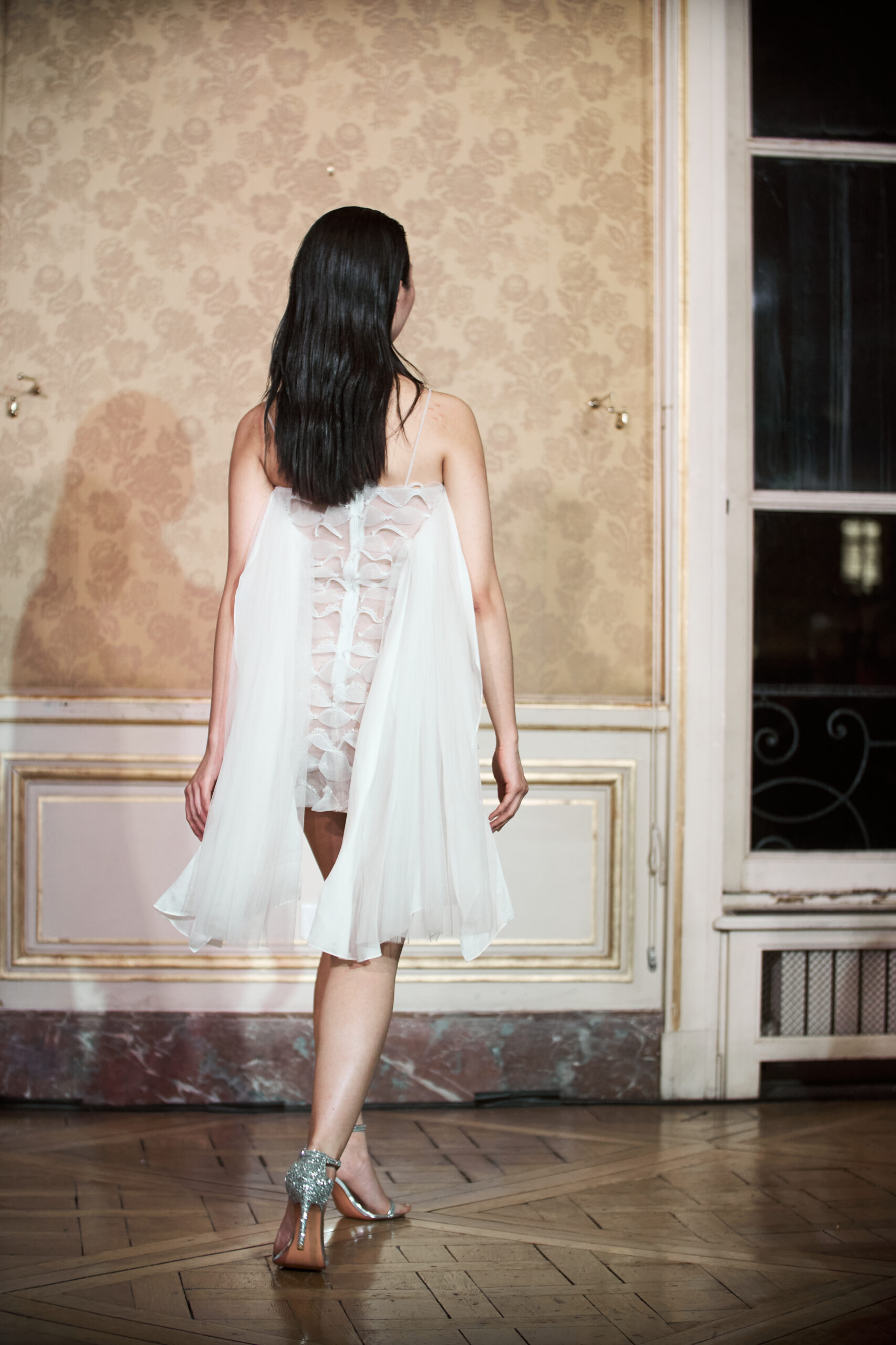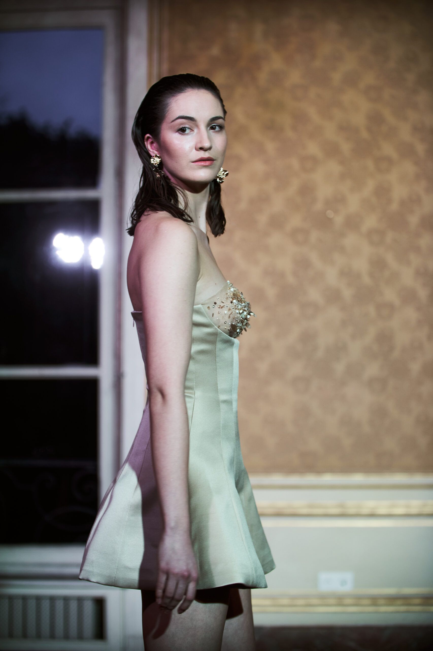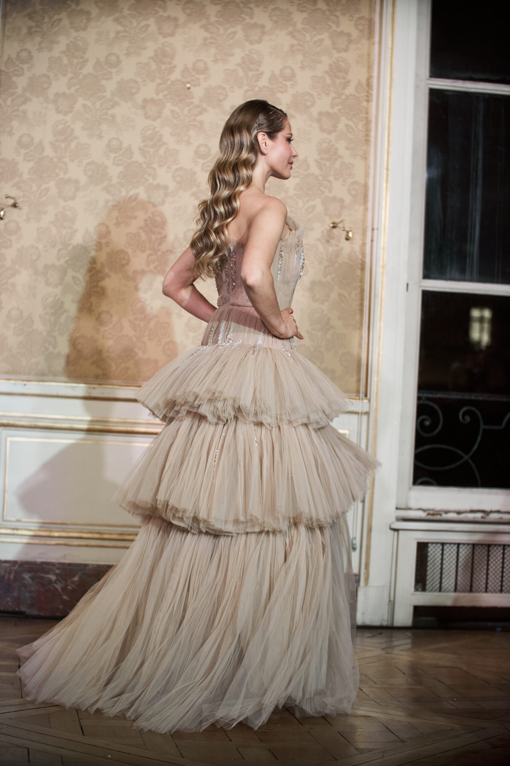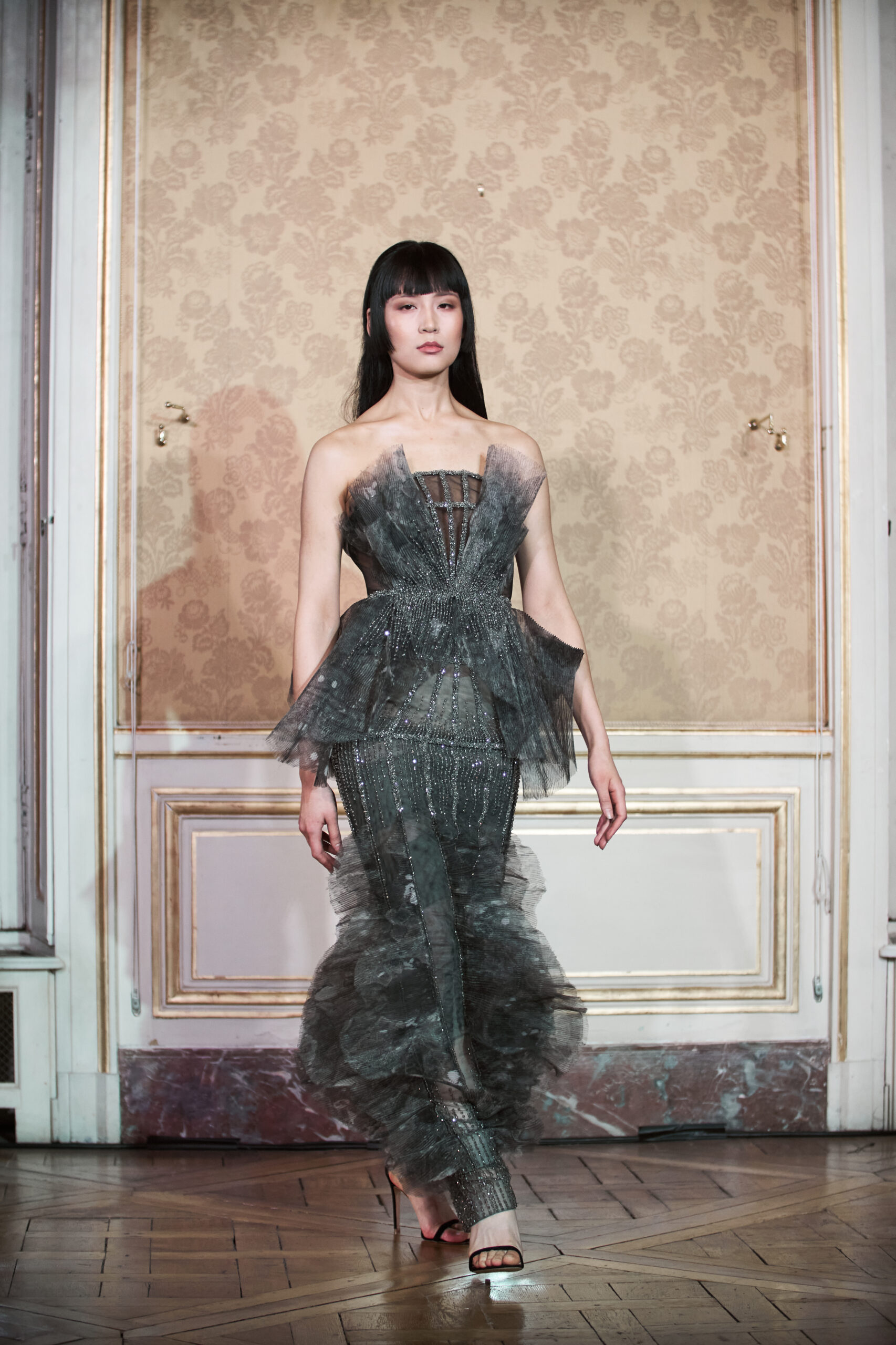 Veronika Jeanvie a clôturé la deuxième journée avec sa collection capsule nuptiale, reflétant les temps changeants et l’amour persistant, inspirée par les paysages parisiens et marquée par une performance émouvante de la prima ballerina Liudmila Konovalova du Ballet de l’État de Vienne.