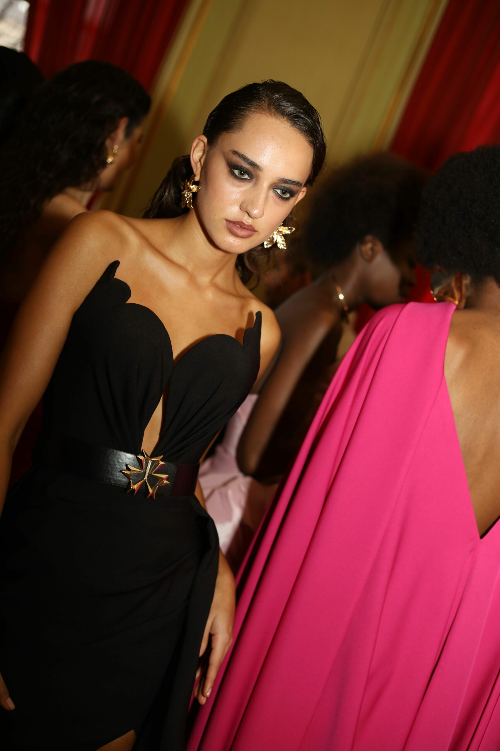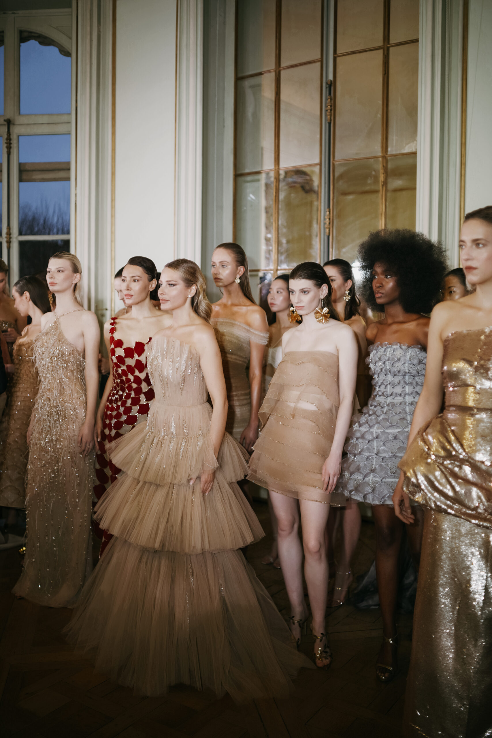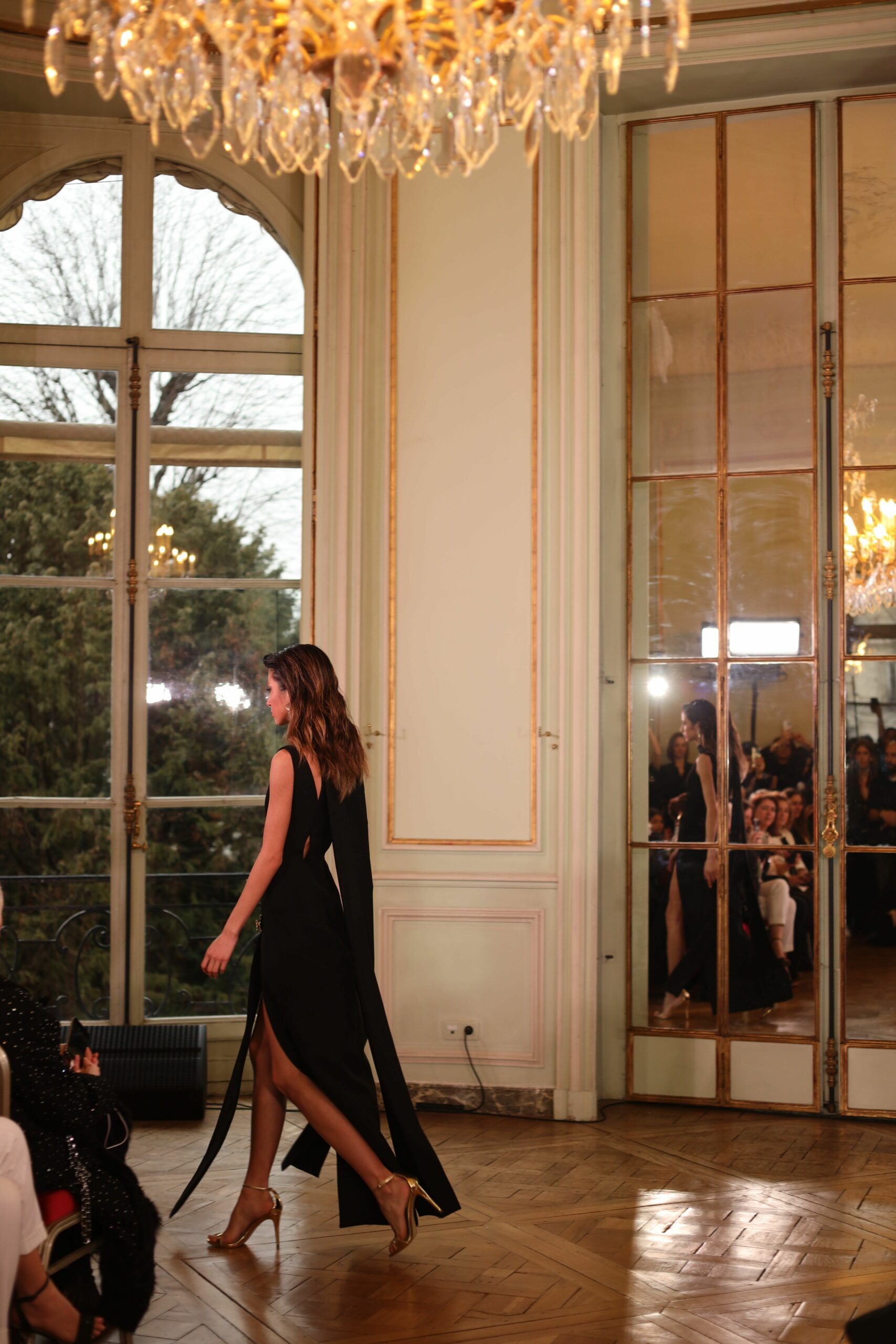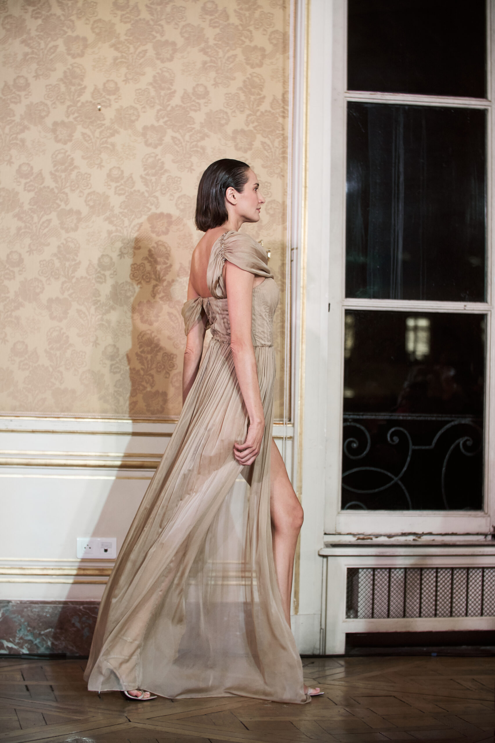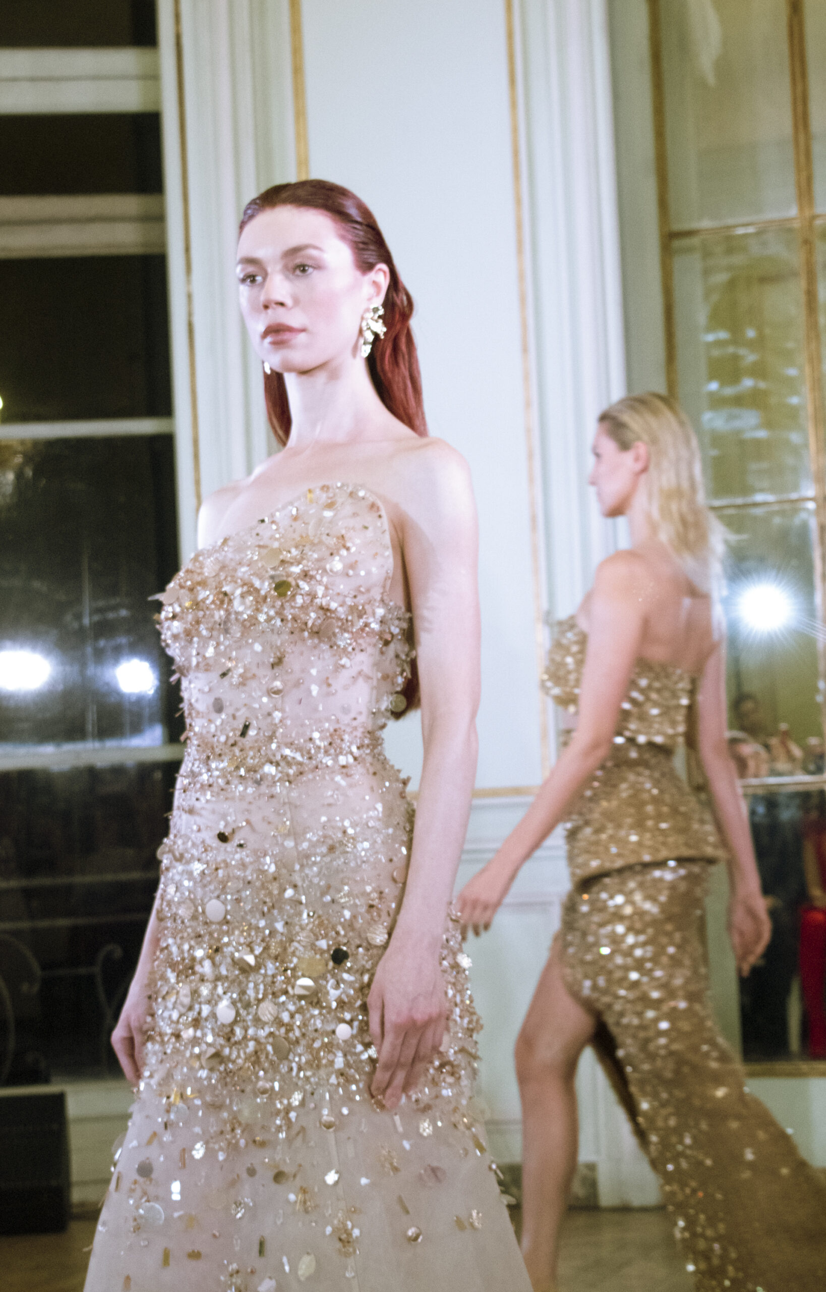 Laith Maalouf a enchanté l’audience avec sa collection inspirée des déesses, Amora: Une Symphonie de Structure et de Fluidité. Fusionnant design structuré et fluidité, chaque création rend hommage aux courbes gracieuses des statues de la Renaissance, incarnant l’essence divine de la déesse Amora à travers draperies aériennes et ornements dorés luxuriants.