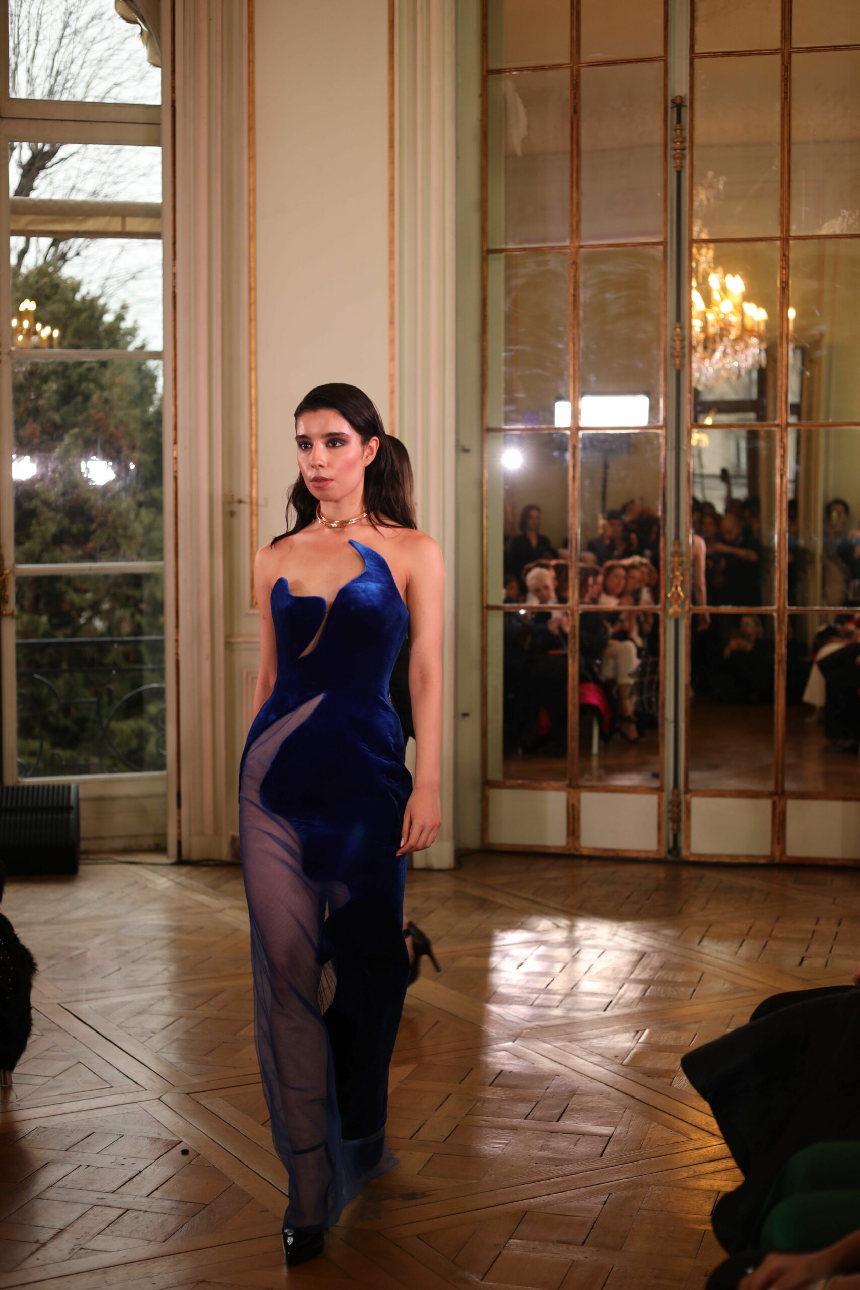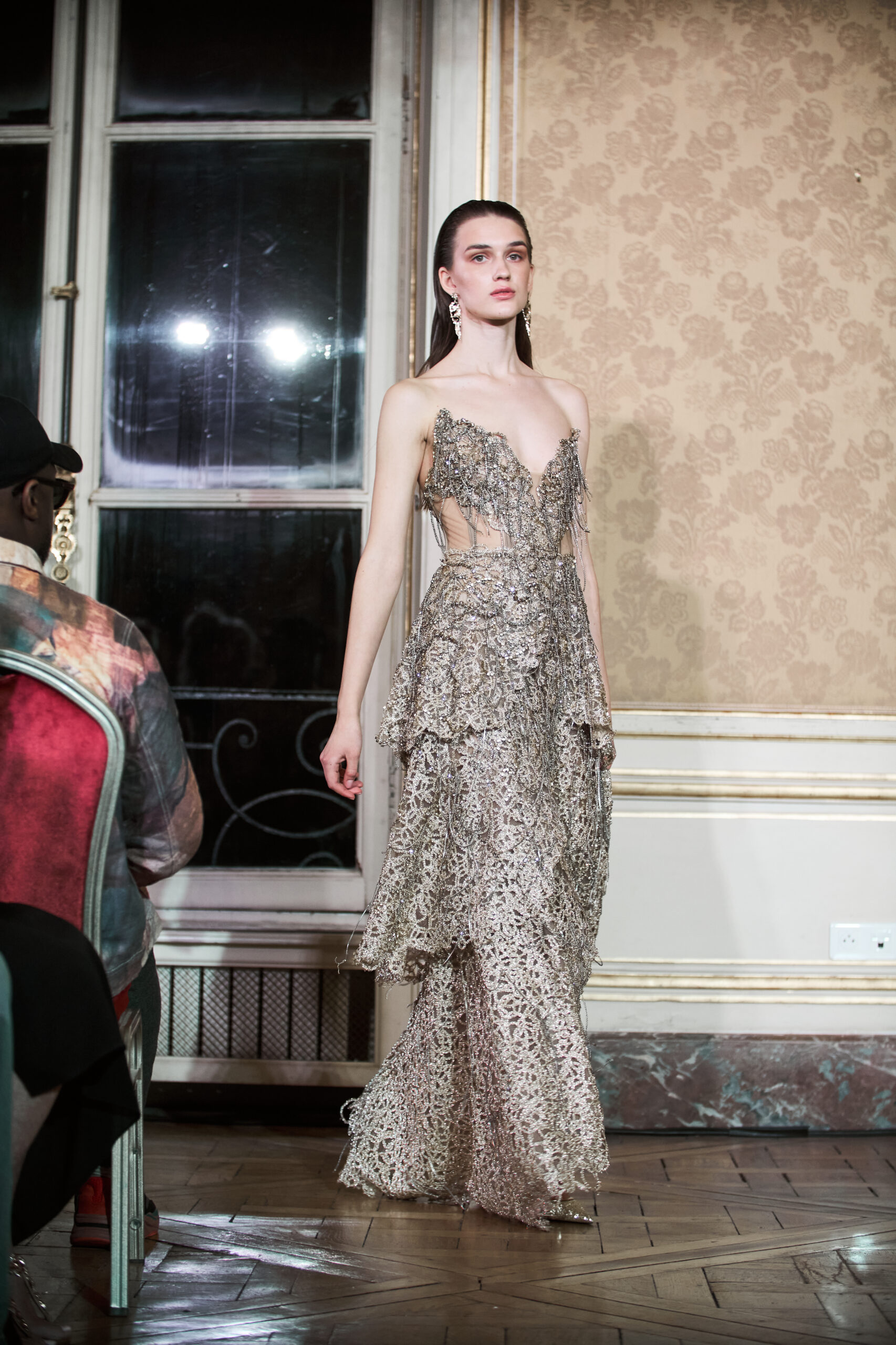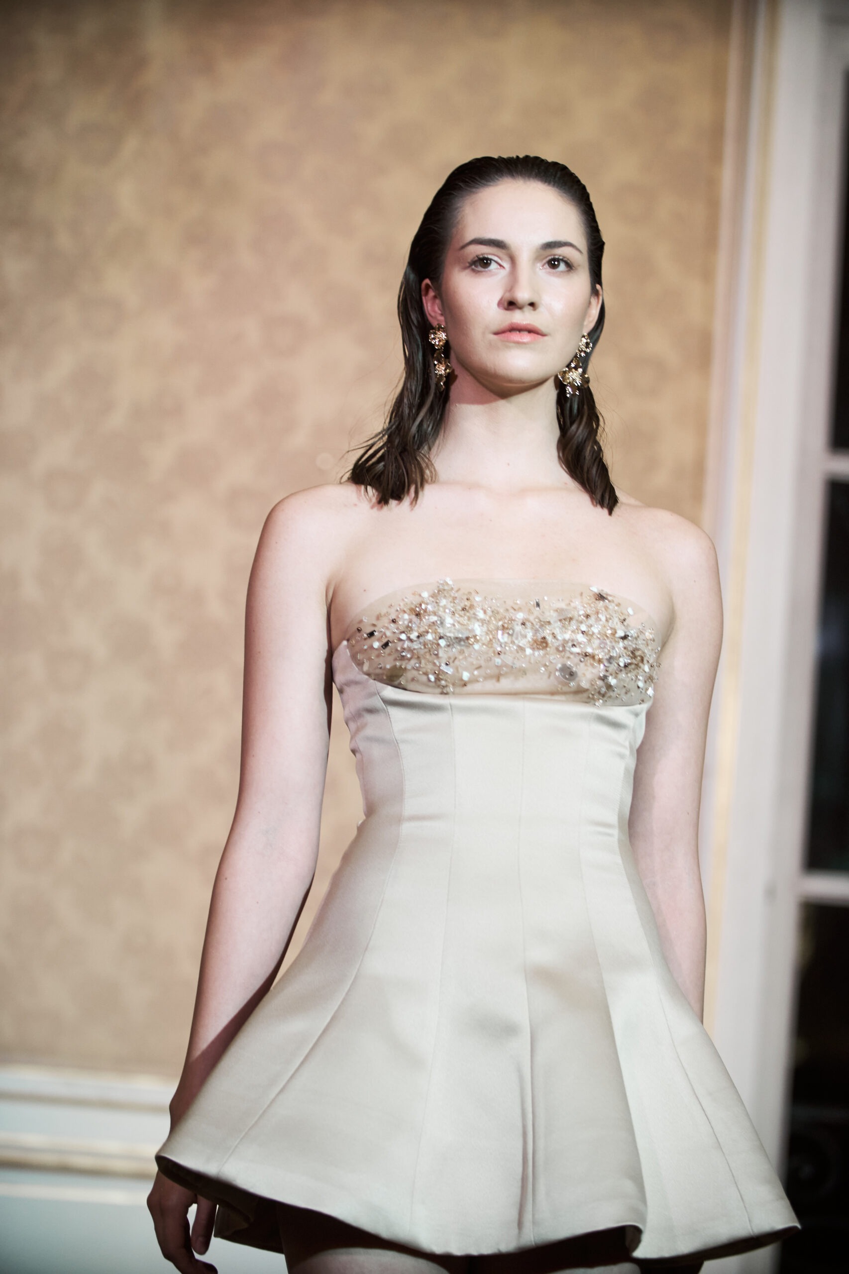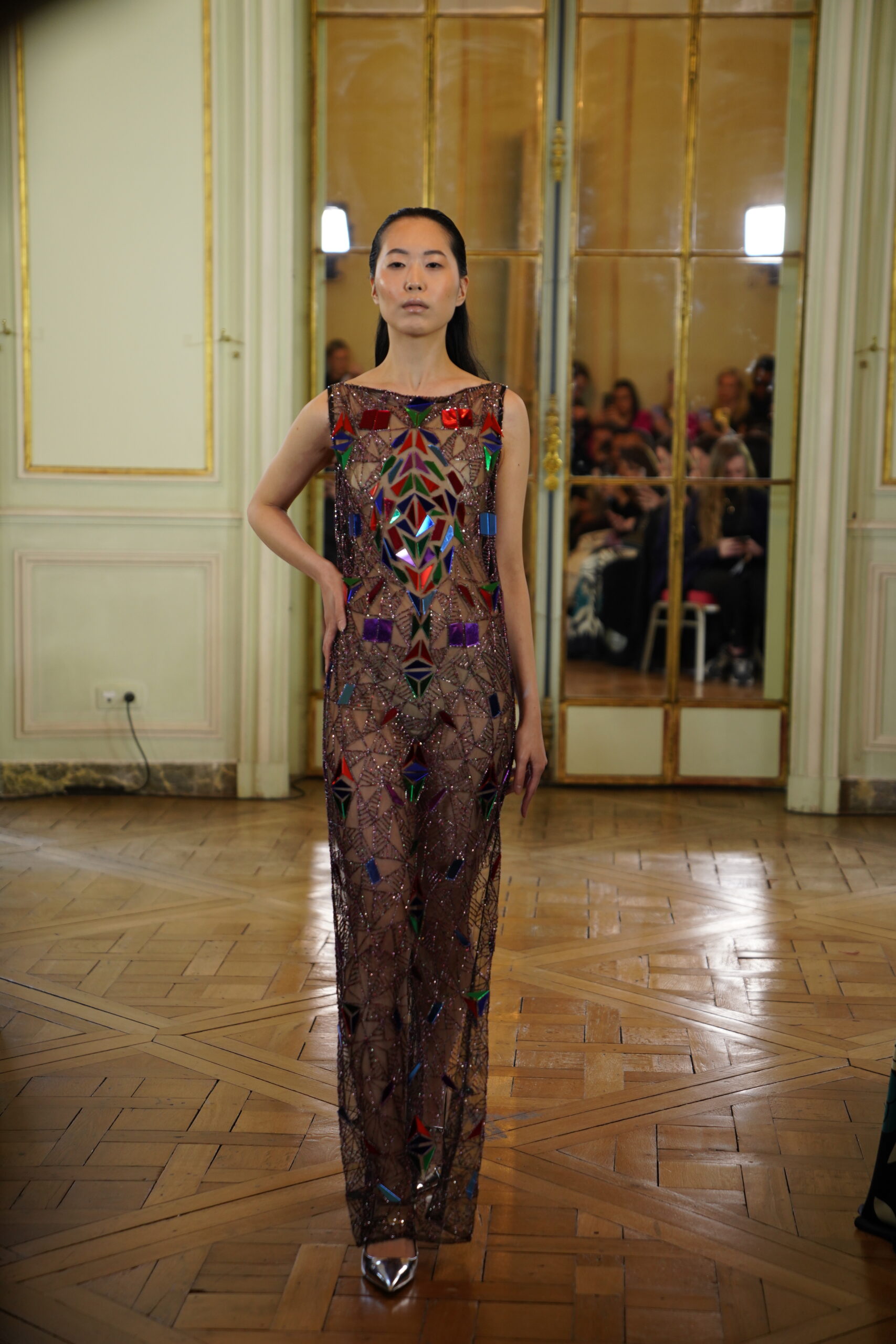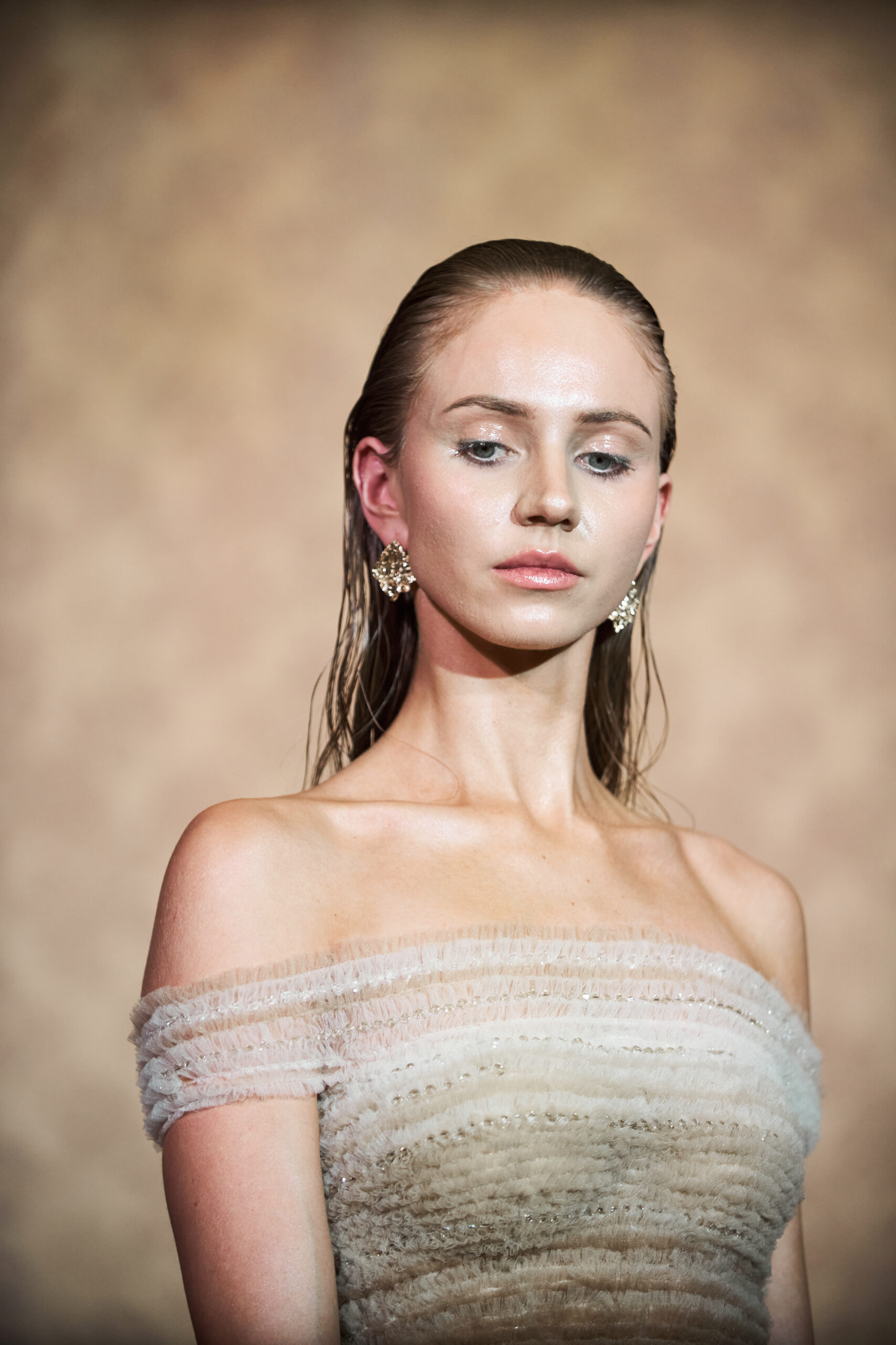 Laith Maalouf a enchanté l’audience avec sa collection inspirée des déesses, Amora: Une Symphonie de Structure et de Fluidité. Fusionnant design structuré et fluidité, chaque création rend hommage aux courbes gracieuses des statues de la Renaissance, incarnant l’essence divine de la déesse Amora à travers draperies aériennes et ornements dorés luxuriants.