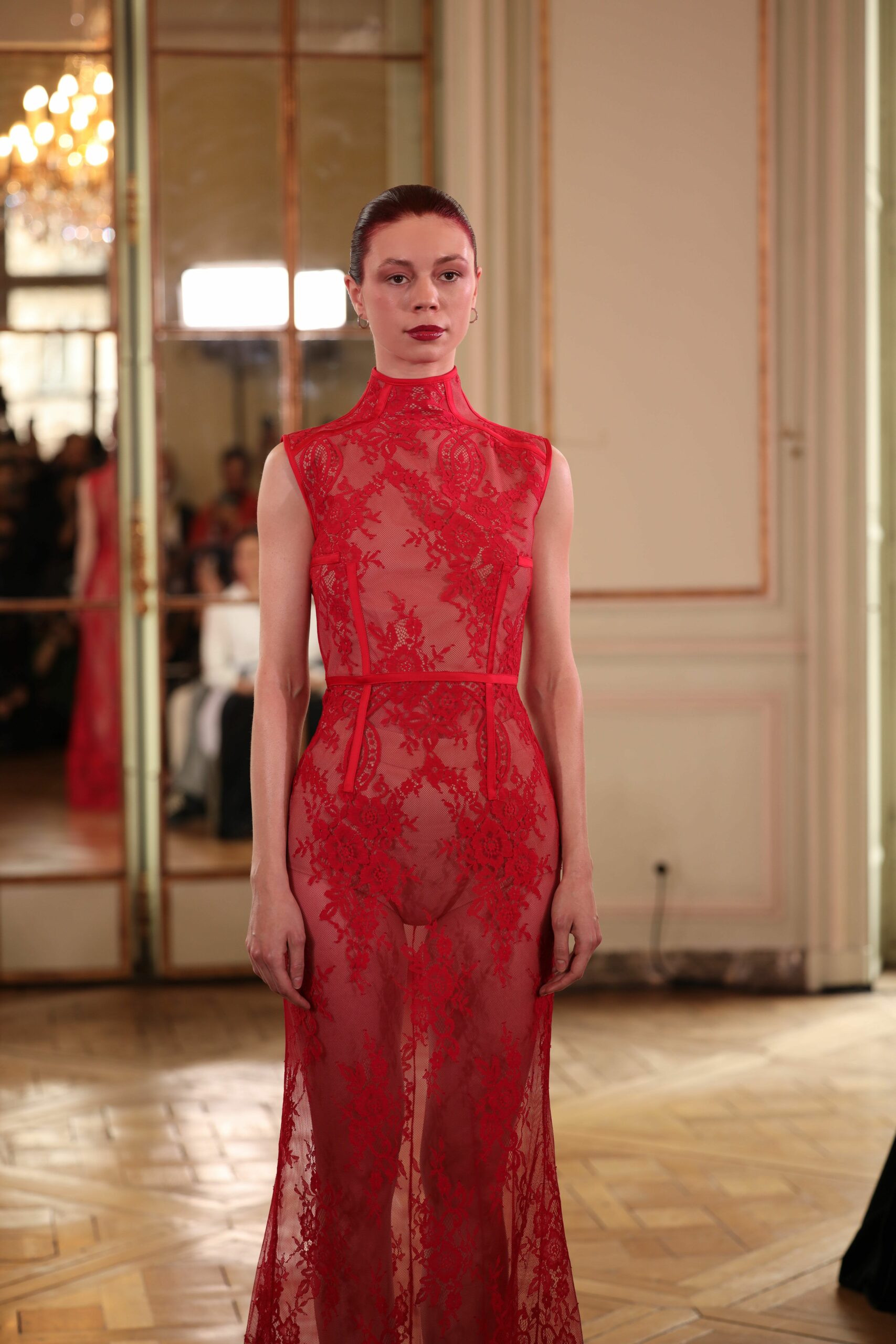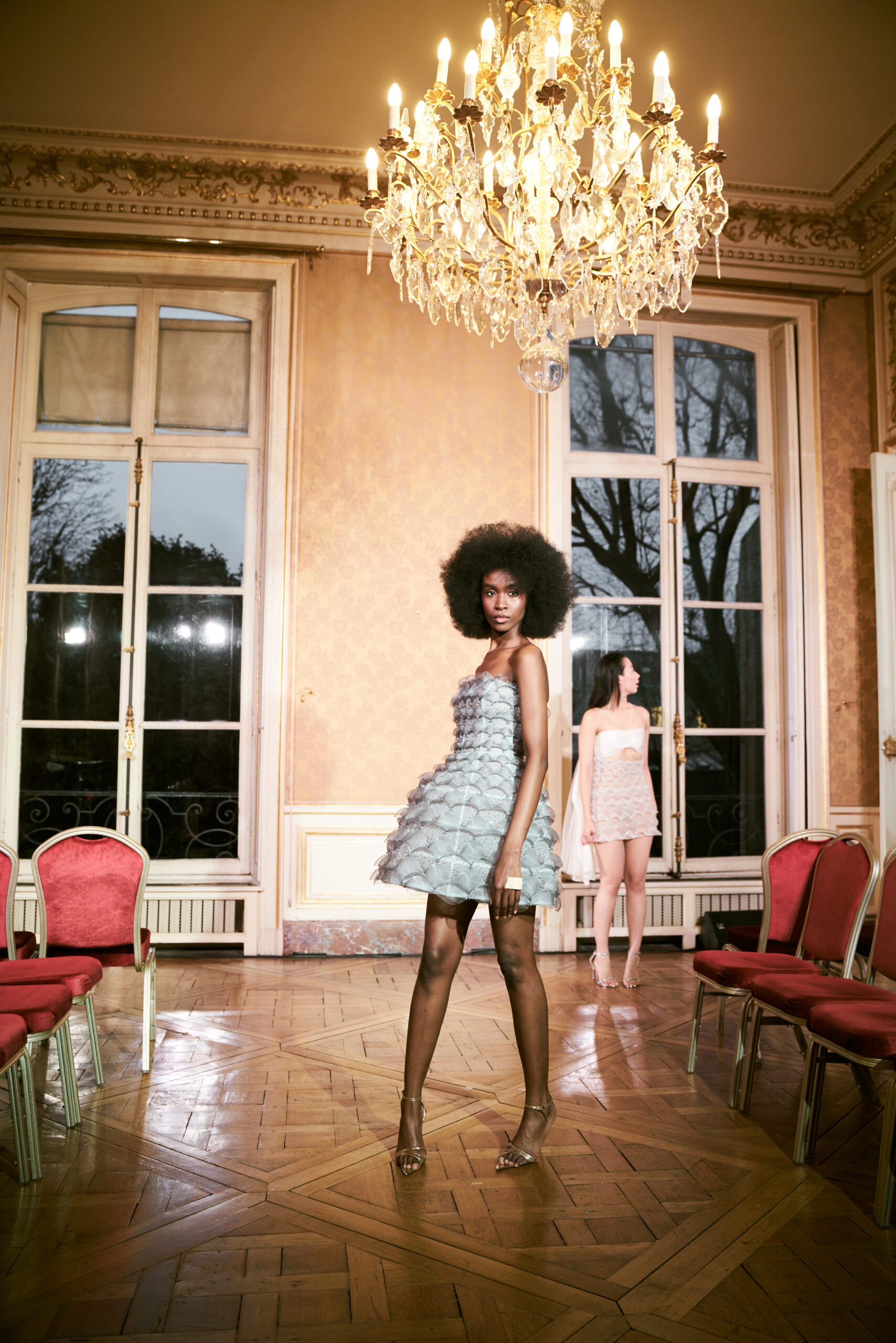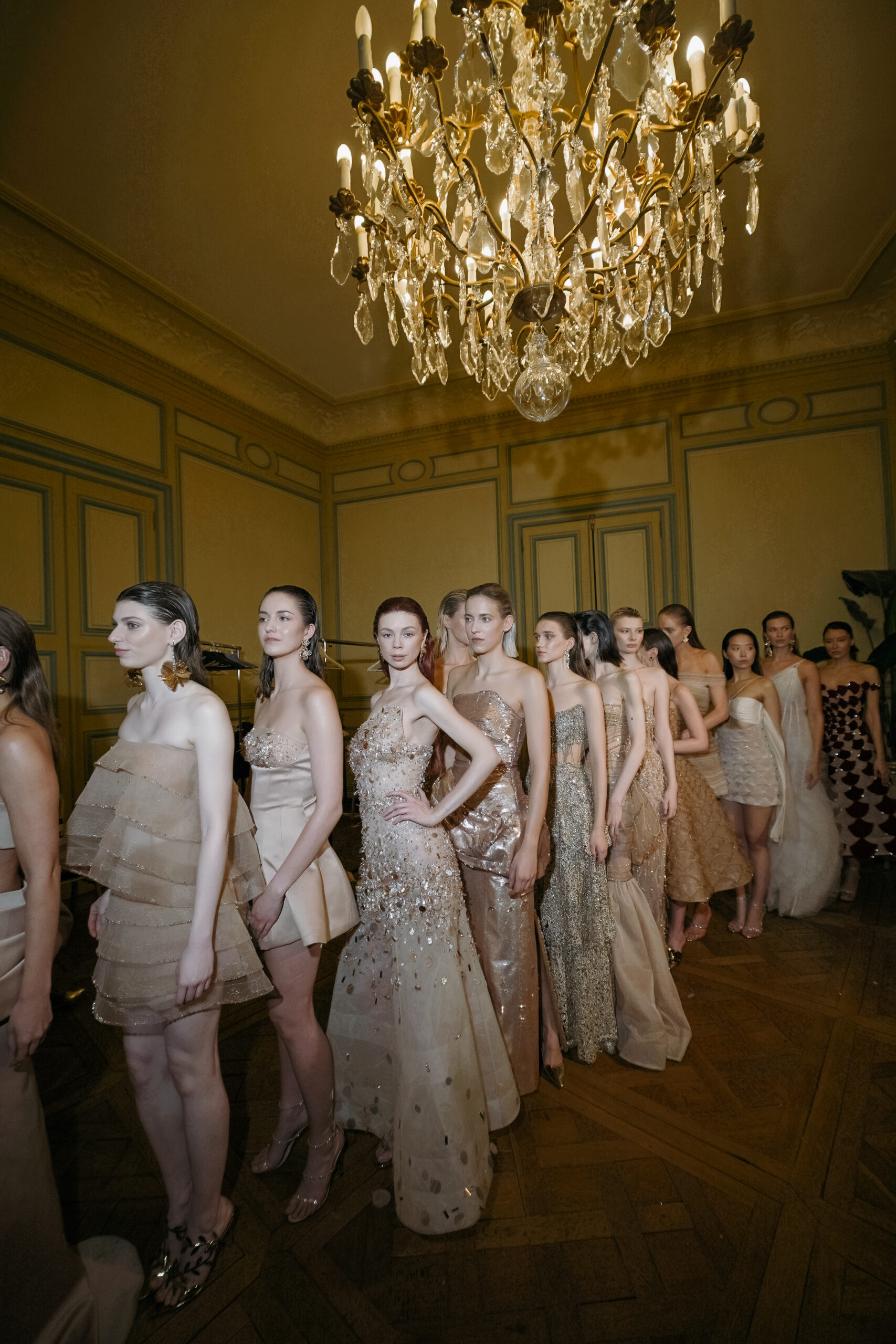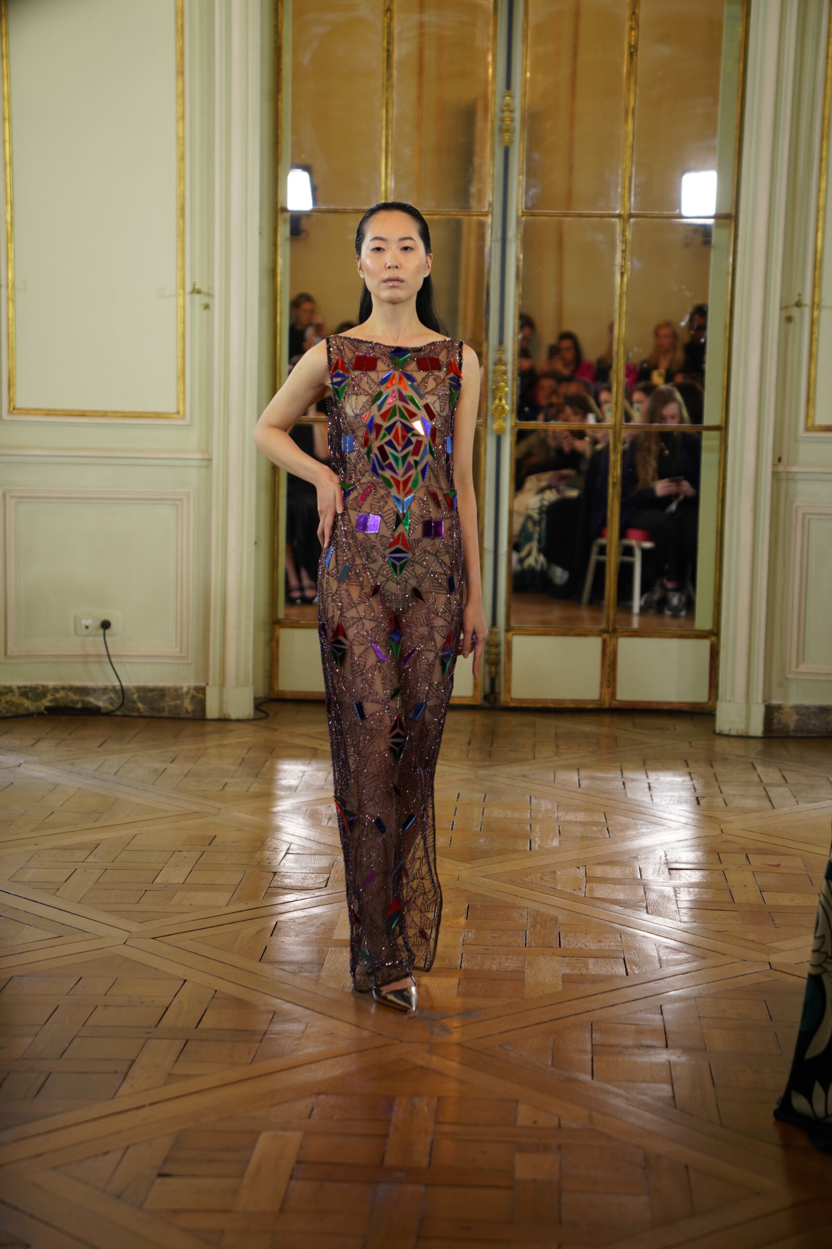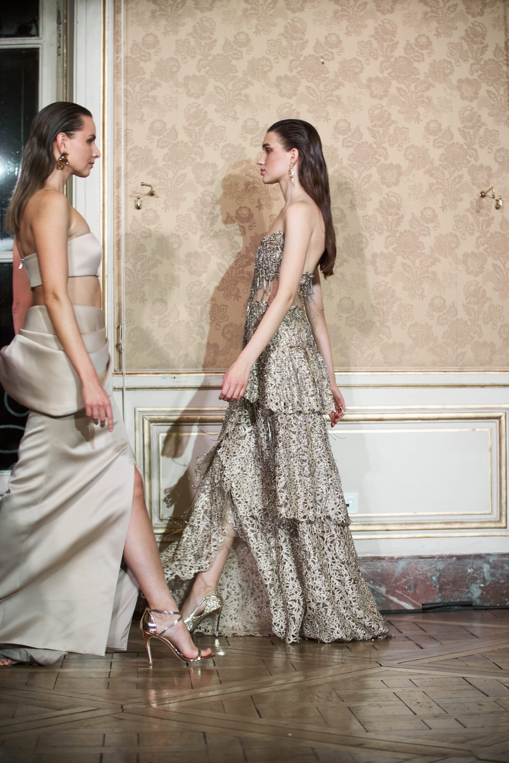 Laith Maalouf a enchanté l’audience avec sa collection inspirée des déesses, Amora: Une Symphonie de Structure et de Fluidité. Fusionnant design structuré et fluidité, chaque création rend hommage aux courbes gracieuses des statues de la Renaissance, incarnant l’essence divine de la déesse Amora à travers draperies aériennes et ornements dorés luxuriants.