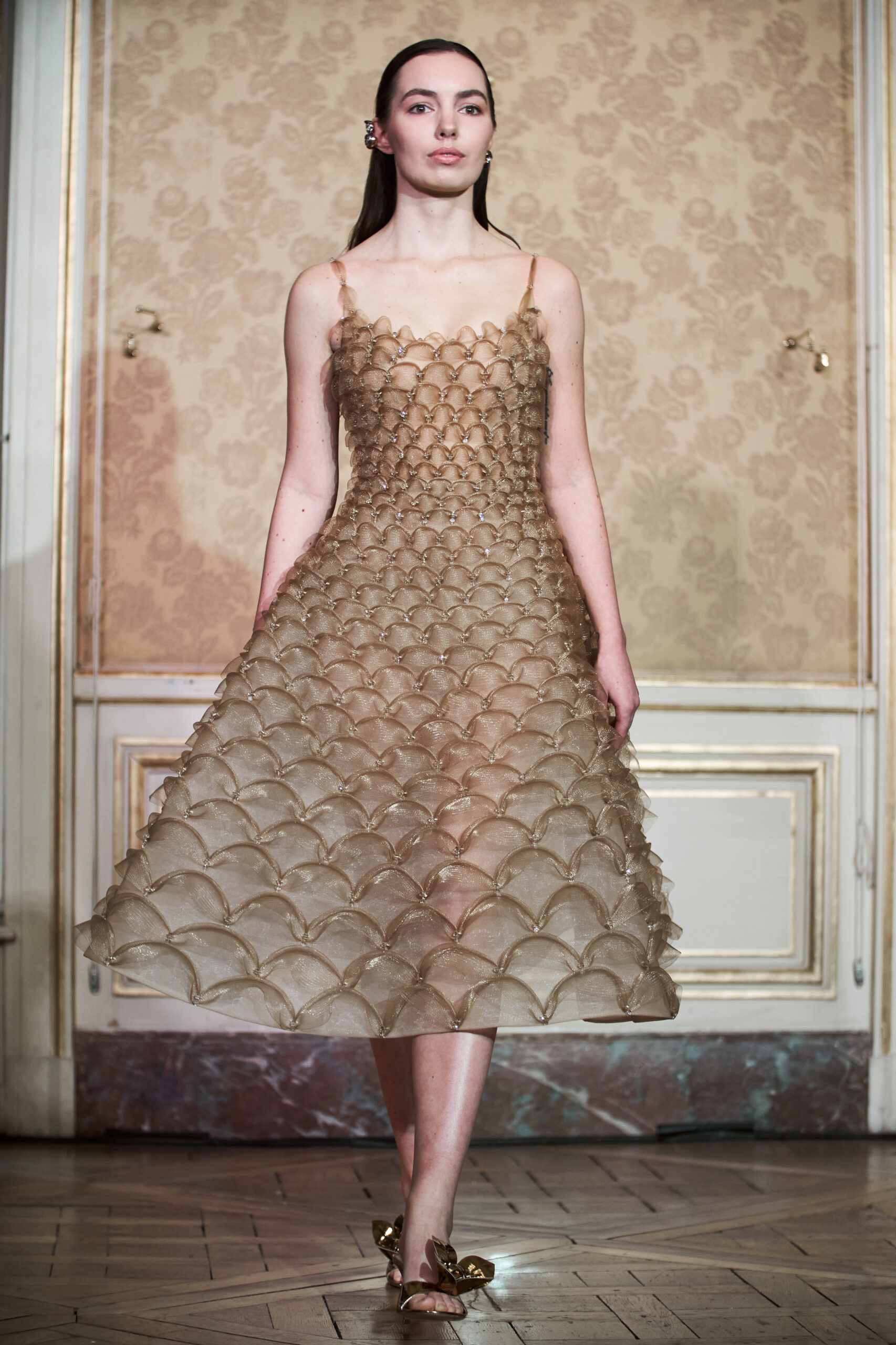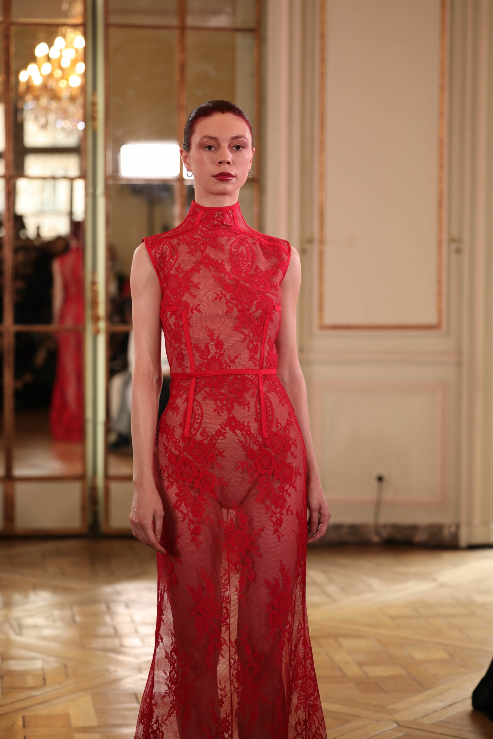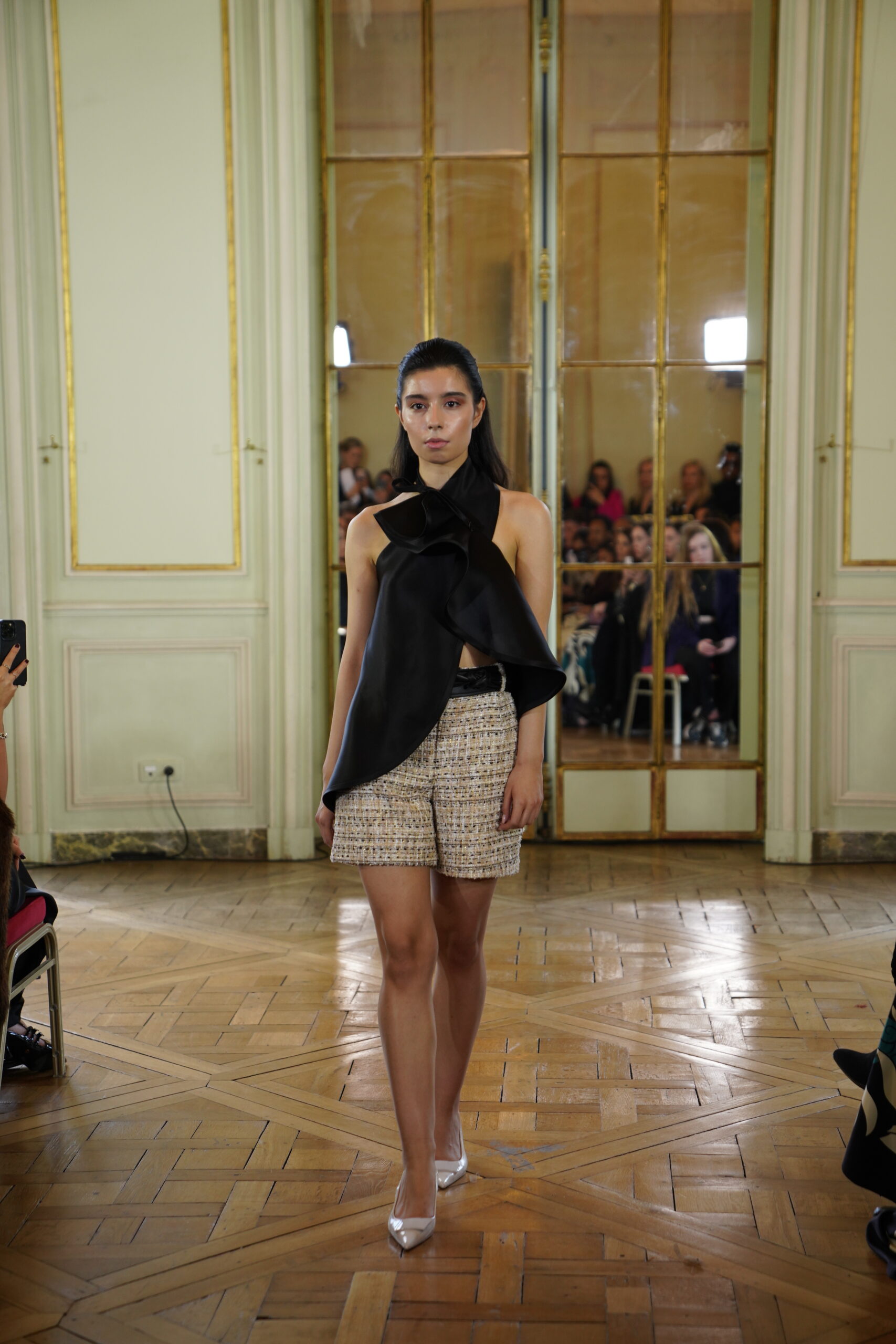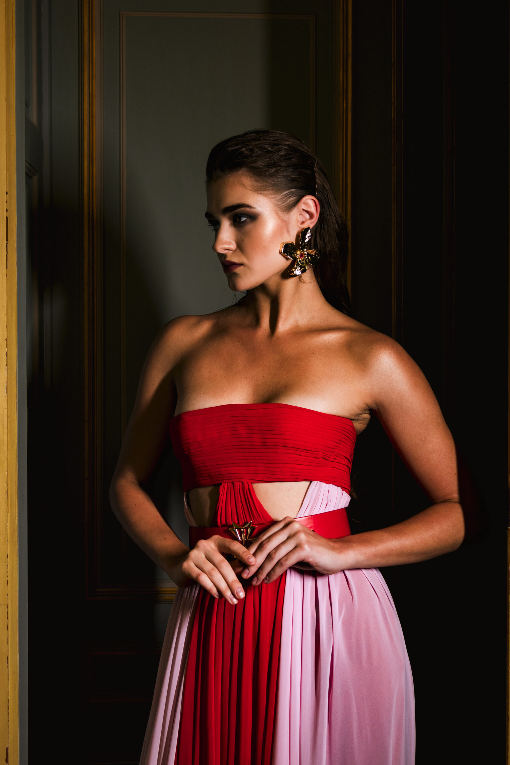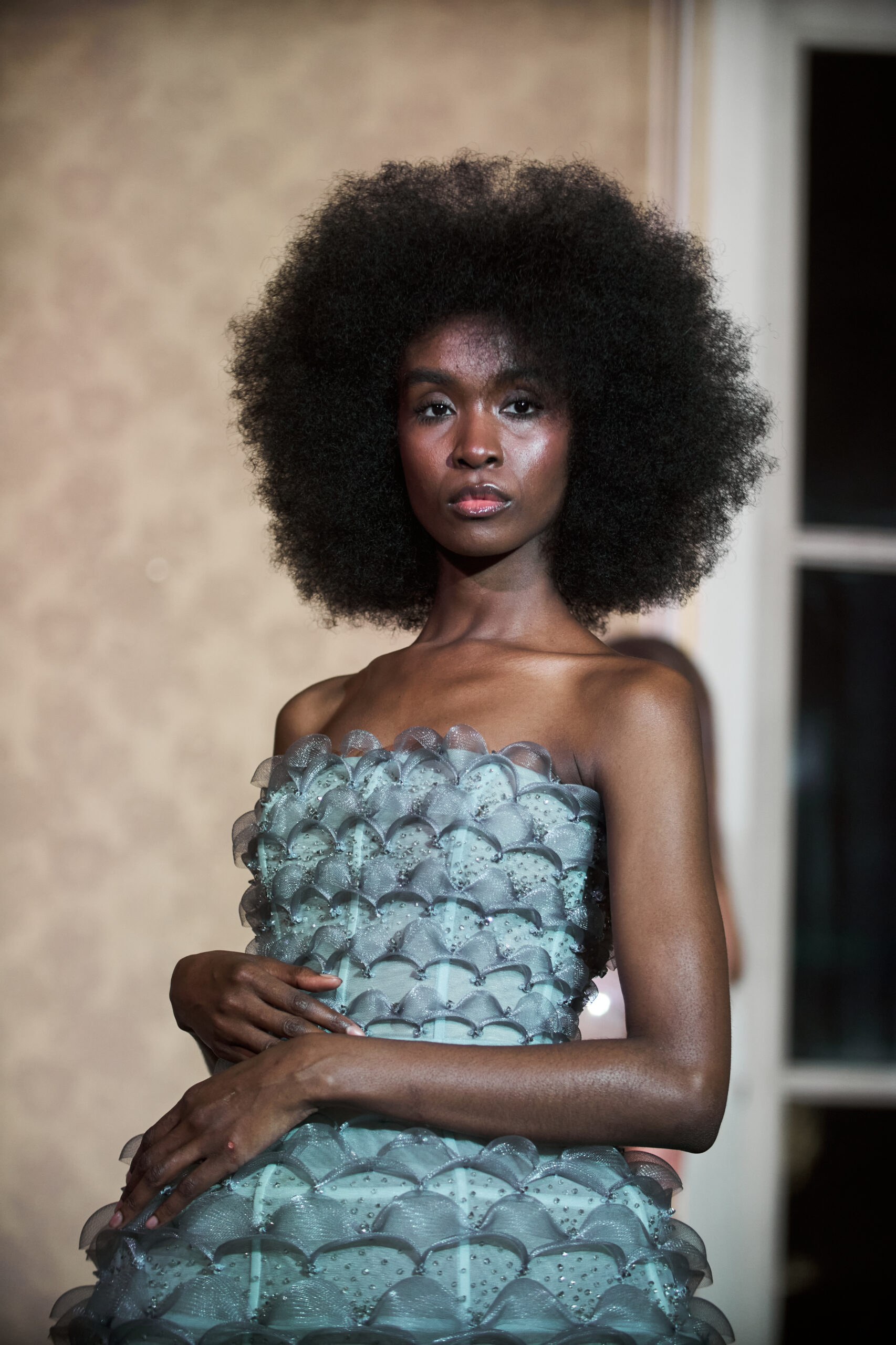 Laith Maalouf a enchanté l’audience avec sa collection inspirée des déesses, Amora: Une Symphonie de Structure et de Fluidité. Fusionnant design structuré et fluidité, chaque création rend hommage aux courbes gracieuses des statues de la Renaissance, incarnant l’essence divine de la déesse Amora à travers draperies aériennes et ornements dorés luxuriants.