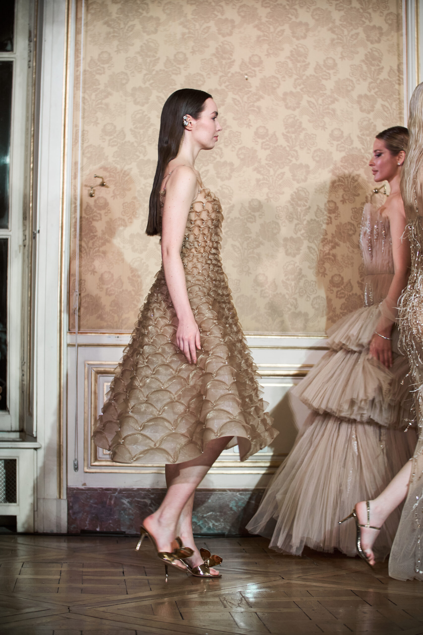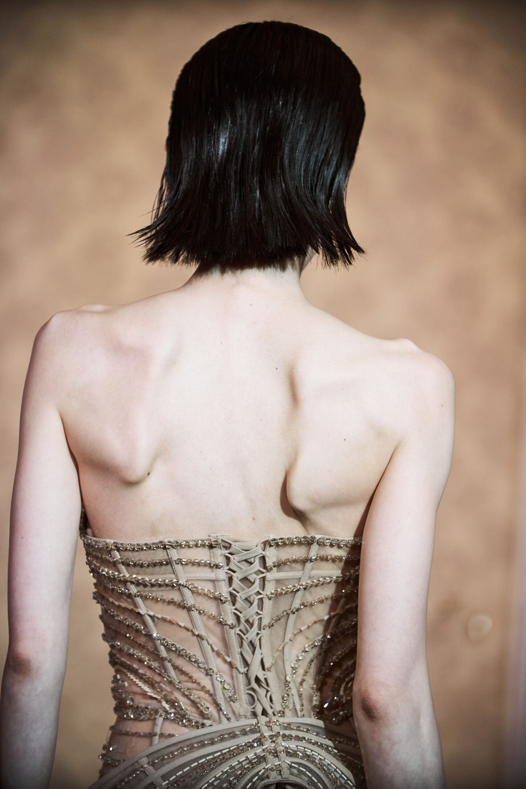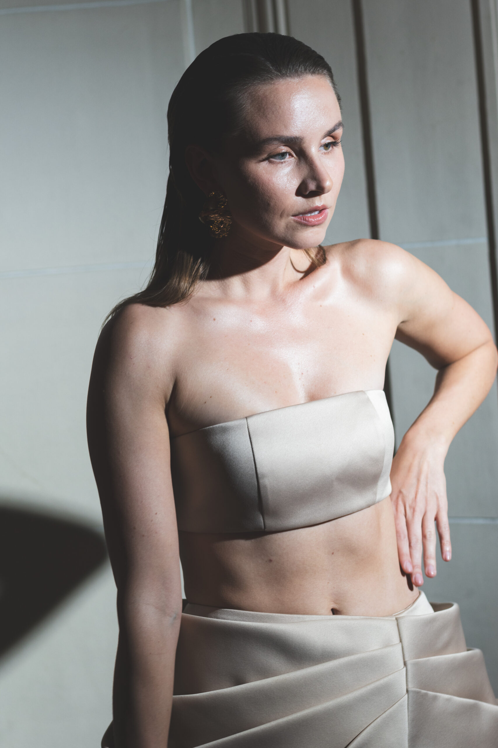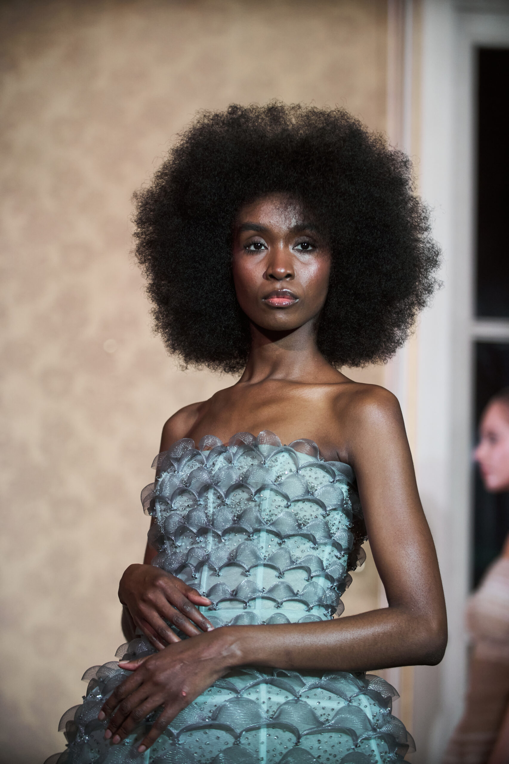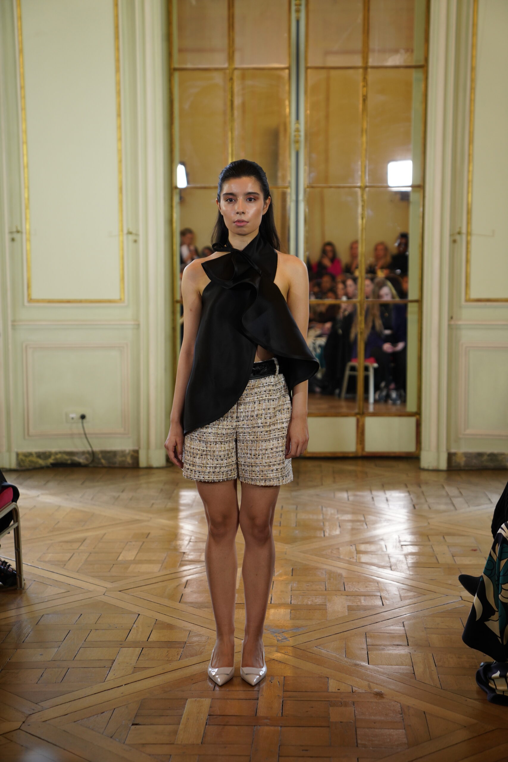 Laith Maalouf a enchanté l’audience avec sa collection inspirée des déesses, Amora: Une Symphonie de Structure et de Fluidité. Fusionnant design structuré et fluidité, chaque création rend hommage aux courbes gracieuses des statues de la Renaissance, incarnant l’essence divine de la déesse Amora à travers draperies aériennes et ornements dorés luxuriants.