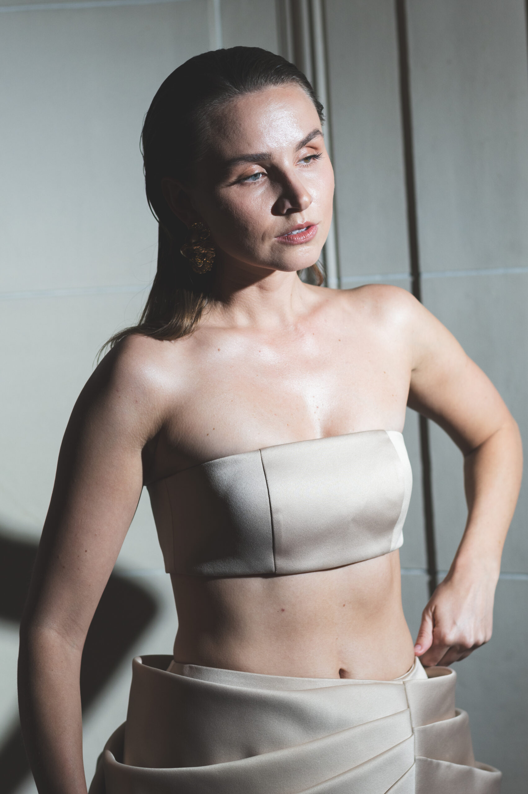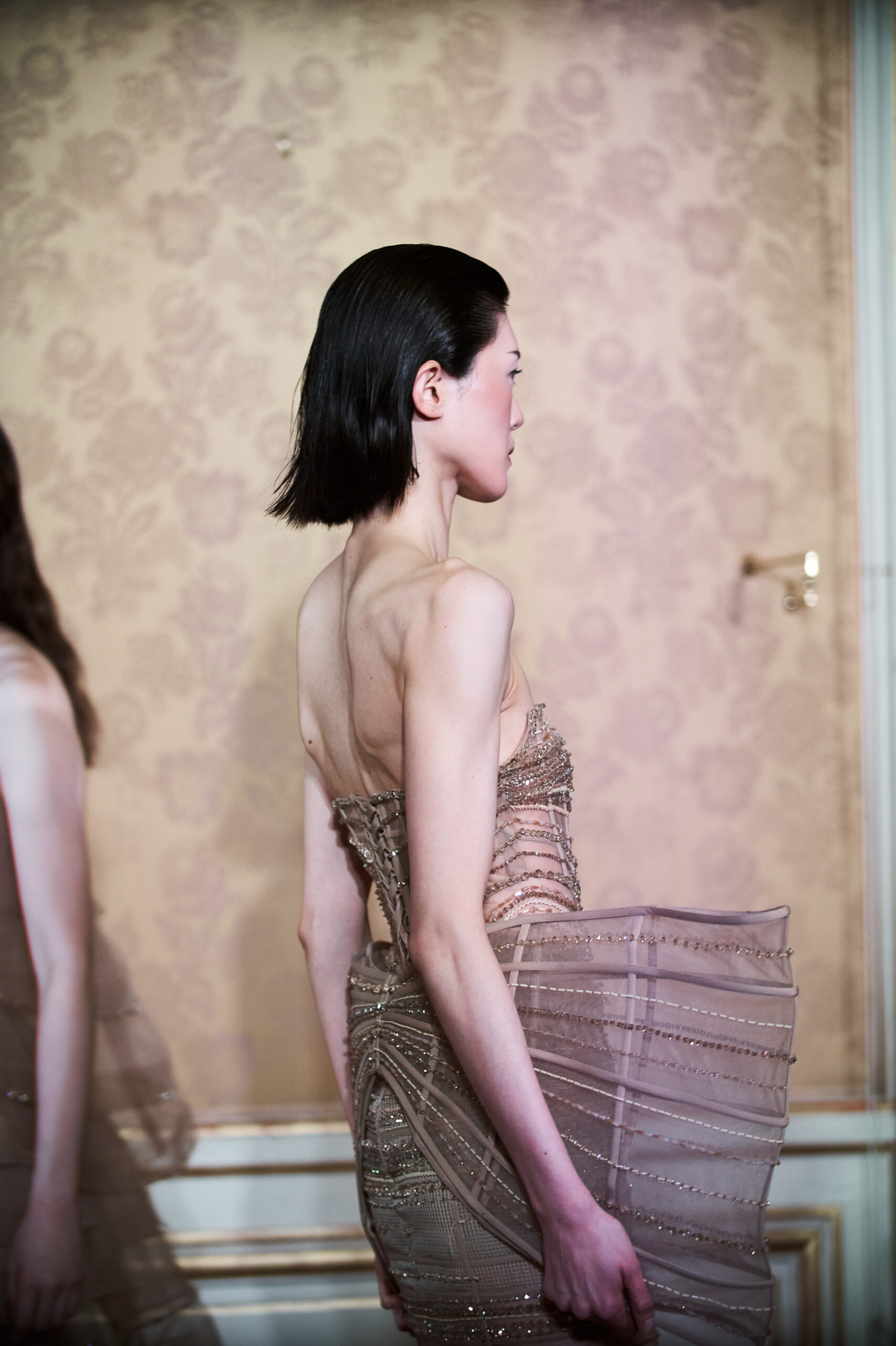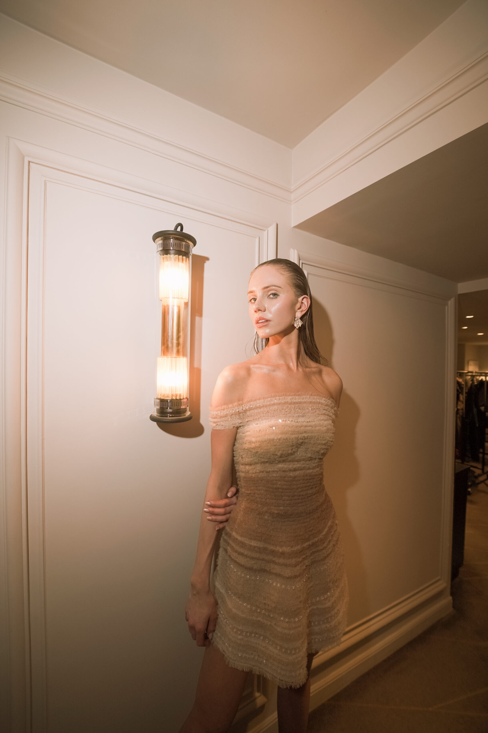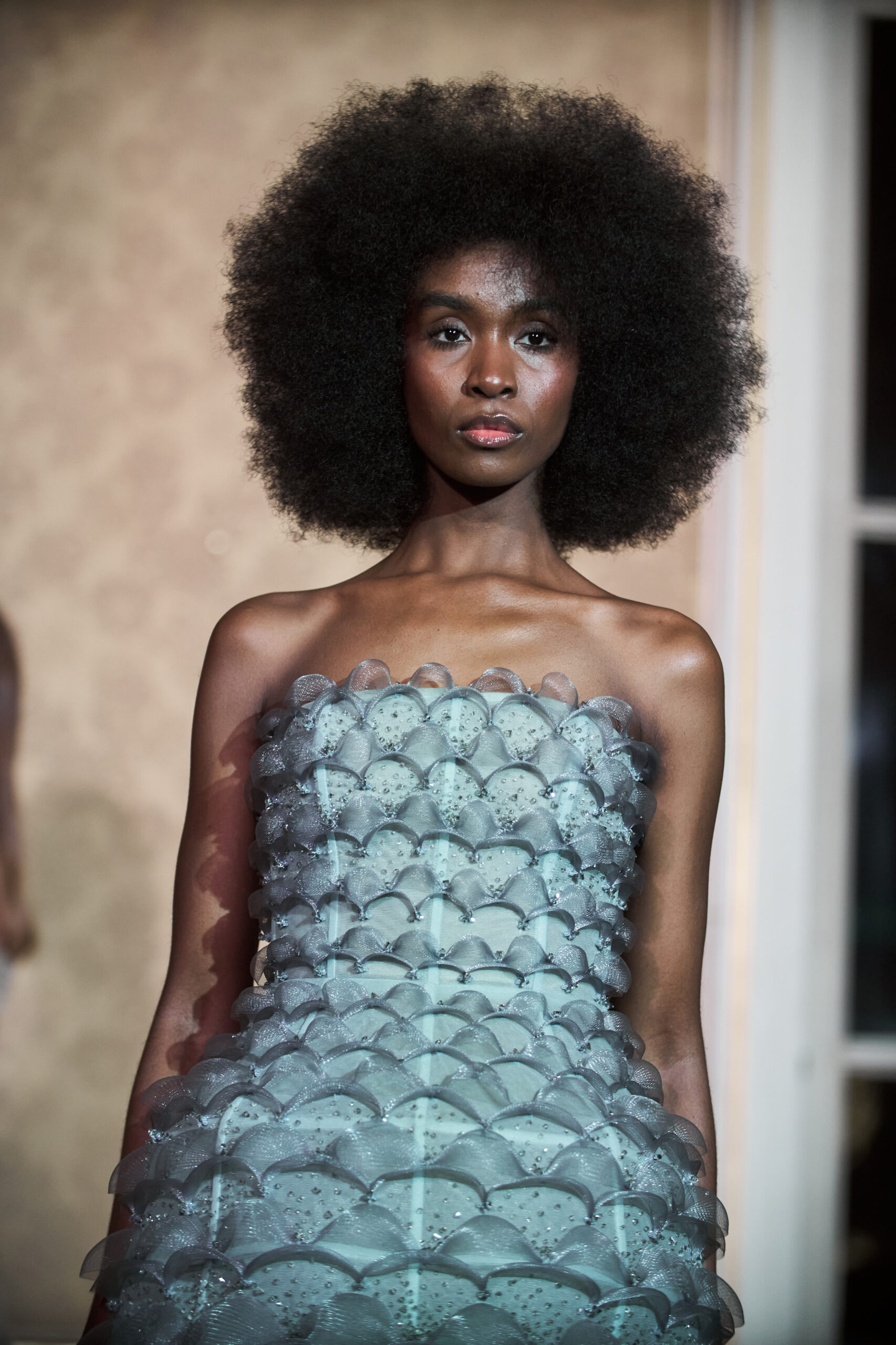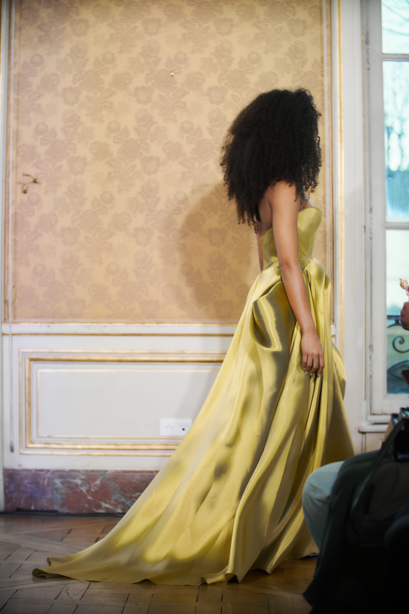Laith Maalouf a enchanté l’audience avec sa collection inspirée des déesses, Amora: Une Symphonie de Structure et de Fluidité. Fusionnant design structuré et fluidité, chaque création rend hommage aux courbes gracieuses des statues de la Renaissance, incarnant l’essence divine de la déesse Amora à travers draperies aériennes et ornements dorés luxuriants.