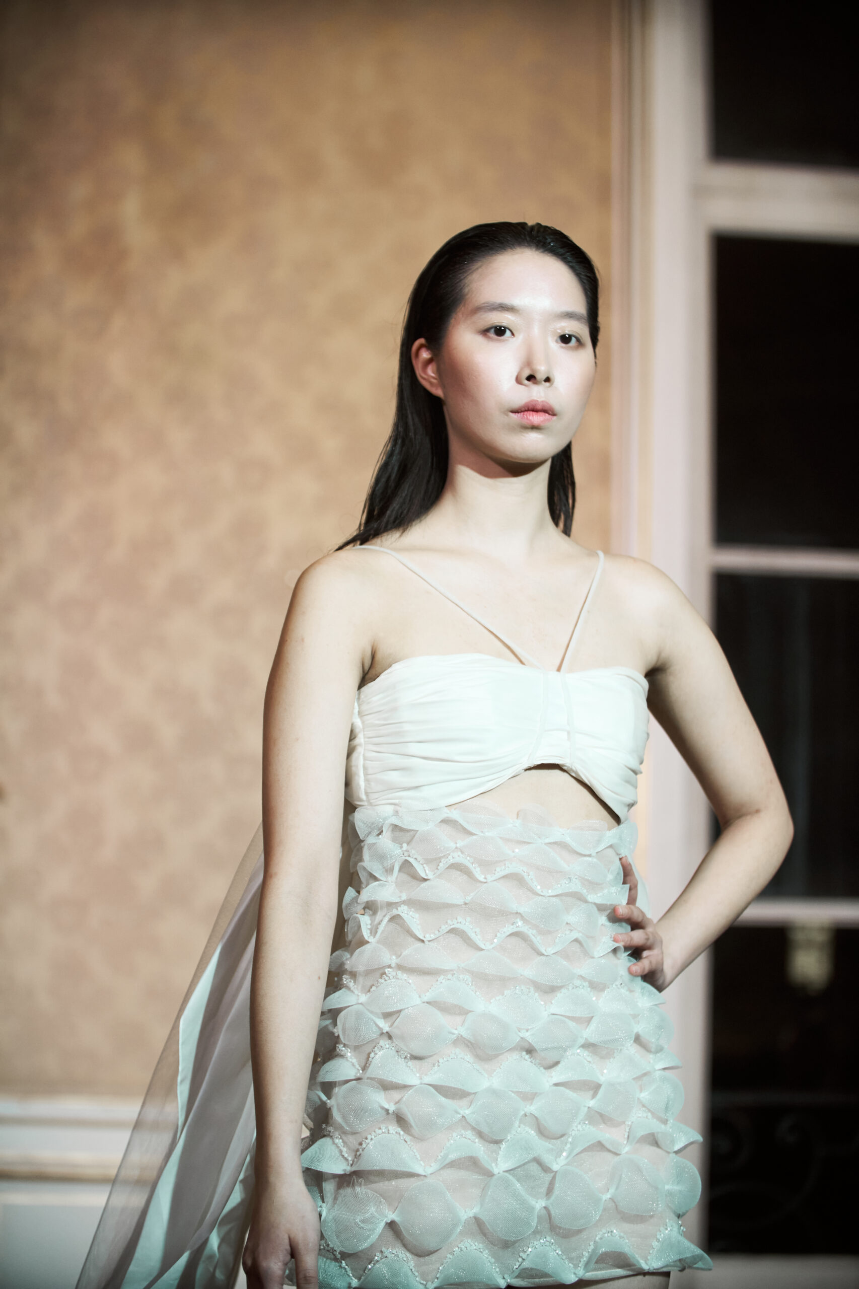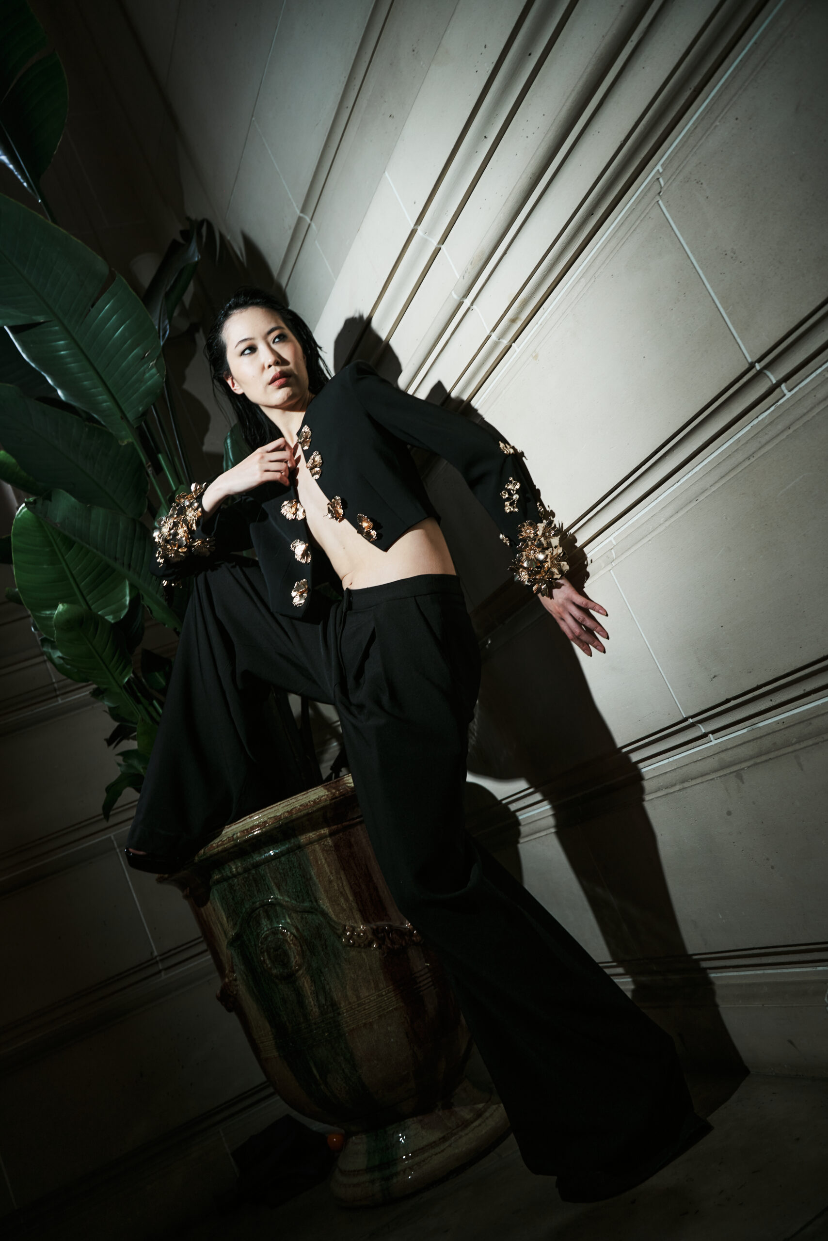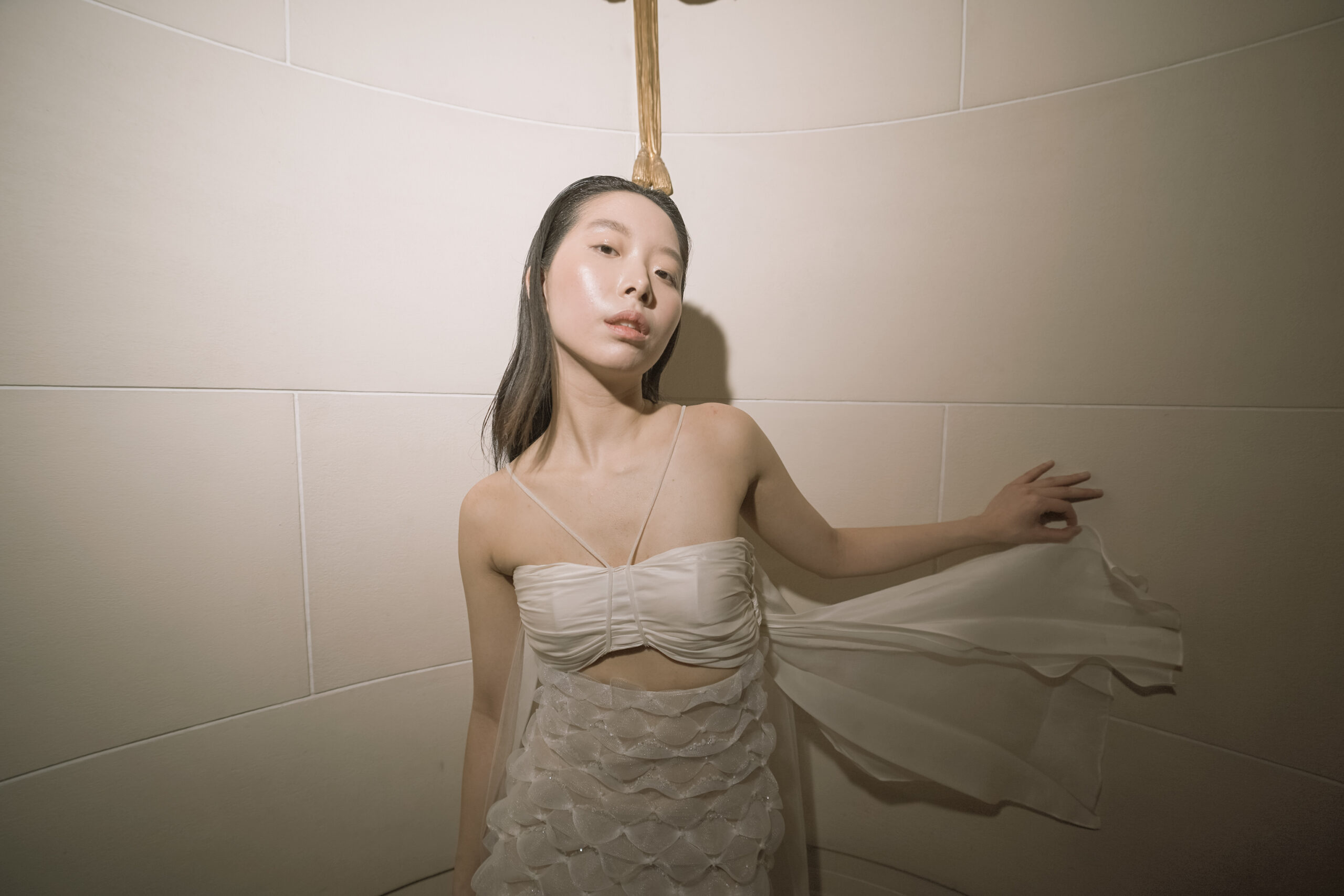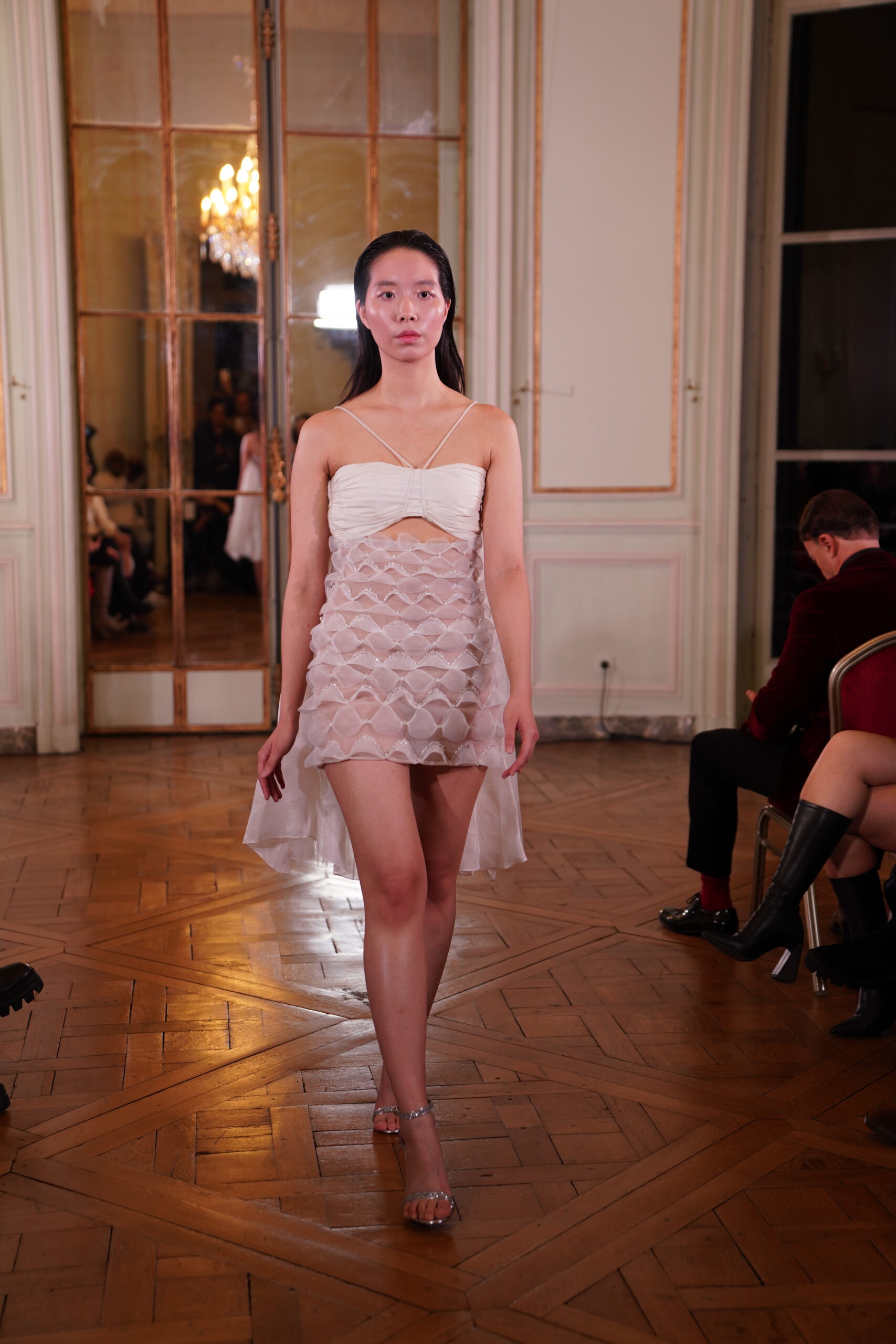 Phan Huy, avec sa collection « Lost in Cavern », inspirée des grottes majestueuses de la province de Quang Binh au Vietnam, a présenté des designs évoquant la splendeur naturelle des cavernes, grâce à des formes drapées, des détails en 3D saisissants et des embellissements de perles de cristal, rendant hommage aux paysages vietnamiens.