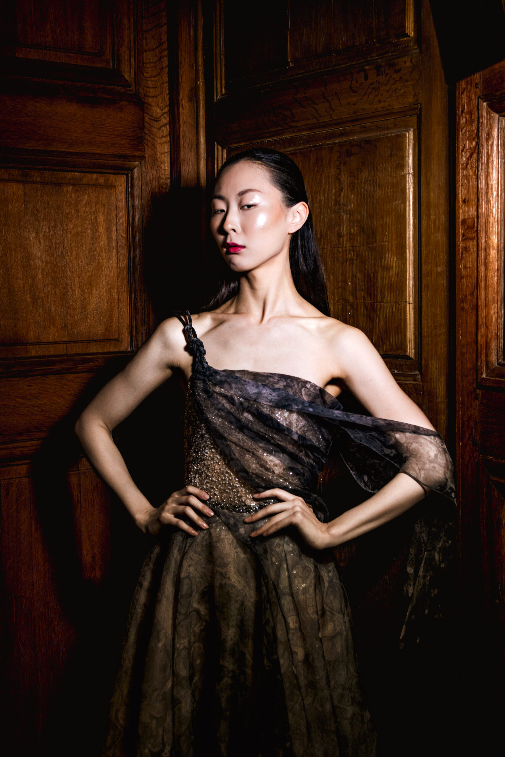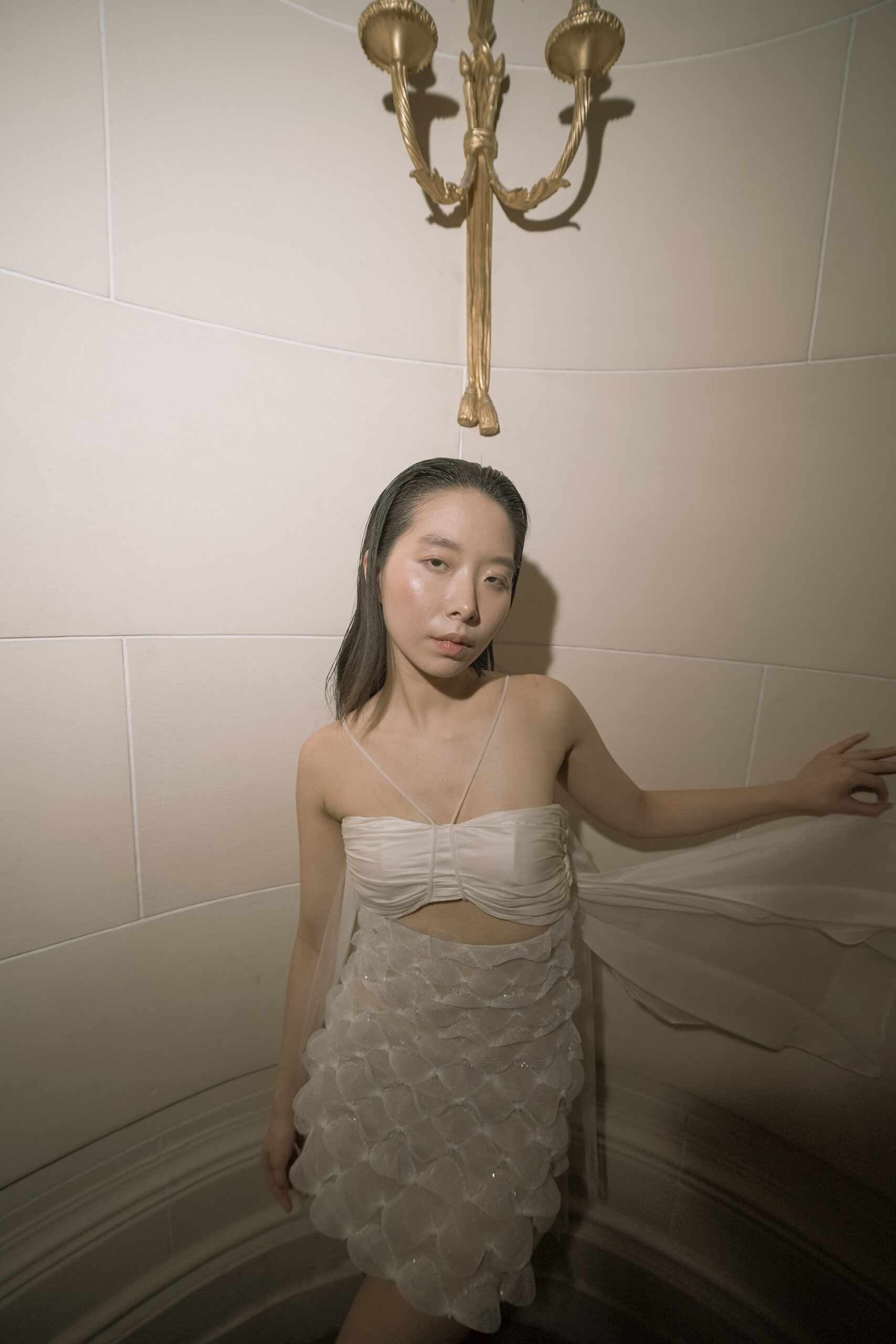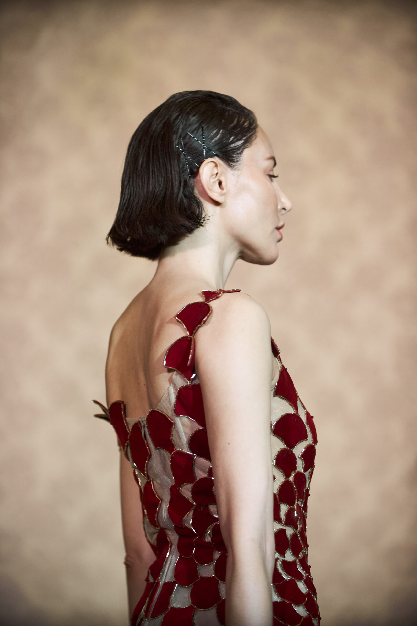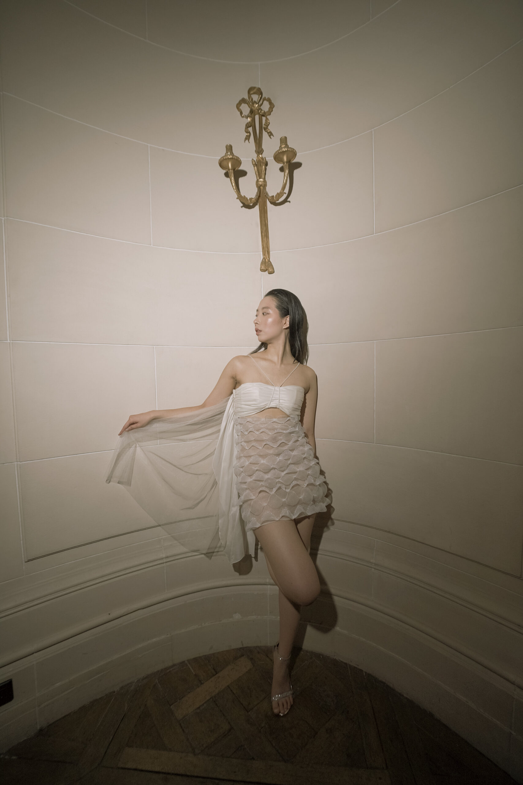 Phan Huy, avec sa collection « Lost in Cavern », inspirée des grottes majestueuses de la province de Quang Binh au Vietnam, a présenté des designs évoquant la splendeur naturelle des cavernes, grâce à des formes drapées, des détails en 3D saisissants et des embellissements de perles de cristal, rendant hommage aux paysages vietnamiens.