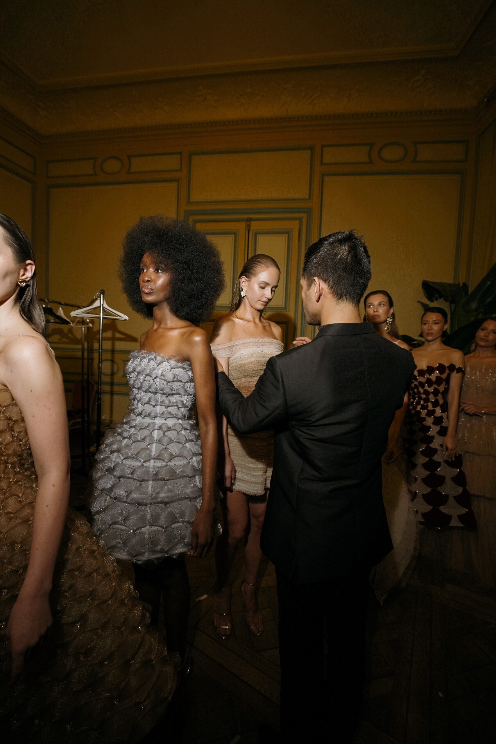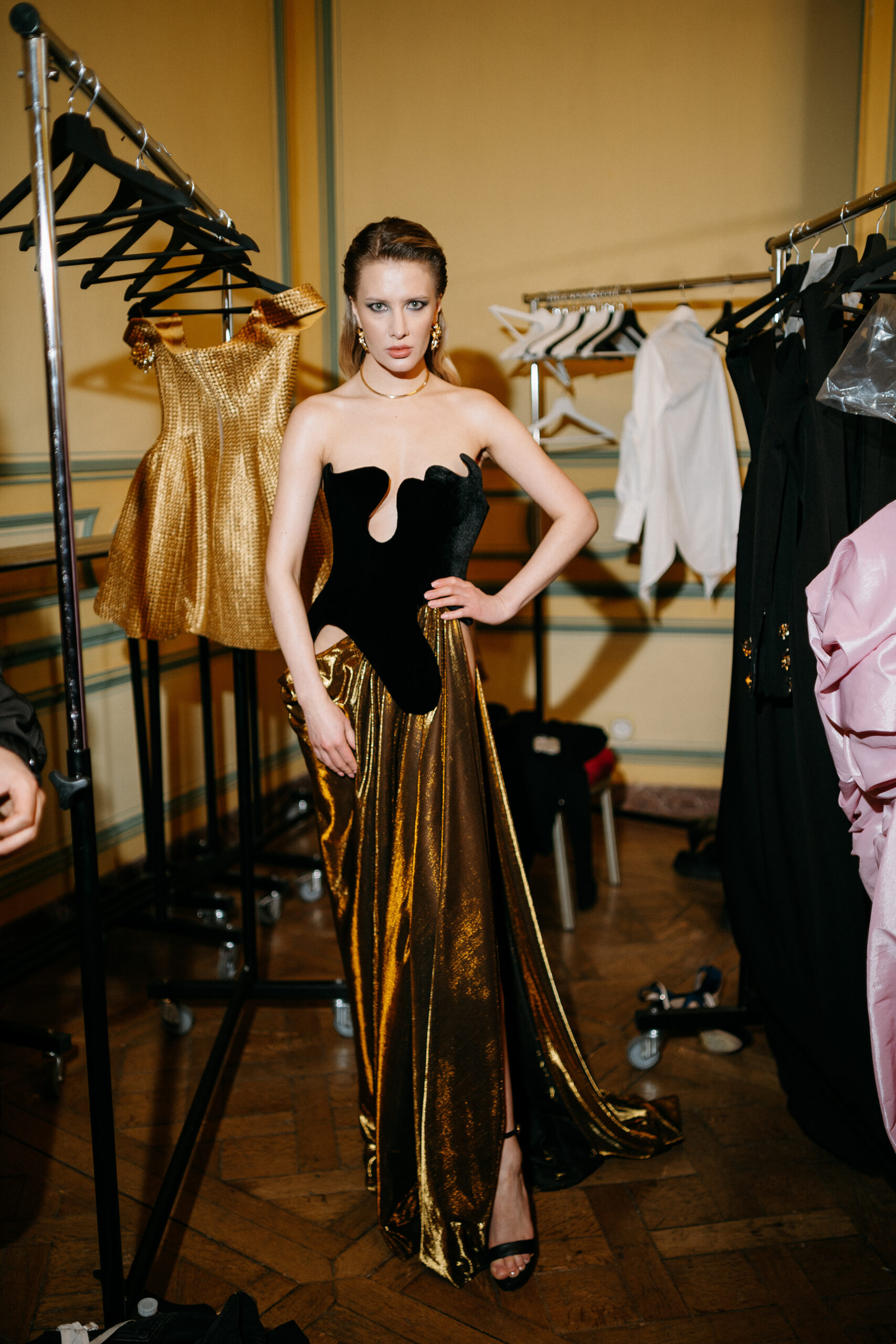 Le défilé s’est ouvert sur la collection Madame X de Vitor Zerbinato, célébrant les 30 ans de la première marque du designer. Madame X, empreinte de sensualité, de drame et de force, a réaffirmé les éléments iconiques qui ont jalonné la carrière de Zerbinato, à travers des silhouettes corsetées, des textures en fourrure et des longueurs luxuriantes.