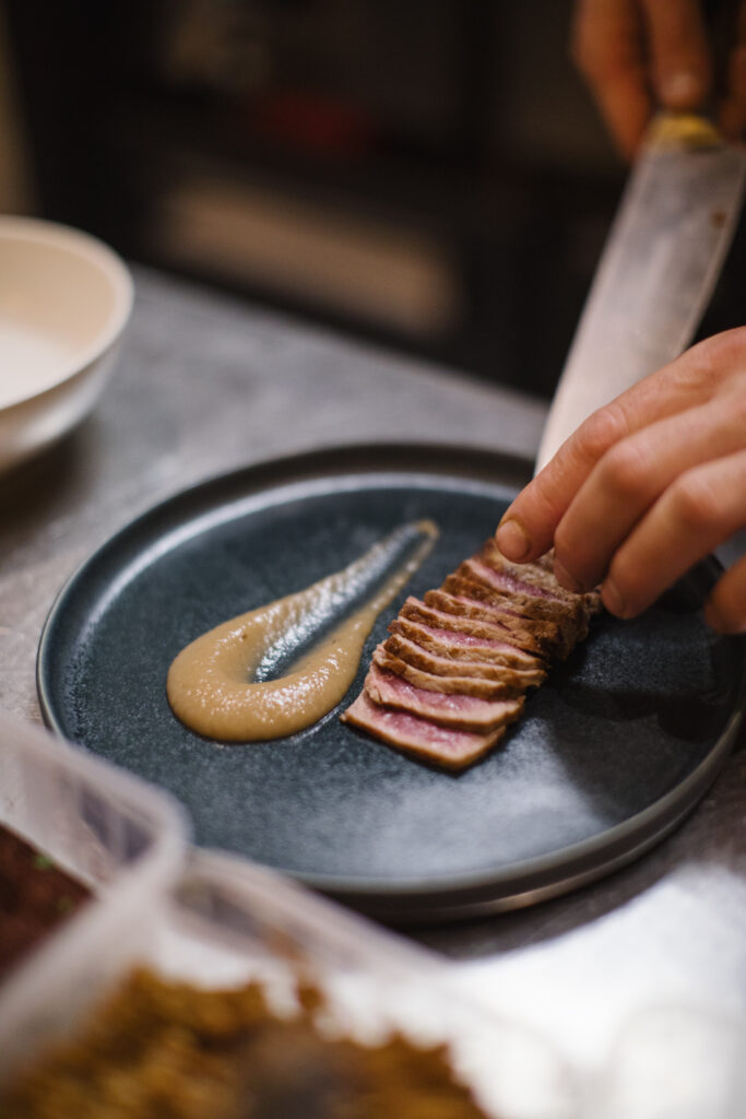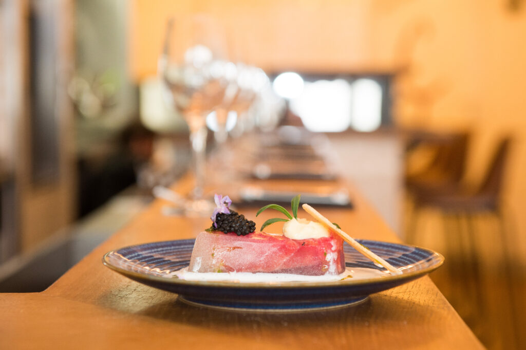 Avec différents espaces à disposition, les convives peuvent choisir entre la terrasse, le bar-comptoir, la table-comptoir ou encore la cuisine-comptoir, pour une expérience unique. Ici, les frontières entre les coulisses et la scène s’estompent, laissant les amateurs de bonne cuisine assister au spectacle des mets se dévoilant sous leurs yeux.