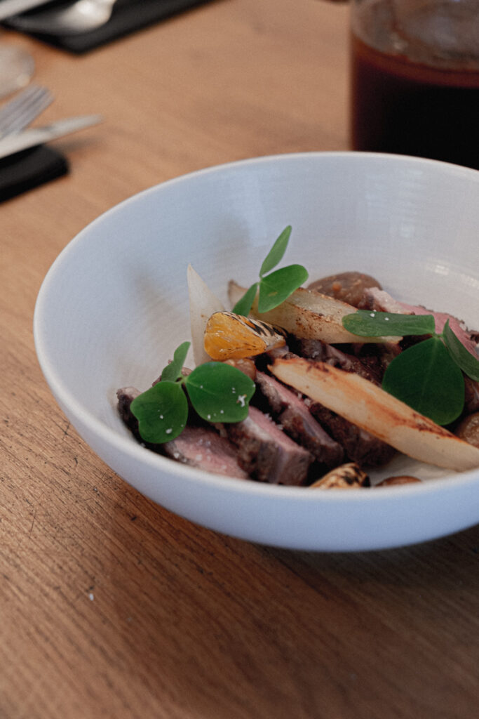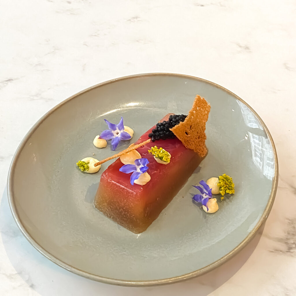 Formé à l’école Ferrandi et guidé par les mains expertes d’Eric Frechon au Bristol et au Colorova, le Chef Jules Monnet a développé un style de cuisine audacieux et créatif, qu’il qualifie lui-même de « bistronomie aux goûts marqués ». En véritable réalisateur, il met en scène les produits bruts, sélectionnés avec soin selon la saison et la qualité du terroir. Chaque jour, il interprète ces ingrédients différemment, offrant ainsi une cuisine contemporaine, féminine et élégante.